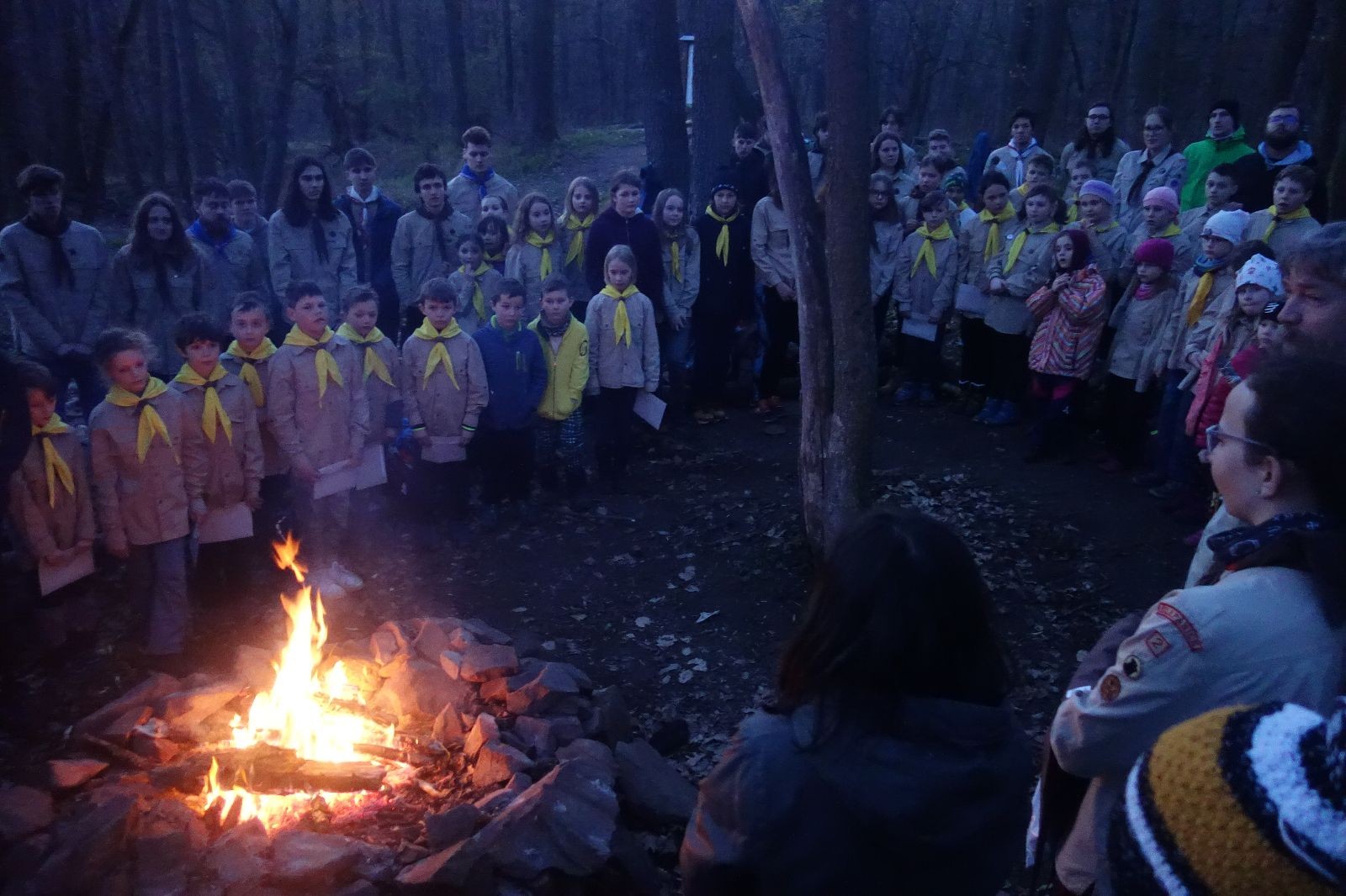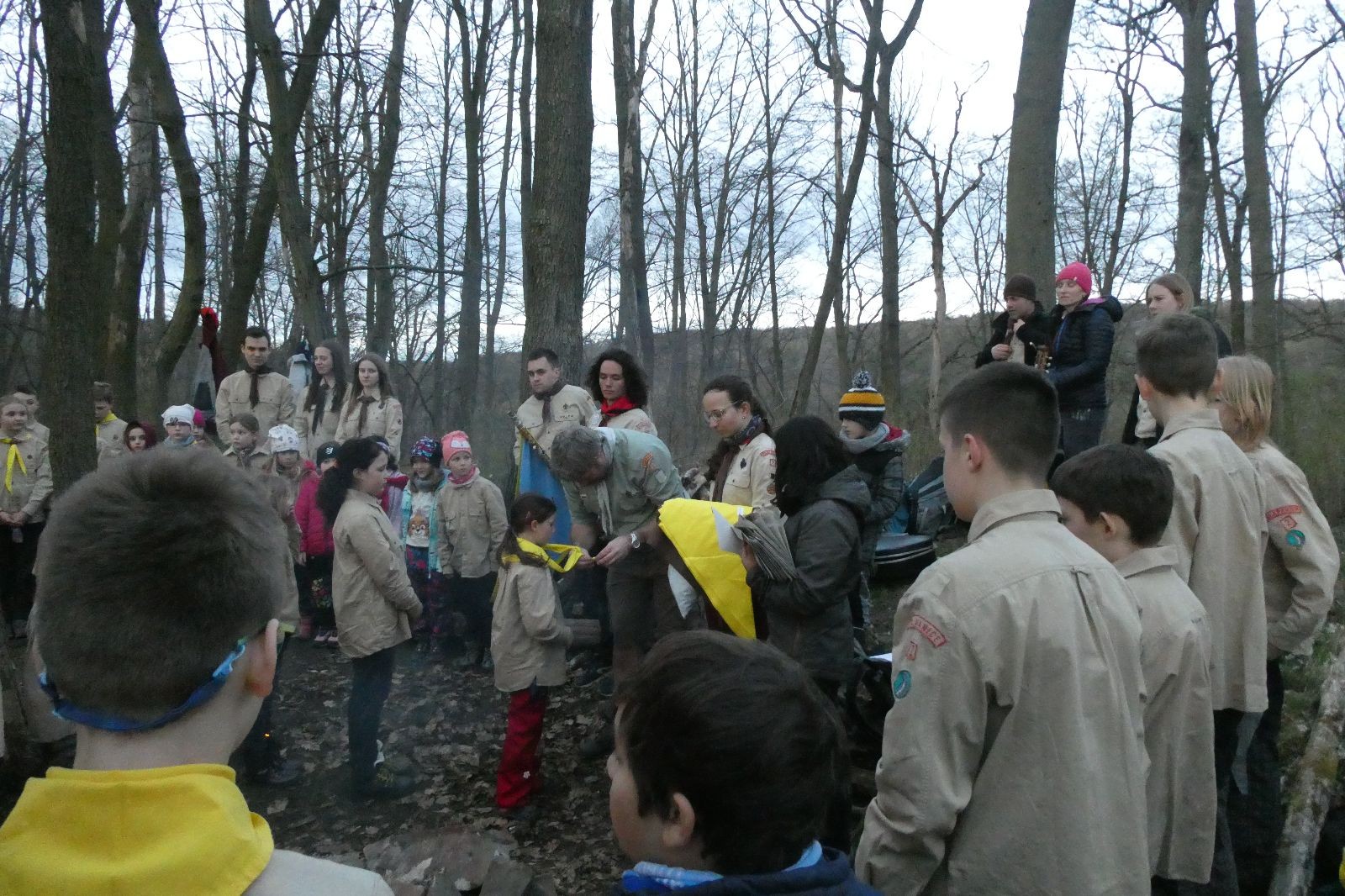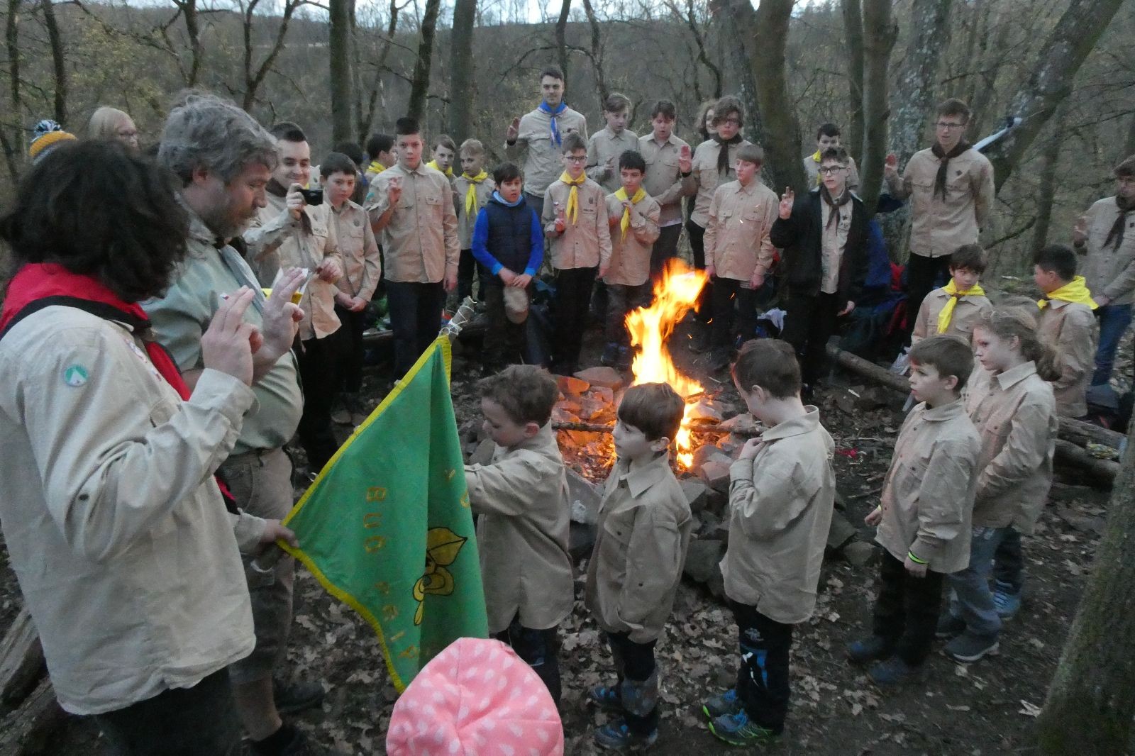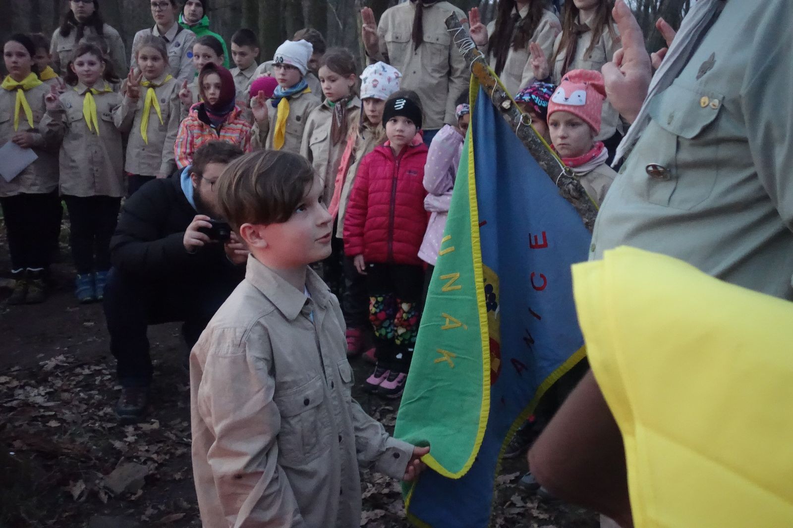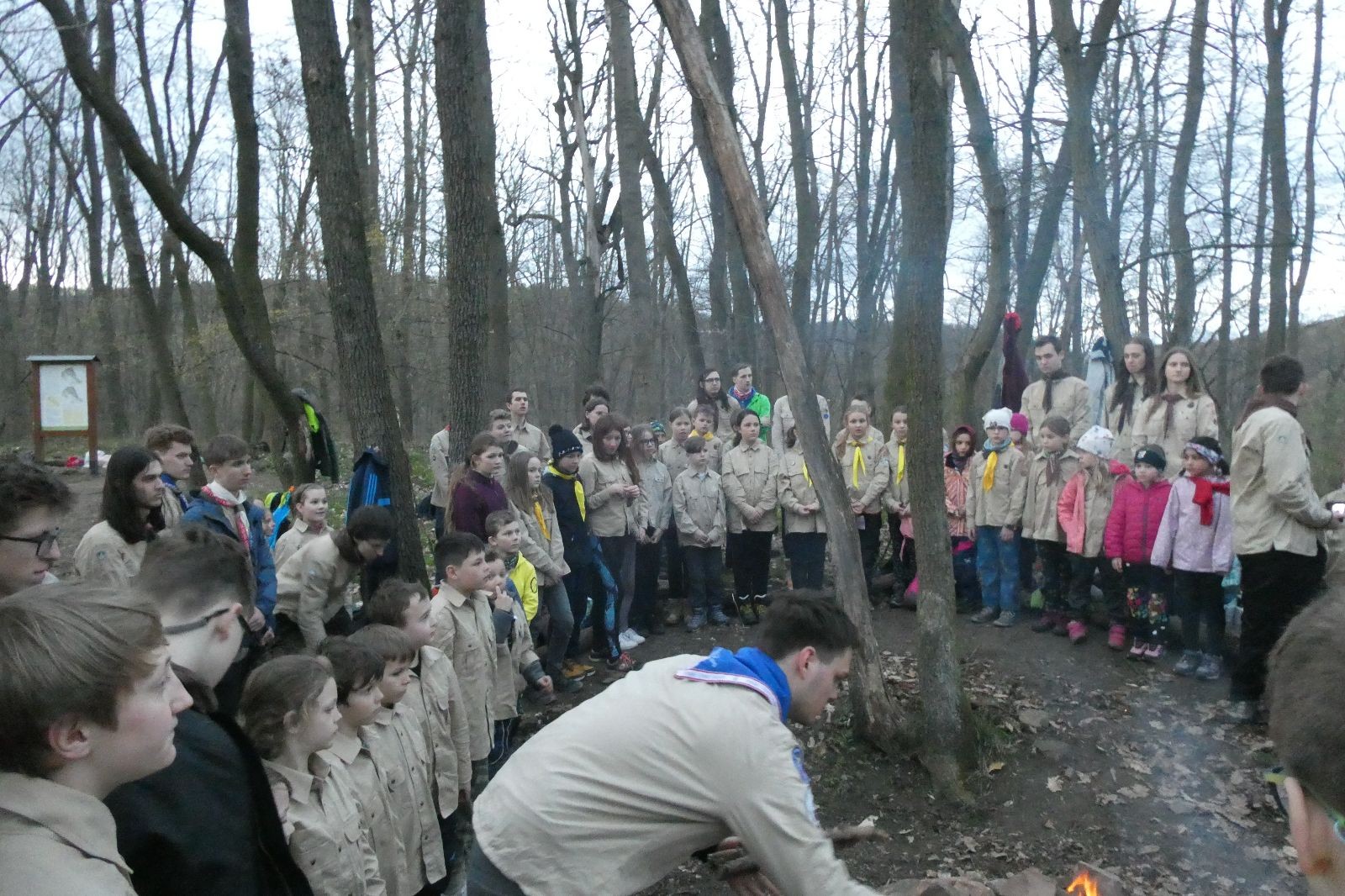 A na řadu přichází sliby. 10 světlušek, většina z Lasiček. Pak 8 vlčat, většina od Lachtanů. 4 skautky – 3 Sovičky a jedna Kudlanka. A skauti. Těch je 10 – 2 Vlci, 4 Sršni a 4 Kobři. Celkem 32 lidiček.