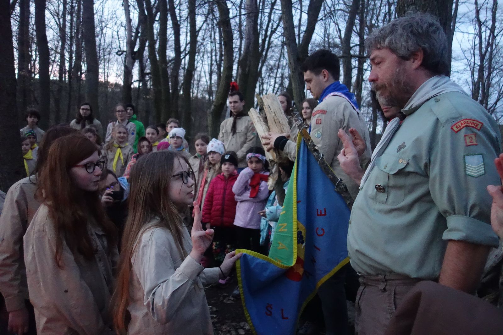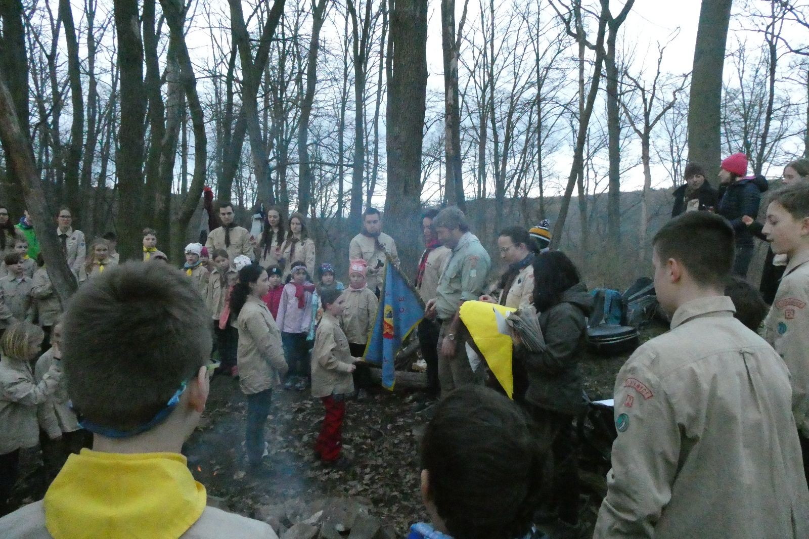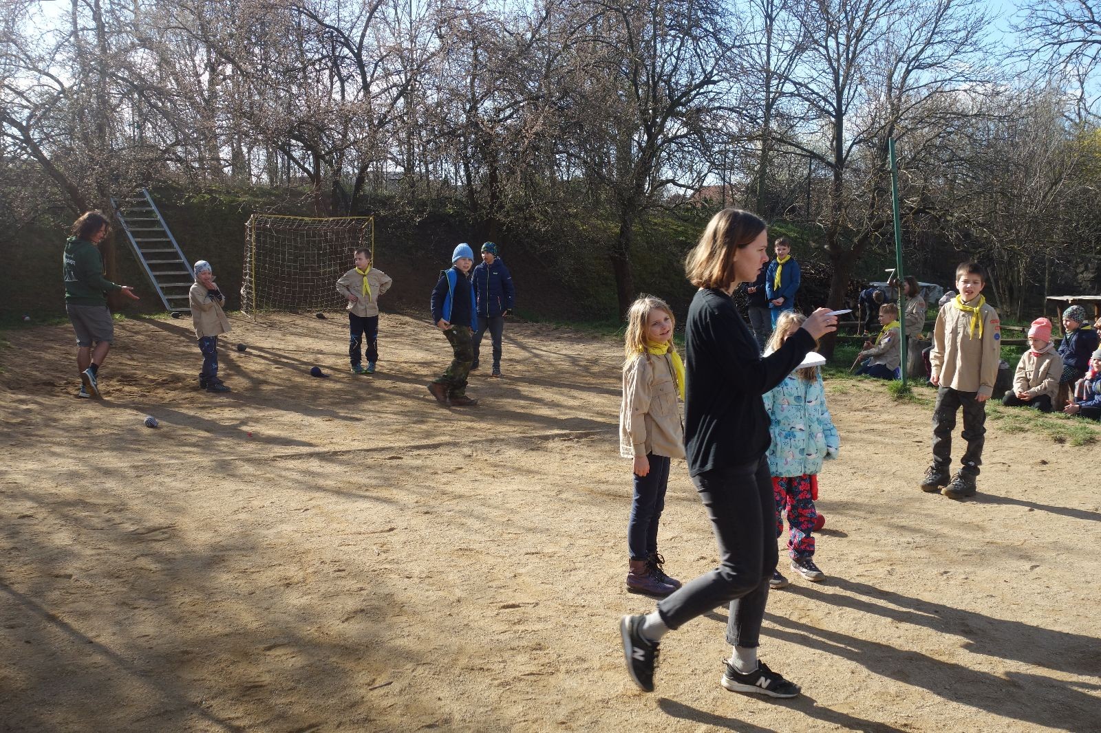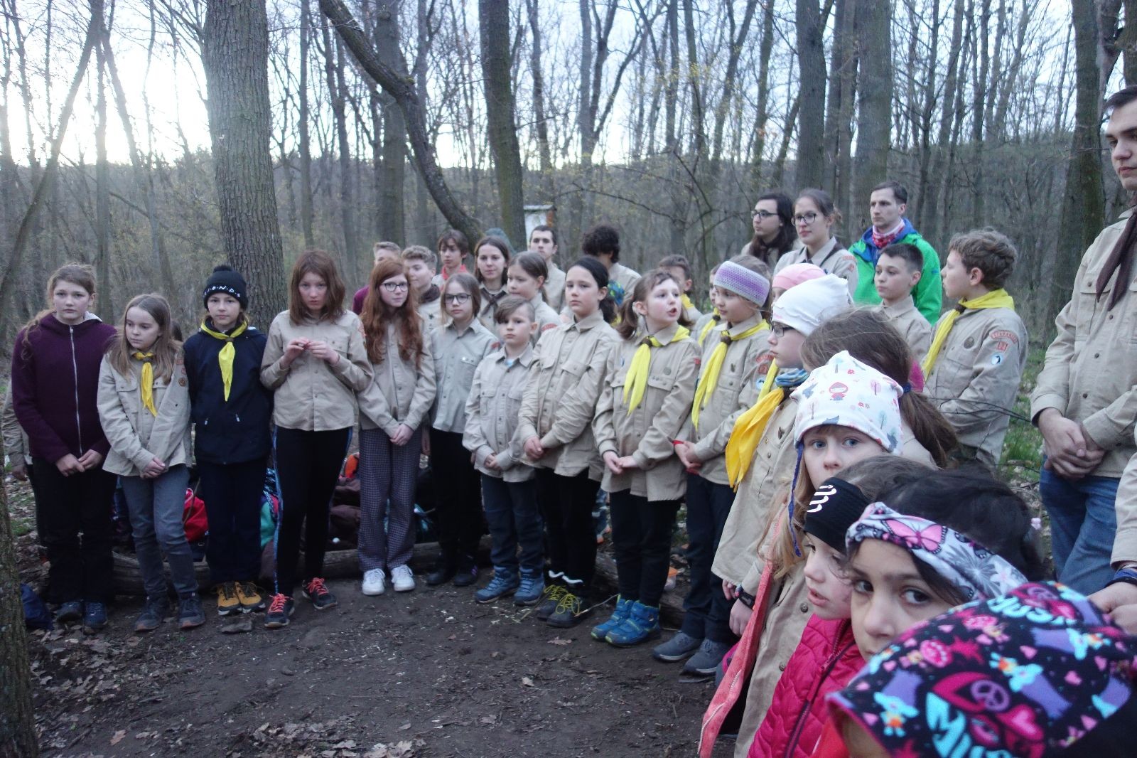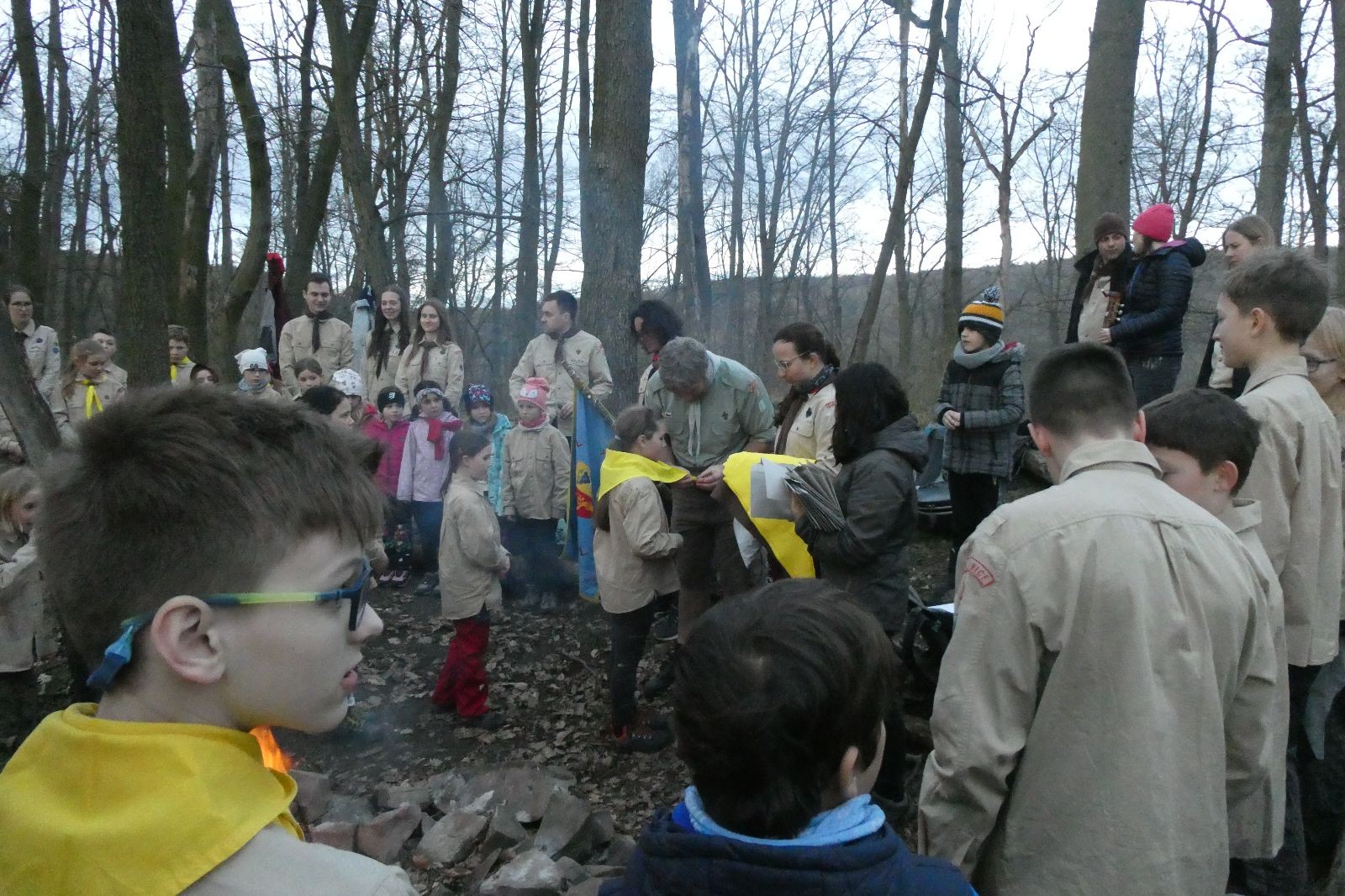A na řadu přichází sliby. 10 světlušek, většina z Lasiček. Pak 8 vlčat, většina od Lachtanů. 4 skautky – 3 Sovičky a jedna Kudlanka. A skauti. Těch je 10 – 2 Vlci, 4 Sršni a 4 Kobři. Celkem 32 lidiček.