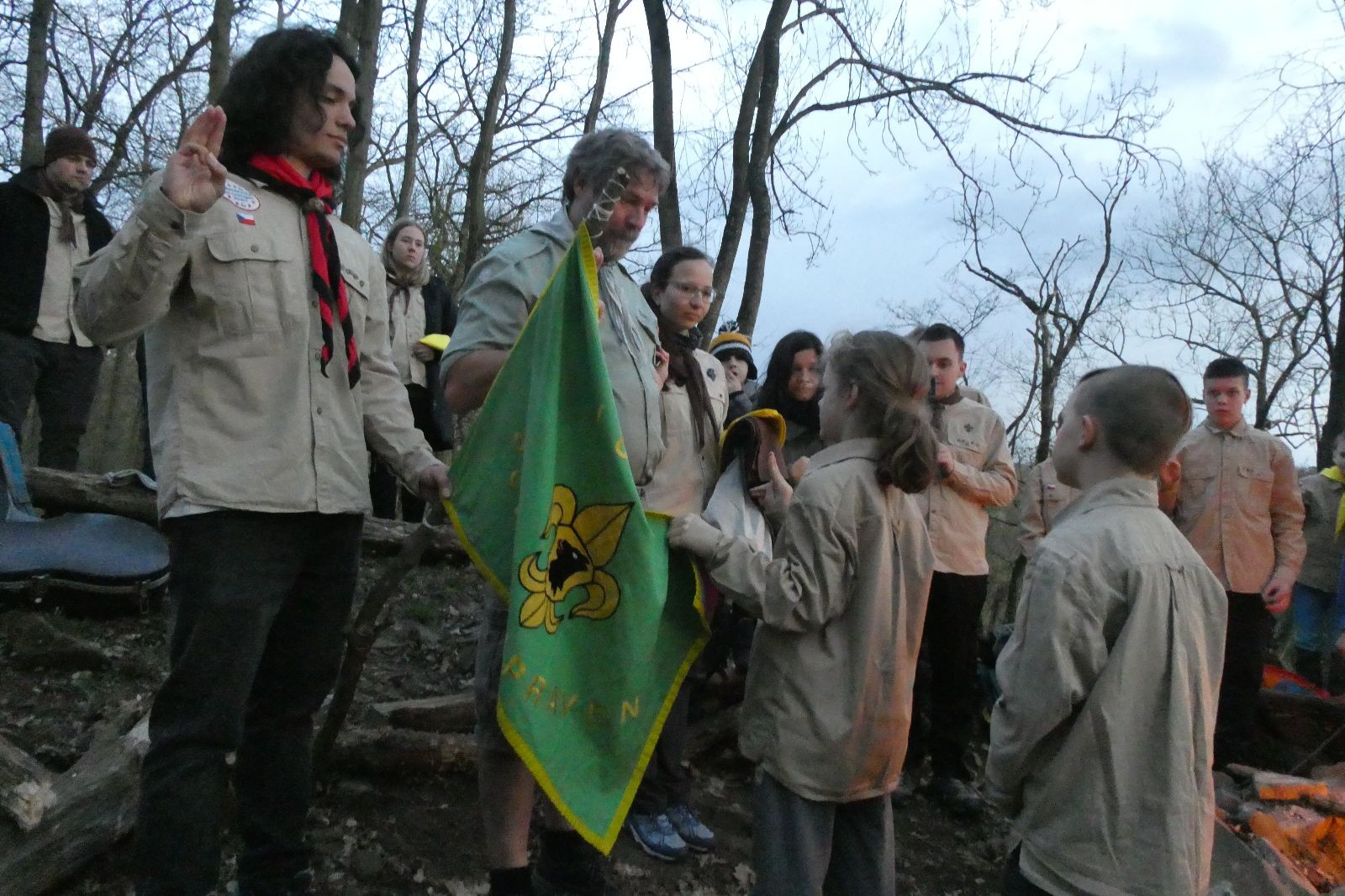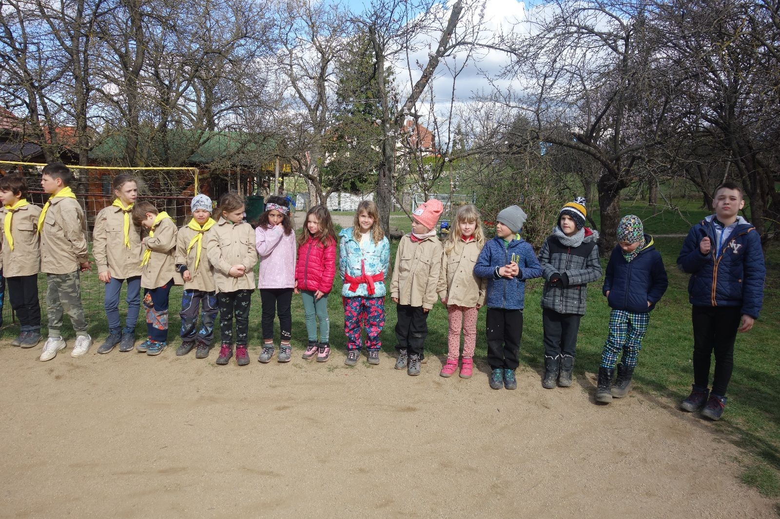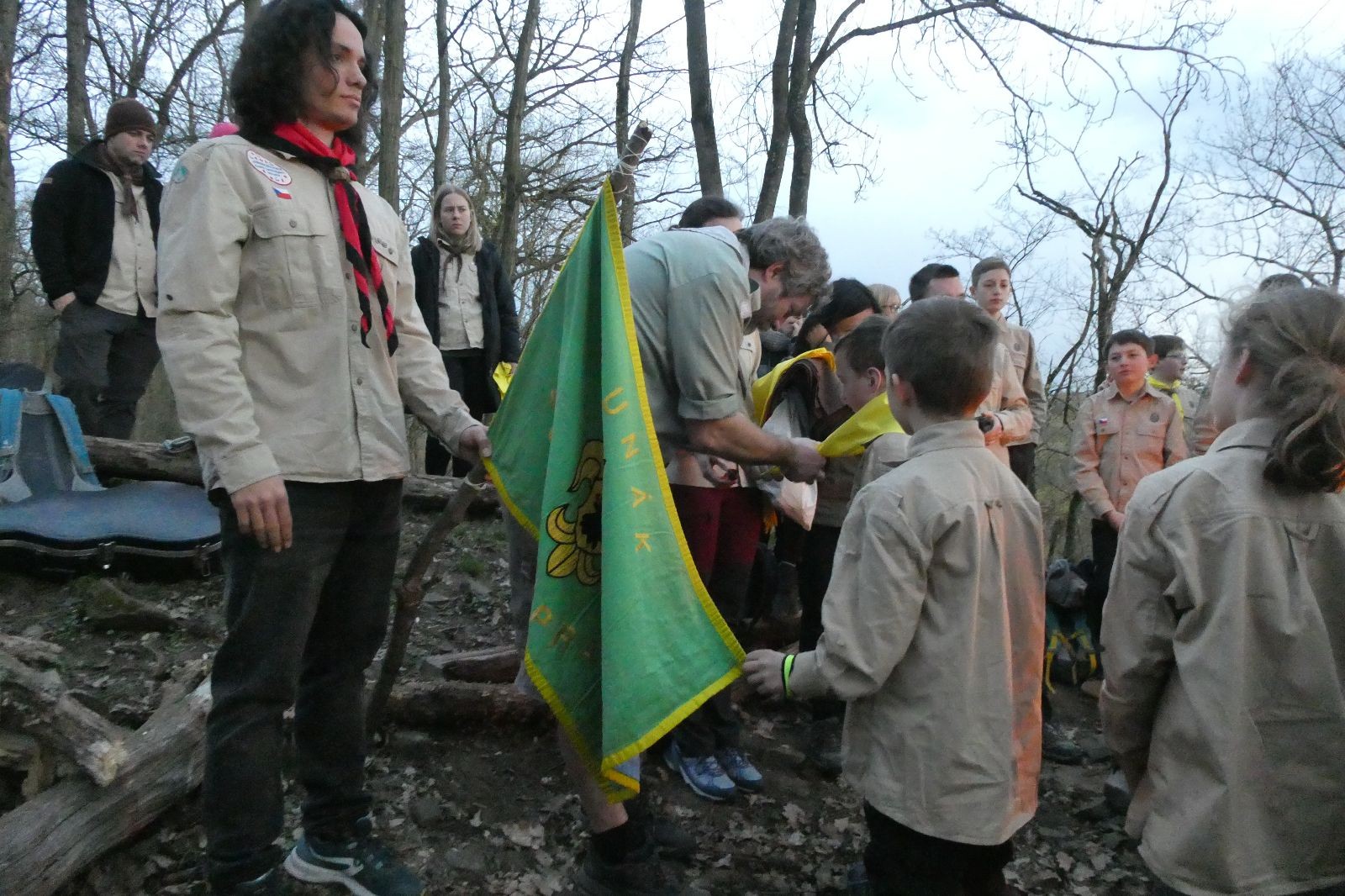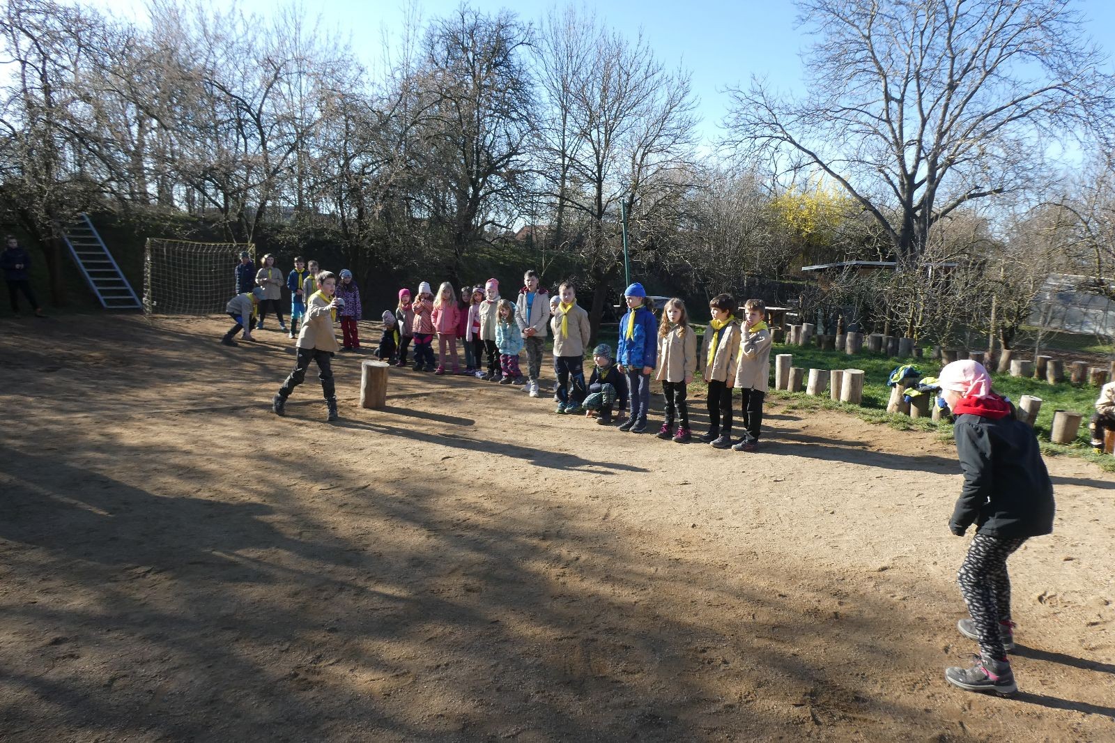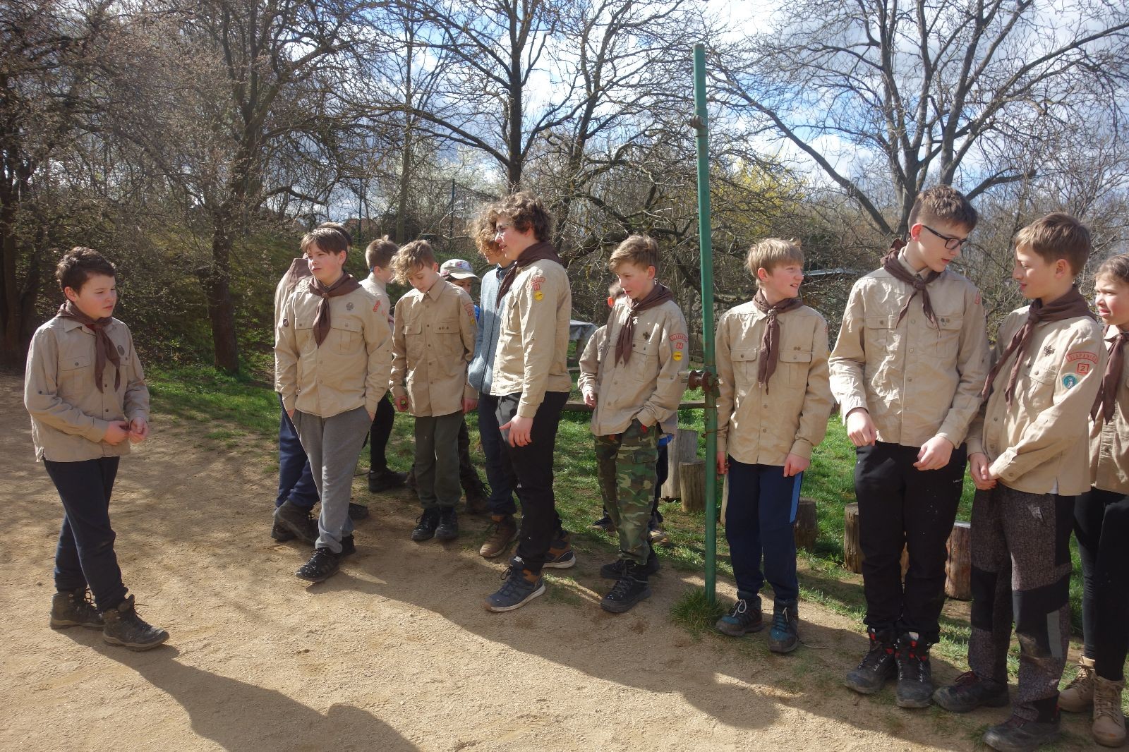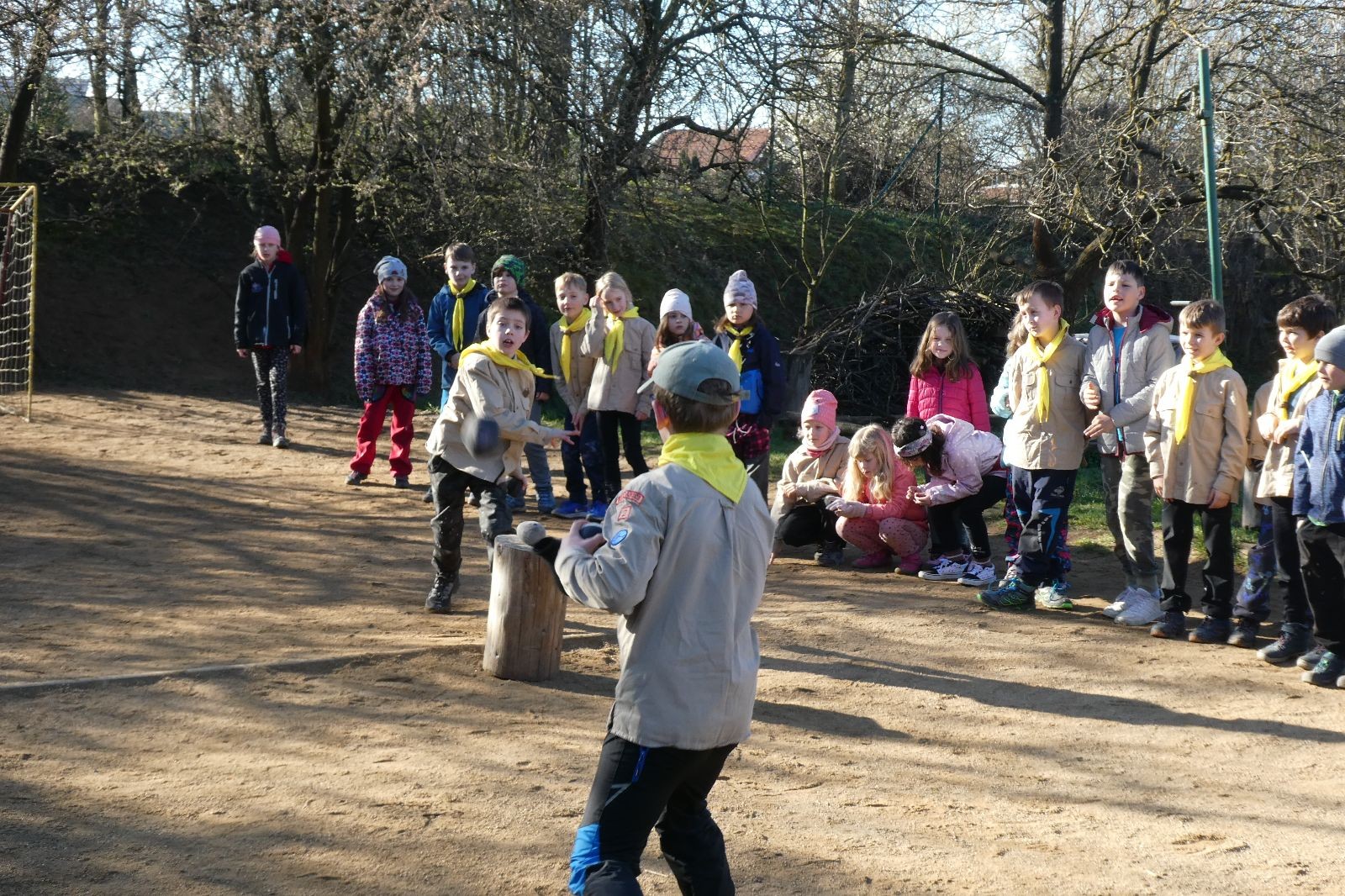 A na řadu přichází sliby. 10 světlušek, většina z Lasiček. Pak 8 vlčat, většina od Lachtanů. 4 skautky – 3 Sovičky a jedna Kudlanka. A skauti. Těch je 10 – 2 Vlci, 4 Sršni a 4 Kobři. Celkem 32 lidiček.