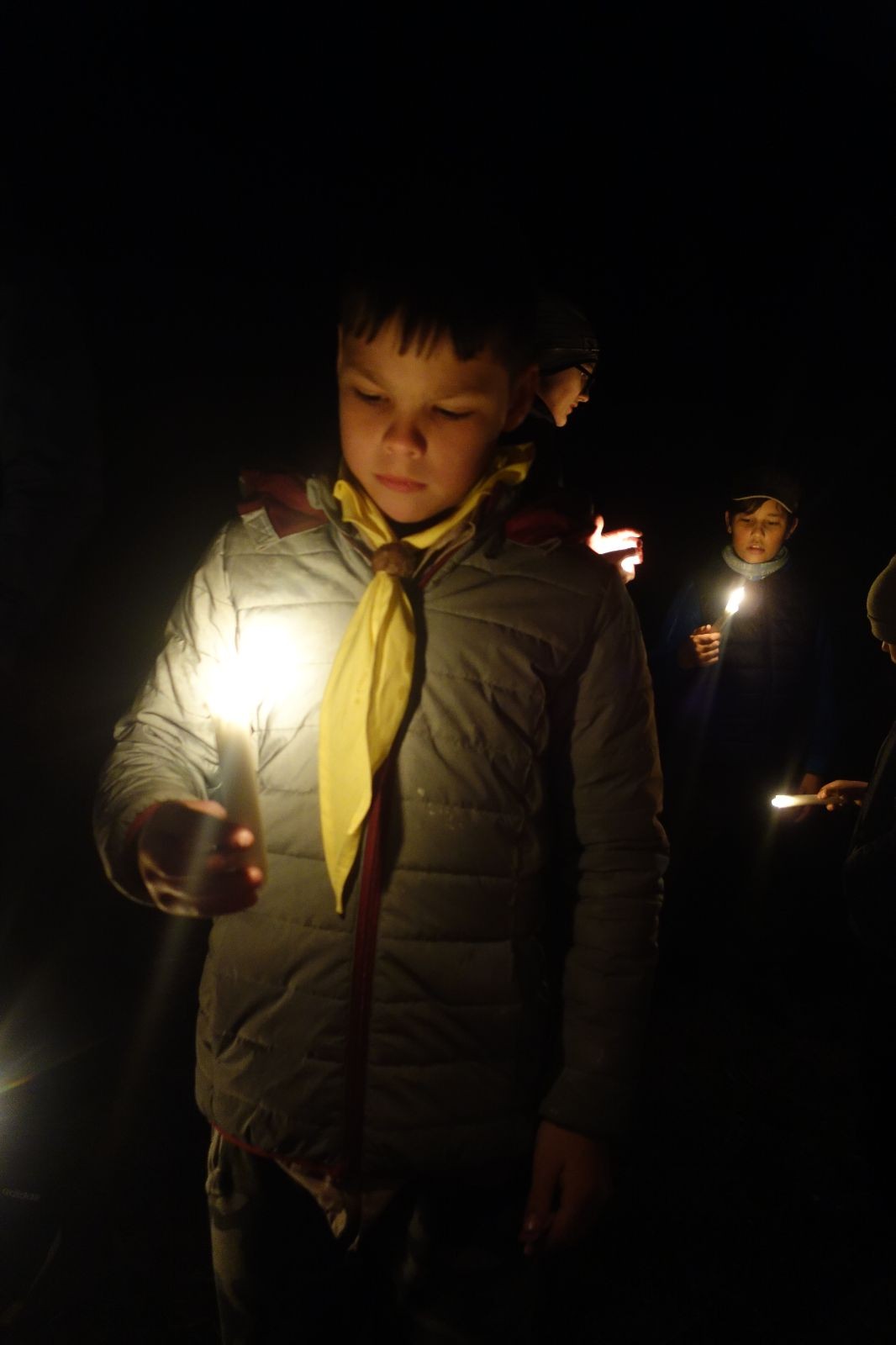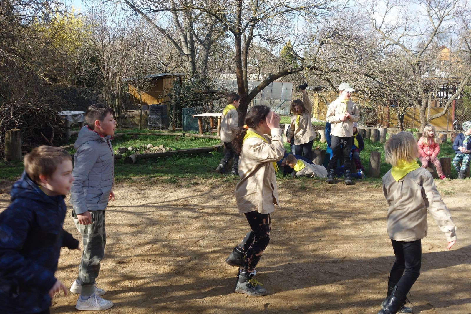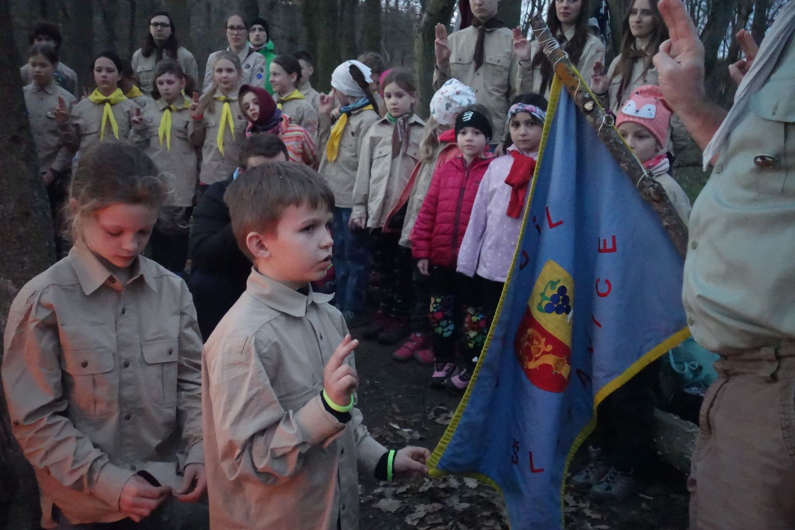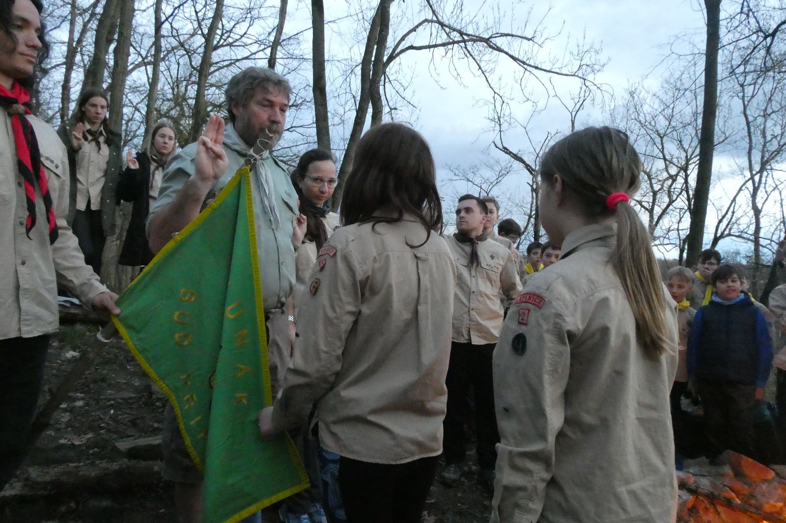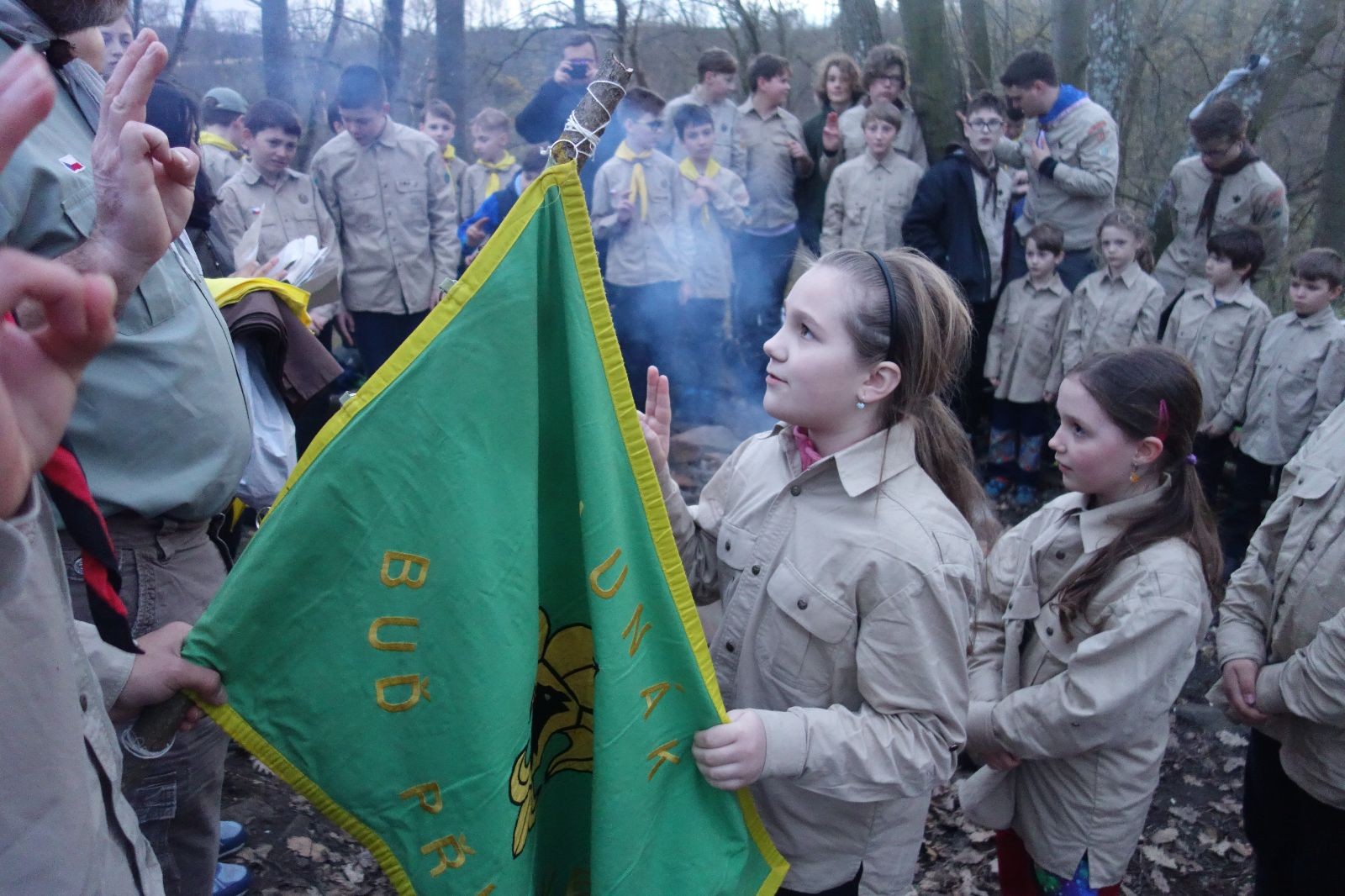A na řadu přichází sliby. 10 světlušek, většina z Lasiček. Pak 8 vlčat, většina od Lachtanů. 4 skautky – 3 Sovičky a jedna Kudlanka. A skauti. Těch je 10 – 2 Vlci, 4 Sršni a 4 Kobři. Celkem 32 lidiček.