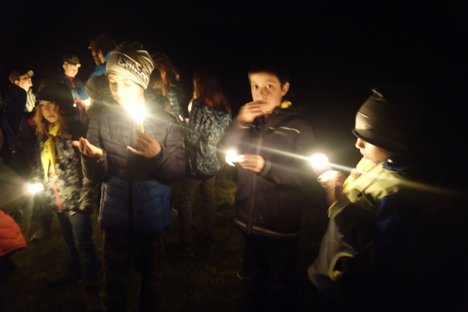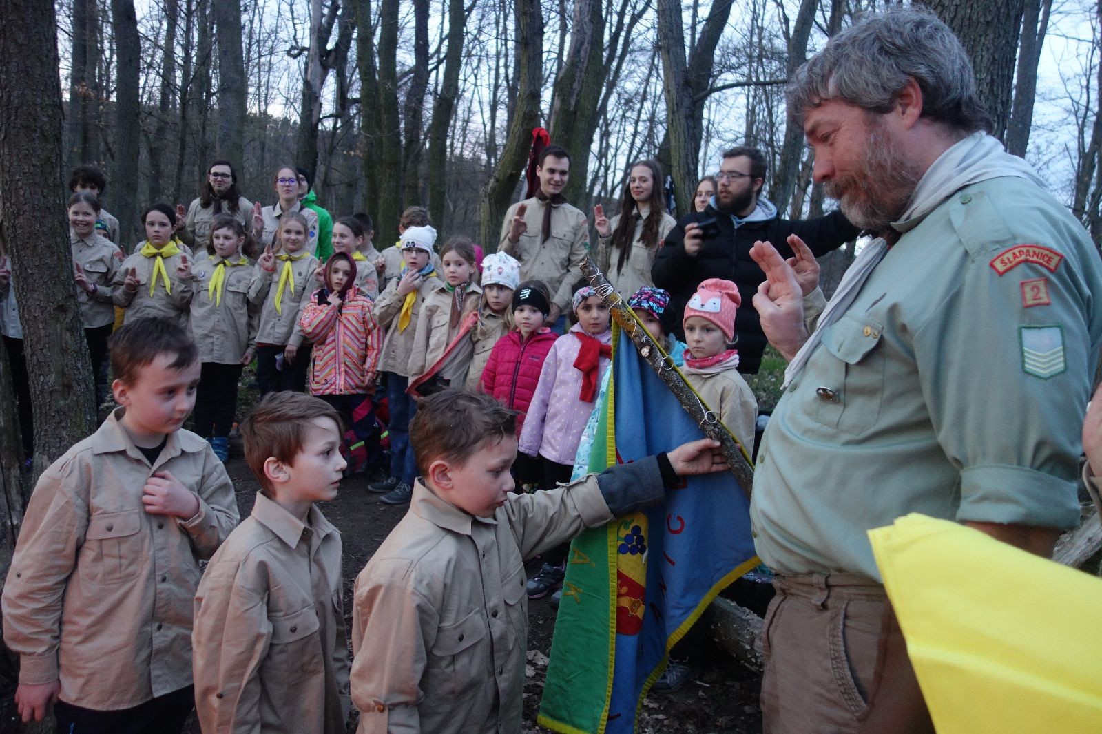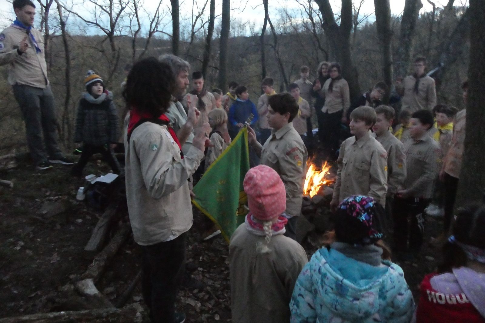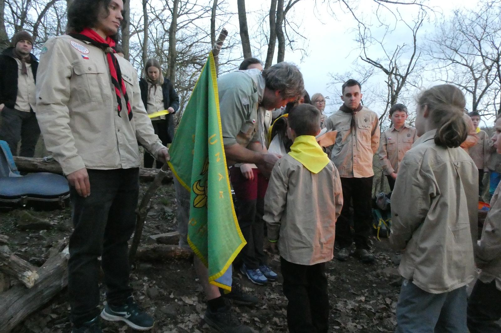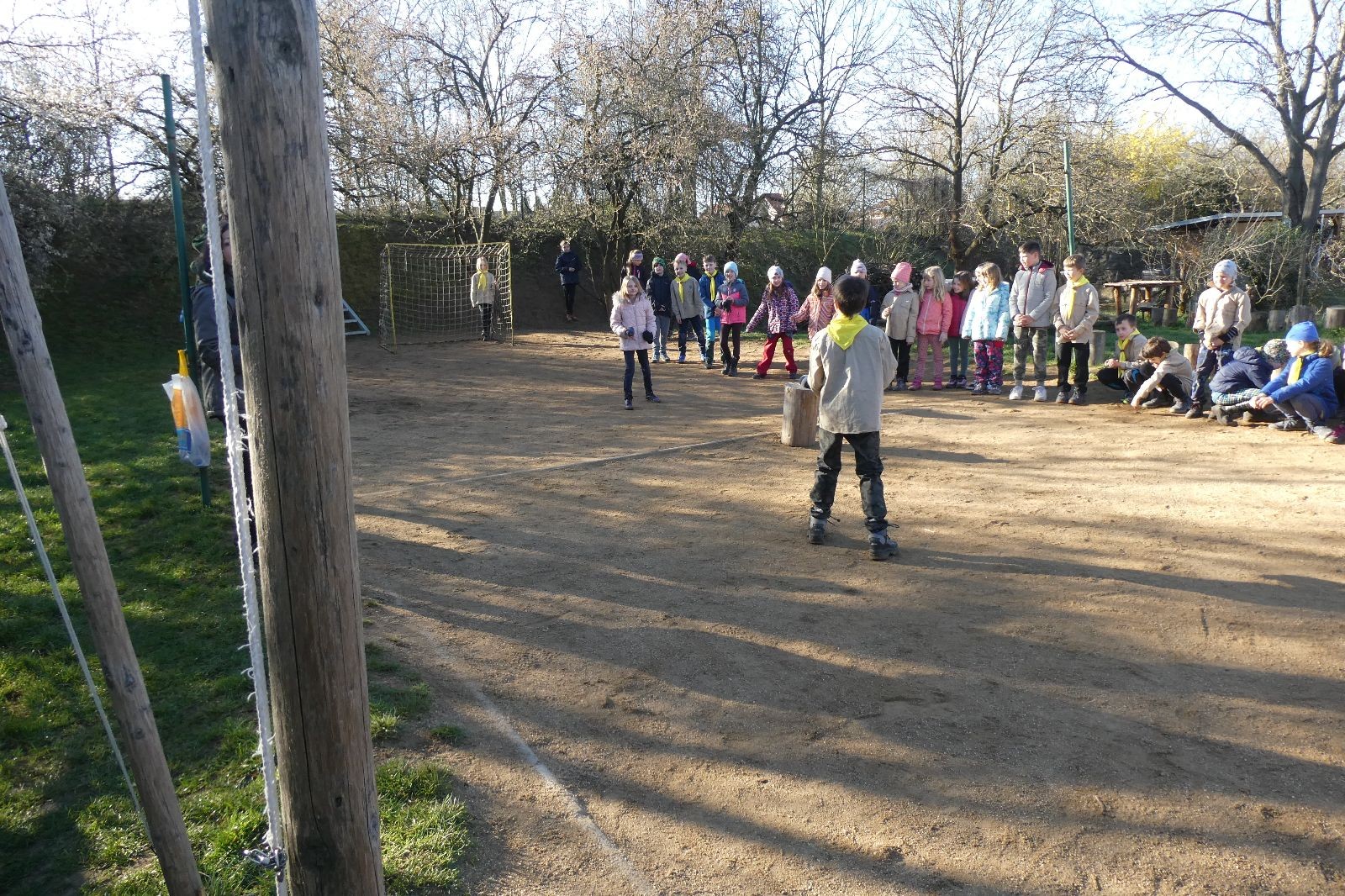 A na řadu přichází sliby. 10 světlušek, většina z Lasiček. Pak 8 vlčat, většina od Lachtanů. 4 skautky – 3 Sovičky a jedna Kudlanka. A skauti. Těch je 10 – 2 Vlci, 4 Sršni a 4 Kobři. Celkem 32 lidiček.