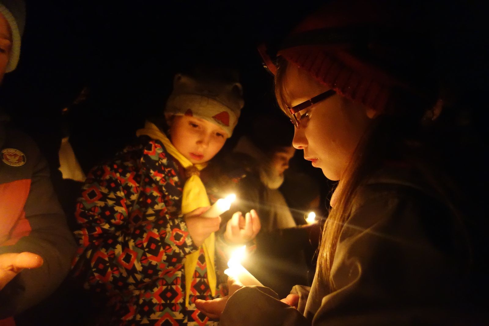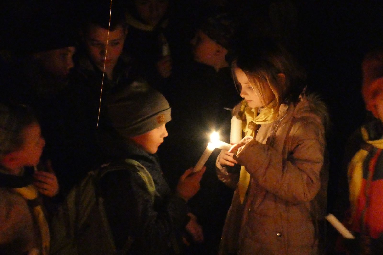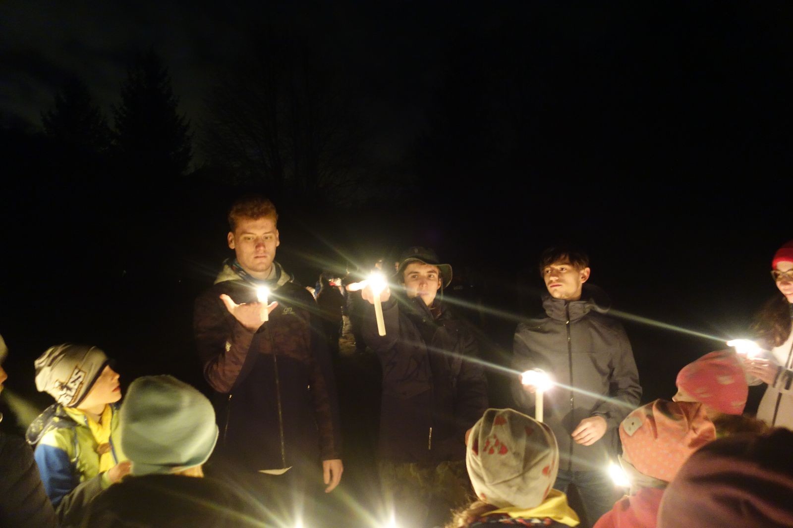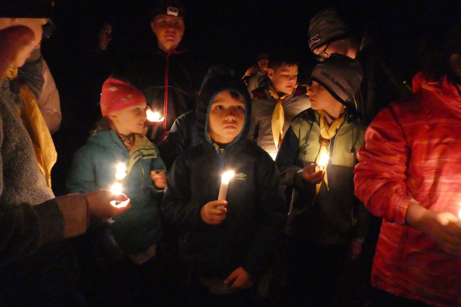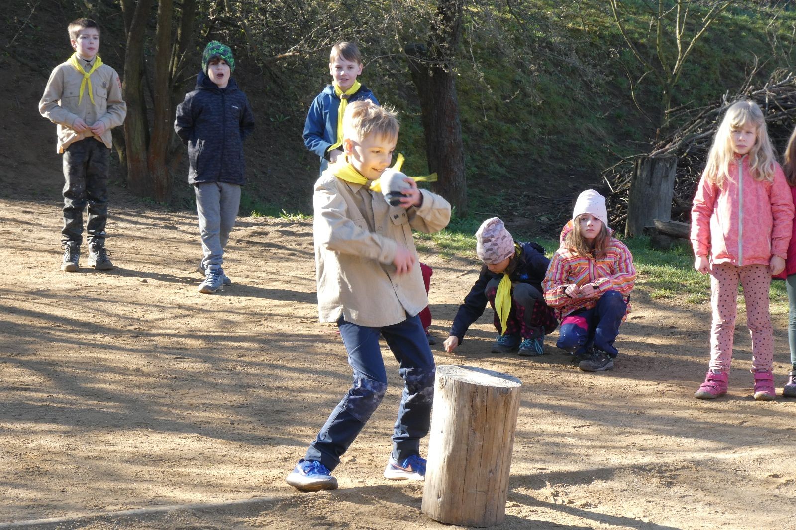 A na řadu přichází sliby. 10 světlušek, většina z Lasiček. Pak 8 vlčat, většina od Lachtanů. 4 skautky – 3 Sovičky a jedna Kudlanka. A skauti. Těch je 10 – 2 Vlci, 4 Sršni a 4 Kobři. Celkem 32 lidiček.
