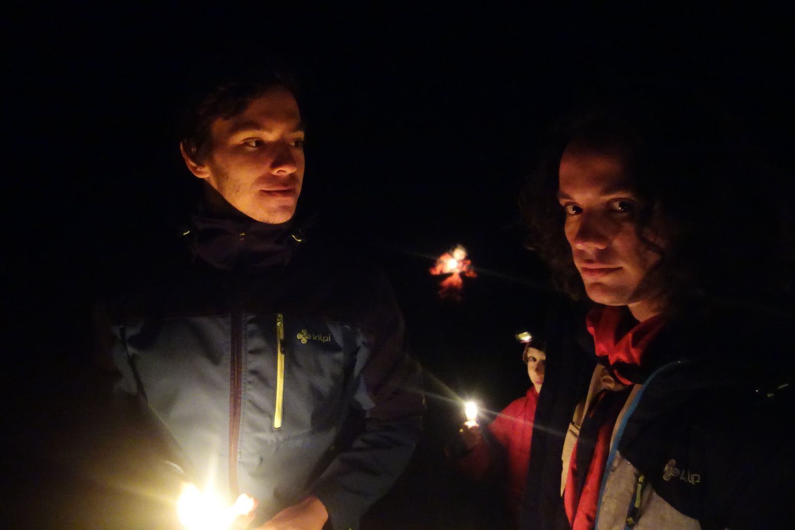 Cesta po tmě na Boudu bývá nejromantičtější. Dešťové mraky zmizely v dáli a cestu nám osvětluje srpek dorůstajícího měsíce. Sfoukávačka chybět nemůže.