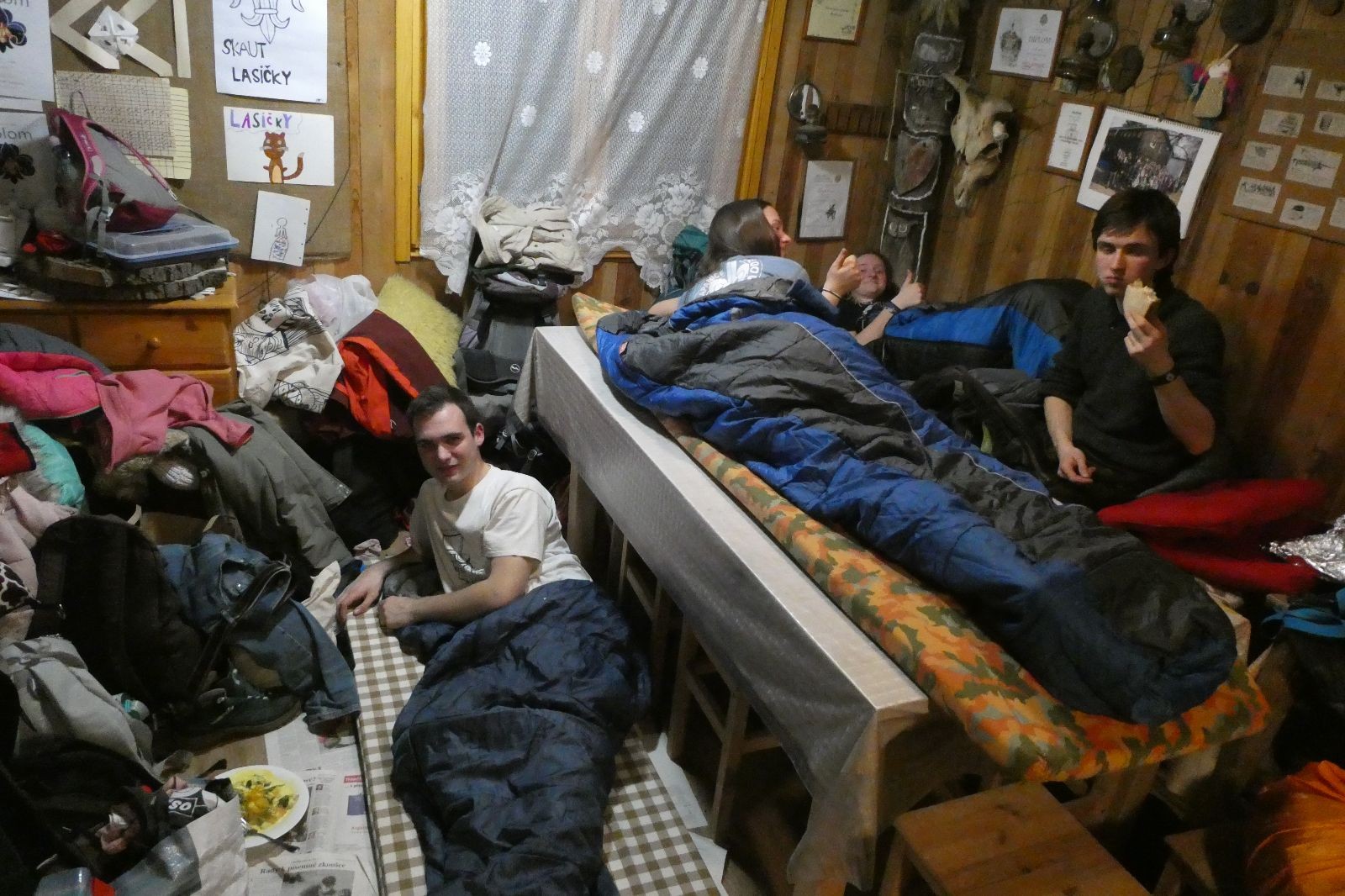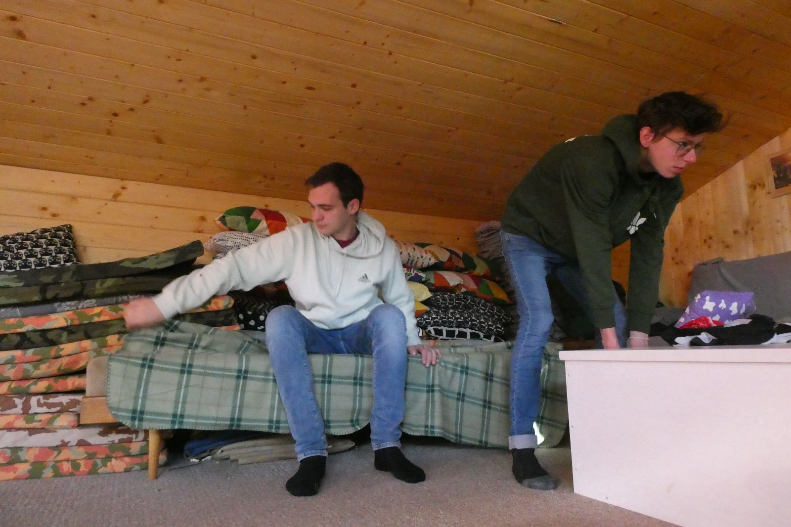 Přípravy probíhají už nějakou dobu před akcí. Renča objednává skautské košile pro zájemce, Rada Mladších si rozděluje a chystá program… V pátek večer pak chystáme v SaN Boudě v podkroví ležení z matrací.