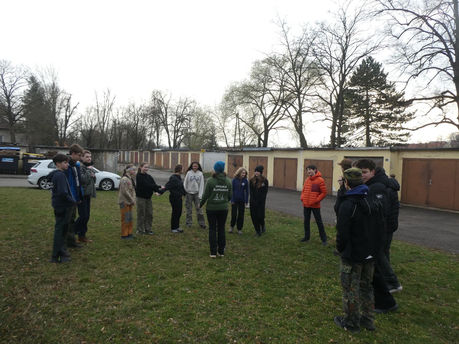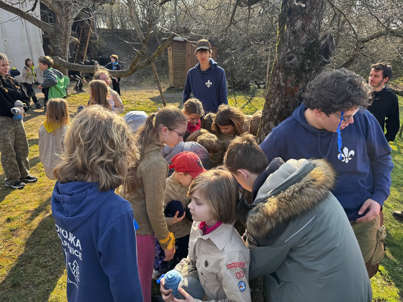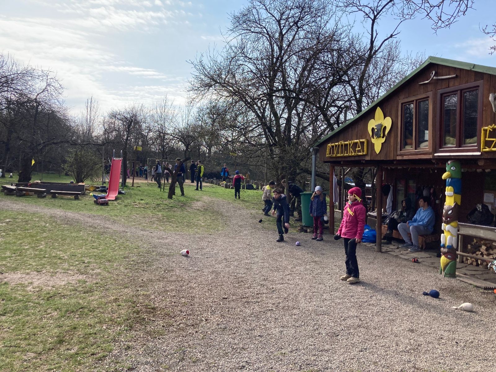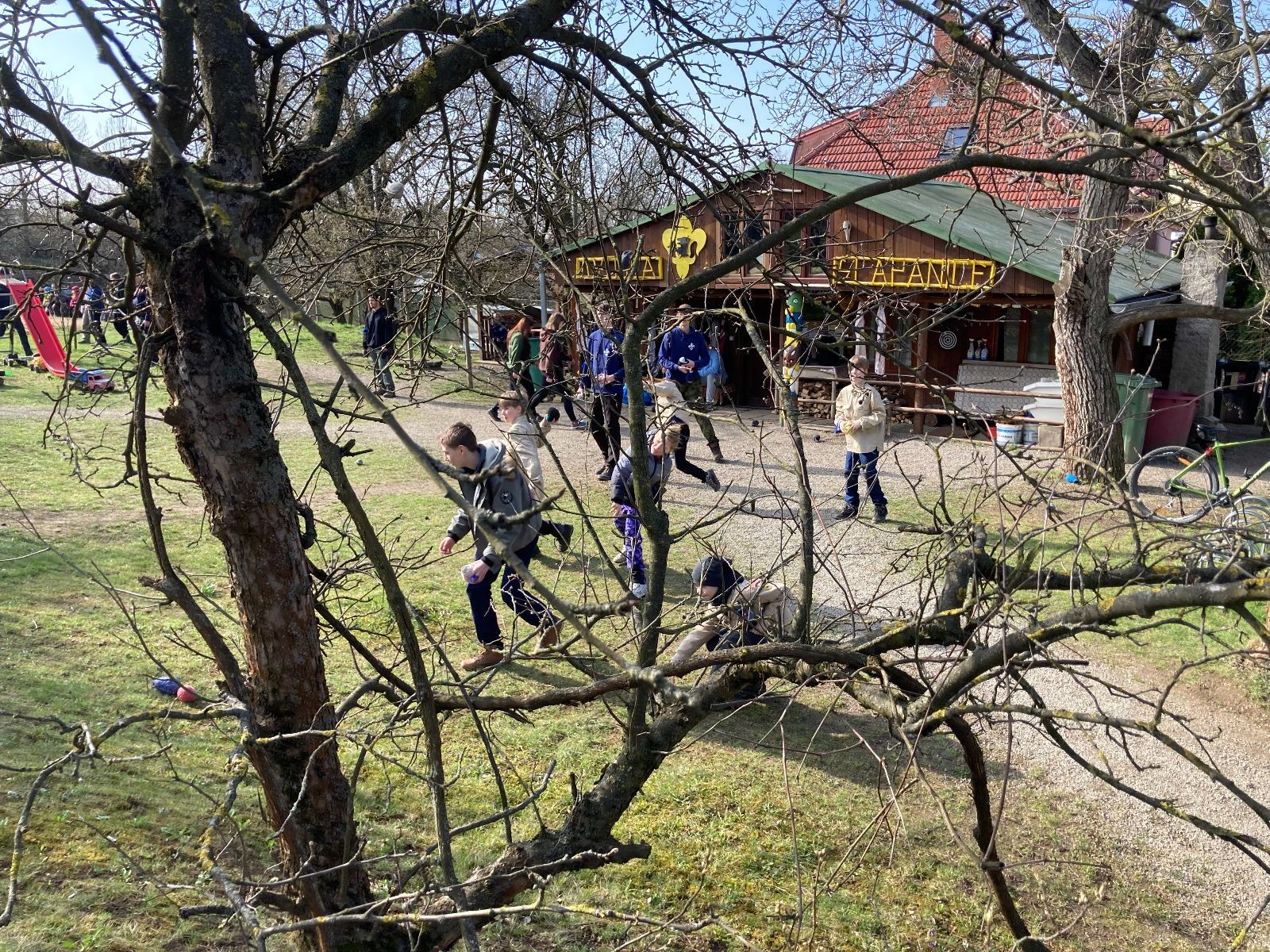 Sešli jsme se na Boudě v docela hojném počtu, ubytovali se (rozuměj rozložili spacáky) a po družinkách se vydali směrem Podolí. Tam proběhly klasické hry pod vedením Bětky a Tesáka s Kennym. Také jsme se tam všichni posilnili nějakou tou svačinkou.