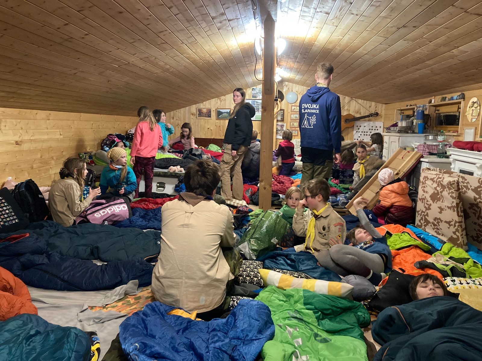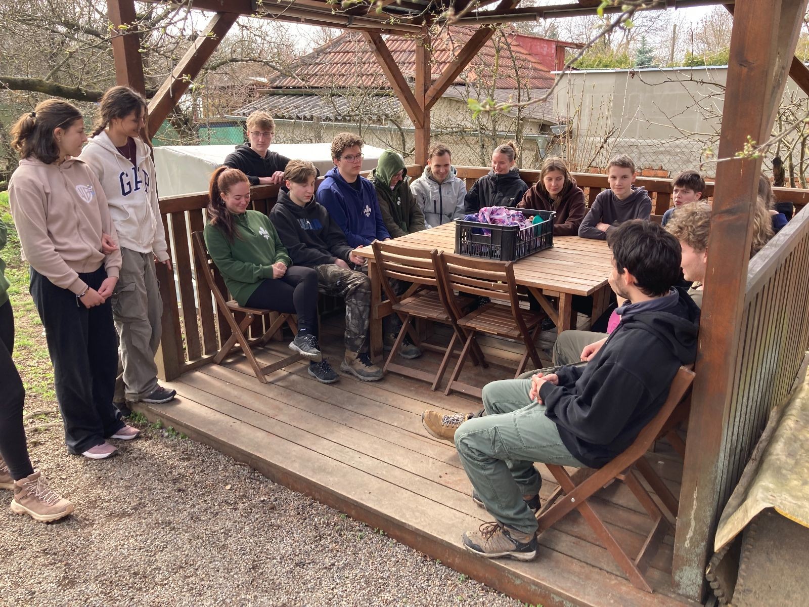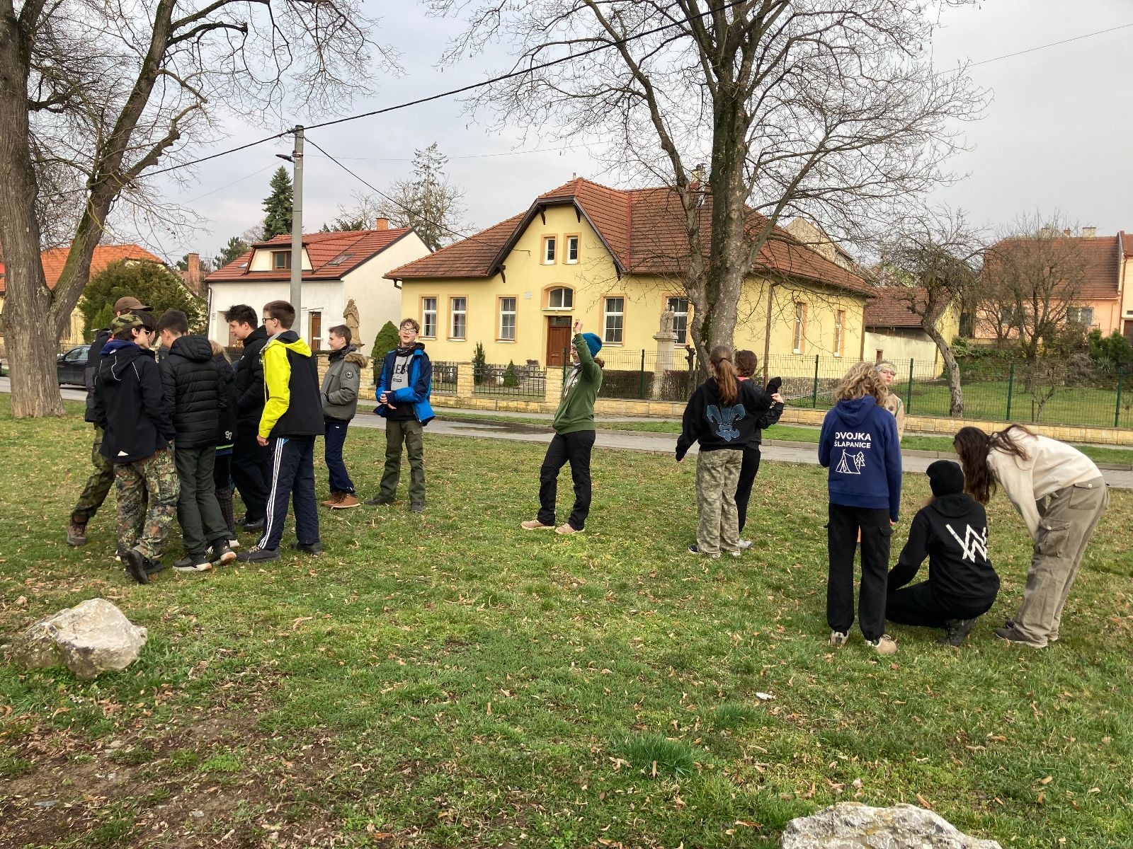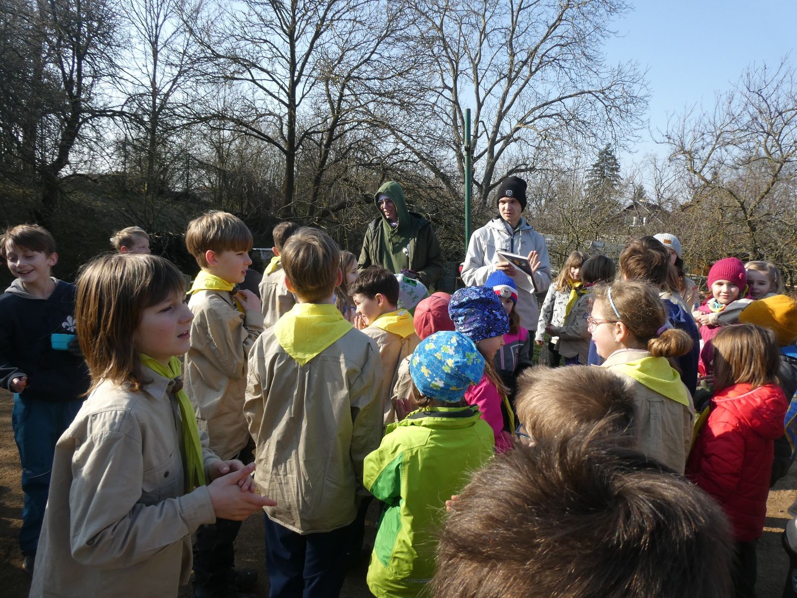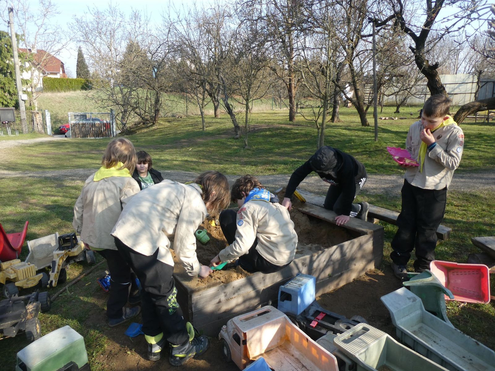 Sešli jsme se na Boudě v docela hojném počtu, ubytovali se (rozuměj rozložili spacáky) a po družinkách se vydali směrem Podolí. Tam proběhly klasické hry pod vedením Bětky a Tesáka s Kennym. Také jsme se tam všichni posilnili nějakou tou svačinkou.