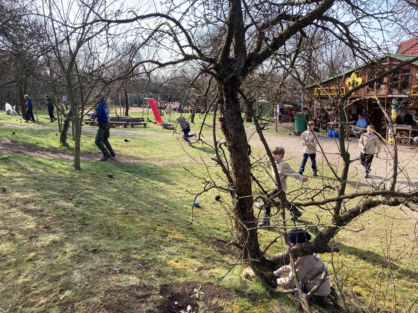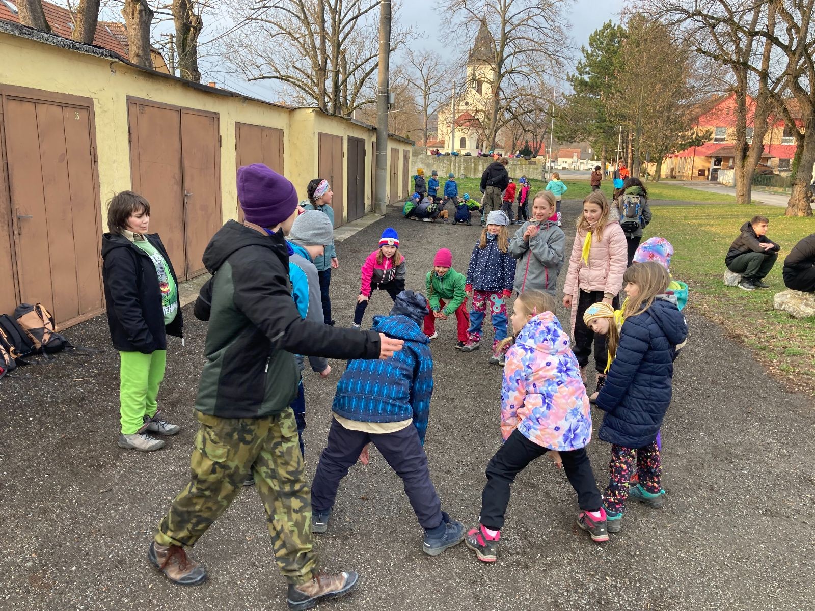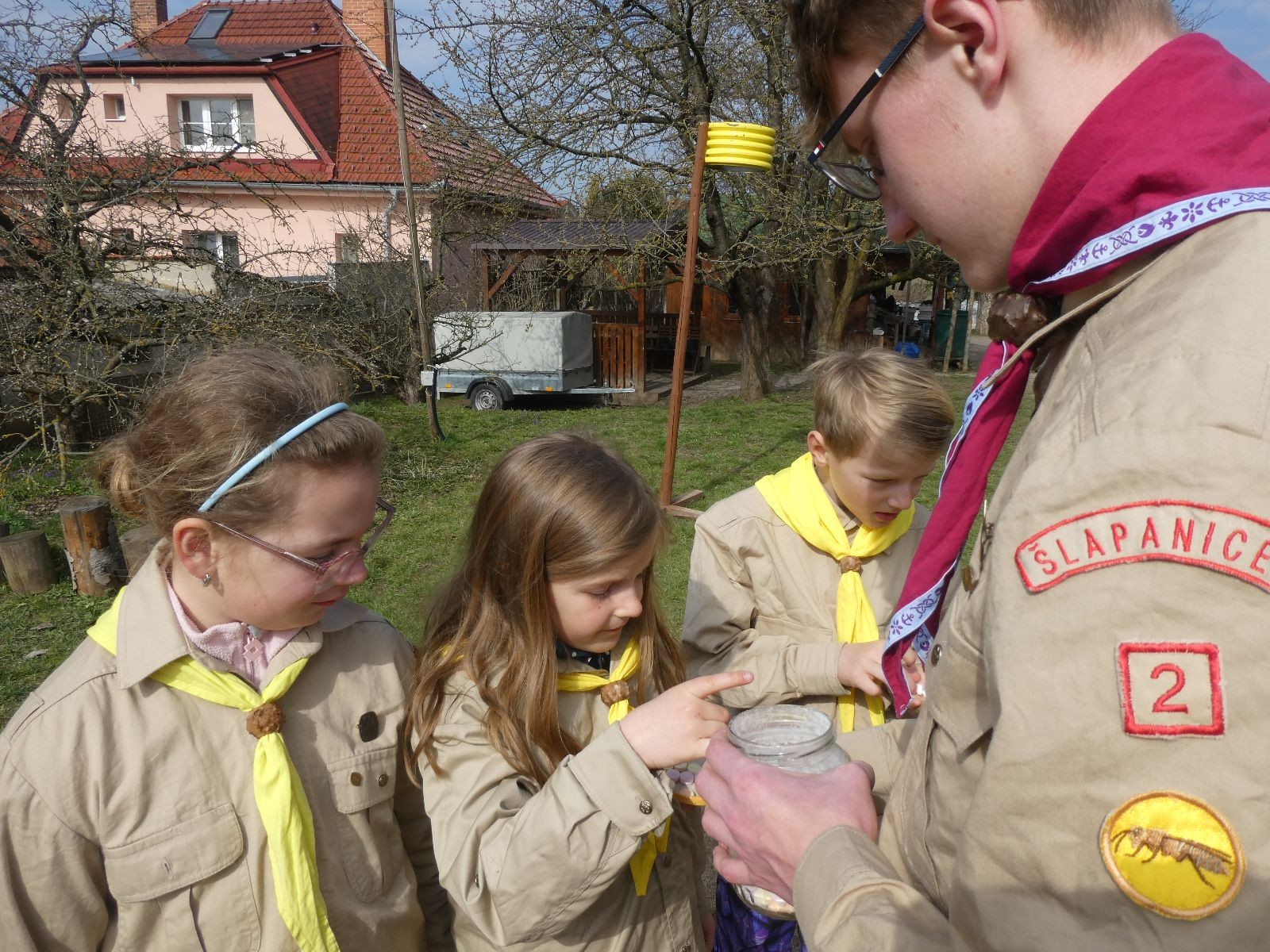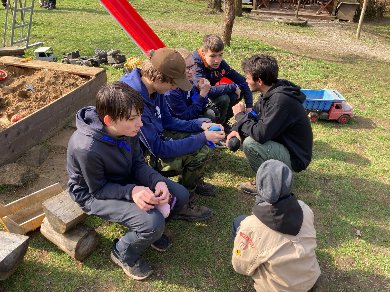Sešli jsme se na Boudě v docela hojném počtu, ubytovali se (rozuměj rozložili spacáky) a po družinkách se vydali směrem Podolí. Tam proběhly klasické hry pod vedením Bětky a Tesáka s Kennym. Také jsme se tam všichni posilnili nějakou tou svačinkou.