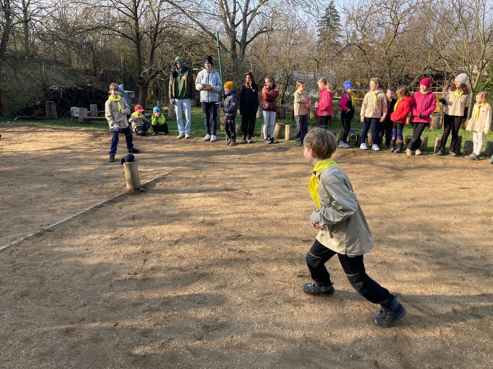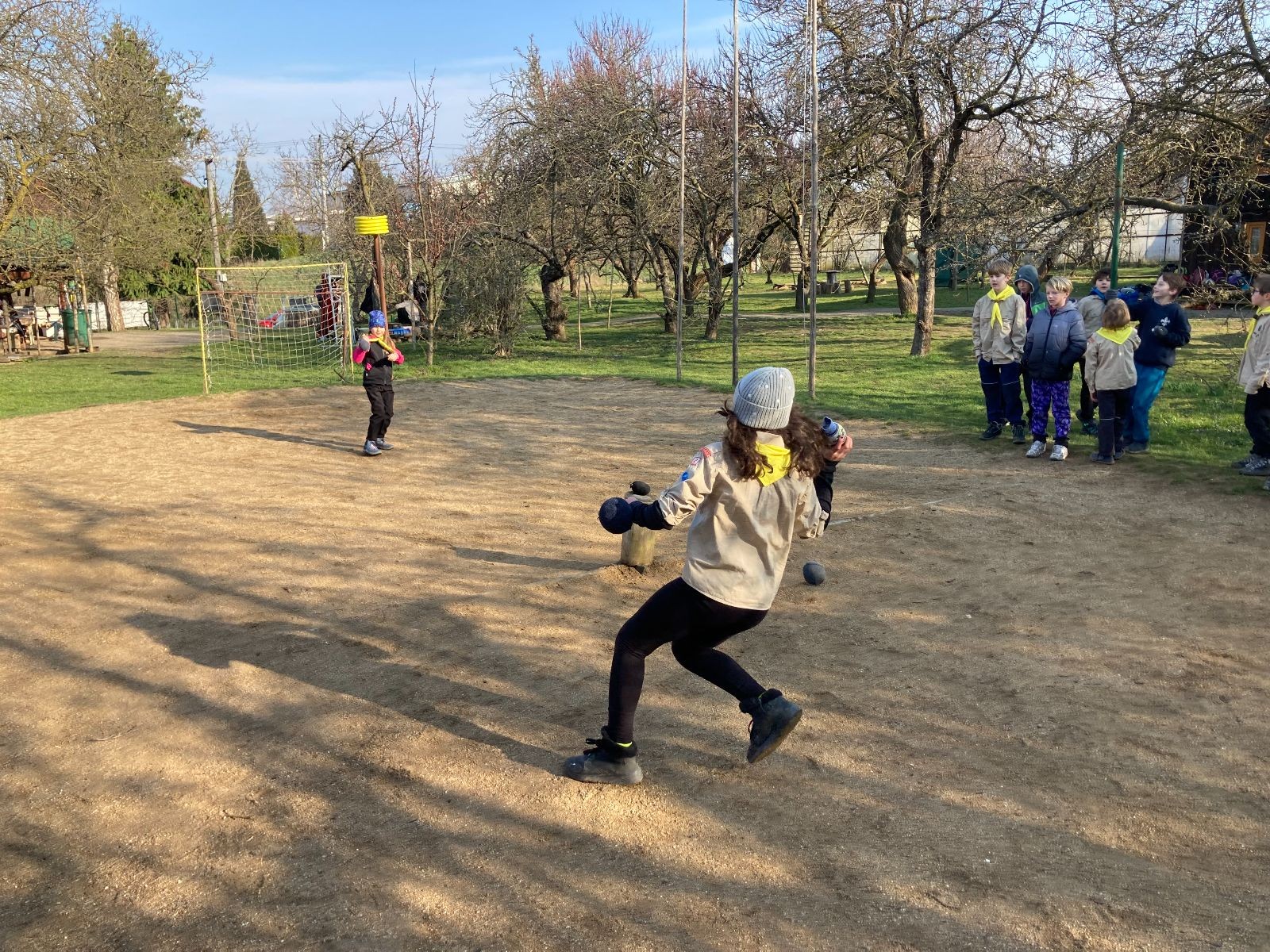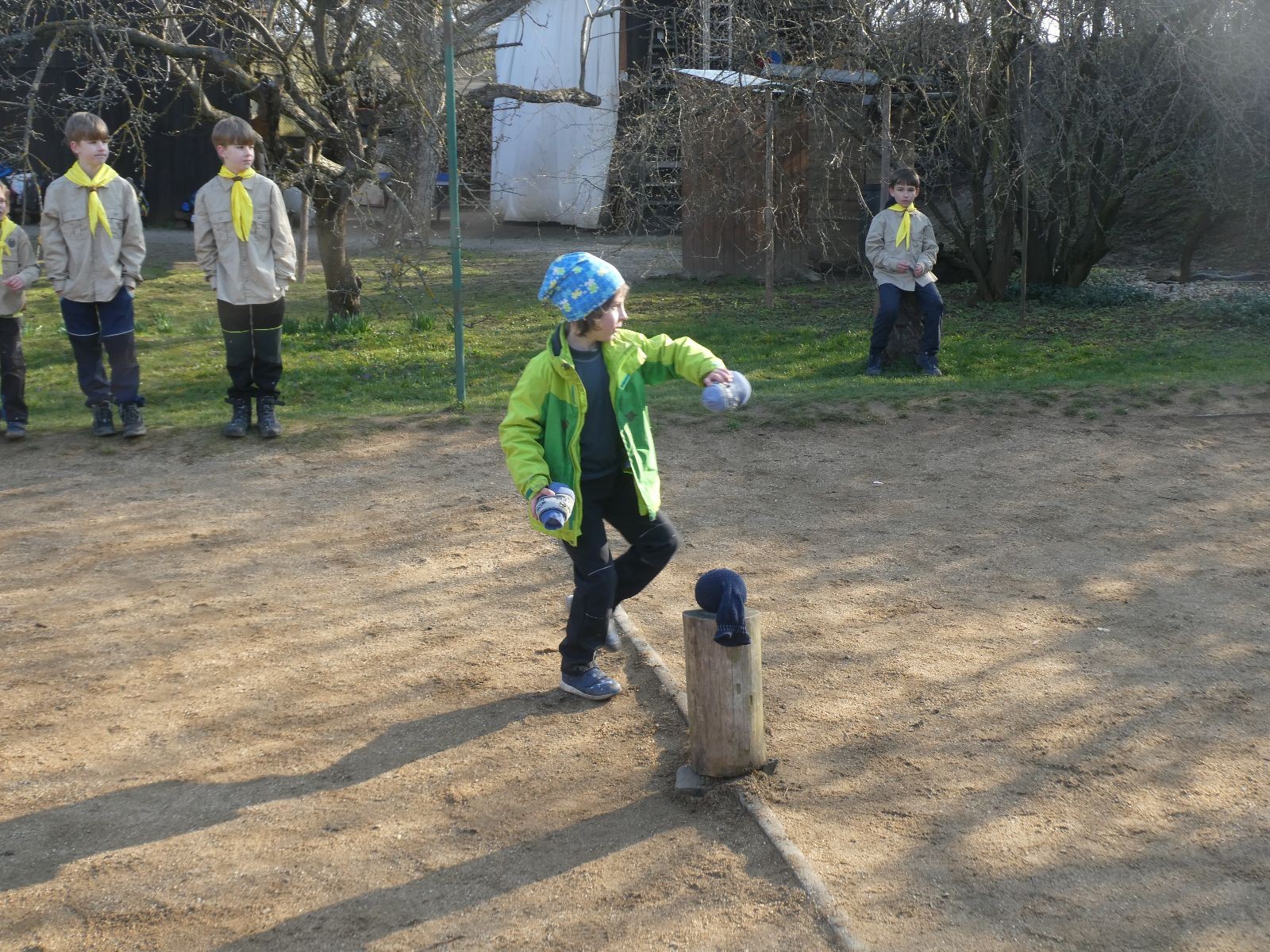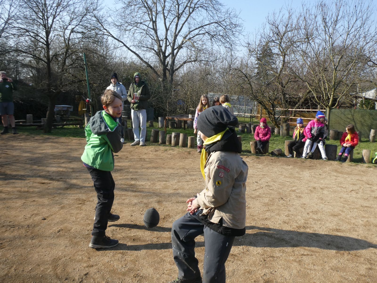 V neděli ráno mladší vstávají již kolem 6. hodiny. Tou dobou starší ve Trojce ještě tvrdě spí. Mladší si balí své věci a spacáky a pomalu nosí vše ven z Boudy. Před osmou se už začínají budit i starší a pomalu se vysouvají z regálků. Zatímco se ve Trojce snídá, Fanda a Spoke organizují na hřišti pro mladší děti turnaj 1 vs 1 s hadrovkami. Všichni se baví a zanedlouho na řadu přicházejí i starší. Fandí se o sto šest. I když je turnaj zajímavý, všichni se samozřejmě těší na vyvrcholení Vítání jara, bojovku.