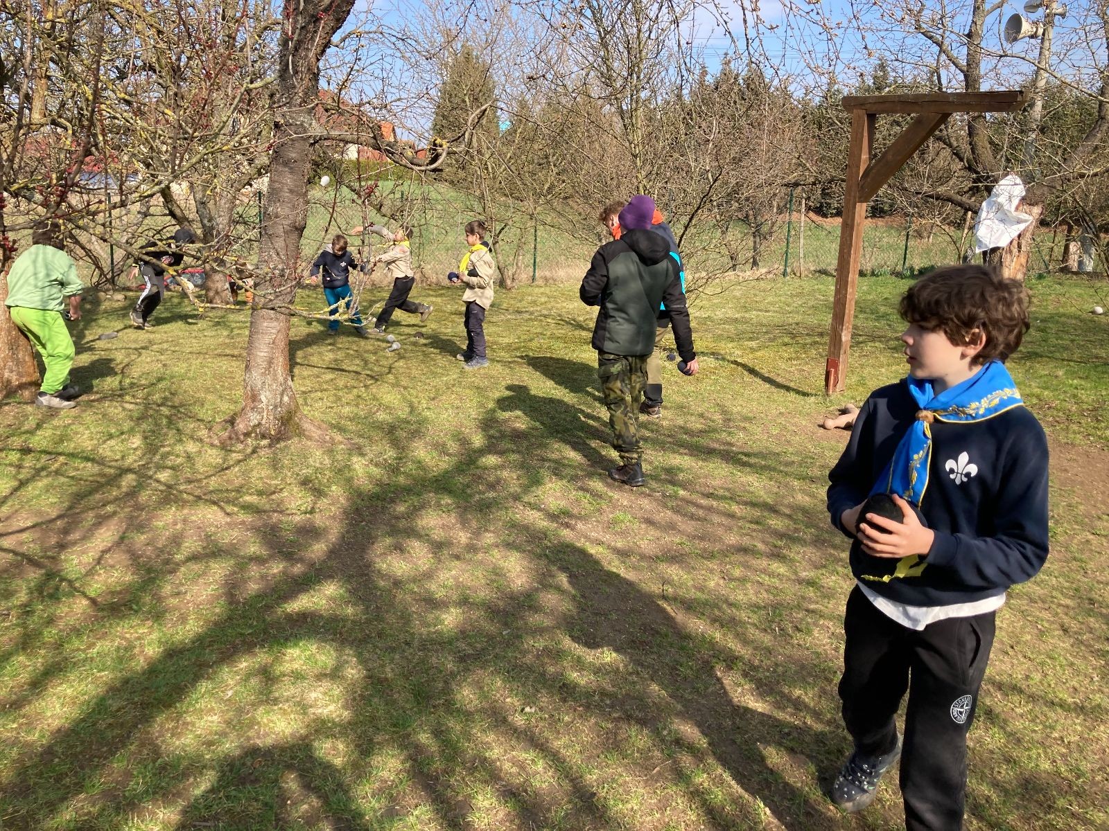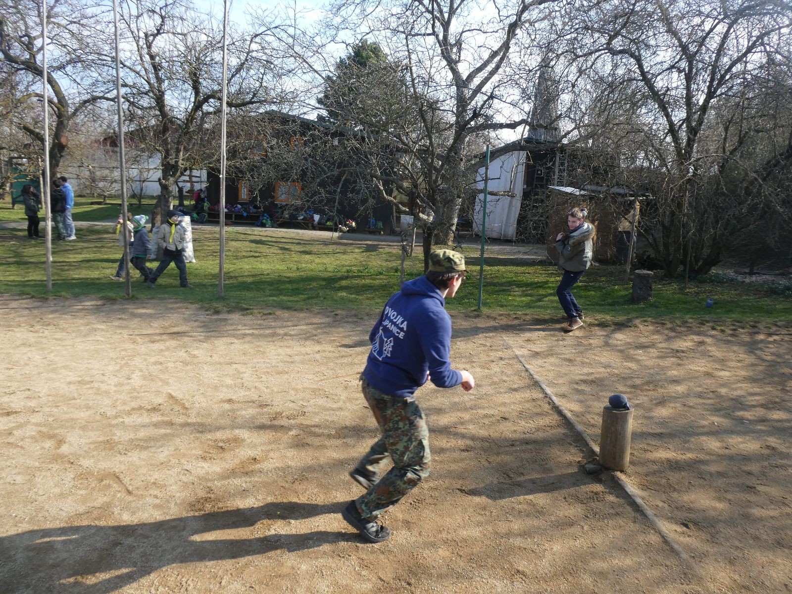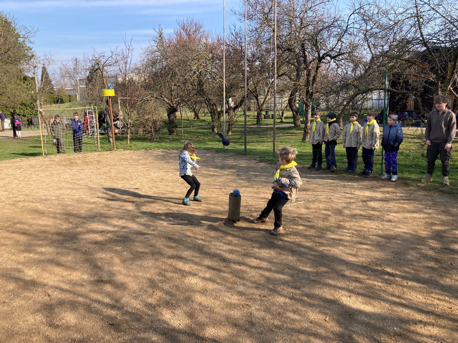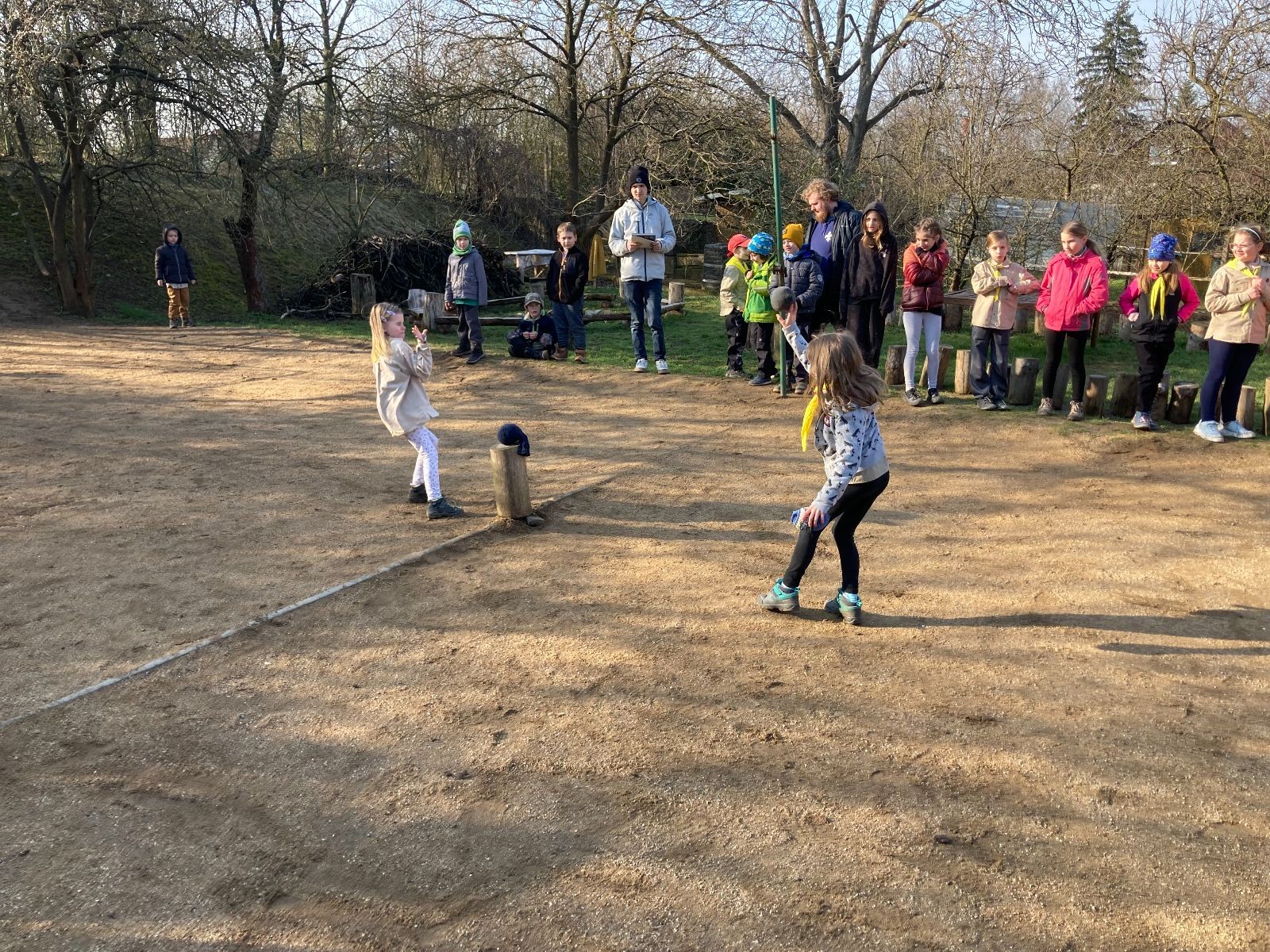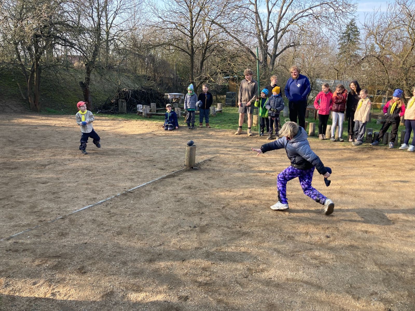 V neděli ráno mladší vstávají již kolem 6. hodiny. Tou dobou starší ve Trojce ještě tvrdě spí. Mladší si balí své věci a spacáky a pomalu nosí vše ven z Boudy. Před osmou se už začínají budit i starší a pomalu se vysouvají z regálků. Zatímco se ve Trojce snídá, Fanda a Spoke organizují na hřišti pro mladší děti turnaj 1 vs 1 s hadrovkami. Všichni se baví a zanedlouho na řadu přicházejí i starší. Fandí se o sto šest. I když je turnaj zajímavý, všichni se samozřejmě těší na vyvrcholení Vítání jara, bojovku.