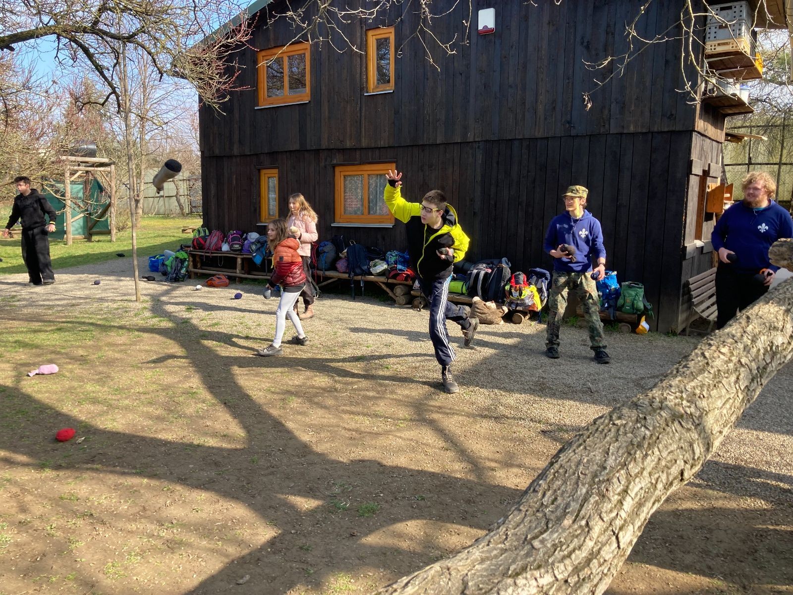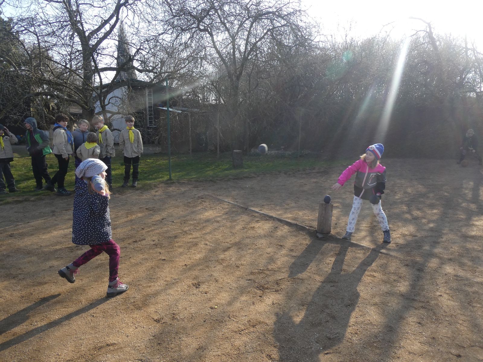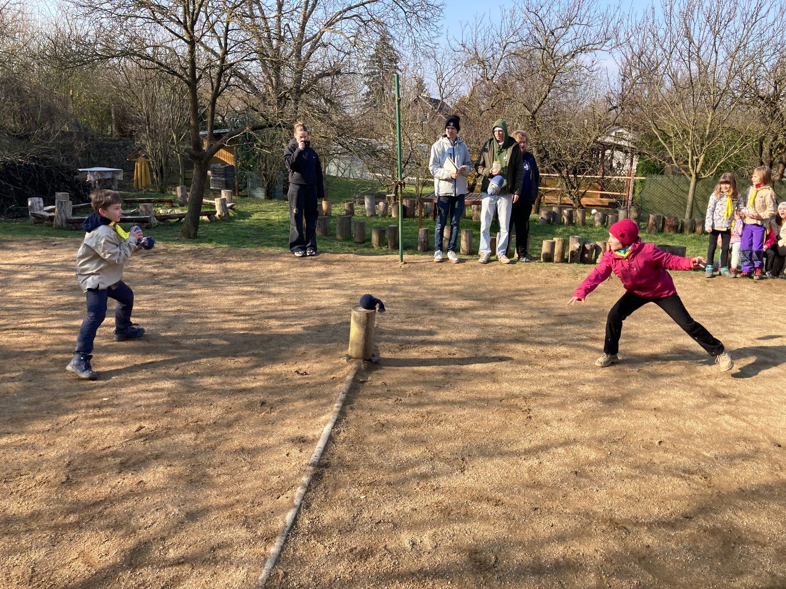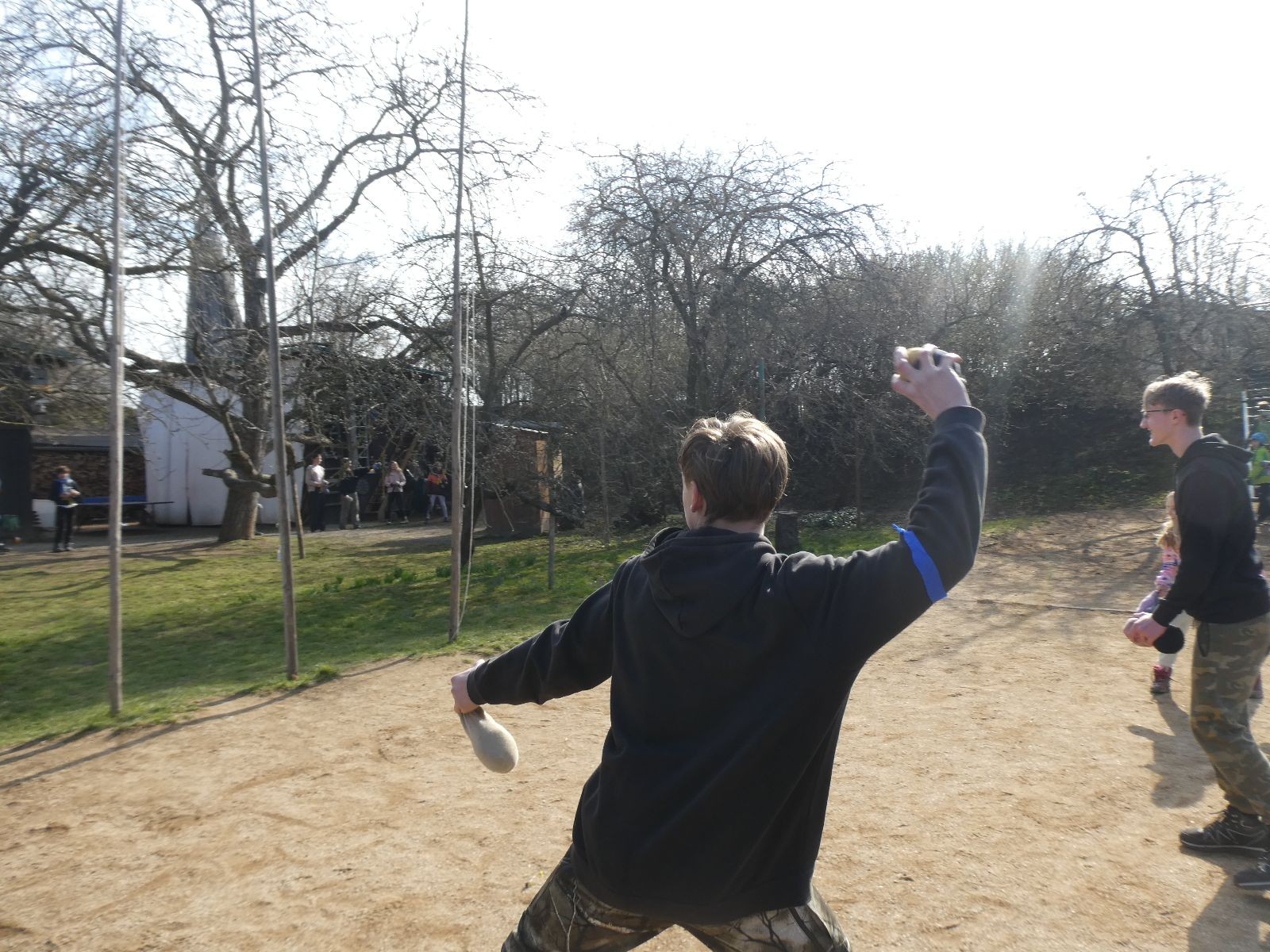 V neděli ráno mladší vstávají již kolem 6. hodiny. Tou dobou starší ve Trojce ještě tvrdě spí. Mladší si balí své věci a spacáky a pomalu nosí vše ven z Boudy. Před osmou se už začínají budit i starší a pomalu se vysouvají z regálků. Zatímco se ve Trojce snídá, Fanda a Spoke organizují na hřišti pro mladší děti turnaj 1 vs 1 s hadrovkami. Všichni se baví a zanedlouho na řadu přicházejí i starší. Fandí se o sto šest. I když je turnaj zajímavý, všichni se samozřejmě těší na vyvrcholení Vítání jara, bojovku.