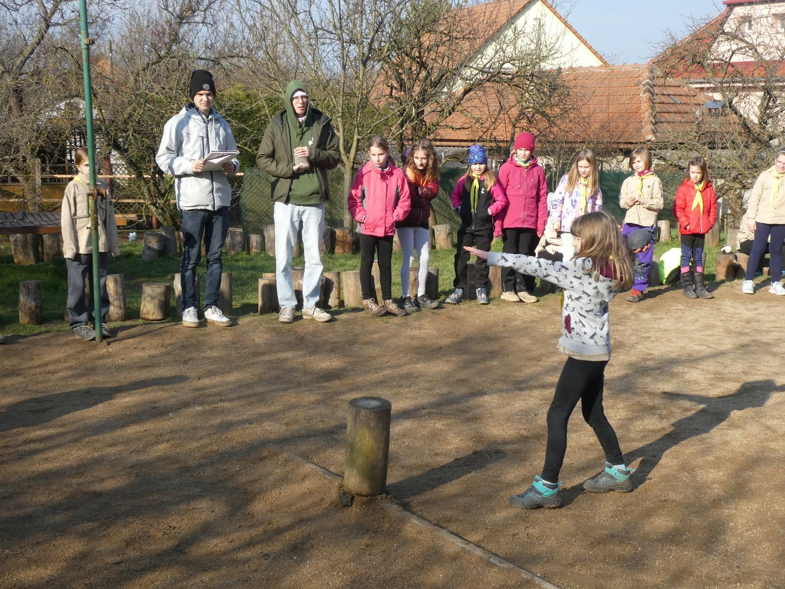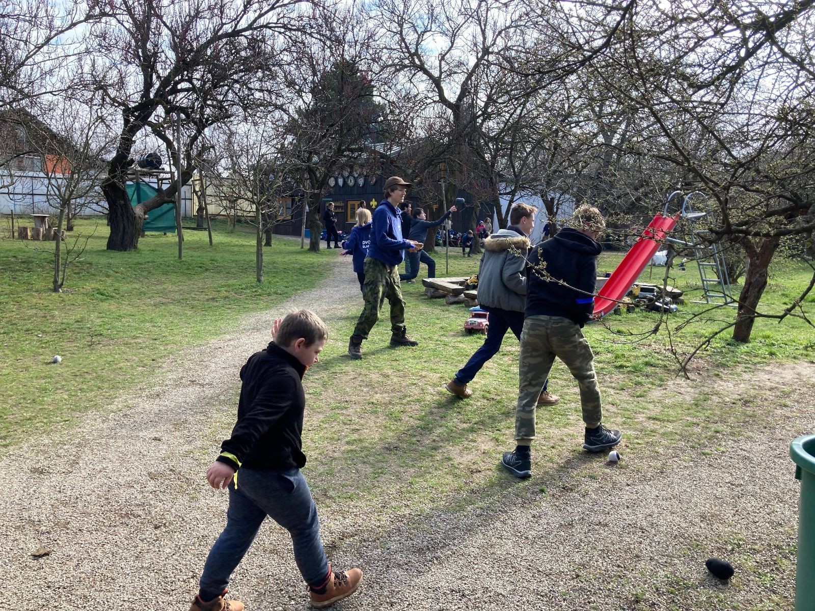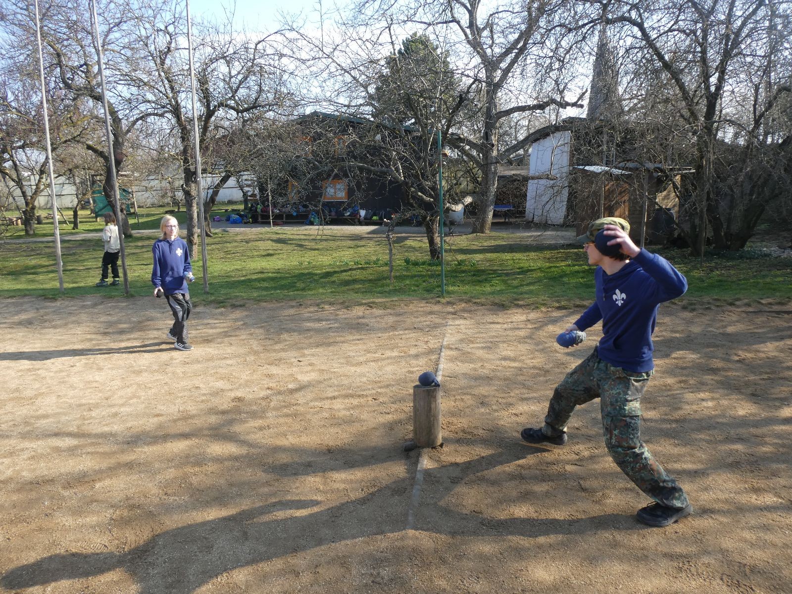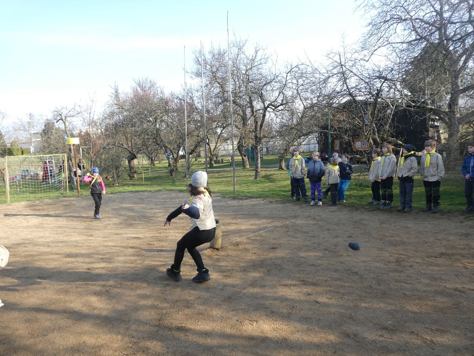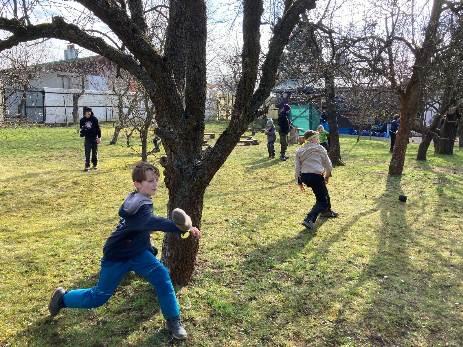 V neděli ráno mladší vstávají již kolem 6. hodiny. Tou dobou starší ve Trojce ještě tvrdě spí. Mladší si balí své věci a spacáky a pomalu nosí vše ven z Boudy. Před osmou se už začínají budit i starší a pomalu se vysouvají z regálků. Zatímco se ve Trojce snídá, Fanda a Spoke organizují na hřišti pro mladší děti turnaj 1 vs 1 s hadrovkami. Všichni se baví a zanedlouho na řadu přicházejí i starší. Fandí se o sto šest. I když je turnaj zajímavý, všichni se samozřejmě těší na vyvrcholení Vítání jara, bojovku.
