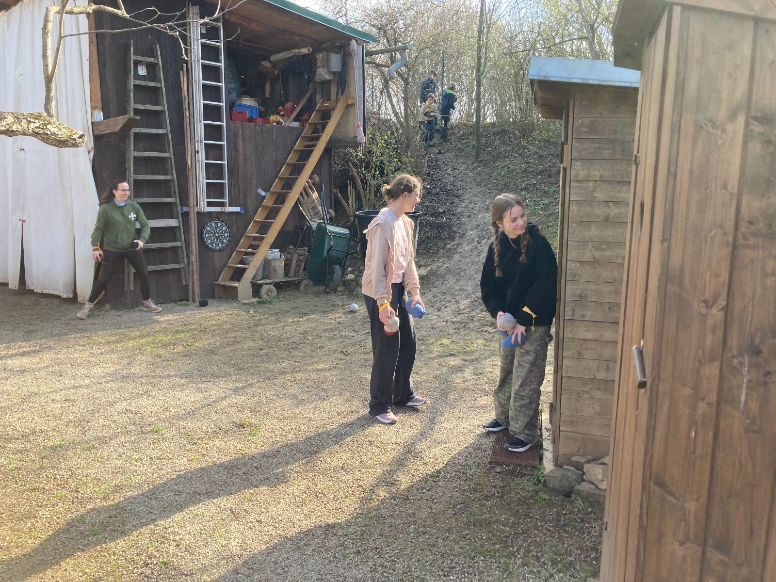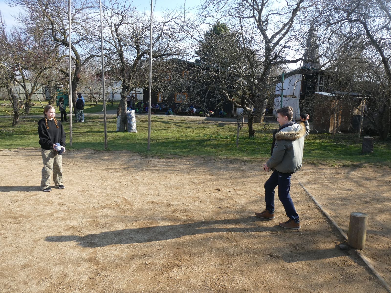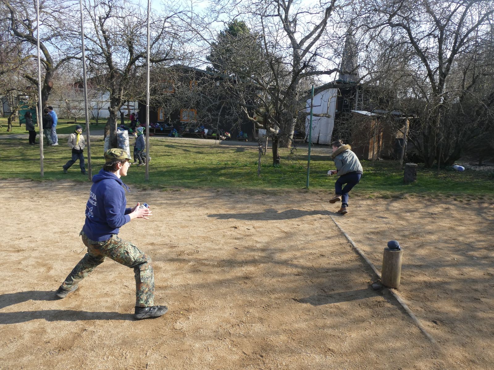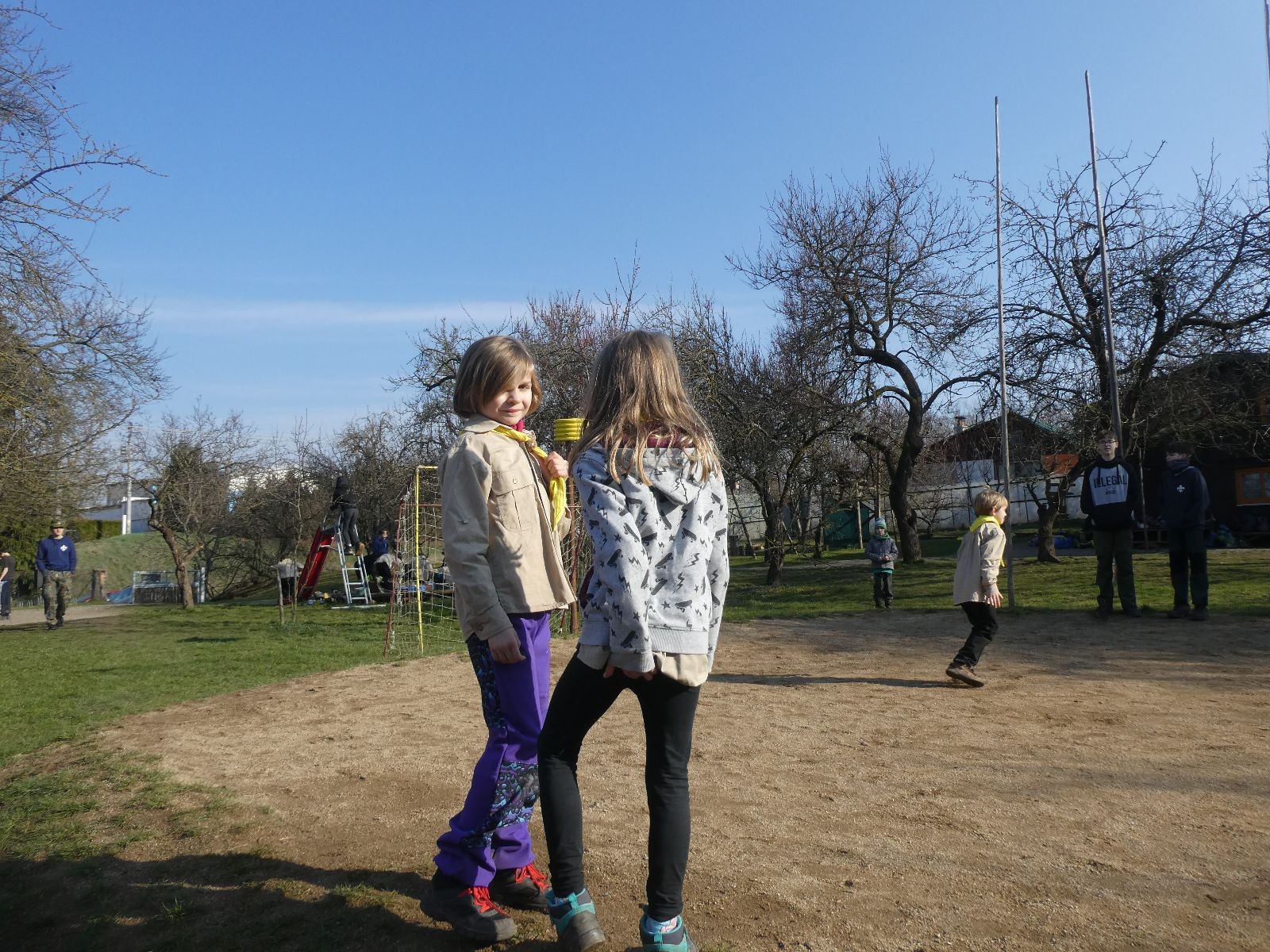 V neděli ráno mladší vstávají již kolem 6. hodiny. Tou dobou starší ve Trojce ještě tvrdě spí. Mladší si balí své věci a spacáky a pomalu nosí vše ven z Boudy. Před osmou se už začínají budit i starší a pomalu se vysouvají z regálků. Zatímco se ve Trojce snídá, Fanda a Spoke organizují na hřišti pro mladší děti turnaj 1 vs 1 s hadrovkami. Všichni se baví a zanedlouho na řadu přicházejí i starší. Fandí se o sto šest. I když je turnaj zajímavý, všichni se samozřejmě těší na vyvrcholení Vítání jara, bojovku.