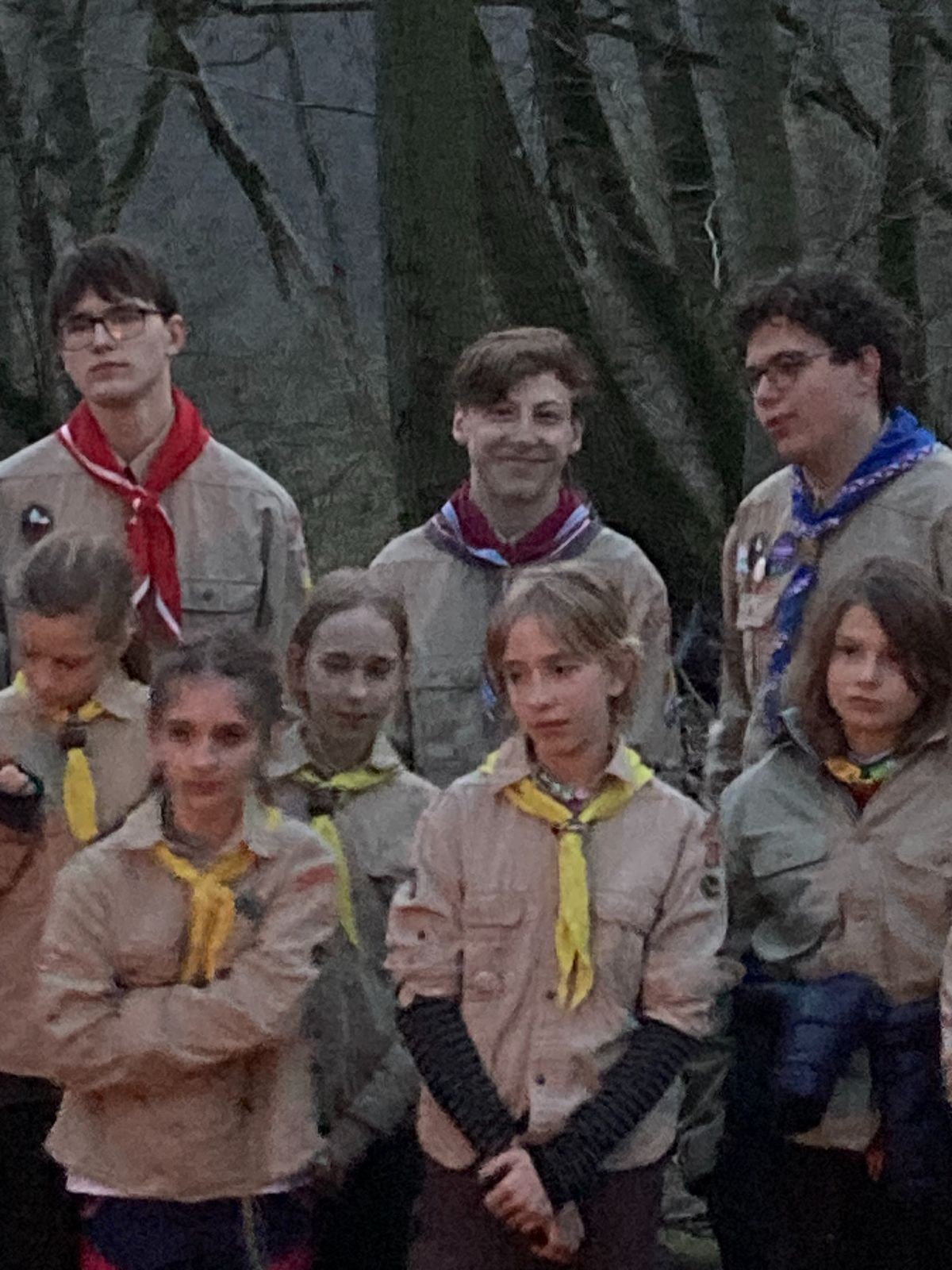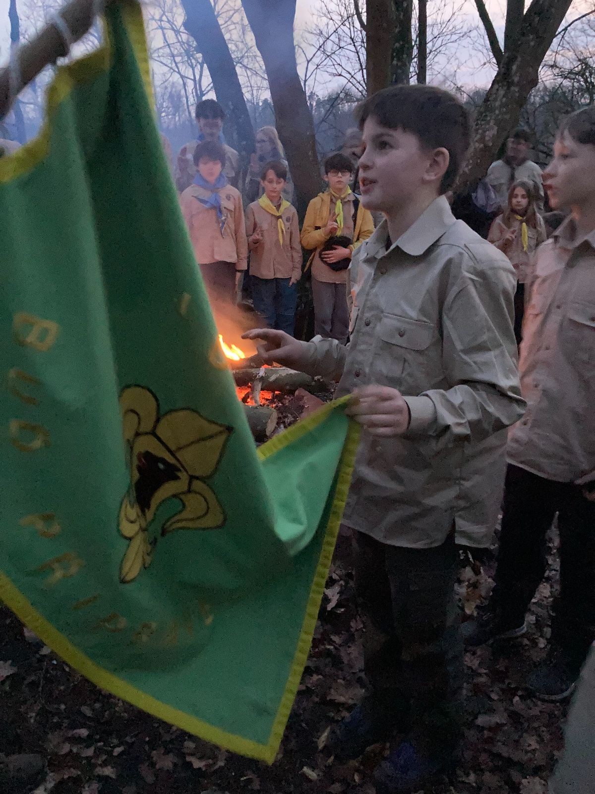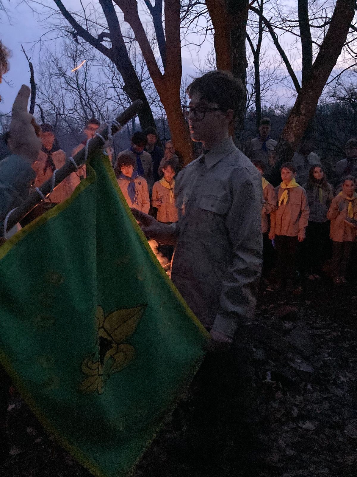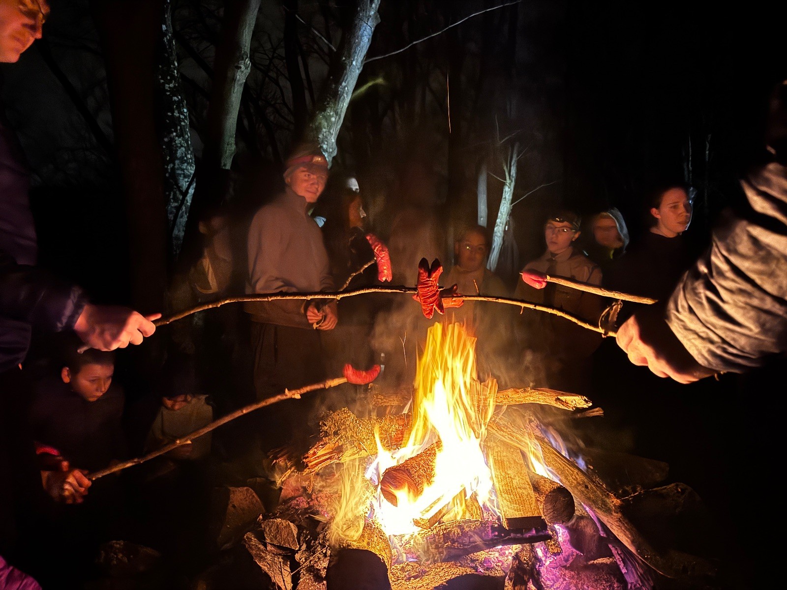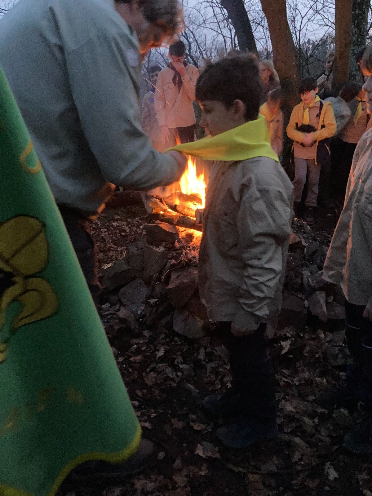 Pak už jsme vyrazili rovnou na zříceninu Horákovského hradu.Tradiční vlajkovanou jsme tentokrát vynechali, abychom se před slavnostním ohněm všichni nevyváleli v blátě. Letos u něj svůj slib skládalo 14 vlčat, 7 světlušek a 2 skauti. Také se rozdalo pár bobříků odvahy do družinky Lasiček, odborky bosých nohou a nočního bdění pro Sovičky a jedna odborka Tetrisáře pro Bětku. Potom byl slavnostní oheň prohlášen za oheň užitkový, tak jsme si na něm všichni opekli nějaký ten špekáček, zazpívali si s Jurovou kytarou a nechyběla ani každoroční jarní přáníčka.