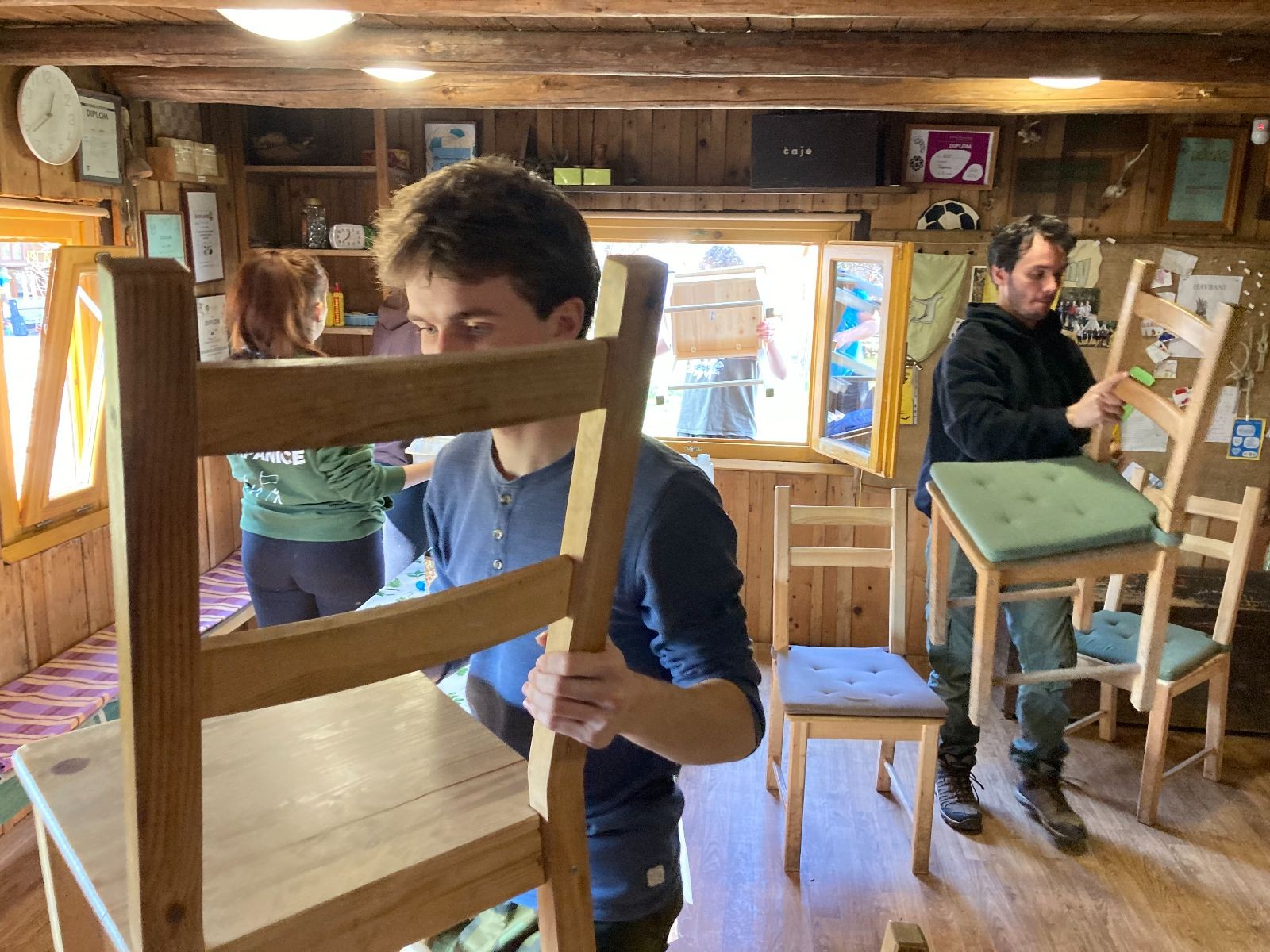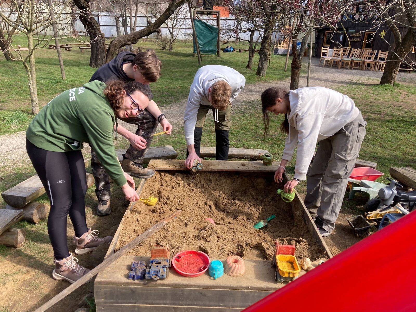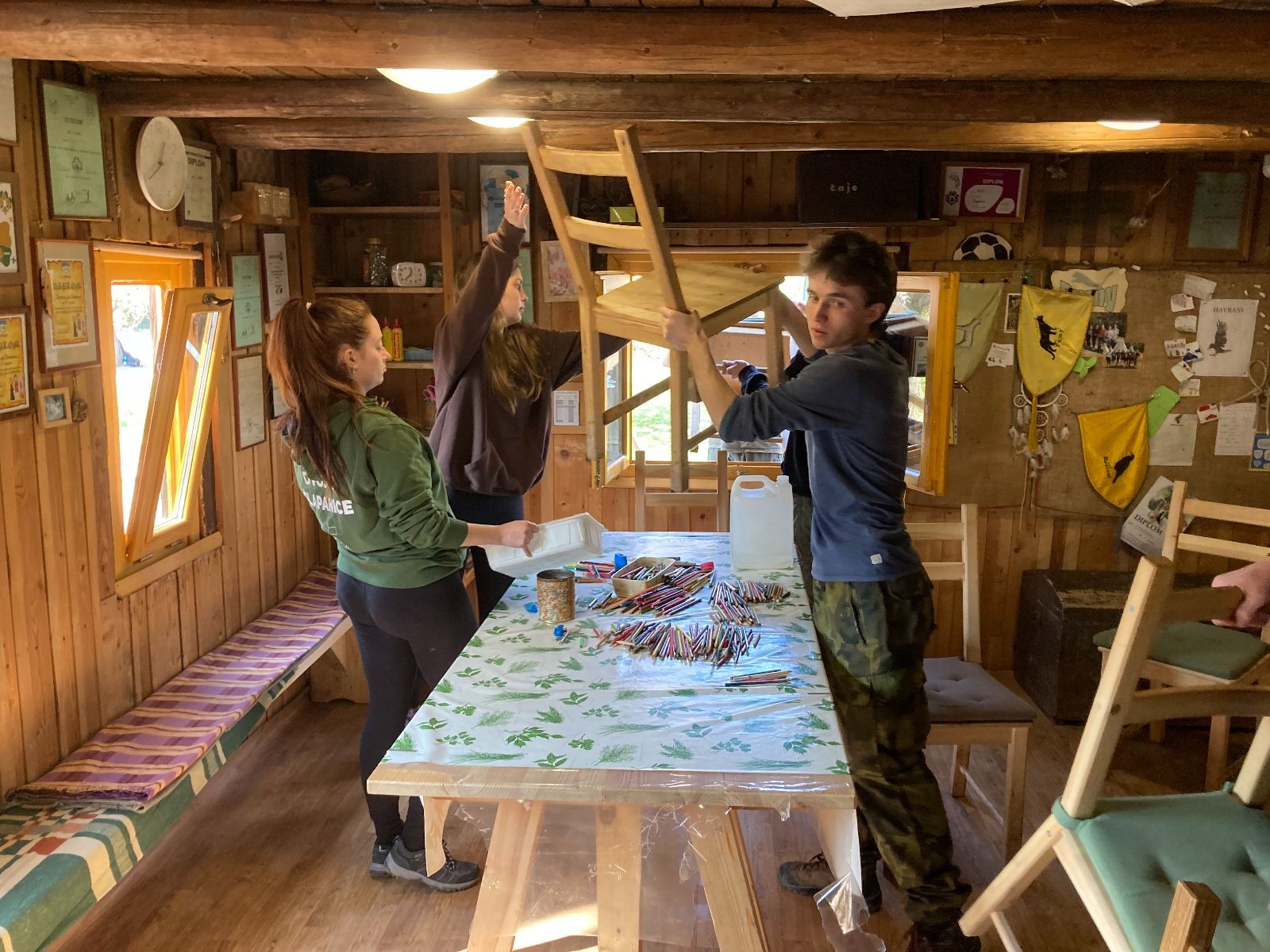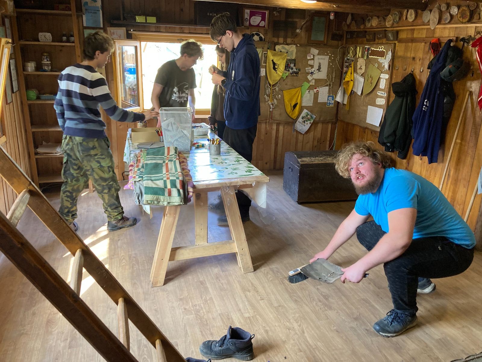 Starší a vedoucí ale ještě nikam neodcházejí. Čeká je totiž velmi oblíbená aktivita DILKÚ ÍNRAJ (čti zprava). Rozdělujeme se na skupinky a utíká to docela rychle. Umývají se okna, dělá se pořádek v podkroví, vytírají se podlahy, uklízí se zahrada nebo dokonce i pískoviště. Někteří mají dříve hotovo a odcházejí kolem dvanácté, většina vedoucích však zůstává do 13 hodin a dolaďuje poslední detaily. Poté se však loučí i vedoucí a odcházejí domů.