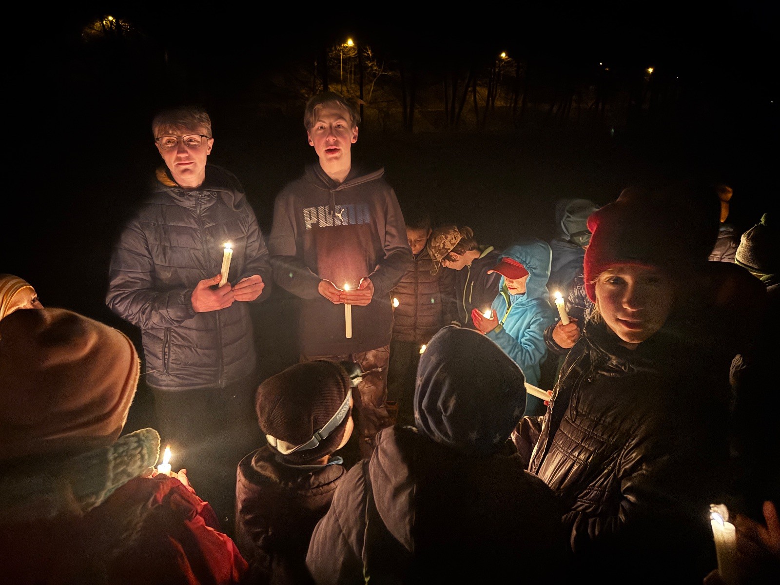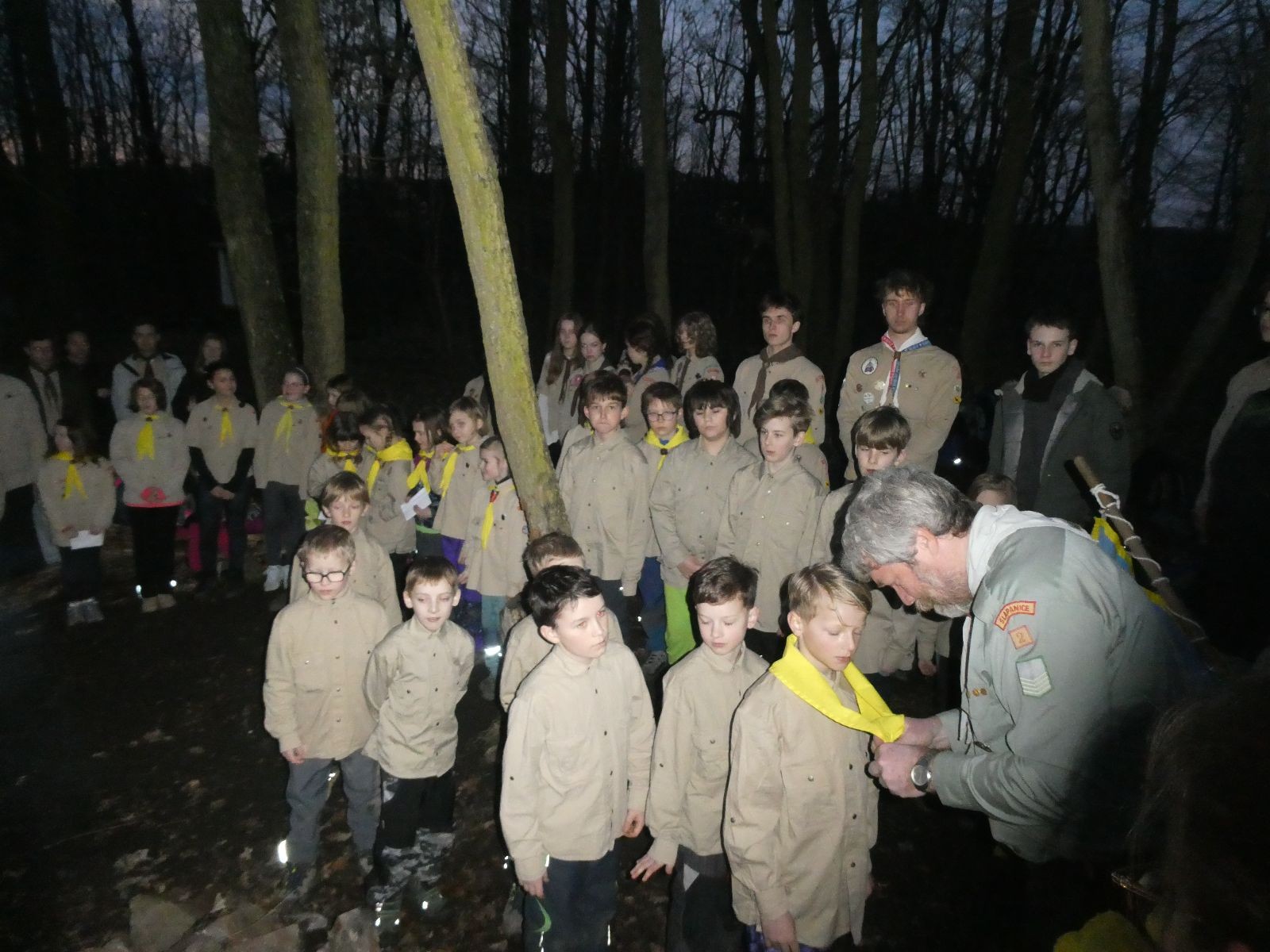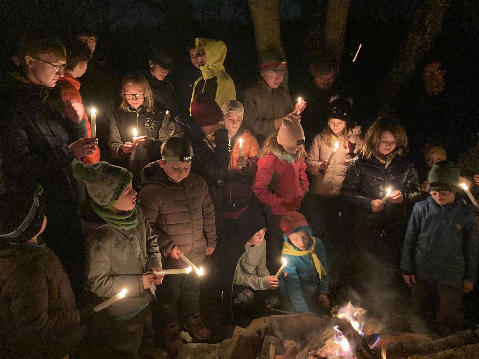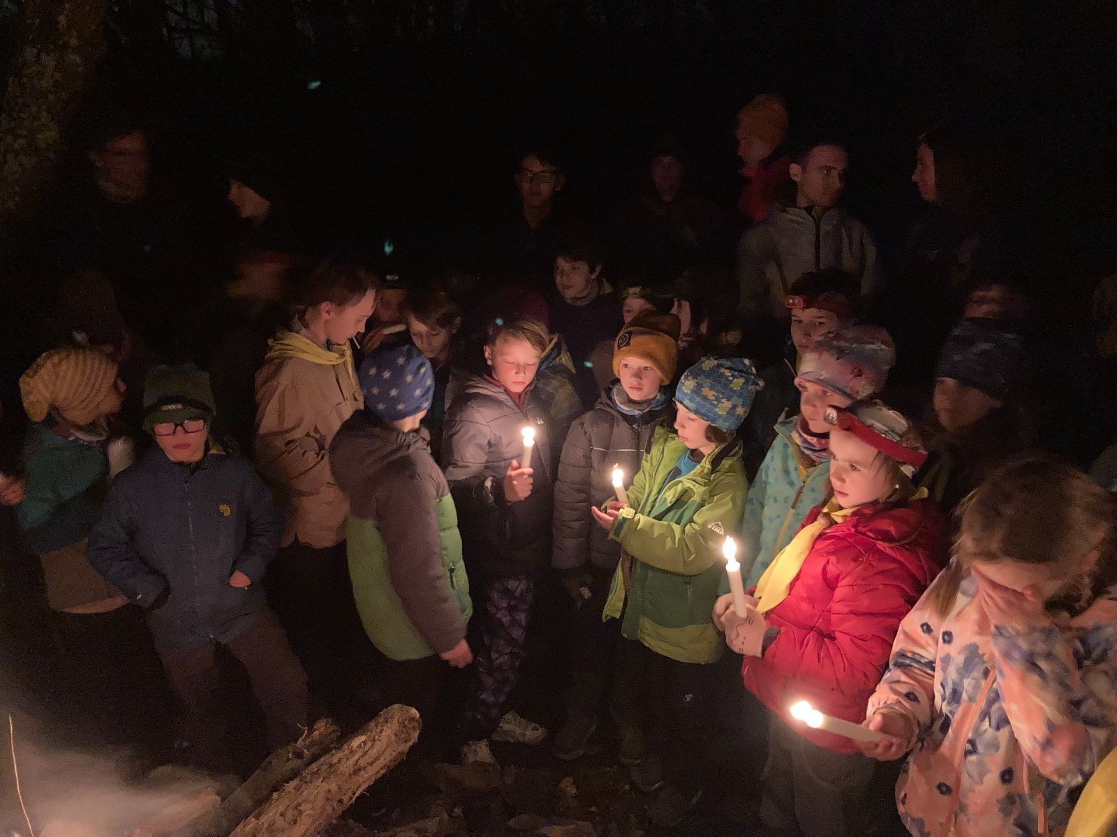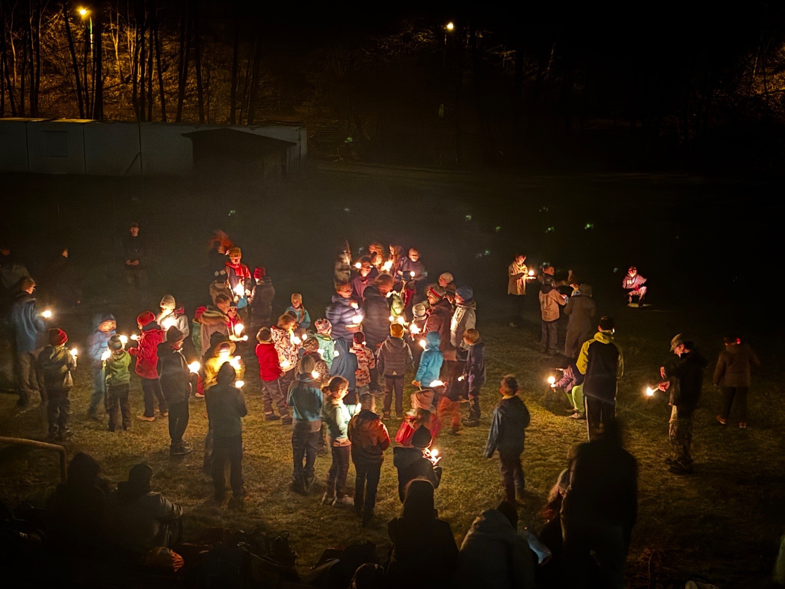 Poté jsme se už pomalu po tmě, nebo skoro po tmě (některým Lasičkám se povedlo donést si plamínek svíčky až do Šlapanic), vydali zpátky do naší vyhřáté Boudy. Po cestě samozřejmě nesměla chybět ani zastávka na sfoukávanou, kdy jednou vyhrál tým pod vedením Kapra, jednou tým pod vedením Vydrýska a poslední hru jsme dali všichni proti všem. Poslední část cesty pak utekla opravdu rychle a všichni jsme se už jen těšili jak se svýma uondanýma nožkama zalezeme do spacáků.