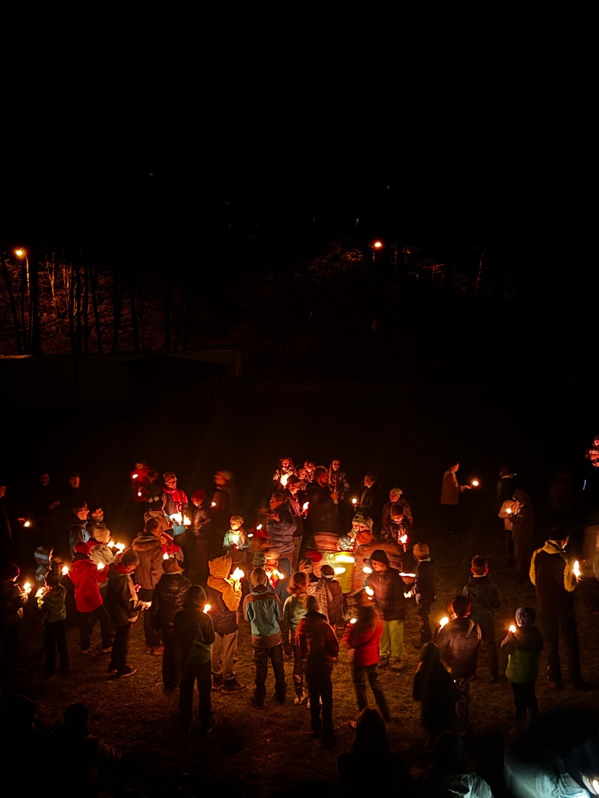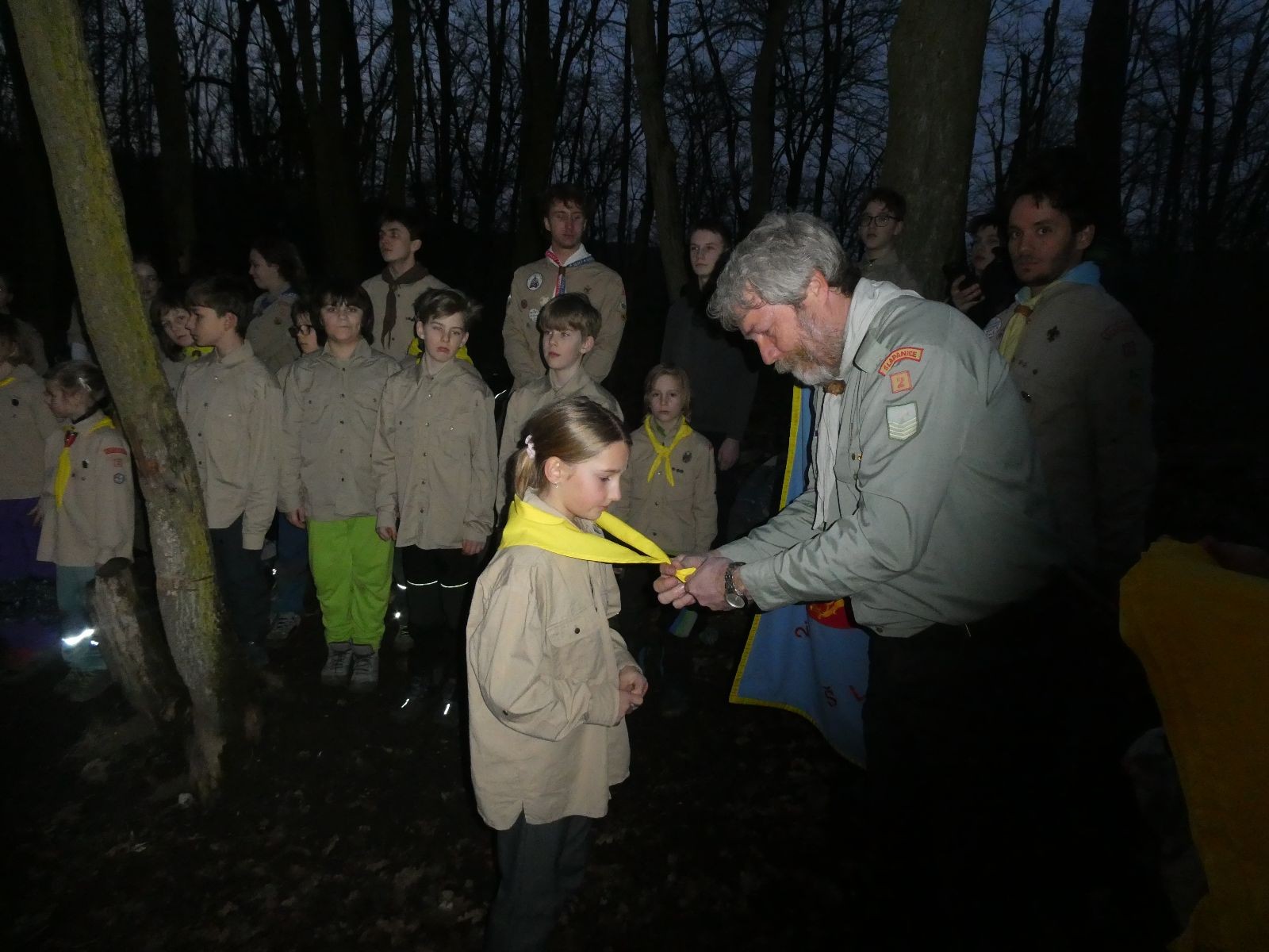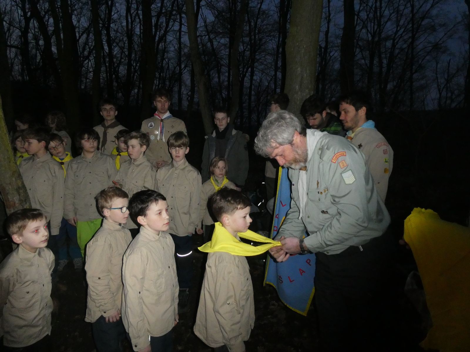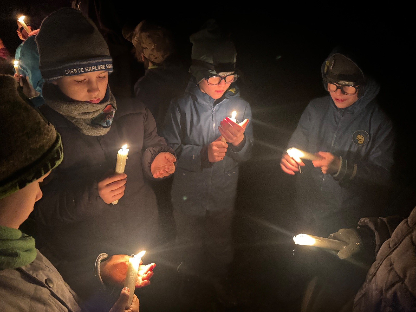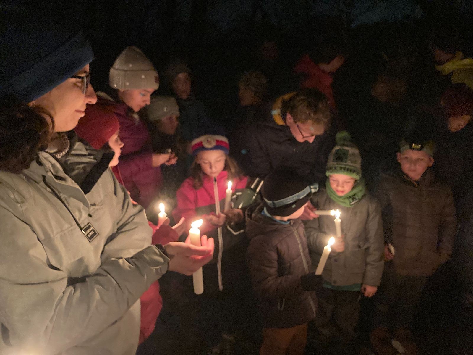 Poté jsme se už pomalu po tmě, nebo skoro po tmě (některým Lasičkám se povedlo donést si plamínek svíčky až do Šlapanic), vydali zpátky do naší vyhřáté Boudy. Po cestě samozřejmě nesměla chybět ani zastávka na sfoukávanou, kdy jednou vyhrál tým pod vedením Kapra, jednou tým pod vedením Vydrýska a poslední hru jsme dali všichni proti všem. Poslední část cesty pak utekla opravdu rychle a všichni jsme se už jen těšili jak se svýma uondanýma nožkama zalezeme do spacáků.