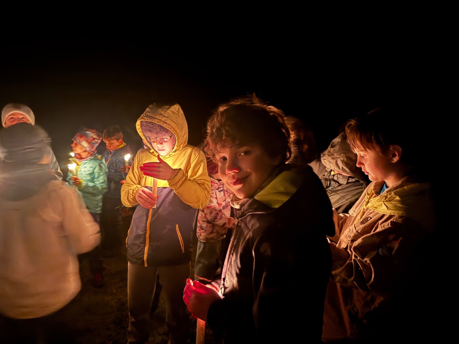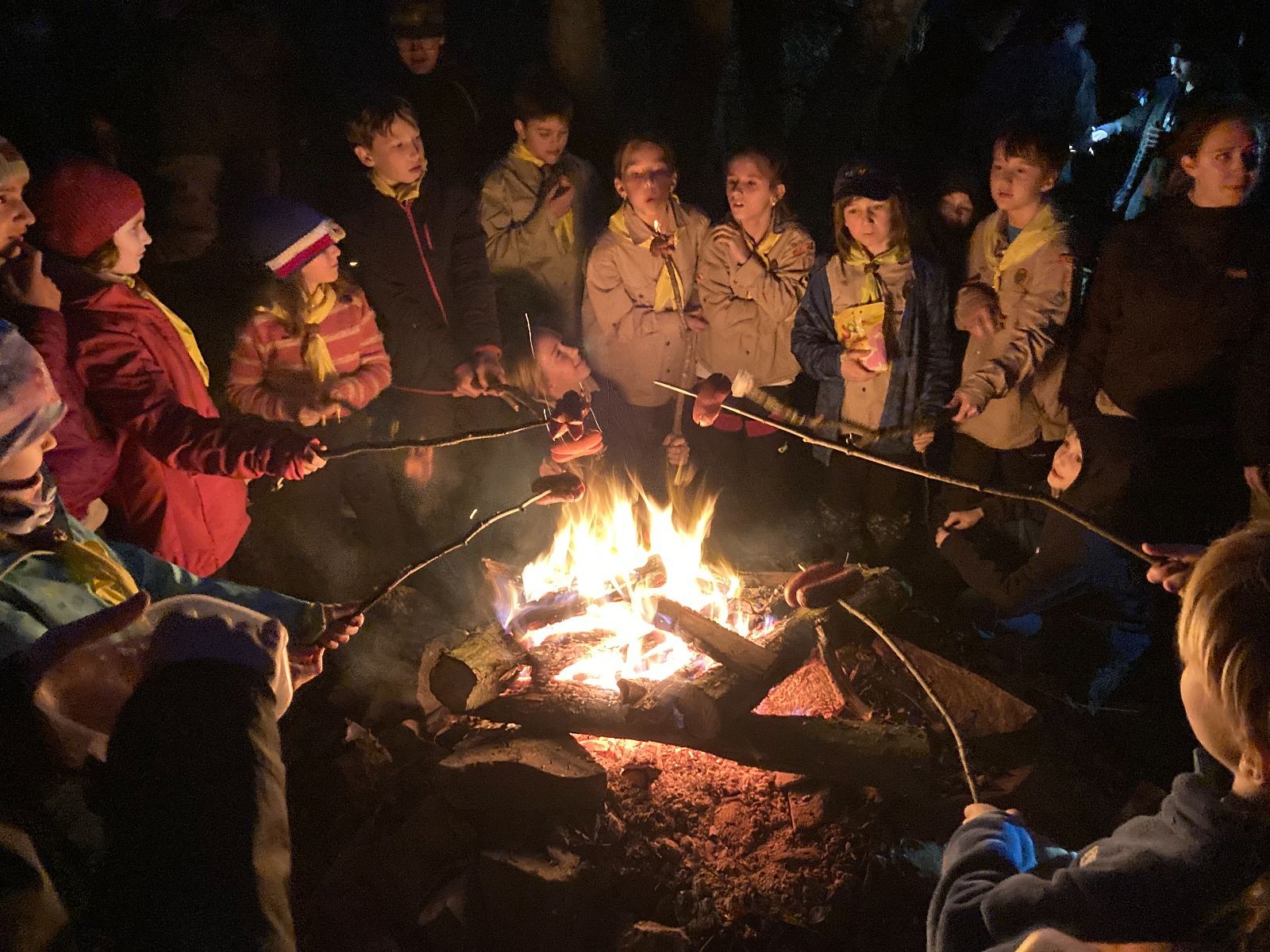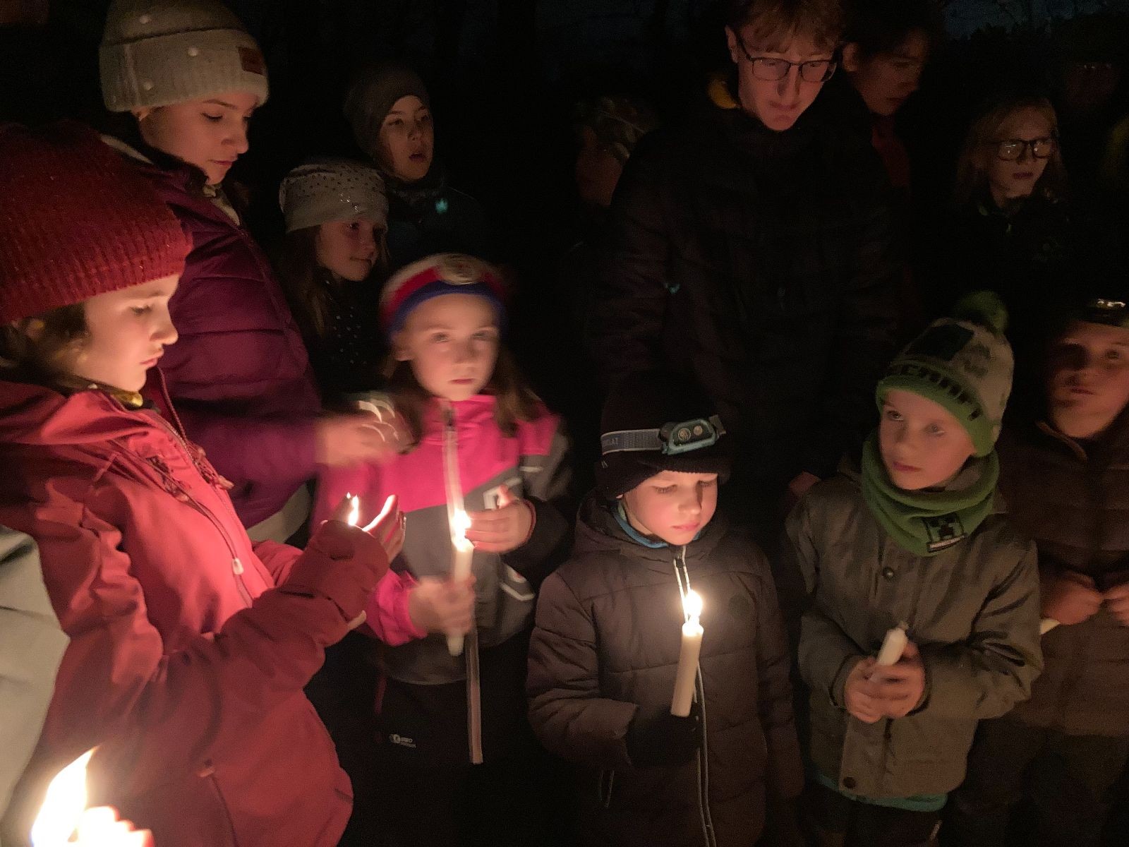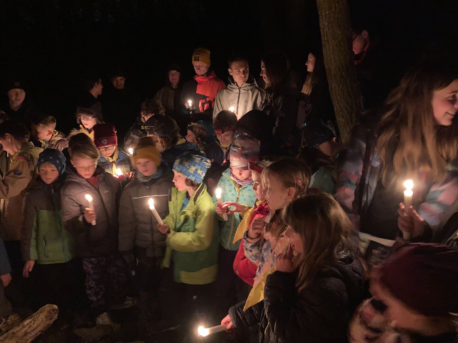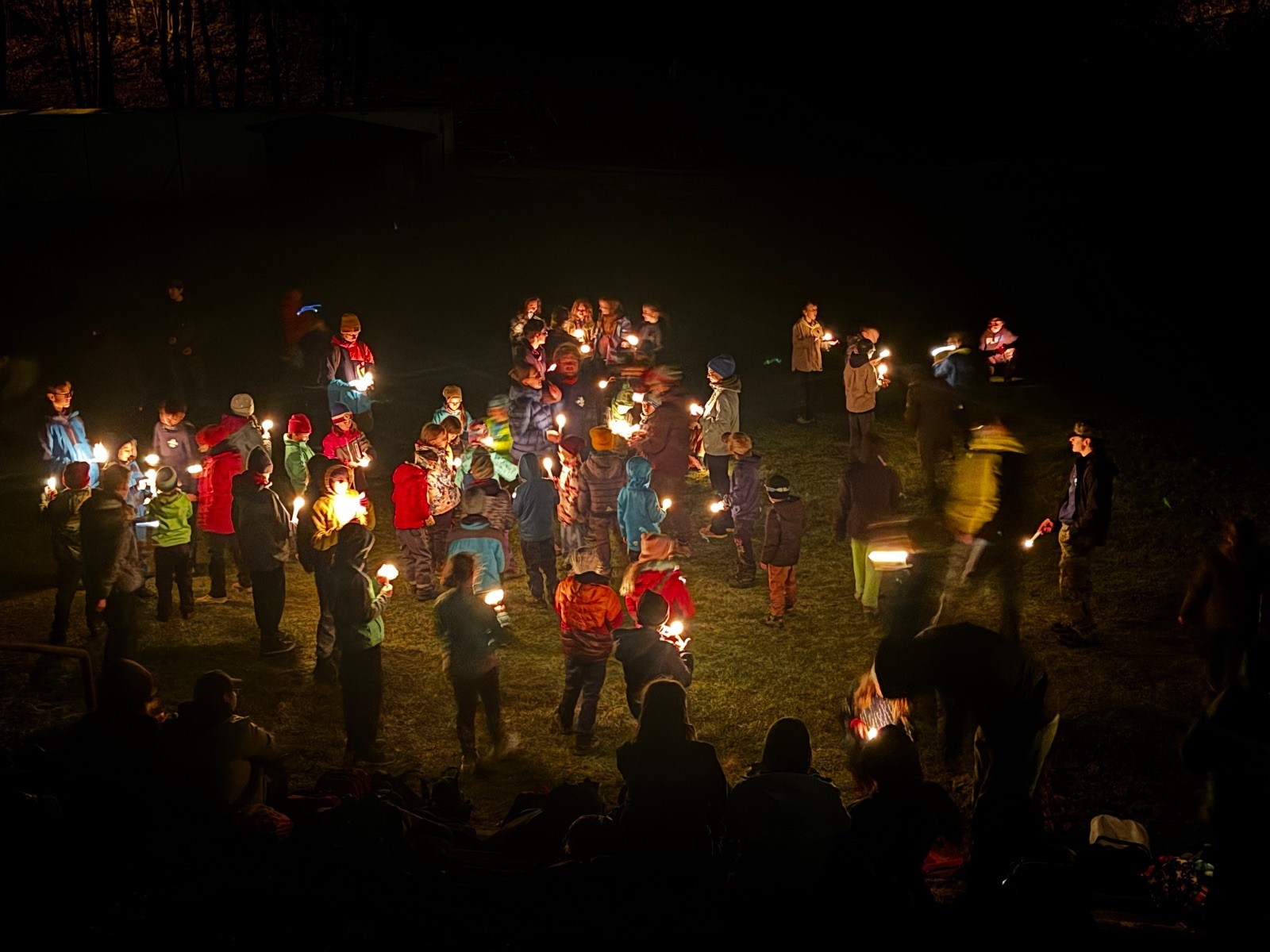 Poté jsme se už pomalu po tmě, nebo skoro po tmě (některým Lasičkám se povedlo donést si plamínek svíčky až do Šlapanic), vydali zpátky do naší vyhřáté Boudy. Po cestě samozřejmě nesměla chybět ani zastávka na sfoukávanou, kdy jednou vyhrál tým pod vedením Kapra, jednou tým pod vedením Vydrýska a poslední hru jsme dali všichni proti všem. Poslední část cesty pak utekla opravdu rychle a všichni jsme se už jen těšili jak se svýma uondanýma nožkama zalezeme do spacáků.