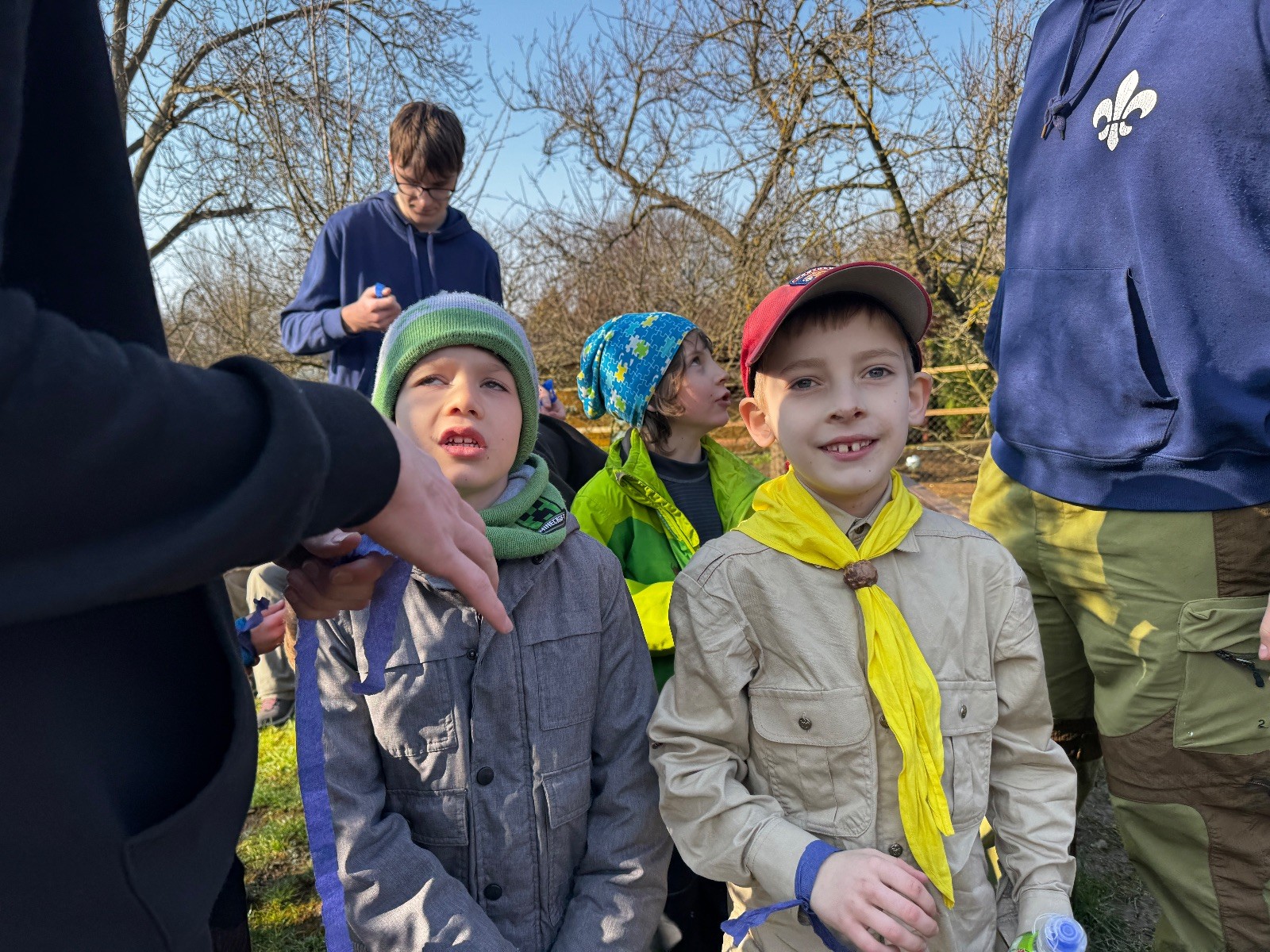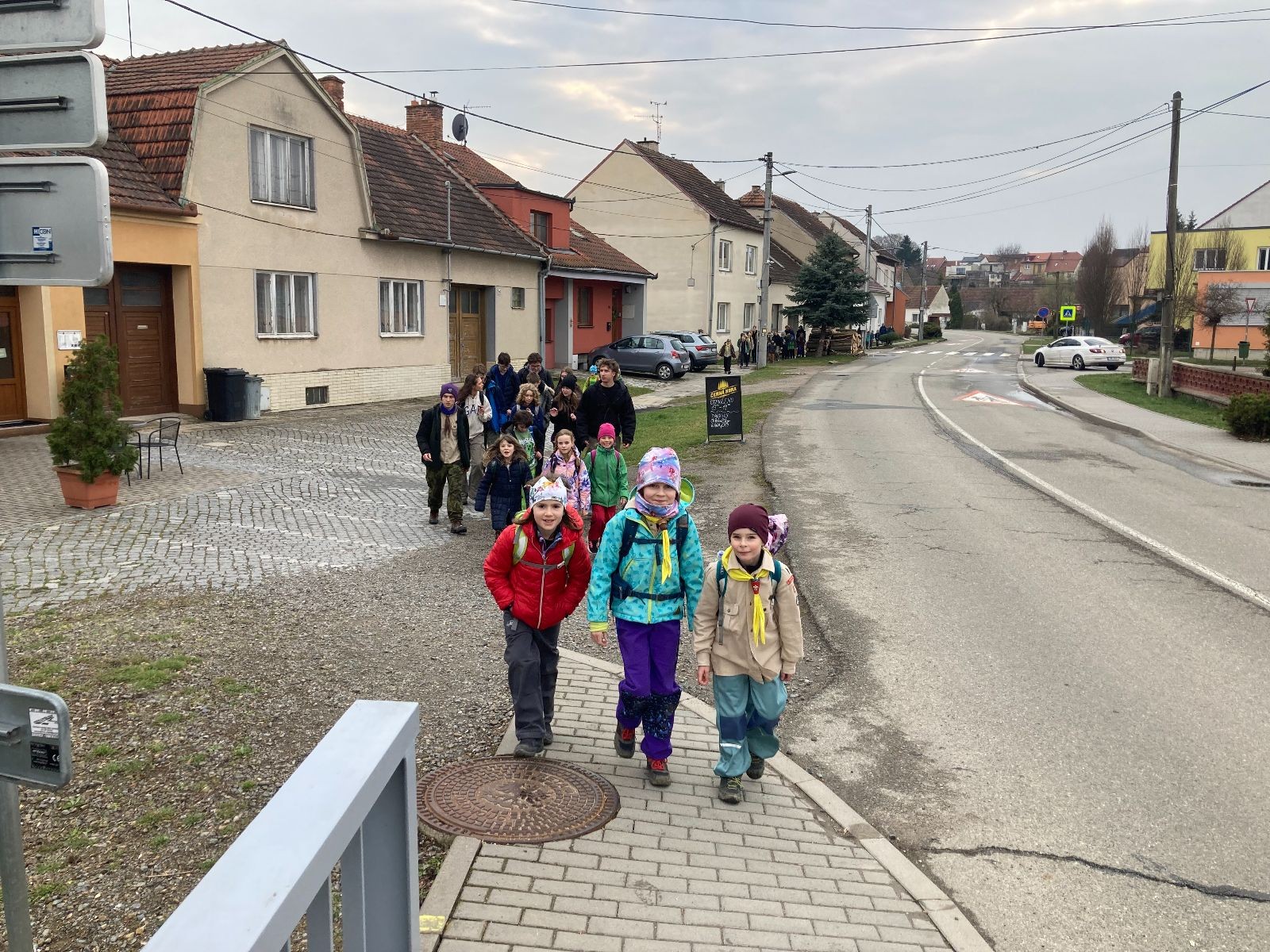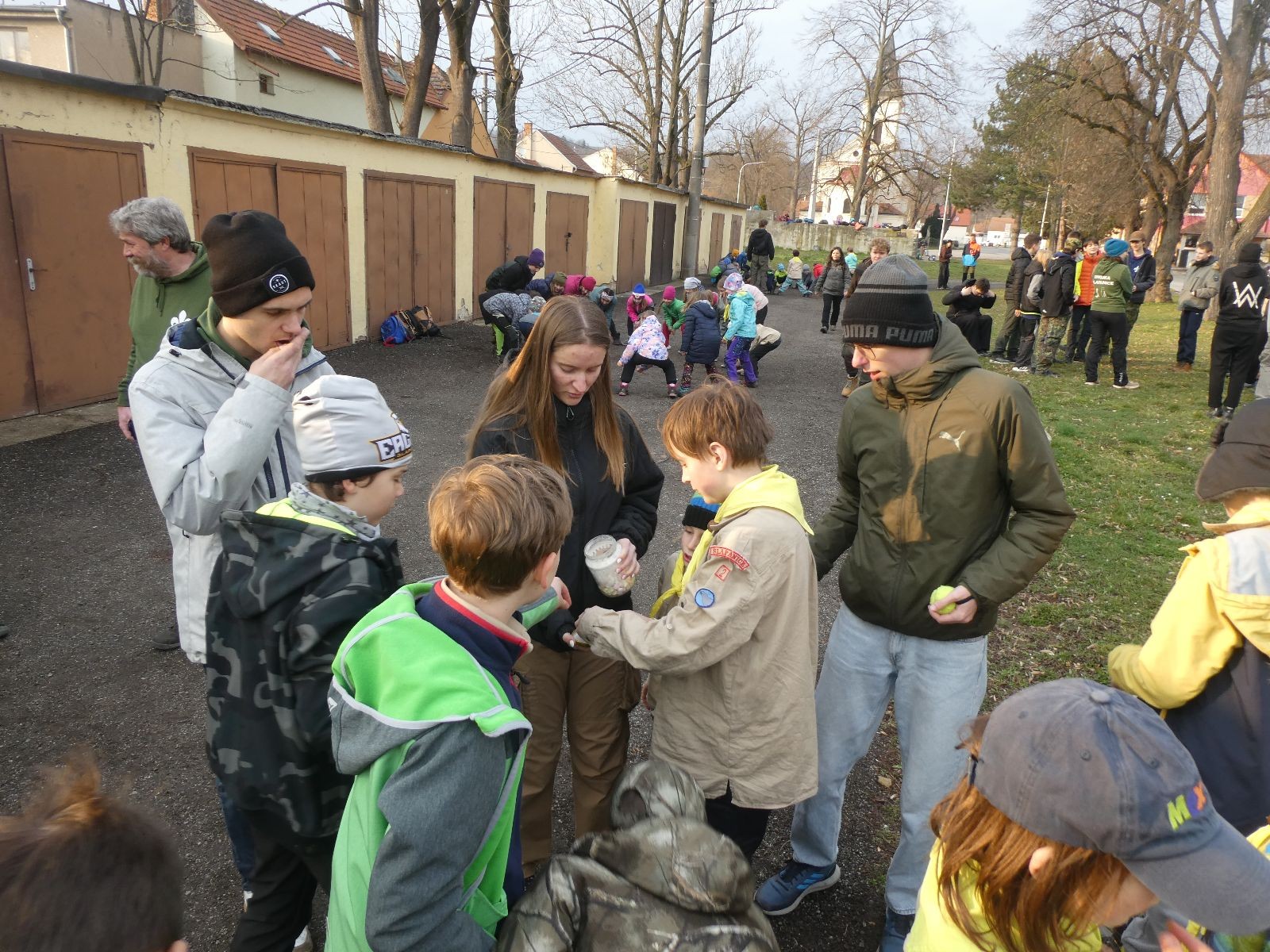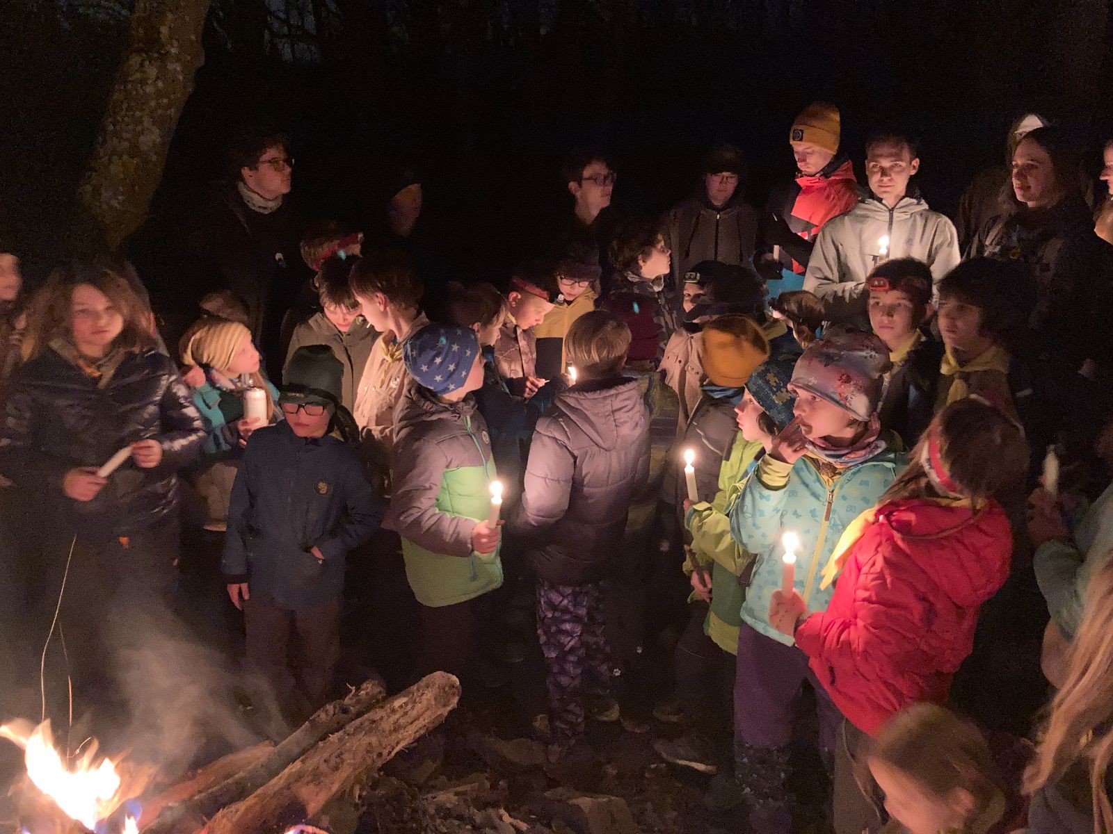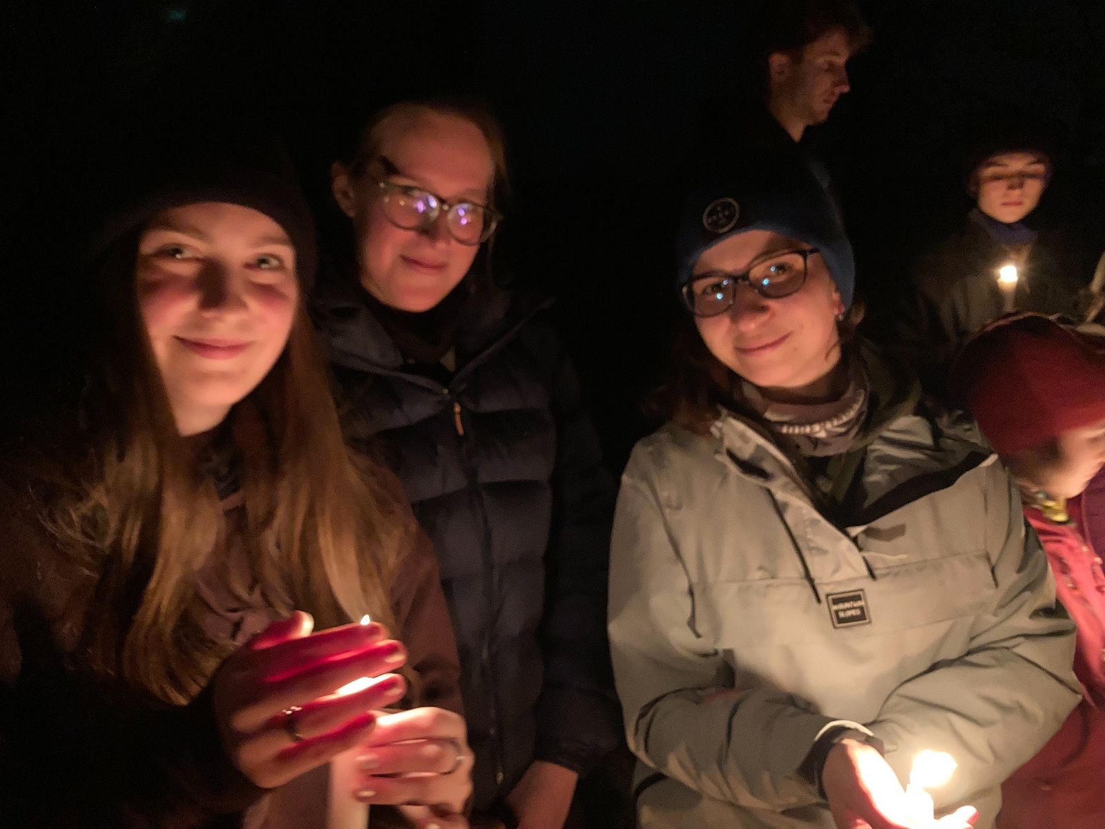 Poté jsme se už pomalu po tmě, nebo skoro po tmě (některým Lasičkám se povedlo donést si plamínek svíčky až do Šlapanic), vydali zpátky do naší vyhřáté Boudy. Po cestě samozřejmě nesměla chybět ani zastávka na sfoukávanou, kdy jednou vyhrál tým pod vedením Kapra, jednou tým pod vedením Vydrýska a poslední hru jsme dali všichni proti všem. Poslední část cesty pak utekla opravdu rychle a všichni jsme se už jen těšili jak se svýma uondanýma nožkama zalezeme do spacáků.