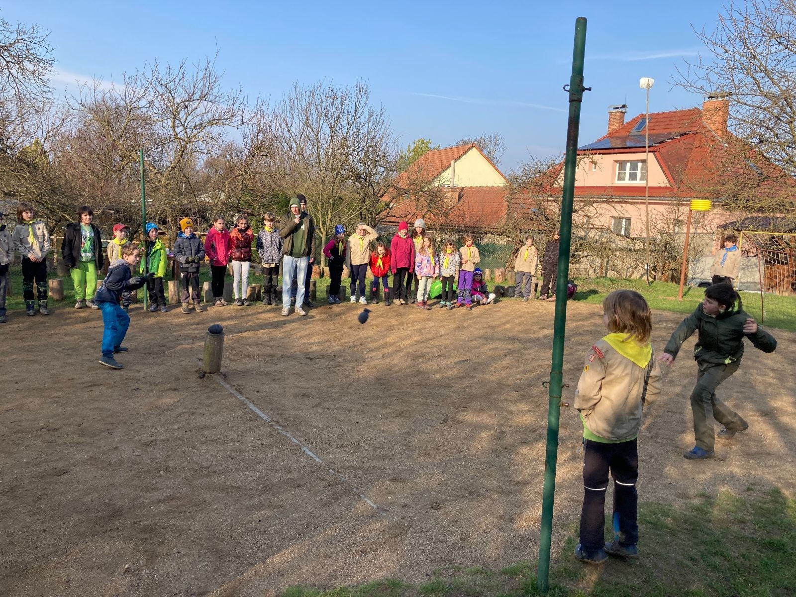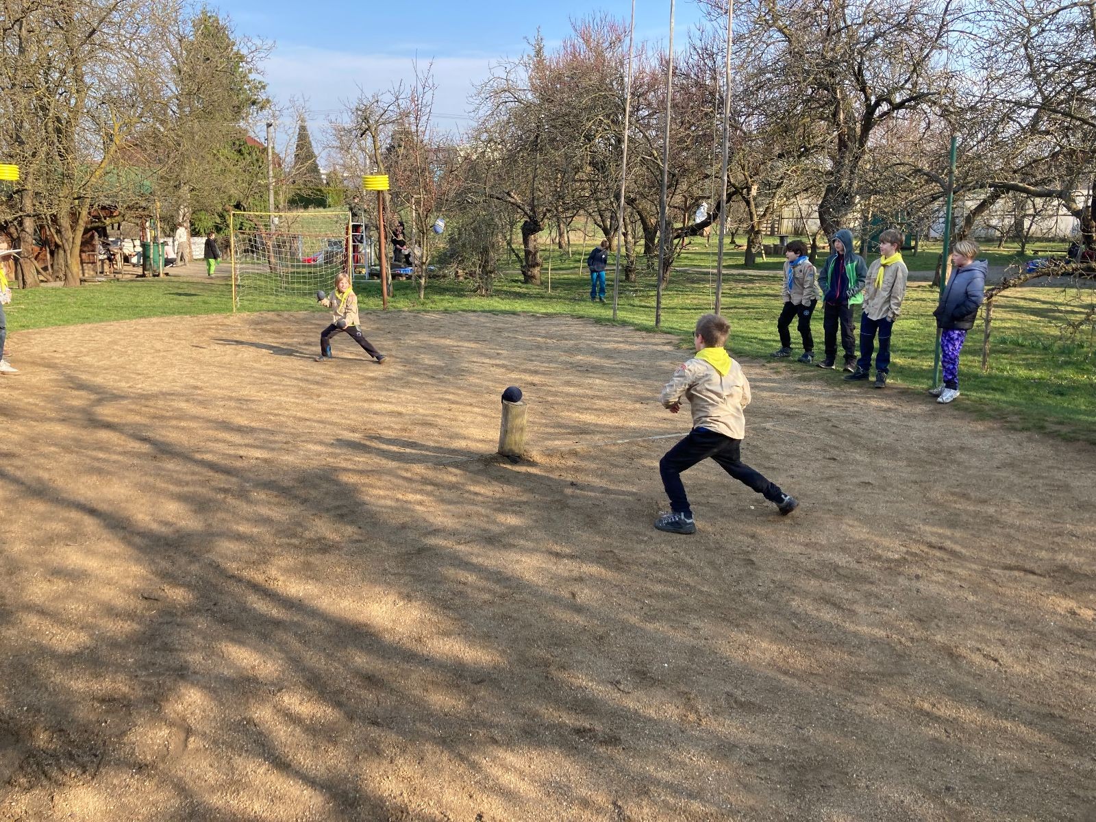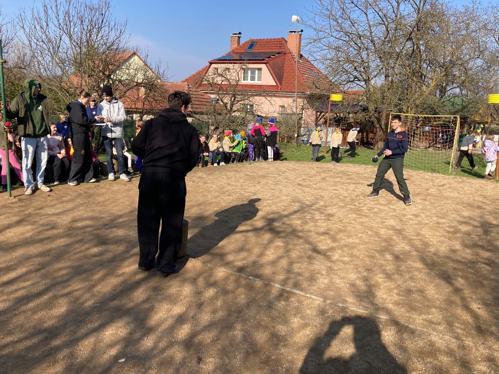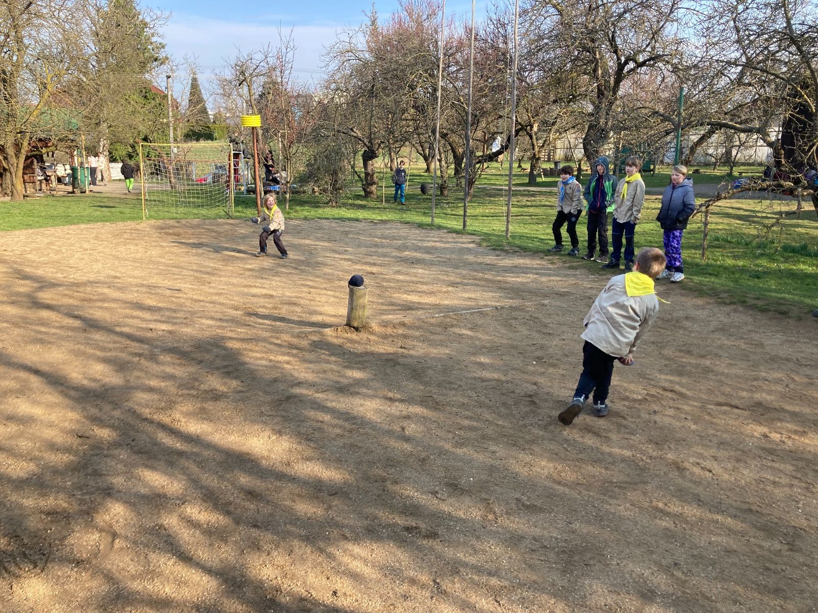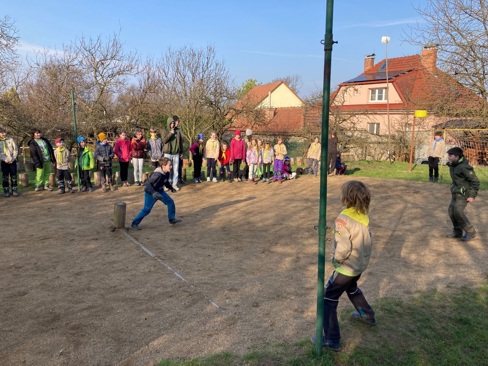 Rozdělujeme se na dva týmy. Modrému týmu šéfuje čtveřice Sršňů a žlutému týmu čtveřice Tygrů. První hru vyhrávají žlutí a přichází na řadu výměna stran, což se stalo osudným. Druhá hra je dlouho vyrovnaná, ale nakonec vyhrávají modří. Zdá se, že strana u Staronové Boudy je výhodnější. Je však předčasné dělat ukvapené závěry. Ve třetí hře totiž modří využívají momentu překvapení a vítězí. Zbývá nám ještě dost času na poslední hru. Bude to 3:1 pro modré nebo to skončí remízou? Žlutým nezbývá nic jiného než bleskový útok. Ten se však nedaří a vítězí modří poměrem 3:1.