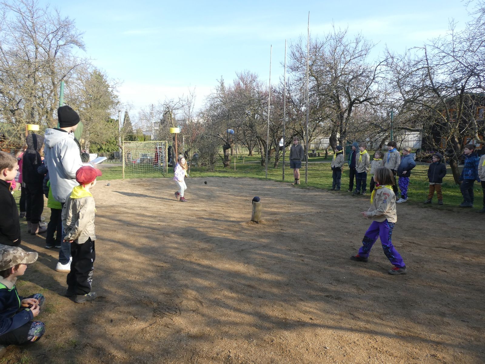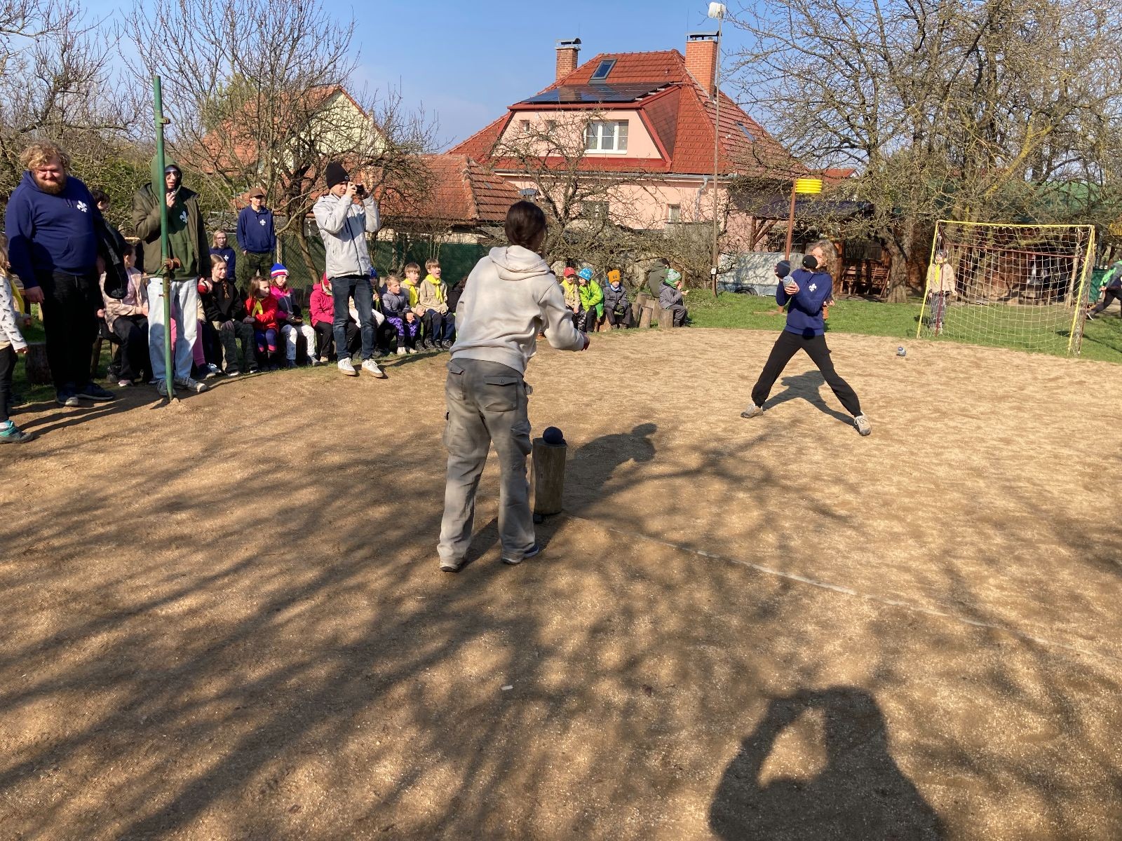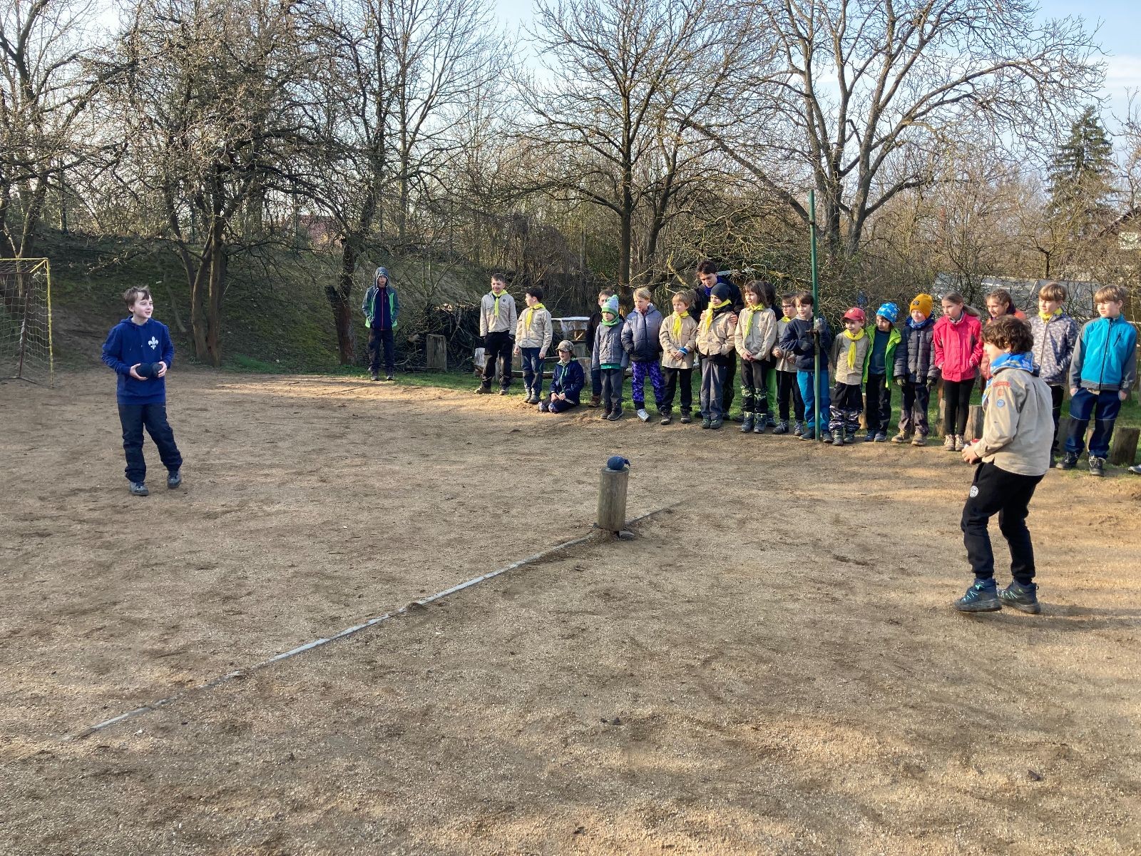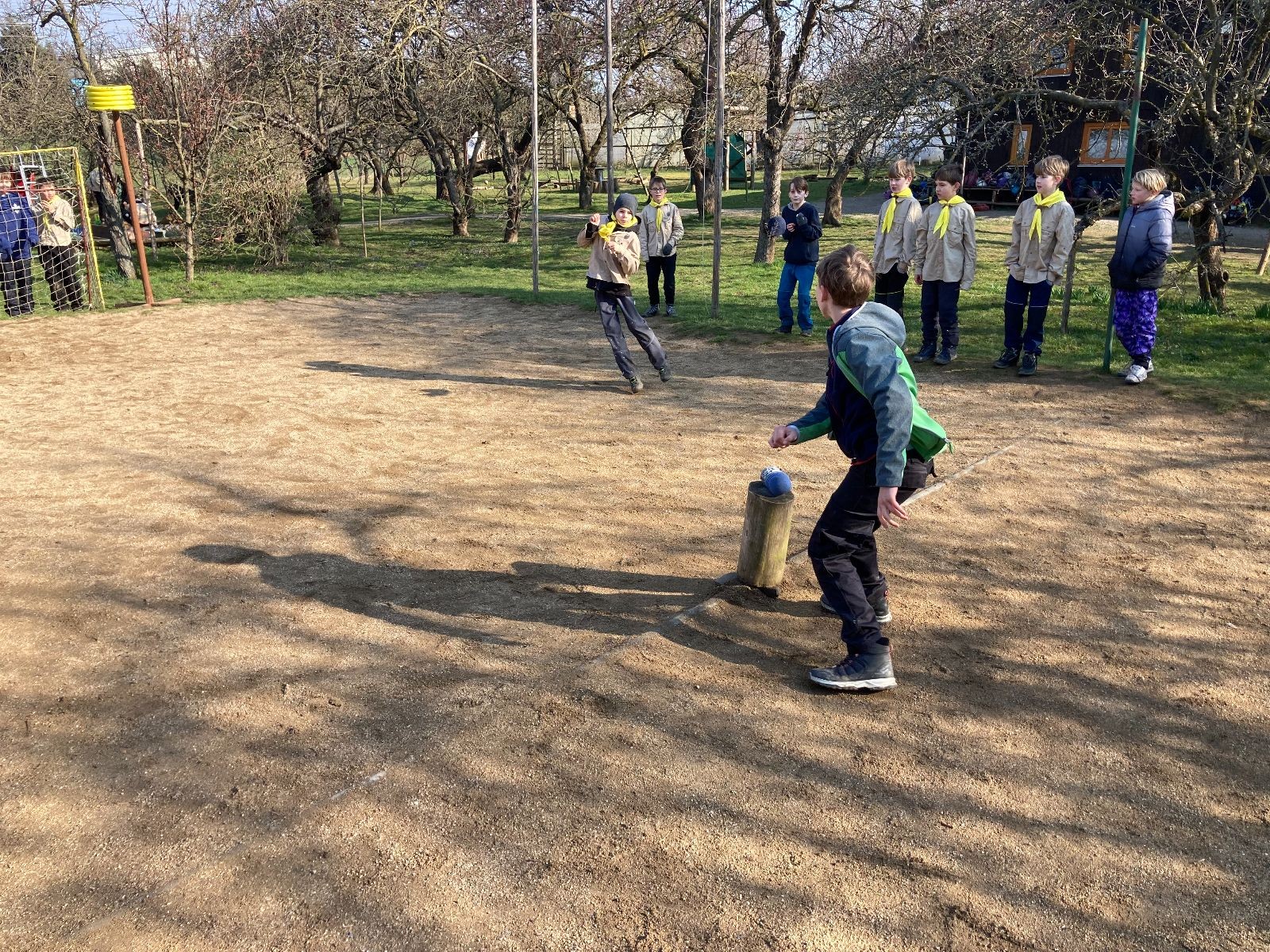 Rozdělujeme se na dva týmy. Modrému týmu šéfuje čtveřice Sršňů a žlutému týmu čtveřice Tygrů. První hru vyhrávají žlutí a přichází na řadu výměna stran, což se stalo osudným. Druhá hra je dlouho vyrovnaná, ale nakonec vyhrávají modří. Zdá se, že strana u Staronové Boudy je výhodnější. Je však předčasné dělat ukvapené závěry. Ve třetí hře totiž modří využívají momentu překvapení a vítězí. Zbývá nám ještě dost času na poslední hru. Bude to 3:1 pro modré nebo to skončí remízou? Žlutým nezbývá nic jiného než bleskový útok. Ten se však nedaří a vítězí modří poměrem 3:1.
