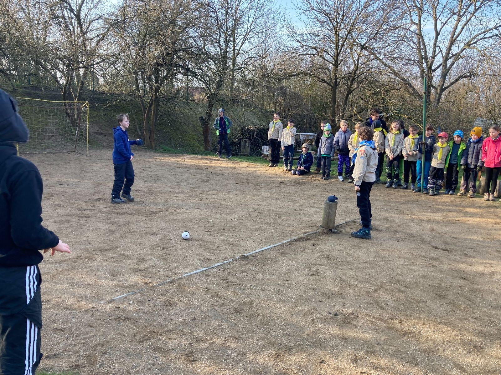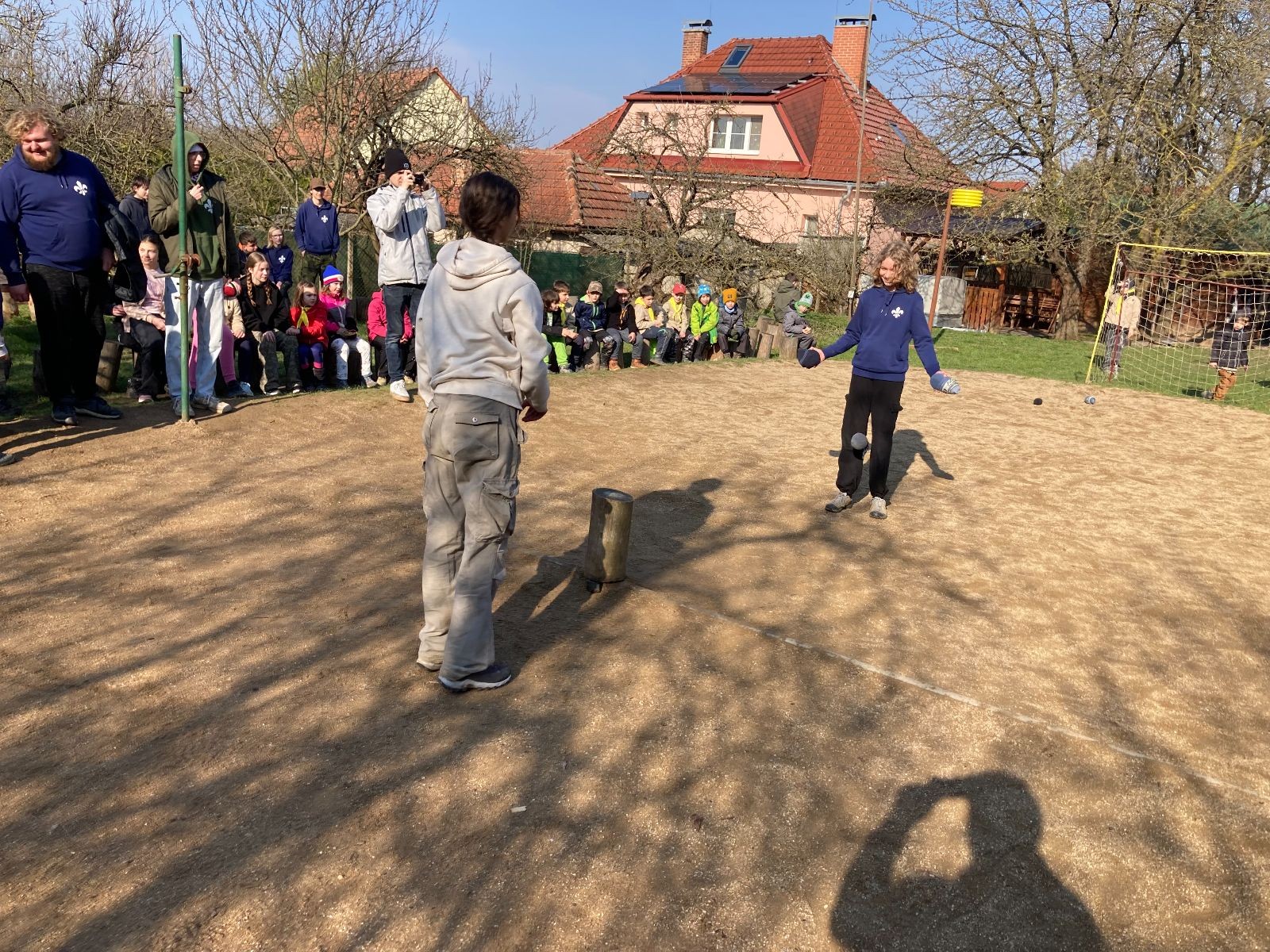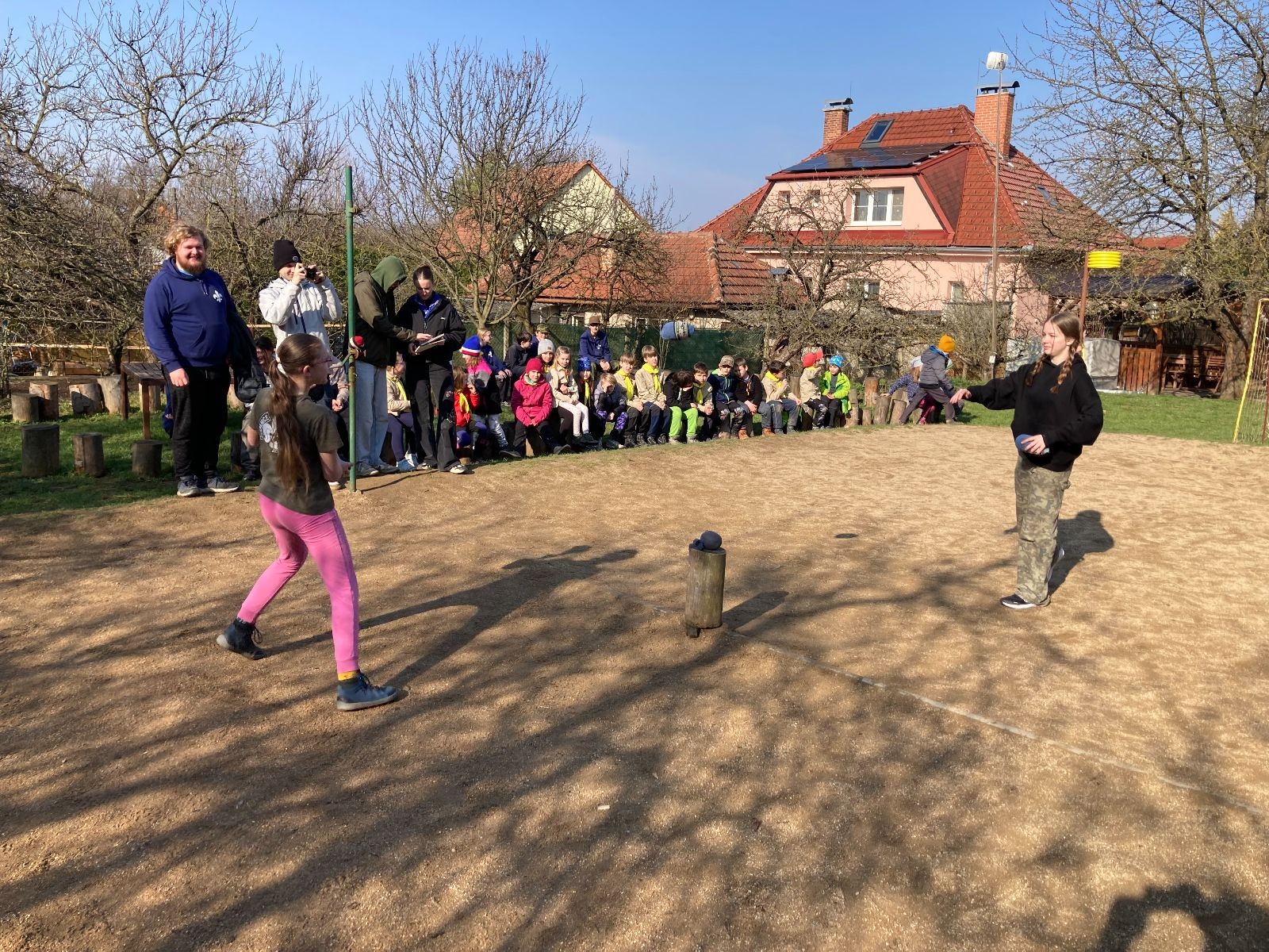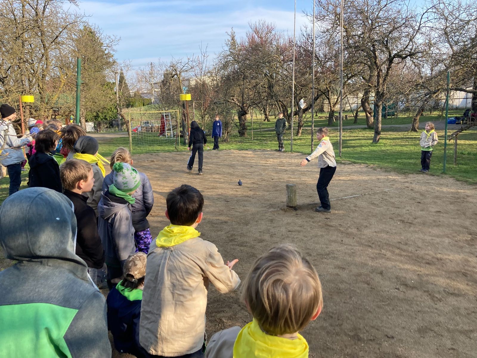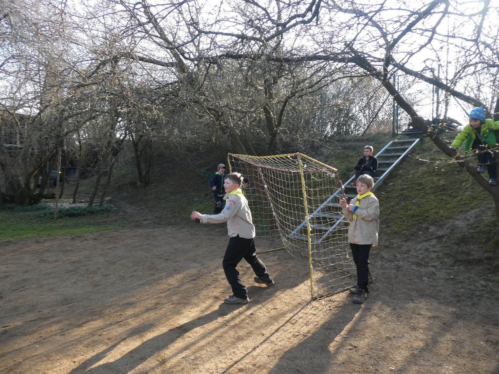 Rozdělujeme se na dva týmy. Modrému týmu šéfuje čtveřice Sršňů a žlutému týmu čtveřice Tygrů. První hru vyhrávají žlutí a přichází na řadu výměna stran, což se stalo osudným. Druhá hra je dlouho vyrovnaná, ale nakonec vyhrávají modří. Zdá se, že strana u Staronové Boudy je výhodnější. Je však předčasné dělat ukvapené závěry. Ve třetí hře totiž modří využívají momentu překvapení a vítězí. Zbývá nám ještě dost času na poslední hru. Bude to 3:1 pro modré nebo to skončí remízou? Žlutým nezbývá nic jiného než bleskový útok. Ten se však nedaří a vítězí modří poměrem 3:1.