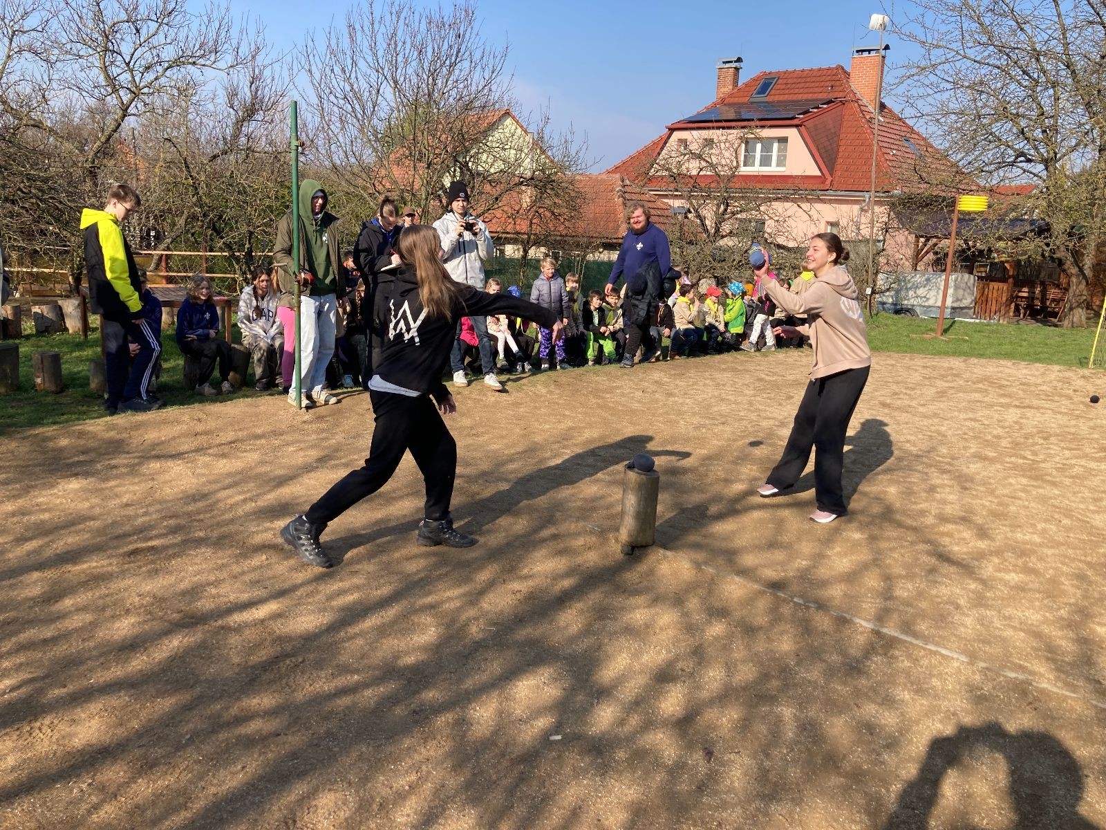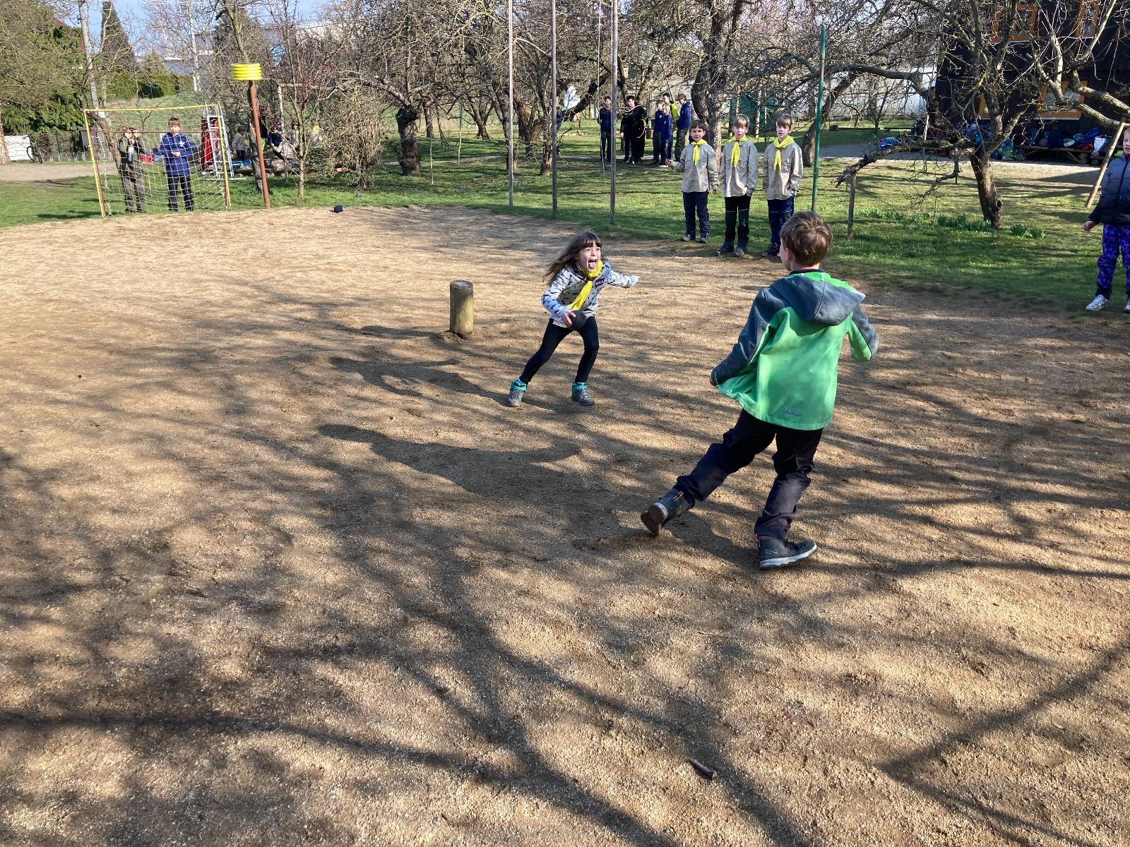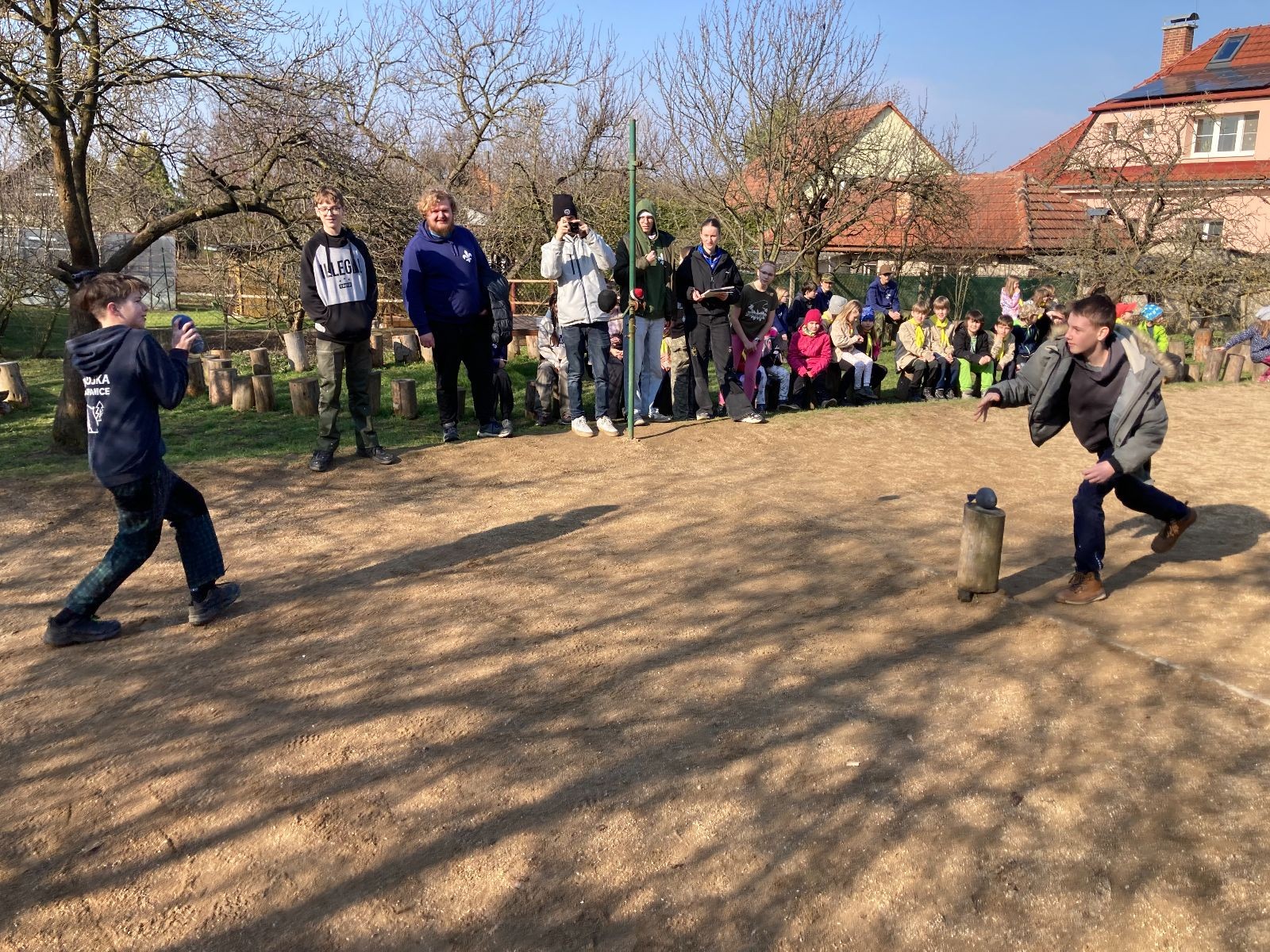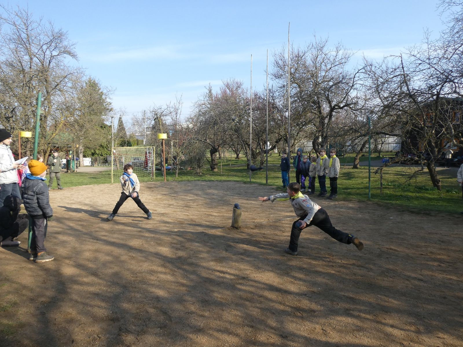Rozdělujeme se na dva týmy. Modrému týmu šéfuje čtveřice Sršňů a žlutému týmu čtveřice Tygrů. První hru vyhrávají žlutí a přichází na řadu výměna stran, což se stalo osudným. Druhá hra je dlouho vyrovnaná, ale nakonec vyhrávají modří. Zdá se, že strana u Staronové Boudy je výhodnější. Je však předčasné dělat ukvapené závěry. Ve třetí hře totiž modří využívají momentu překvapení a vítězí. Zbývá nám ještě dost času na poslední hru. Bude to 3:1 pro modré nebo to skončí remízou? Žlutým nezbývá nic jiného než bleskový útok. Ten se však nedaří a vítězí modří poměrem 3:1.