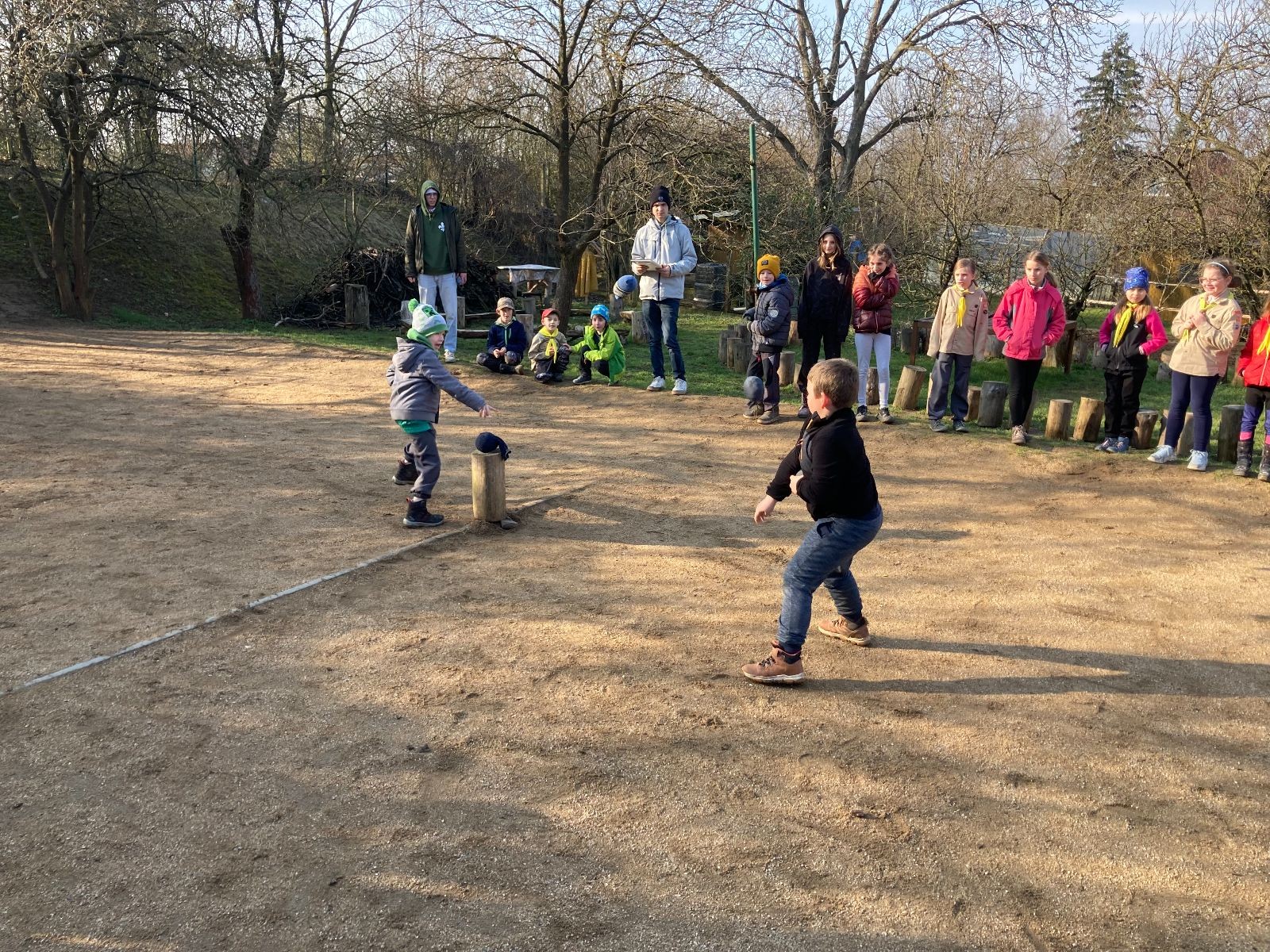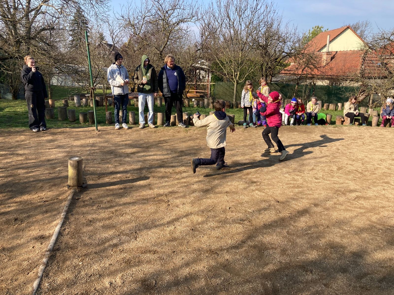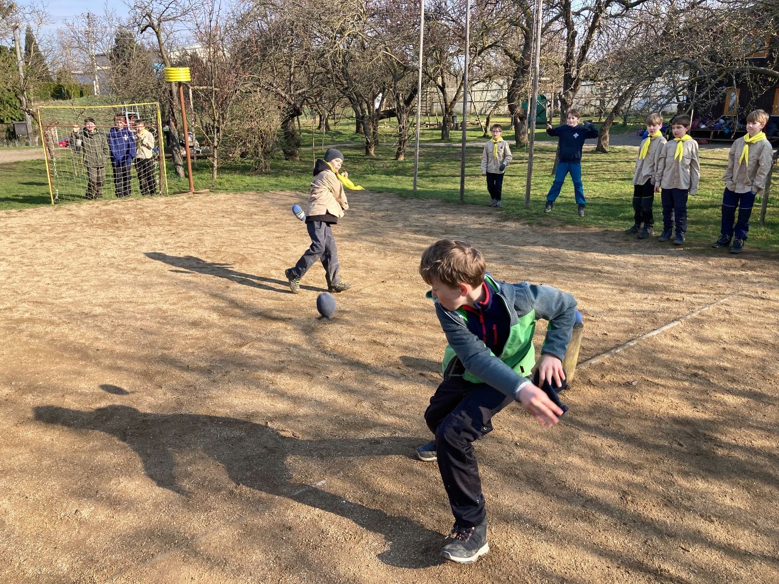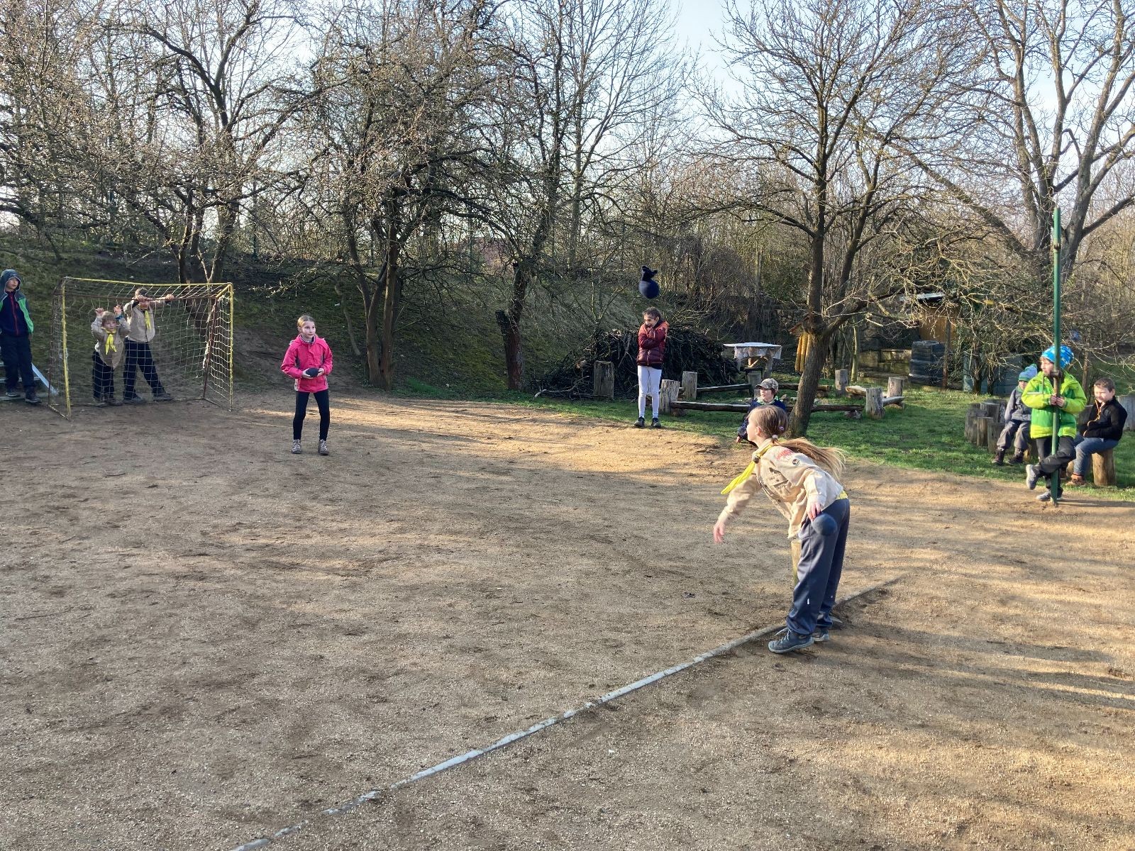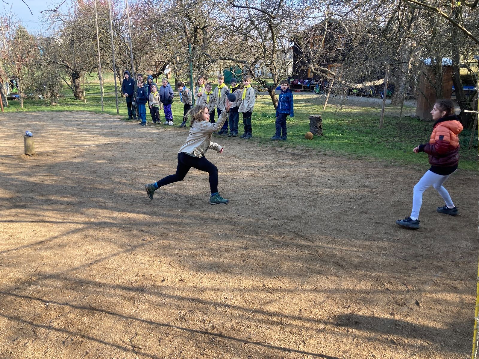 Rozdělujeme se na dva týmy. Modrému týmu šéfuje čtveřice Sršňů a žlutému týmu čtveřice Tygrů. První hru vyhrávají žlutí a přichází na řadu výměna stran, což se stalo osudným. Druhá hra je dlouho vyrovnaná, ale nakonec vyhrávají modří. Zdá se, že strana u Staronové Boudy je výhodnější. Je však předčasné dělat ukvapené závěry. Ve třetí hře totiž modří využívají momentu překvapení a vítězí. Zbývá nám ještě dost času na poslední hru. Bude to 3:1 pro modré nebo to skončí remízou? Žlutým nezbývá nic jiného než bleskový útok. Ten se však nedaří a vítězí modří poměrem 3:1.