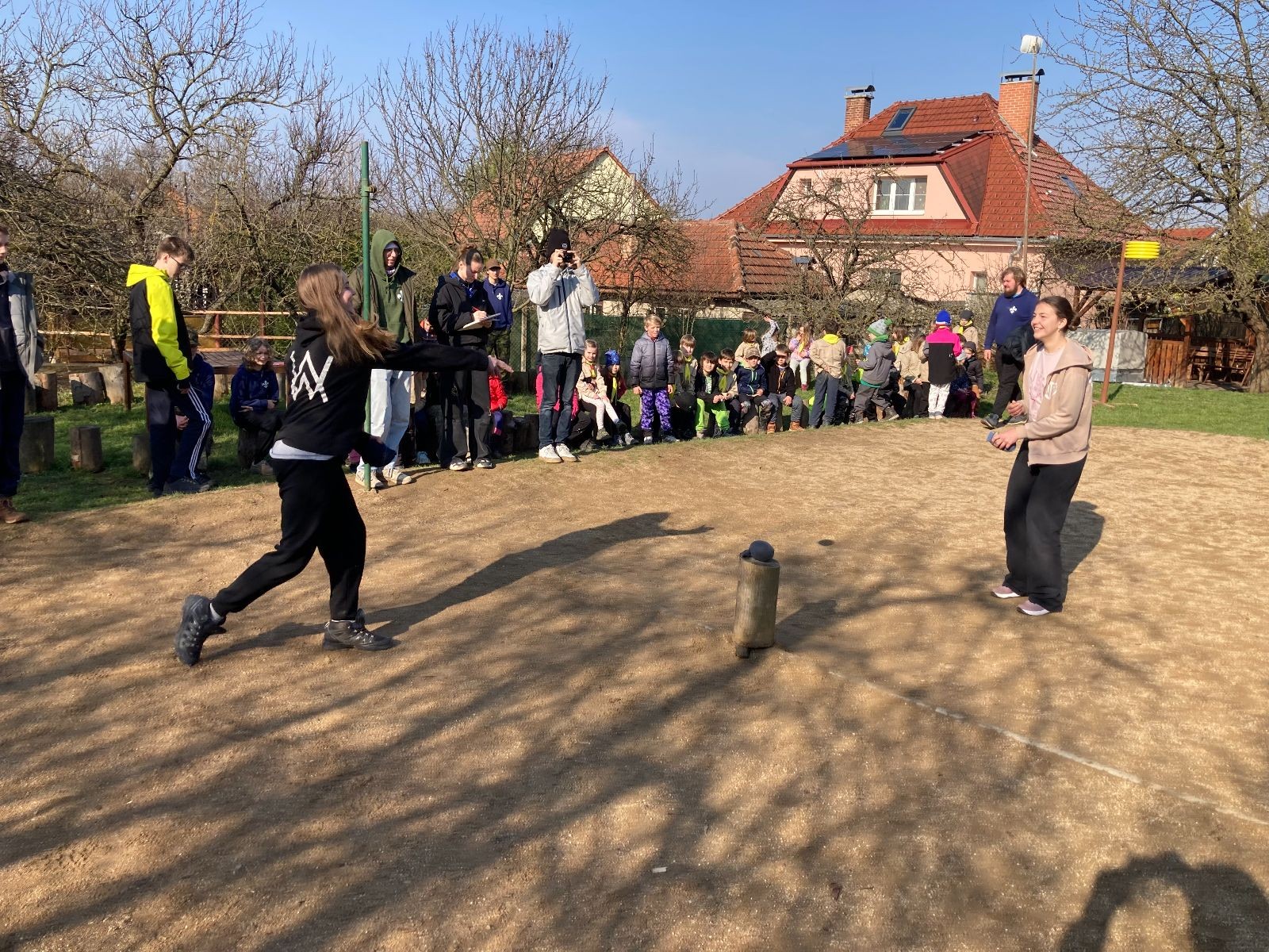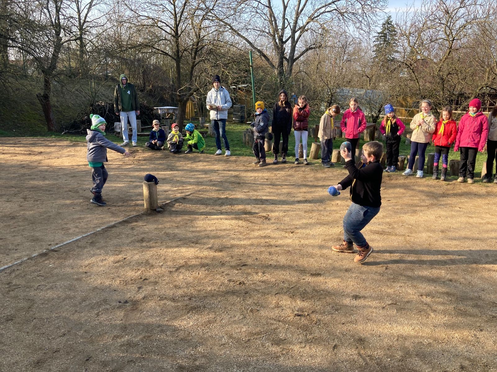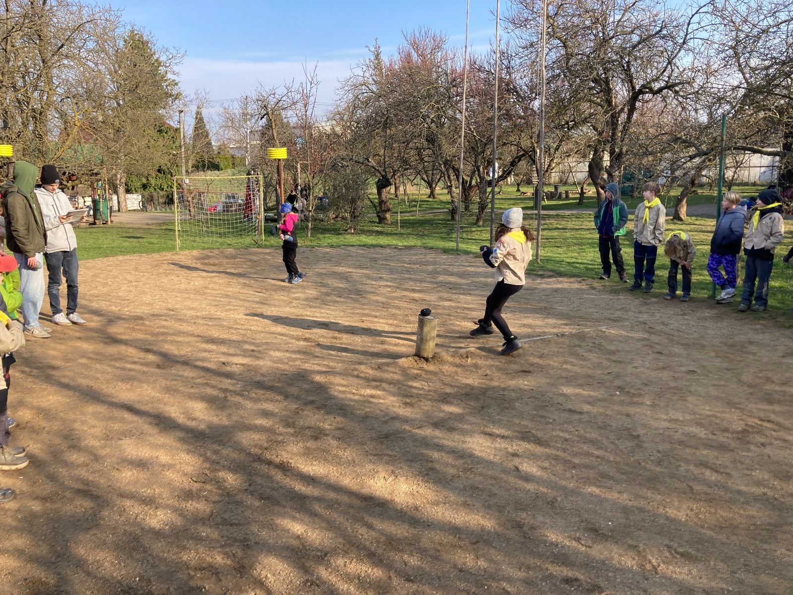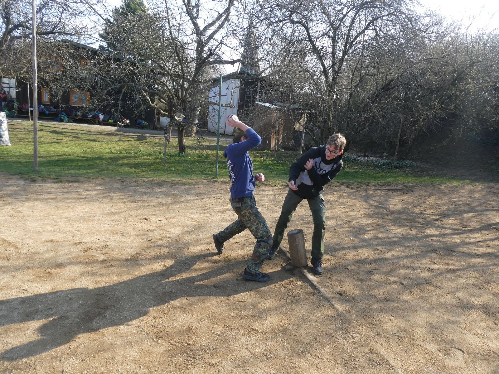 Rozdělujeme se na dva týmy. Modrému týmu šéfuje čtveřice Sršňů a žlutému týmu čtveřice Tygrů. První hru vyhrávají žlutí a přichází na řadu výměna stran, což se stalo osudným. Druhá hra je dlouho vyrovnaná, ale nakonec vyhrávají modří. Zdá se, že strana u Staronové Boudy je výhodnější. Je však předčasné dělat ukvapené závěry. Ve třetí hře totiž modří využívají momentu překvapení a vítězí. Zbývá nám ještě dost času na poslední hru. Bude to 3:1 pro modré nebo to skončí remízou? Žlutým nezbývá nic jiného než bleskový útok. Ten se však nedaří a vítězí modří poměrem 3:1.