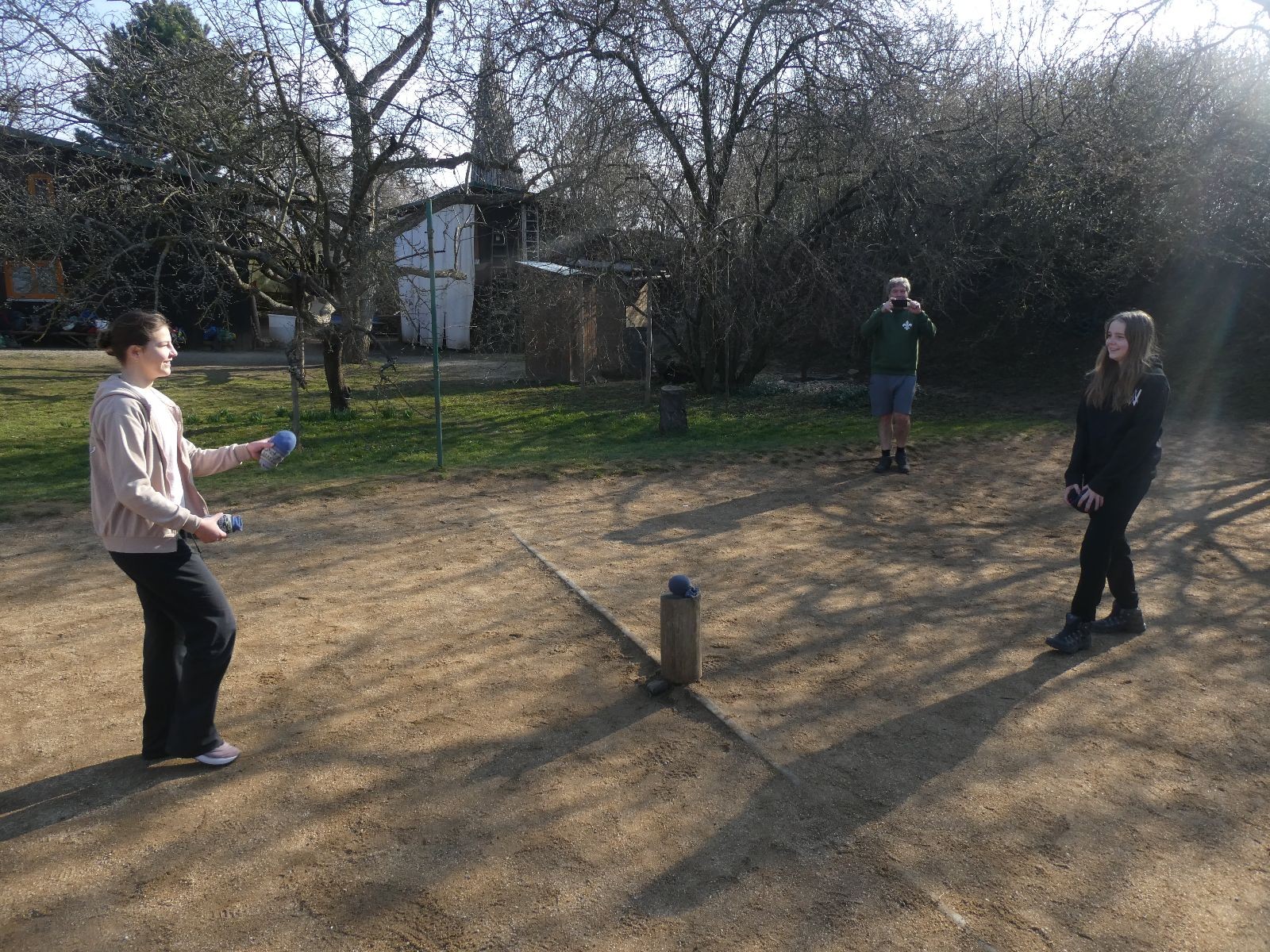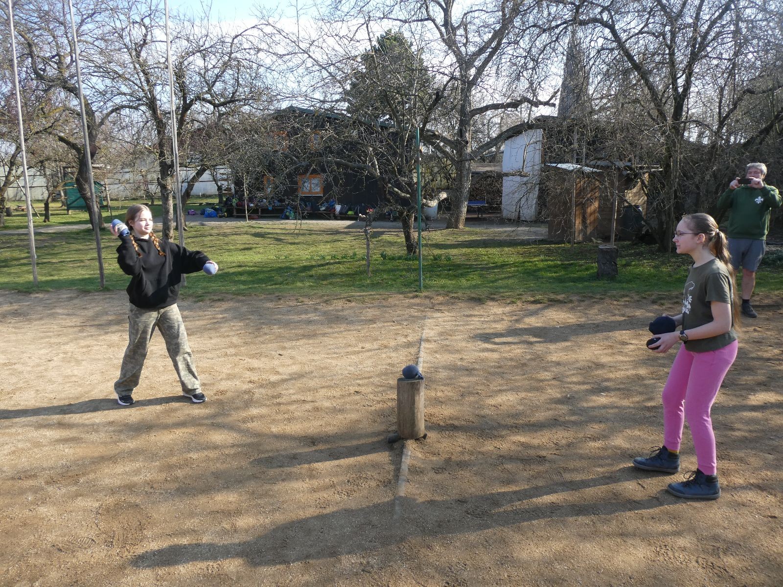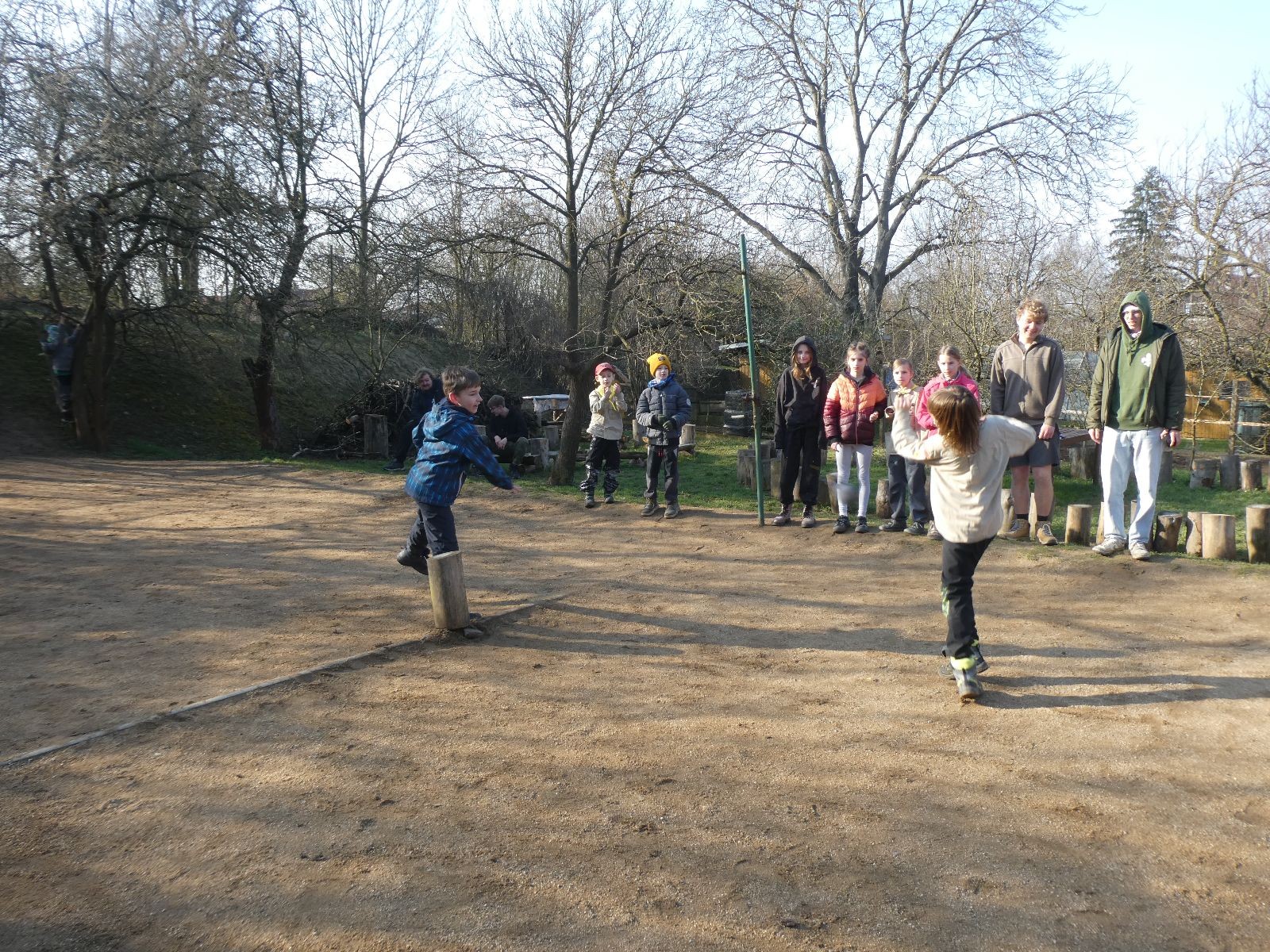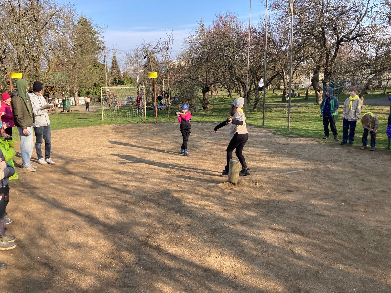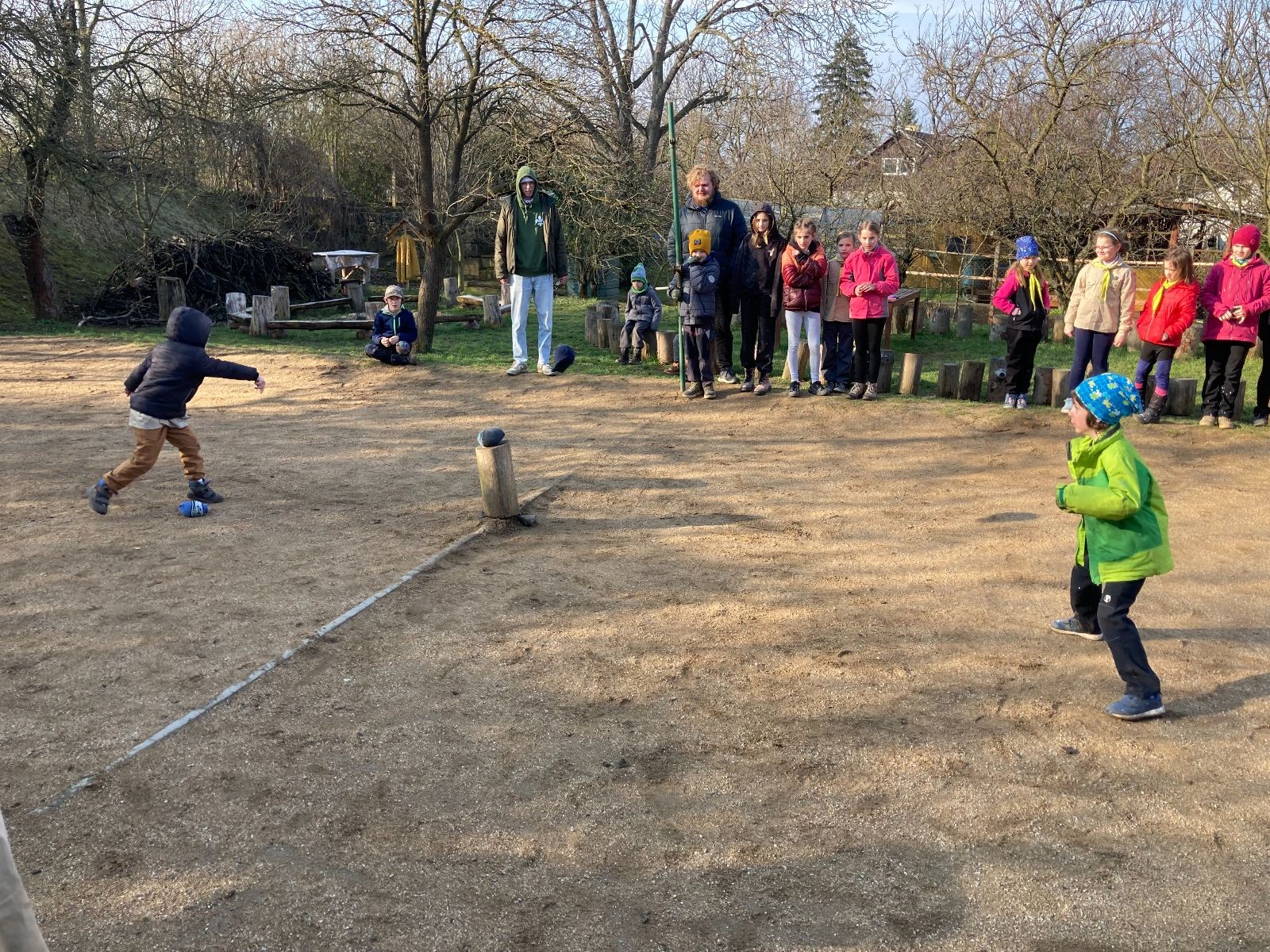 Rozdělujeme se na dva týmy. Modrému týmu šéfuje čtveřice Sršňů a žlutému týmu čtveřice Tygrů. První hru vyhrávají žlutí a přichází na řadu výměna stran, což se stalo osudným. Druhá hra je dlouho vyrovnaná, ale nakonec vyhrávají modří. Zdá se, že strana u Staronové Boudy je výhodnější. Je však předčasné dělat ukvapené závěry. Ve třetí hře totiž modří využívají momentu překvapení a vítězí. Zbývá nám ještě dost času na poslední hru. Bude to 3:1 pro modré nebo to skončí remízou? Žlutým nezbývá nic jiného než bleskový útok. Ten se však nedaří a vítězí modří poměrem 3:1.