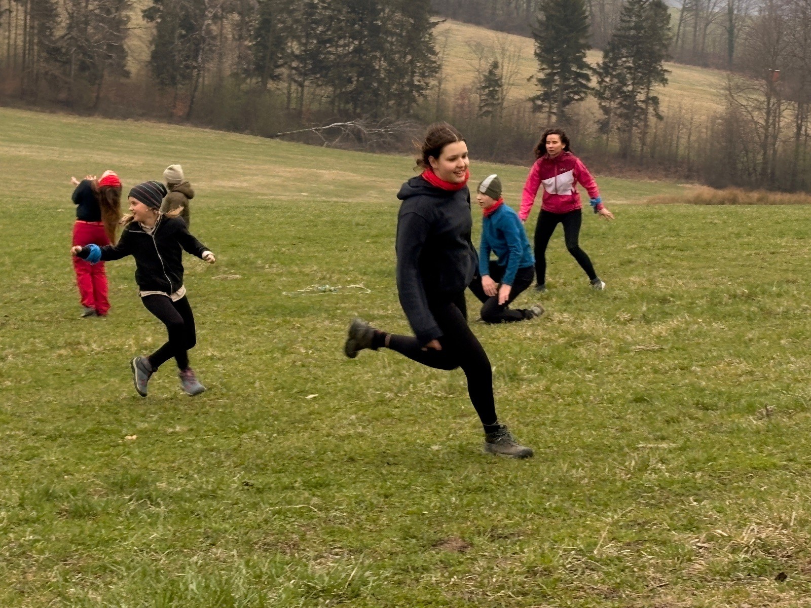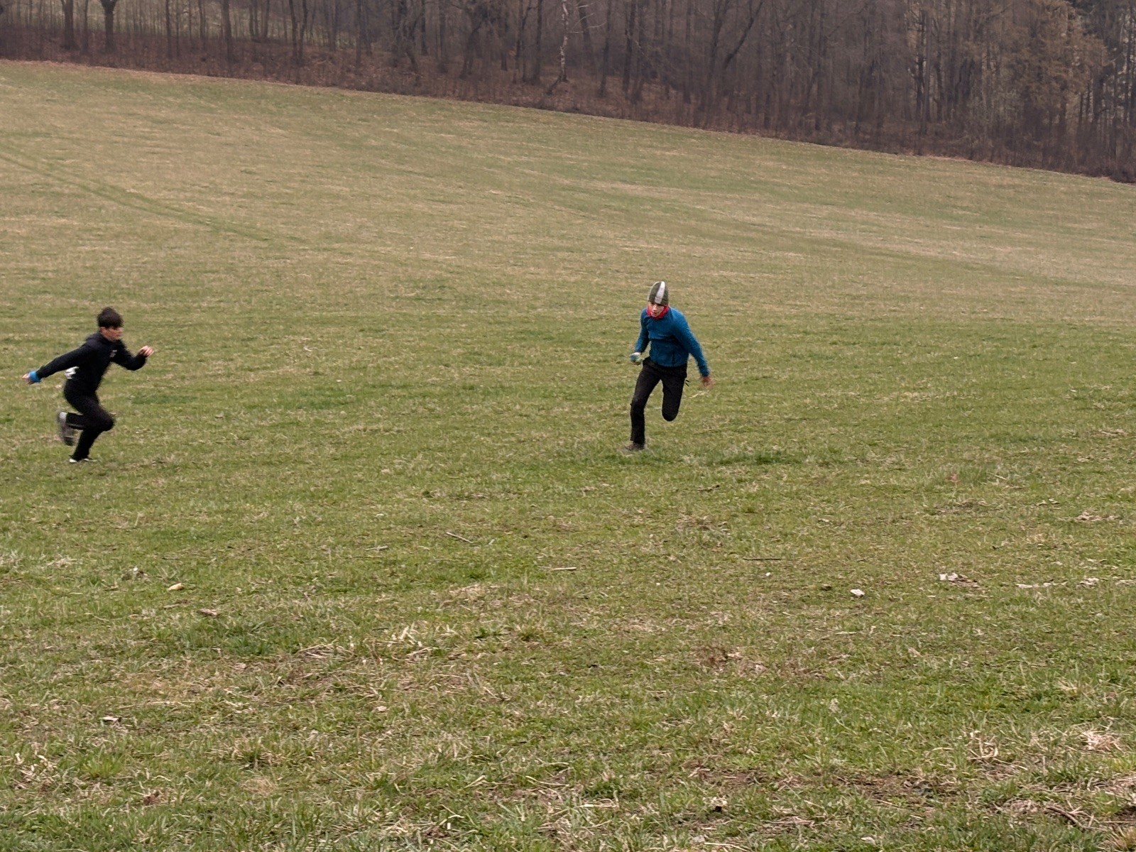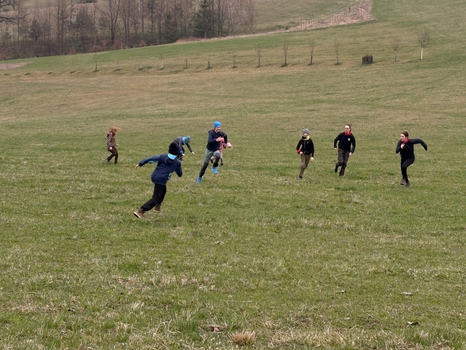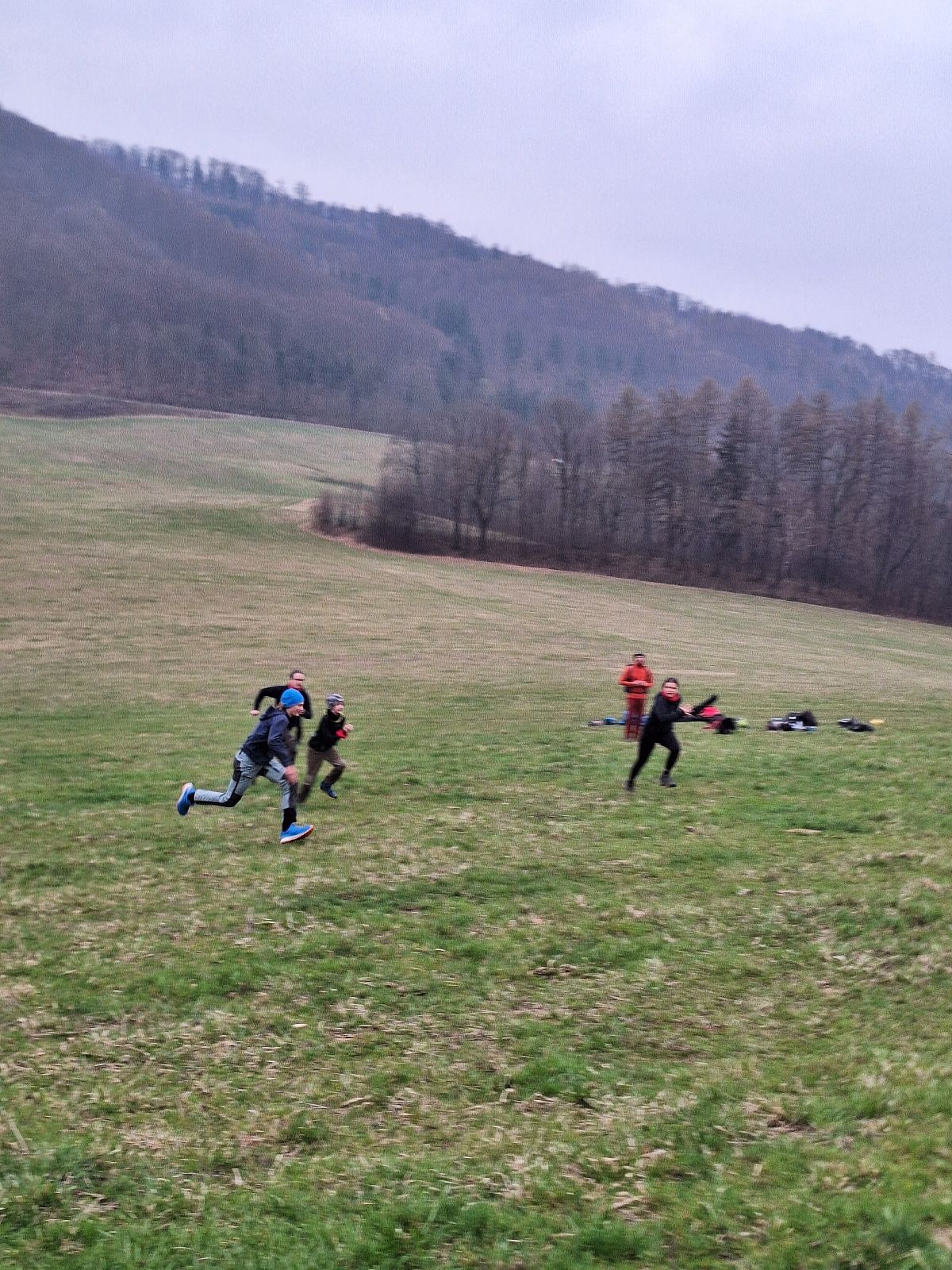 Na louce pod hůrkou chystáme vlajkovanou, dělíme se na modrý a červený tým a jde se na věc. Já s Uzlem máme výmluvu. Uzla bolí nožička a mě málem zabila rýmička, takže neriskujeme a ujímáme se pozice čárových rozhodčích, kteří vlastě stejně nic nerozhodují. Spíš jen tak blbě koukáme, občas něco vyfotíme nebo fandíme tomu týmu, který nám je zrovna sympatický. Vlajkovaná je kvalitní. Hodně rychlá, vyrovnaná a nikdo to nemá zadara. Konečný výsledek je nakonec 3:2. Bohužel si nepamatuji zda to byli modří nebo červení, a tak si pomůžu alibistickým „Vyhráli ti lepší“.