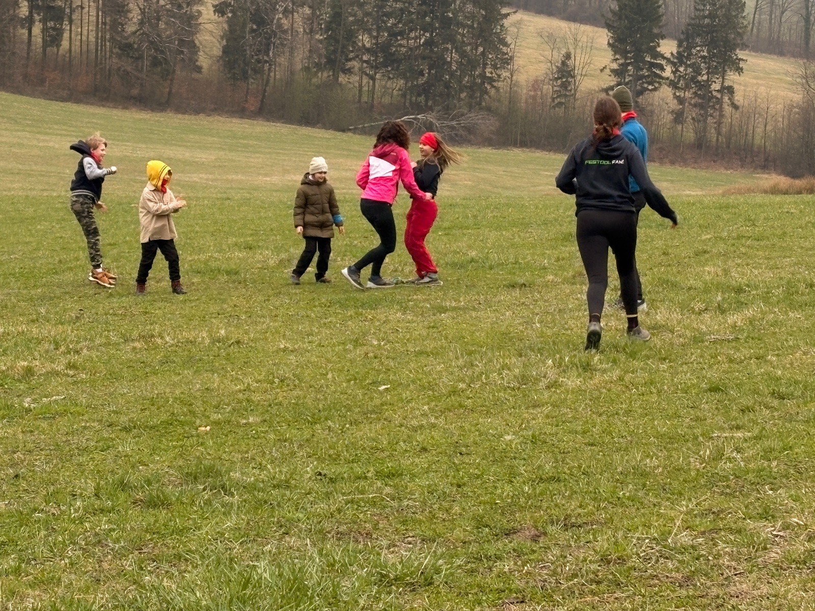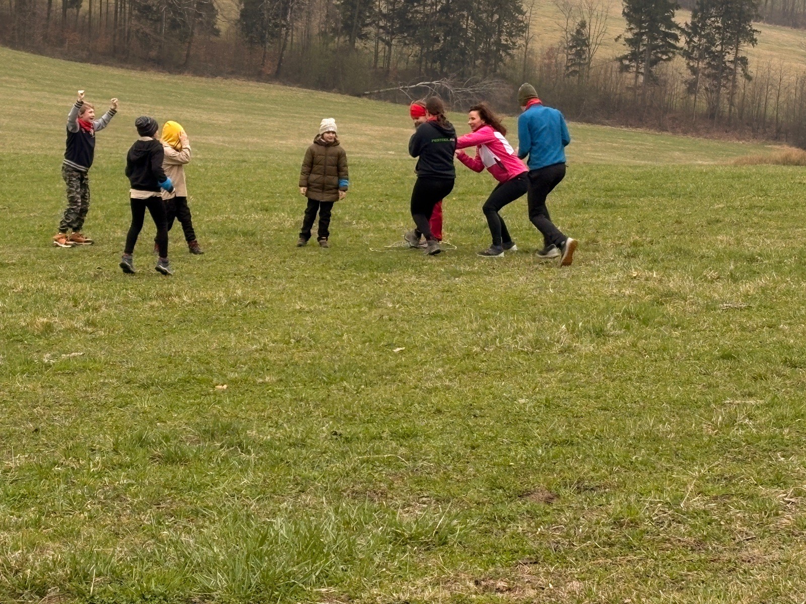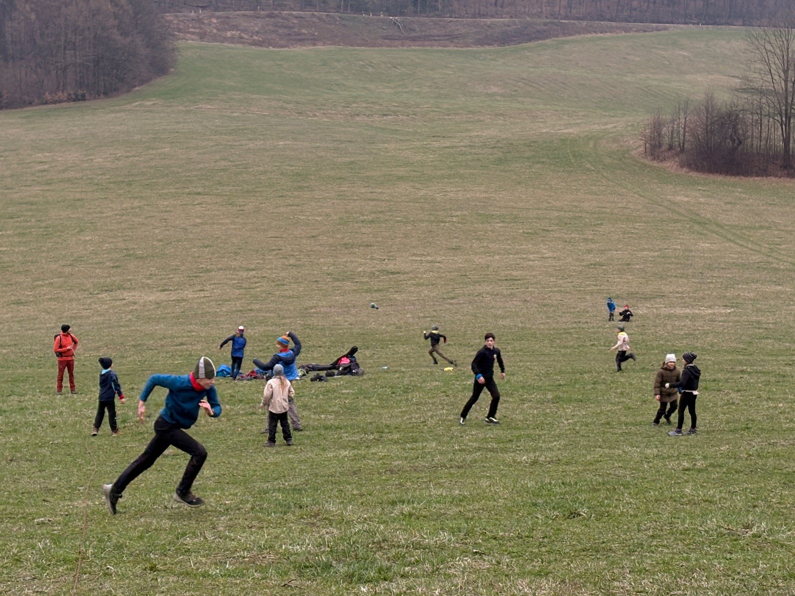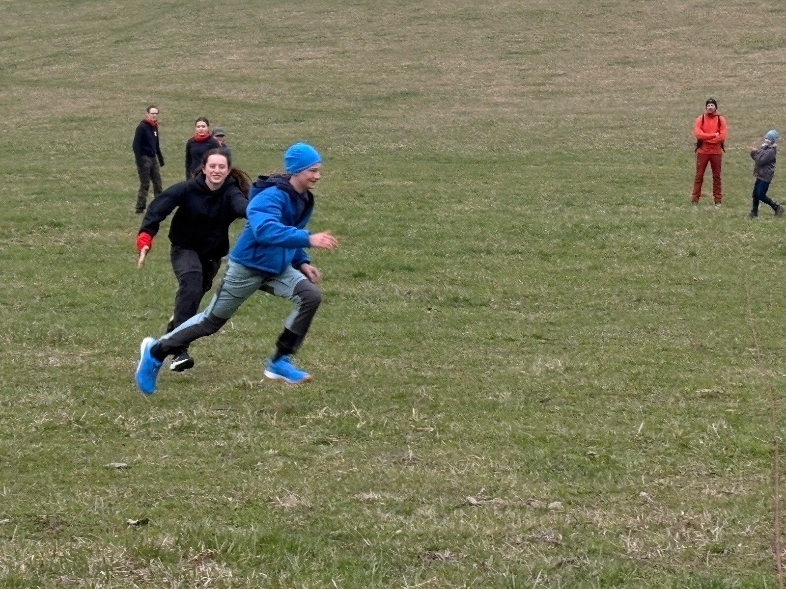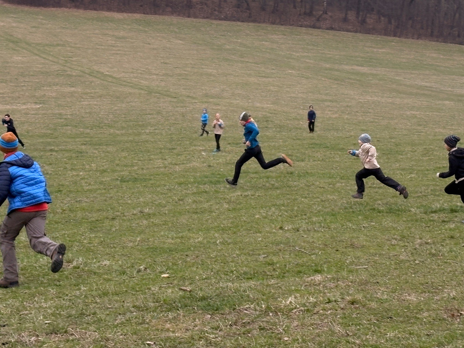 Na louce pod hůrkou chystáme vlajkovanou, dělíme se na modrý a červený tým a jde se na věc. Já s Uzlem máme výmluvu. Uzla bolí nožička a mě málem zabila rýmička, takže neriskujeme a ujímáme se pozice čárových rozhodčích, kteří vlastě stejně nic nerozhodují. Spíš jen tak blbě koukáme, občas něco vyfotíme nebo fandíme tomu týmu, který nám je zrovna sympatický. Vlajkovaná je kvalitní. Hodně rychlá, vyrovnaná a nikdo to nemá zadara. Konečný výsledek je nakonec 3:2. Bohužel si nepamatuji zda to byli modří nebo červení, a tak si pomůžu alibistickým „Vyhráli ti lepší“.
