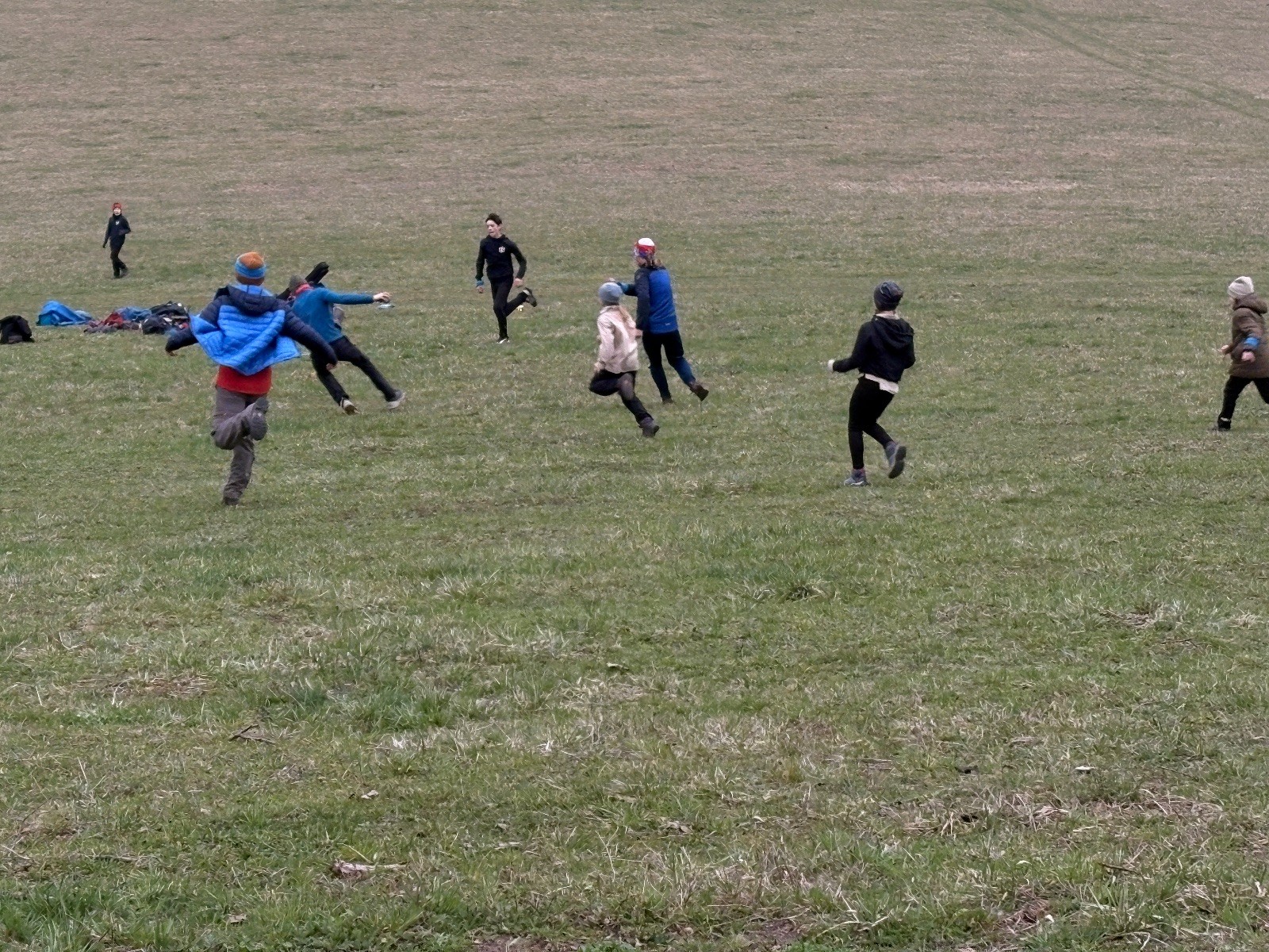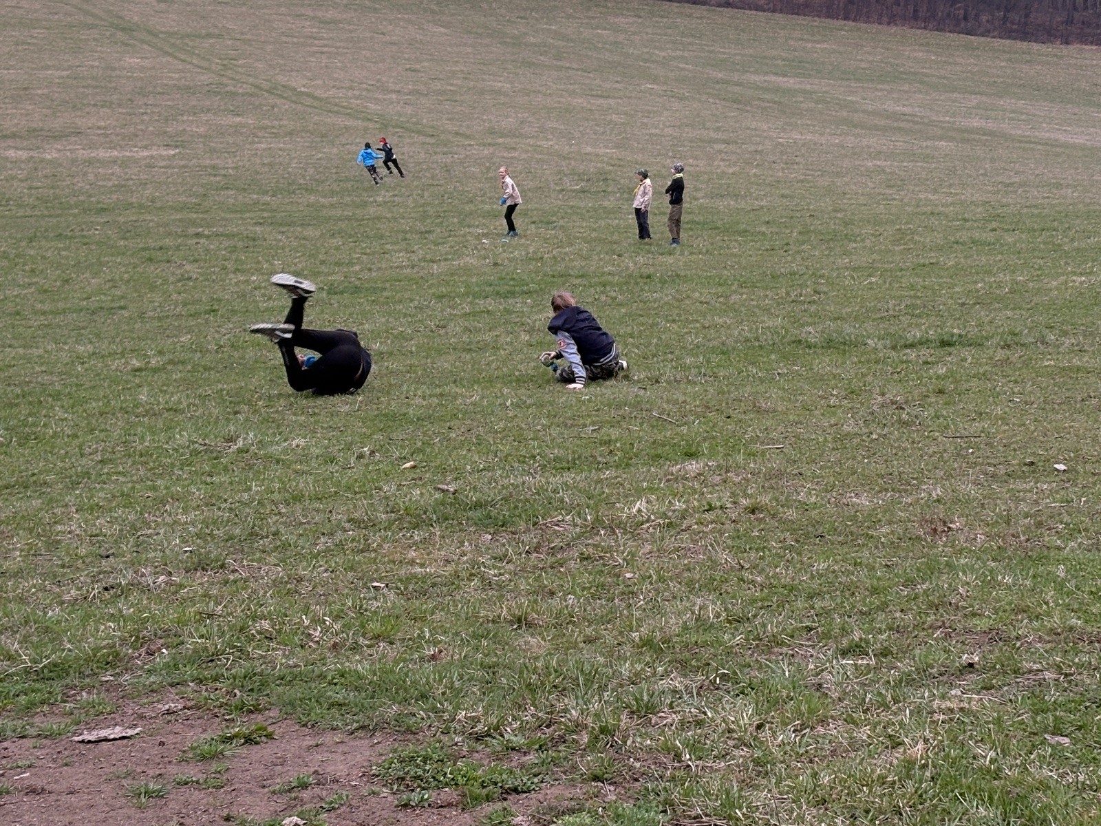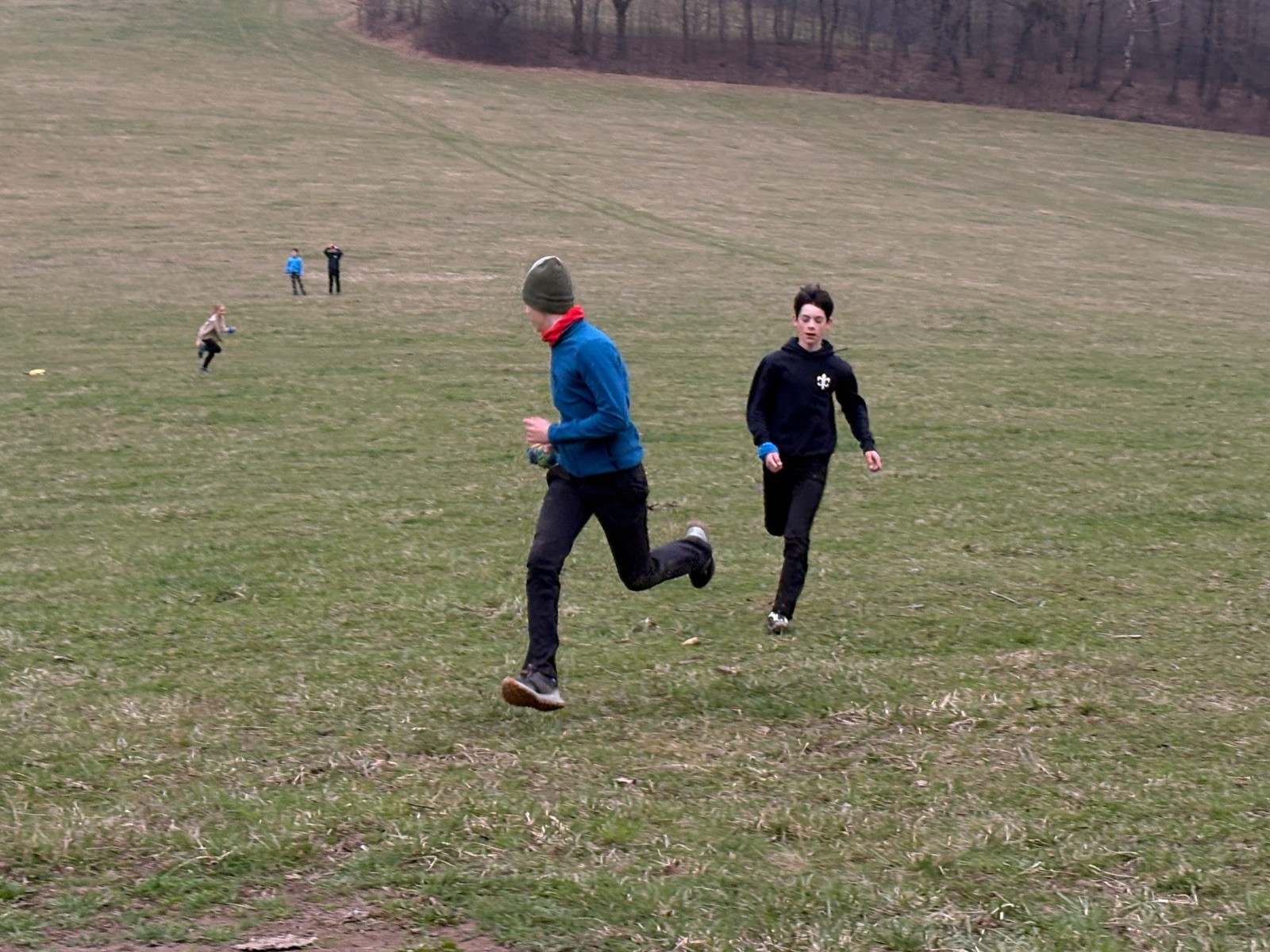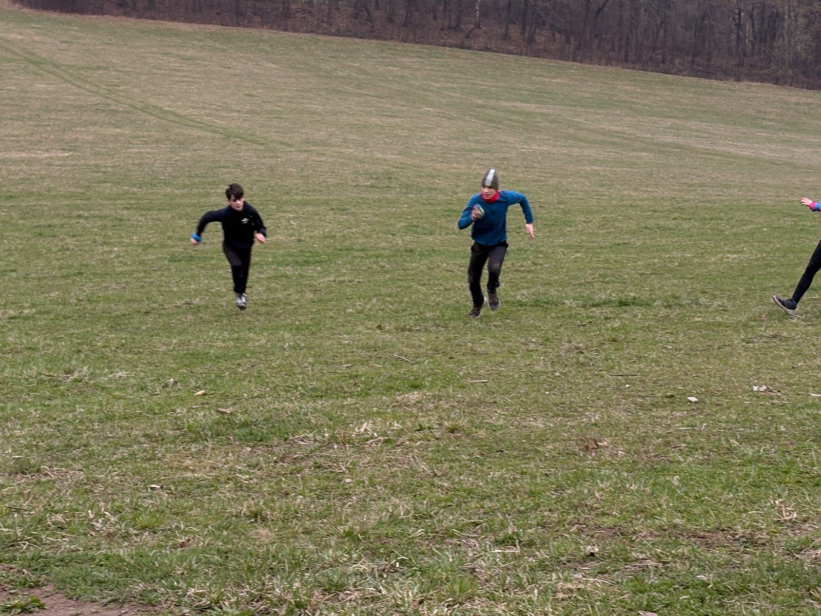Na louce pod hůrkou chystáme vlajkovanou, dělíme se na modrý a červený tým a jde se na věc. Já s Uzlem máme výmluvu. Uzla bolí nožička a mě málem zabila rýmička, takže neriskujeme a ujímáme se pozice čárových rozhodčích, kteří vlastě stejně nic nerozhodují. Spíš jen tak blbě koukáme, občas něco vyfotíme nebo fandíme tomu týmu, který nám je zrovna sympatický. Vlajkovaná je kvalitní. Hodně rychlá, vyrovnaná a nikdo to nemá zadara. Konečný výsledek je nakonec 3:2. Bohužel si nepamatuji zda to byli modří nebo červení, a tak si pomůžu alibistickým „Vyhráli ti lepší“.