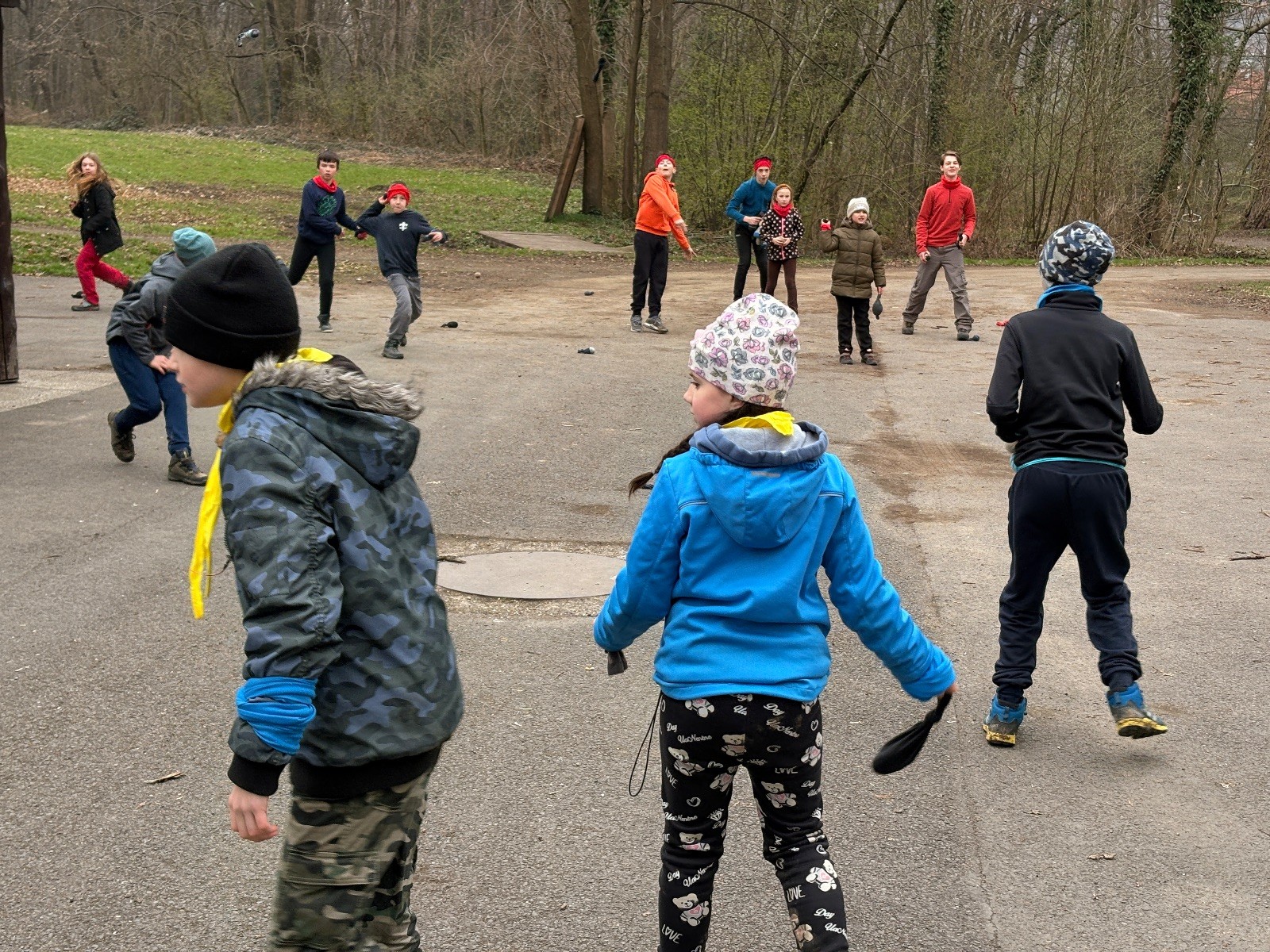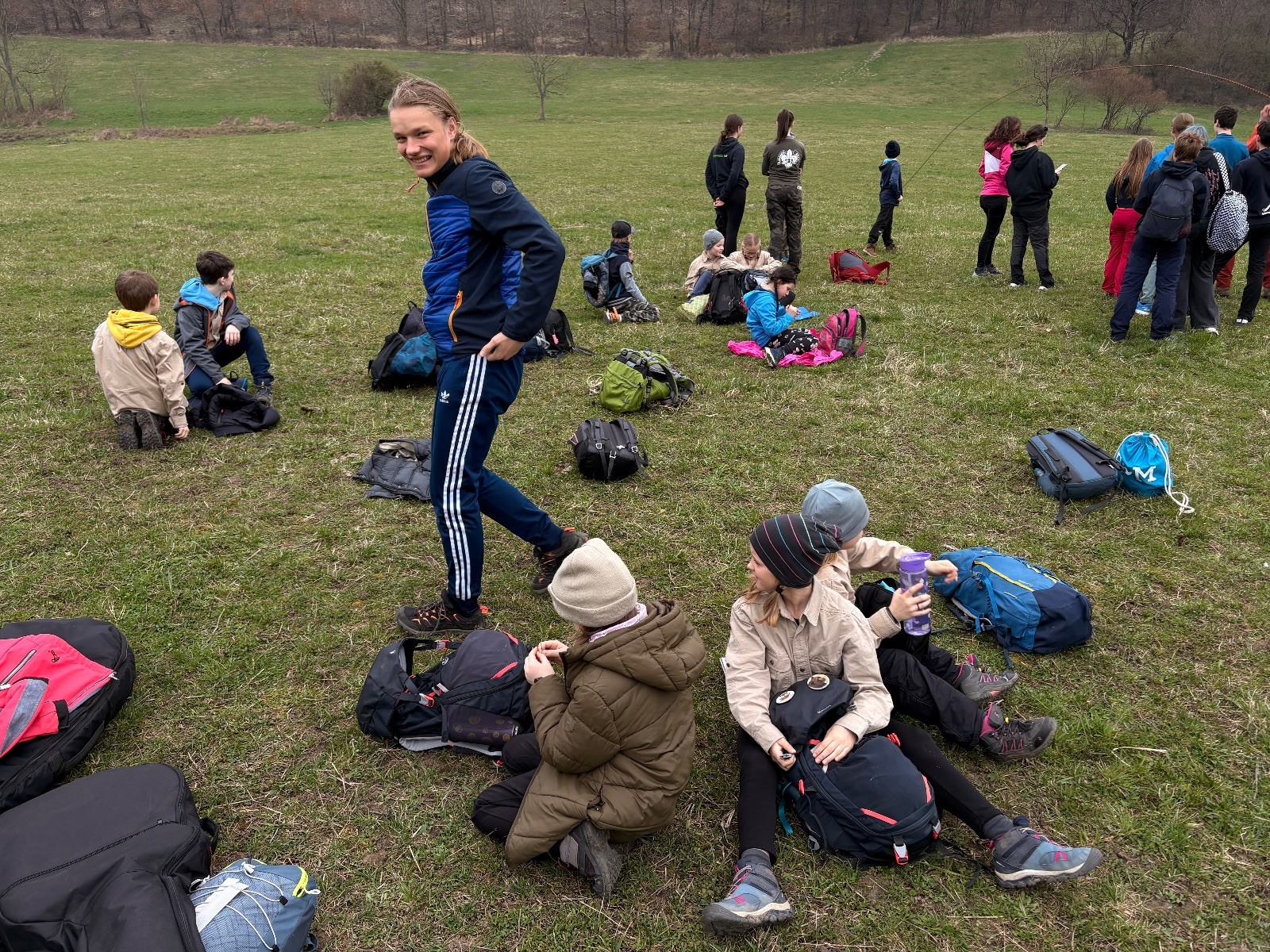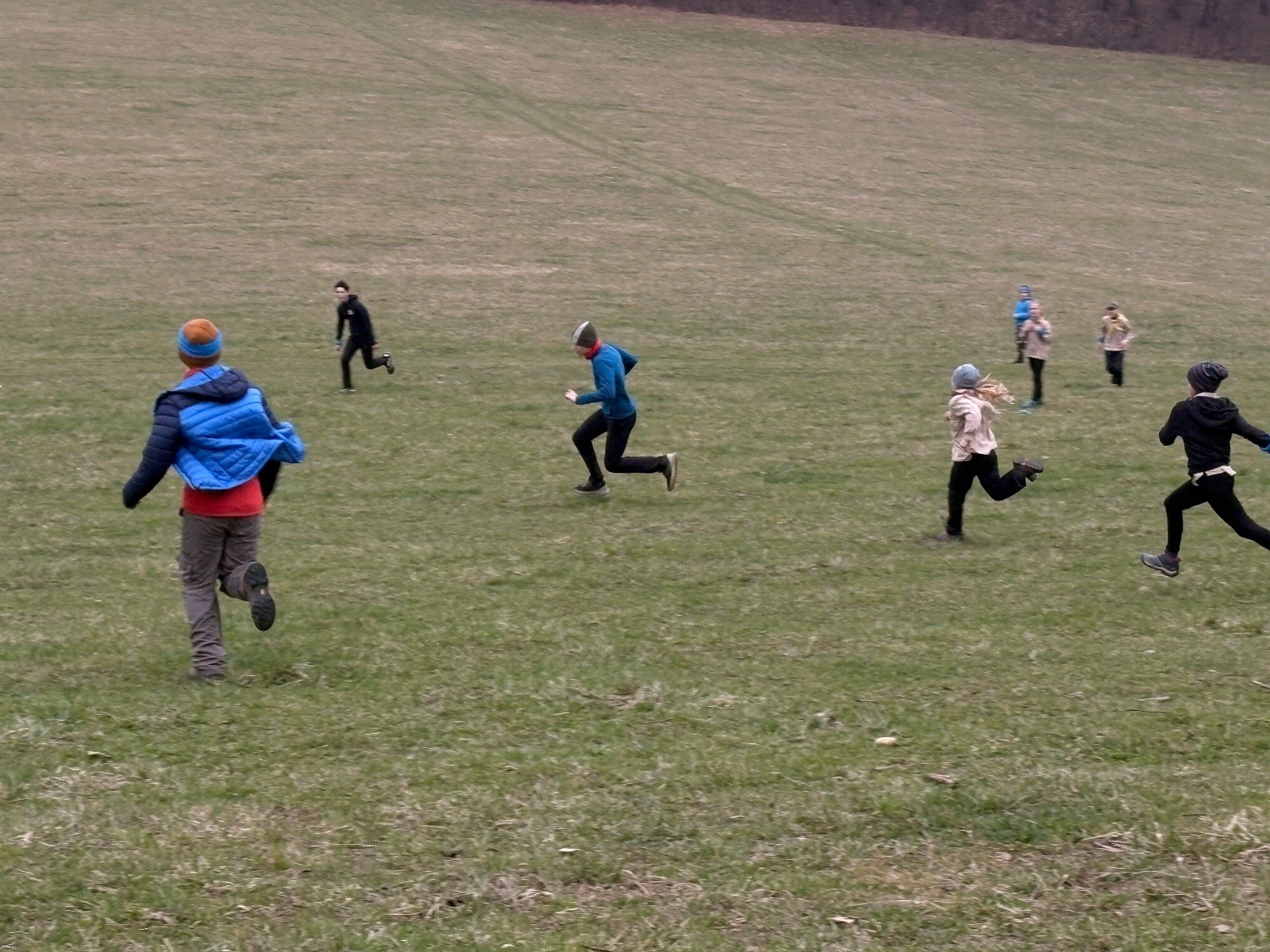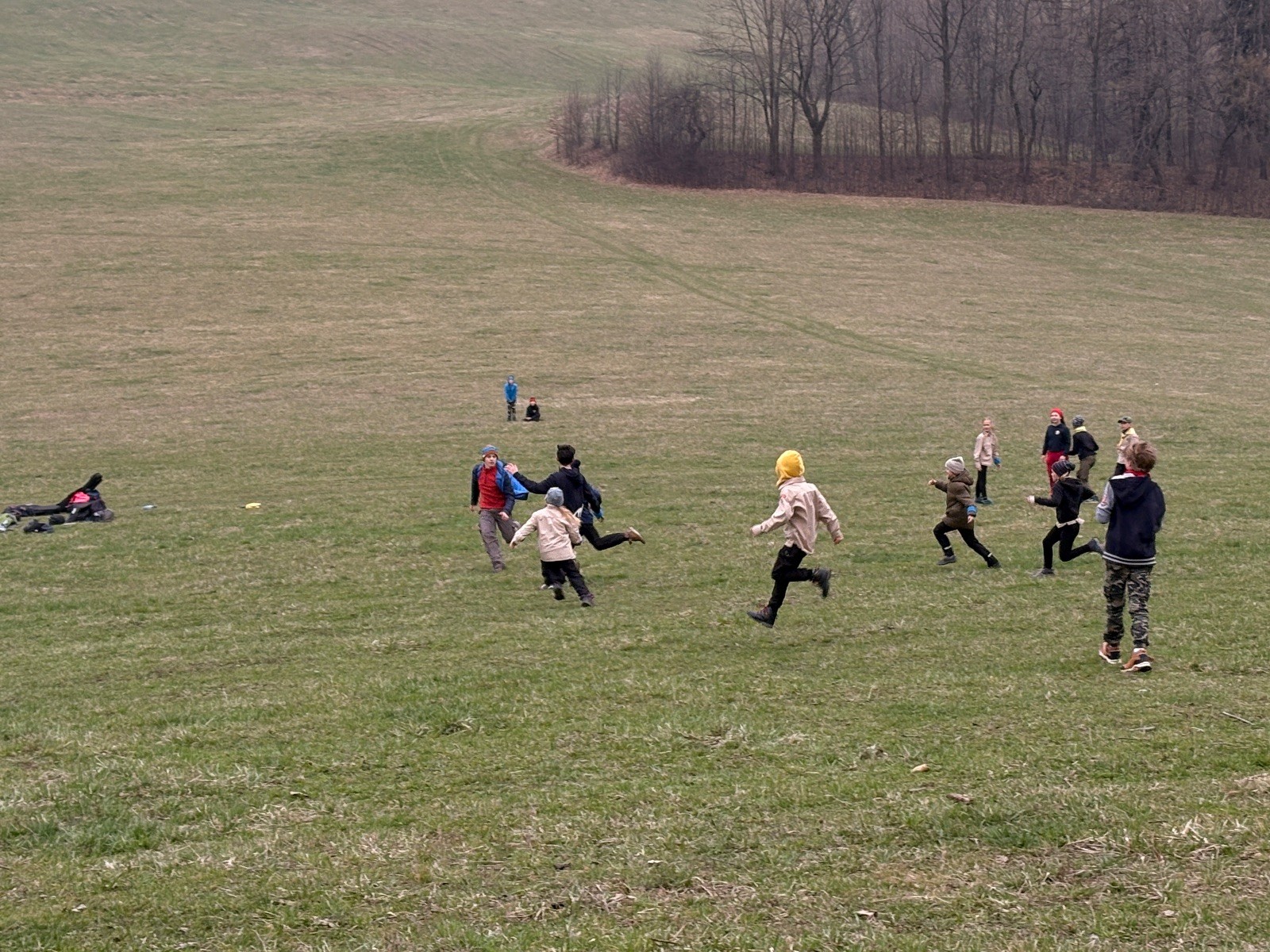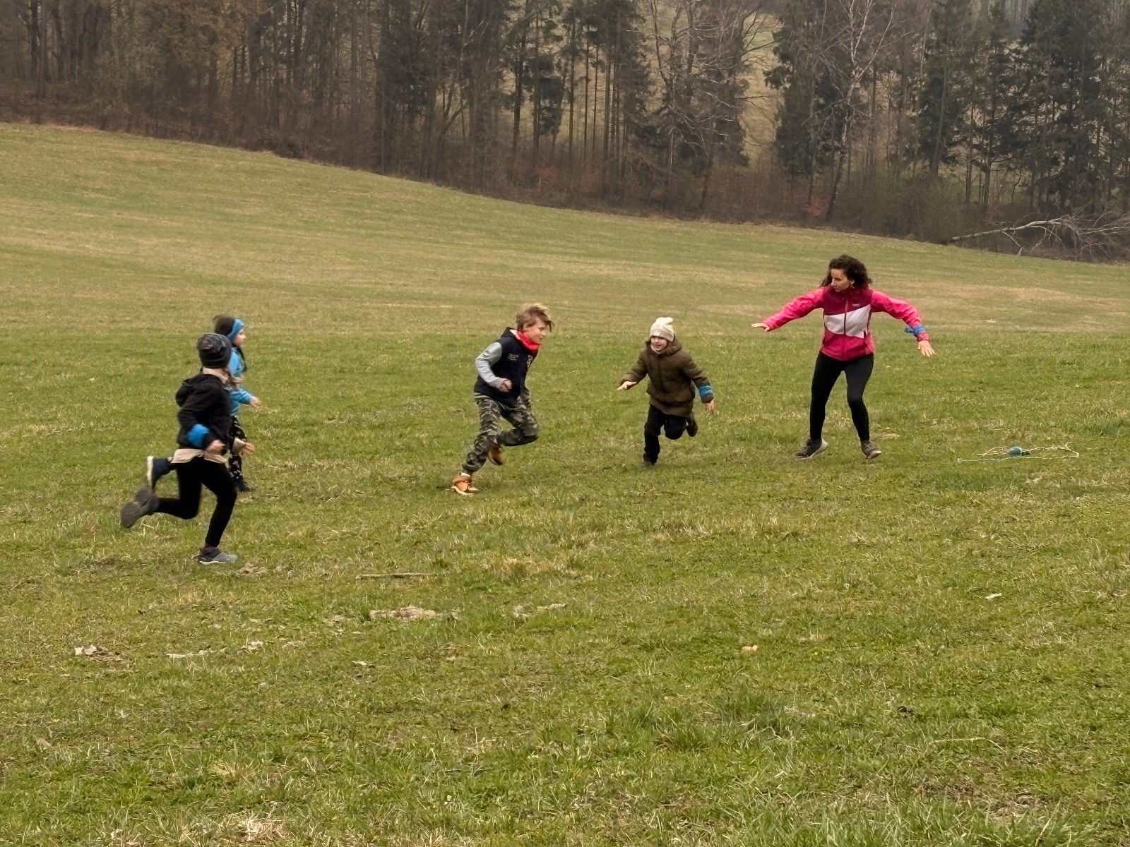 Na louce pod hůrkou chystáme vlajkovanou, dělíme se na modrý a červený tým a jde se na věc. Já s Uzlem máme výmluvu. Uzla bolí nožička a mě málem zabila rýmička, takže neriskujeme a ujímáme se pozice čárových rozhodčích, kteří vlastě stejně nic nerozhodují. Spíš jen tak blbě koukáme, občas něco vyfotíme nebo fandíme tomu týmu, který nám je zrovna sympatický. Vlajkovaná je kvalitní. Hodně rychlá, vyrovnaná a nikdo to nemá zadara. Konečný výsledek je nakonec 3:2. Bohužel si nepamatuji zda to byli modří nebo červení, a tak si pomůžu alibistickým „Vyhráli ti lepší“.