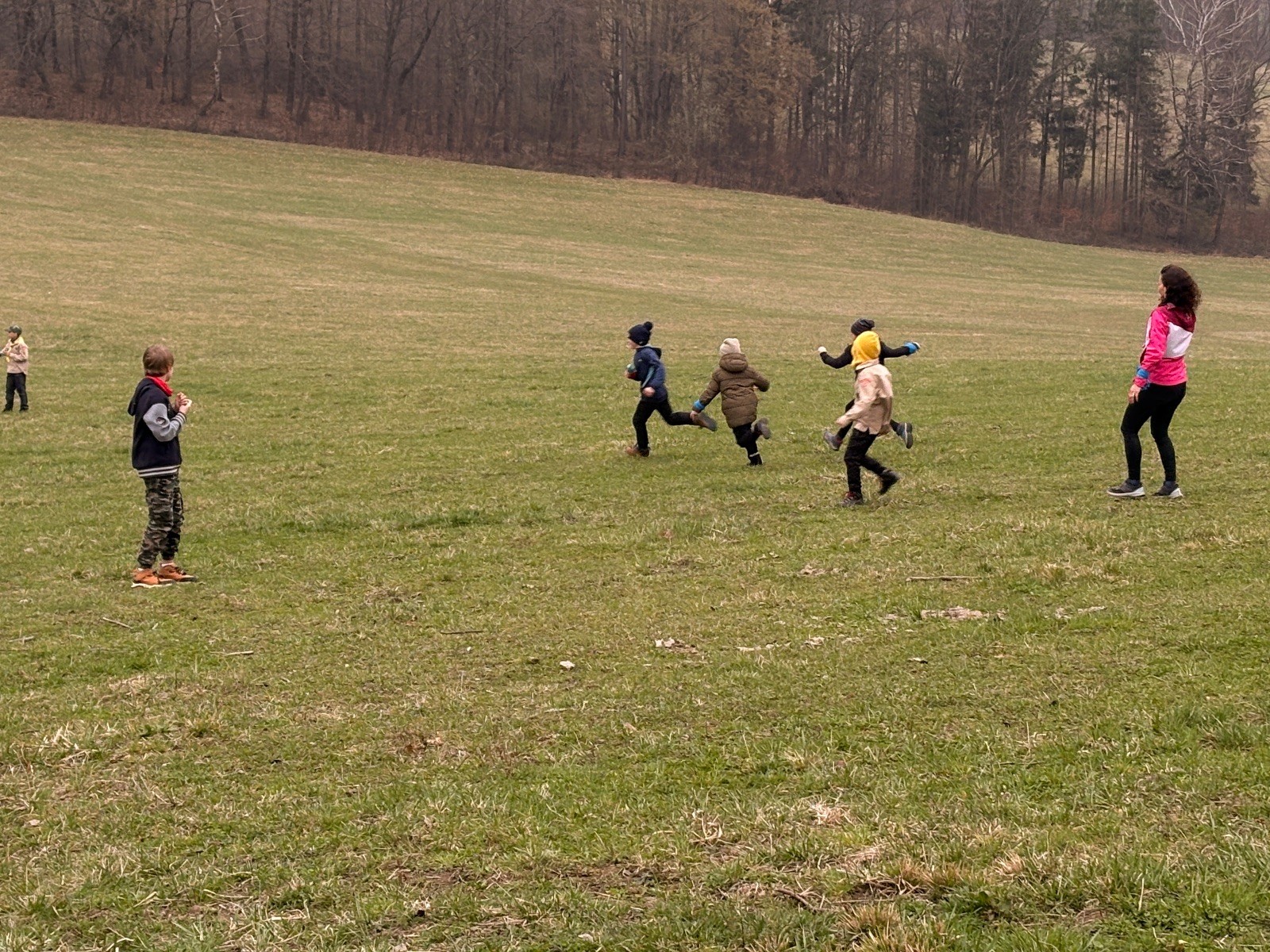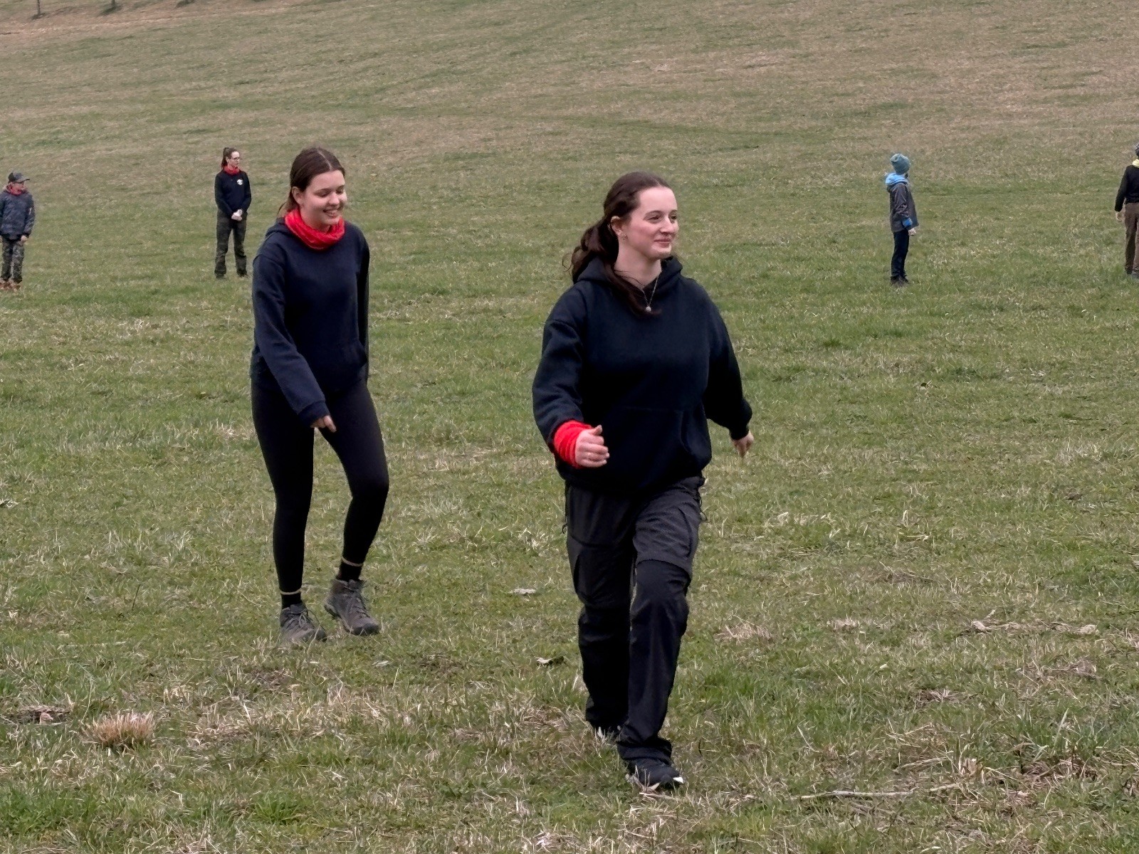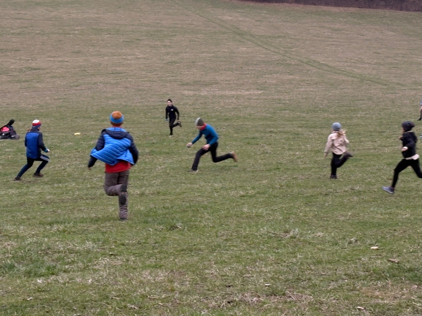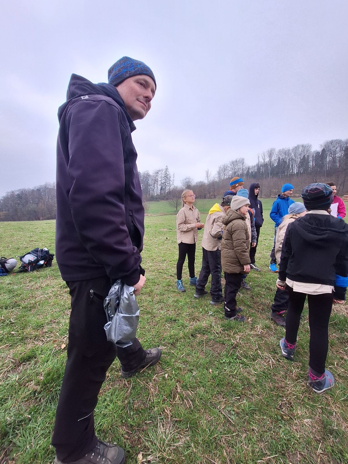 Na louce pod hůrkou chystáme vlajkovanou, dělíme se na modrý a červený tým a jde se na věc. Já s Uzlem máme výmluvu. Uzla bolí nožička a mě málem zabila rýmička, takže neriskujeme a ujímáme se pozice čárových rozhodčích, kteří vlastě stejně nic nerozhodují. Spíš jen tak blbě koukáme, občas něco vyfotíme nebo fandíme tomu týmu, který nám je zrovna sympatický. Vlajkovaná je kvalitní. Hodně rychlá, vyrovnaná a nikdo to nemá zadara. Konečný výsledek je nakonec 3:2. Bohužel si nepamatuji zda to byli modří nebo červení, a tak si pomůžu alibistickým „Vyhráli ti lepší“.