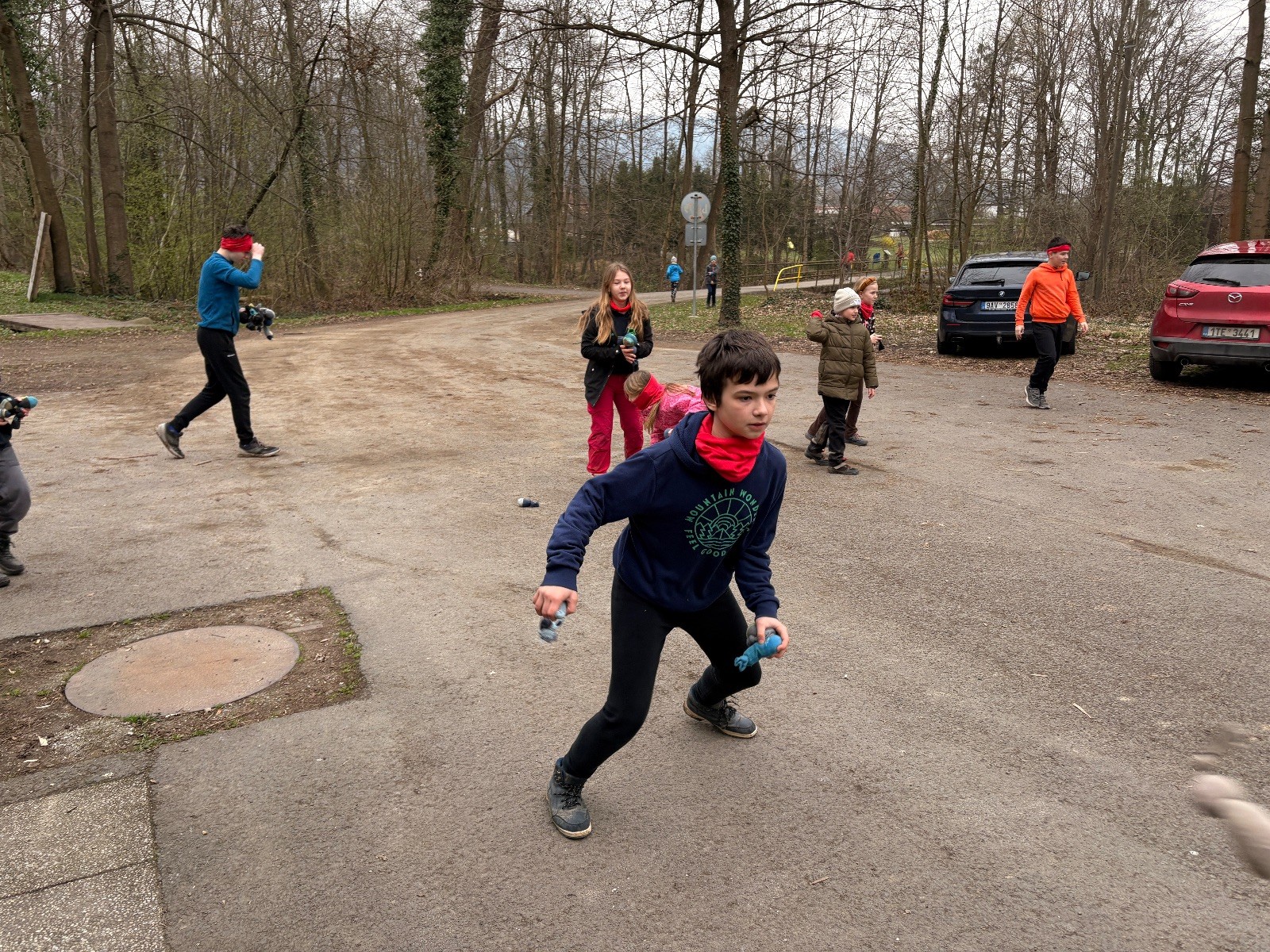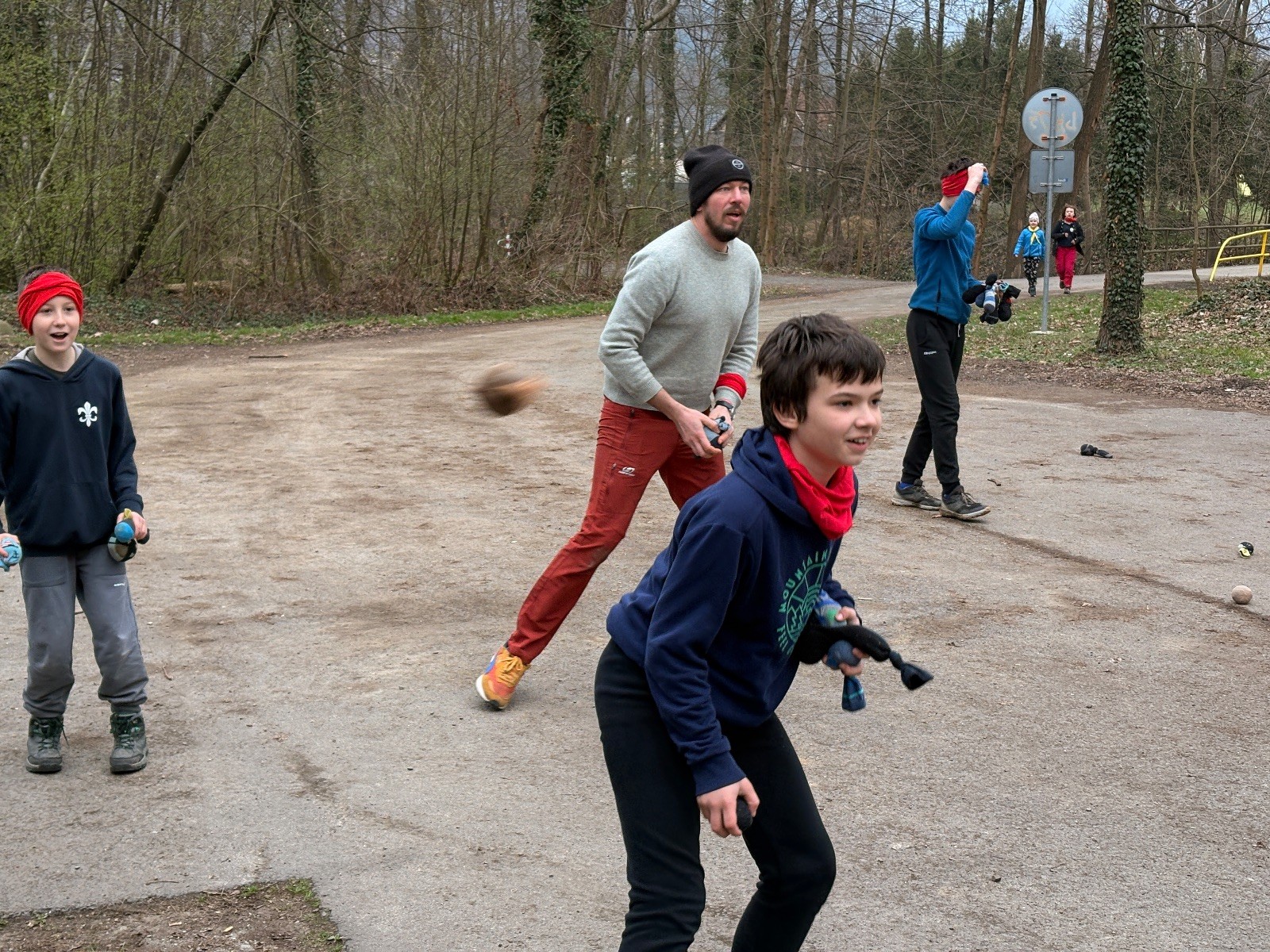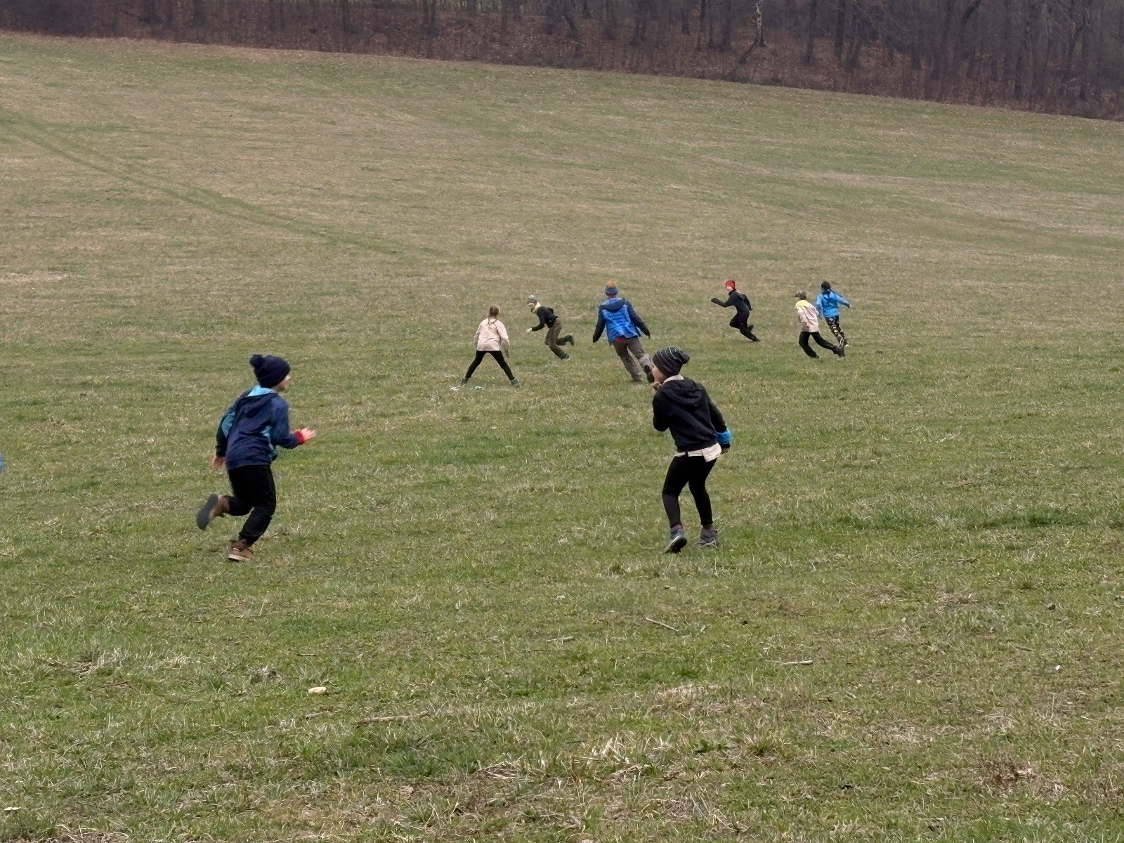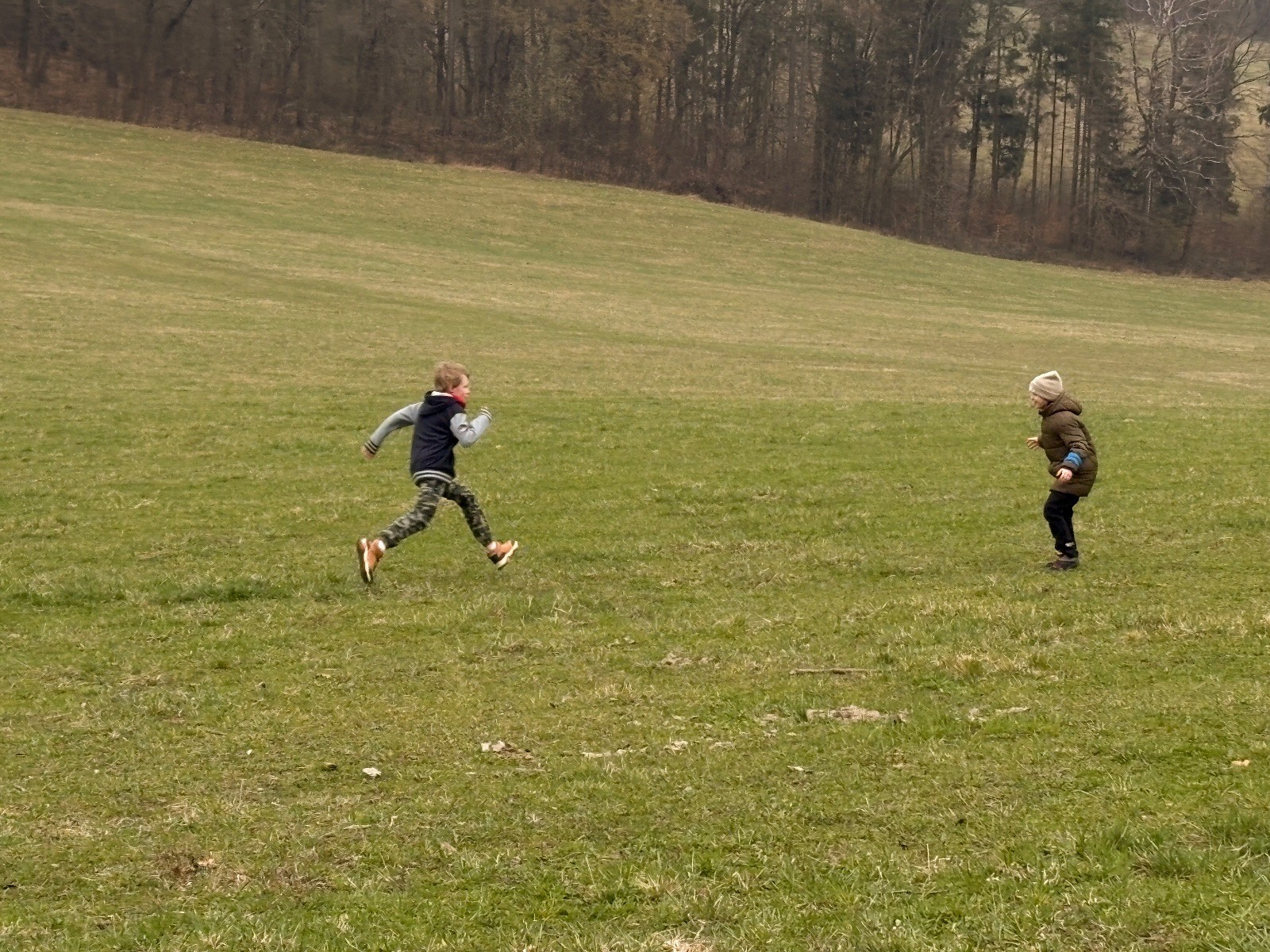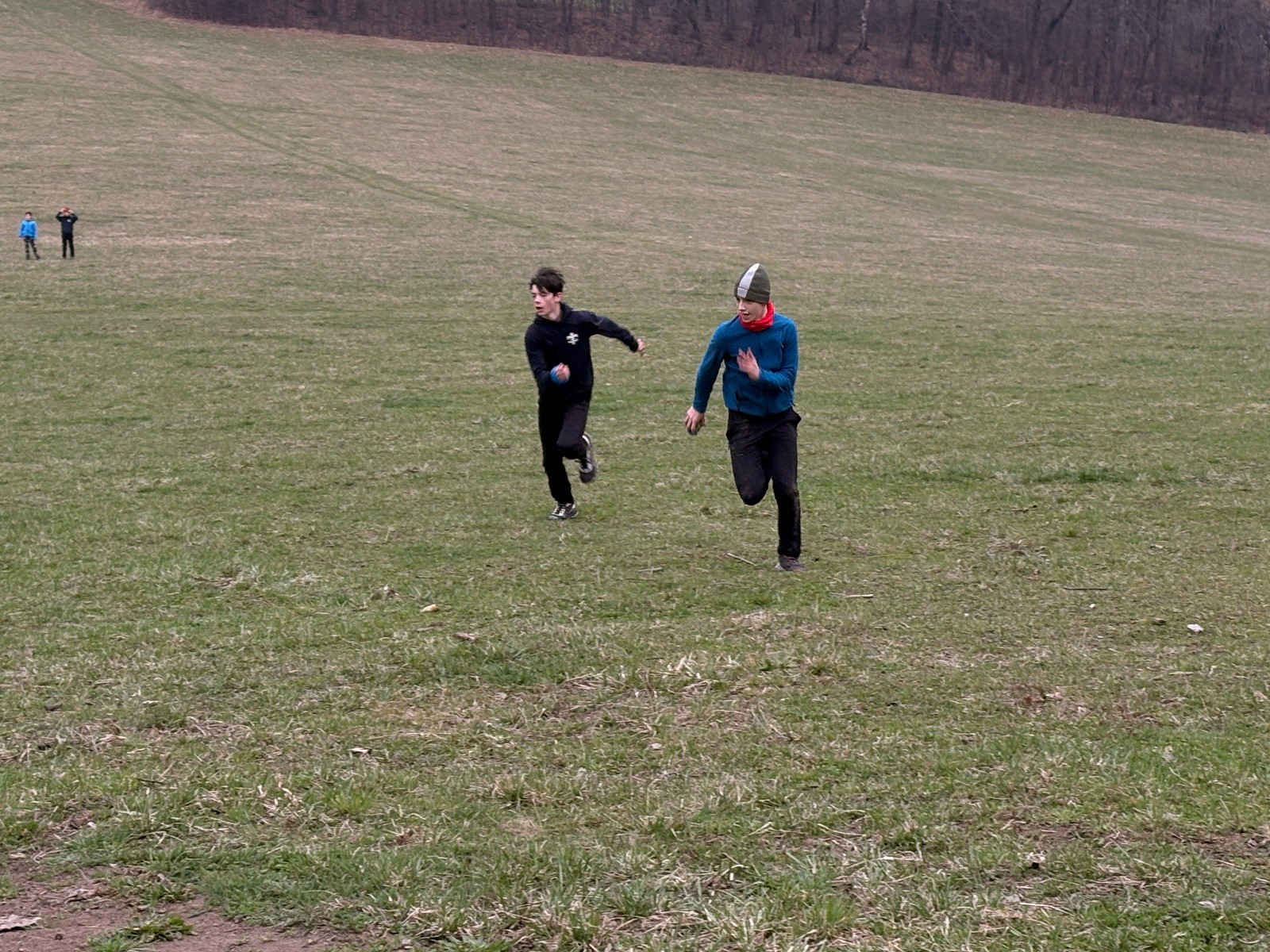 Na louce pod hůrkou chystáme vlajkovanou, dělíme se na modrý a červený tým a jde se na věc. Já s Uzlem máme výmluvu. Uzla bolí nožička a mě málem zabila rýmička, takže neriskujeme a ujímáme se pozice čárových rozhodčích, kteří vlastě stejně nic nerozhodují. Spíš jen tak blbě koukáme, občas něco vyfotíme nebo fandíme tomu týmu, který nám je zrovna sympatický. Vlajkovaná je kvalitní. Hodně rychlá, vyrovnaná a nikdo to nemá zadara. Konečný výsledek je nakonec 3:2. Bohužel si nepamatuji zda to byli modří nebo červení, a tak si pomůžu alibistickým „Vyhráli ti lepší“.