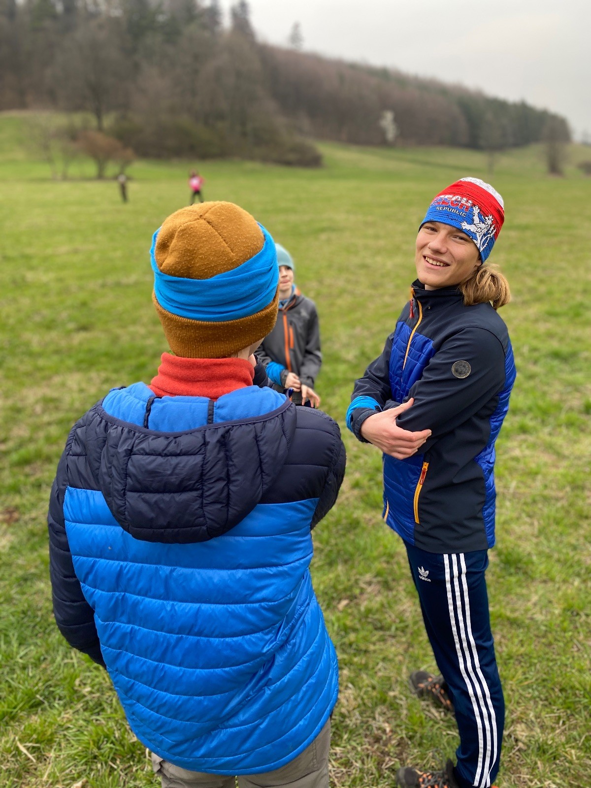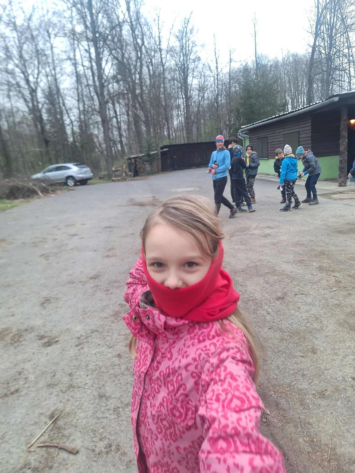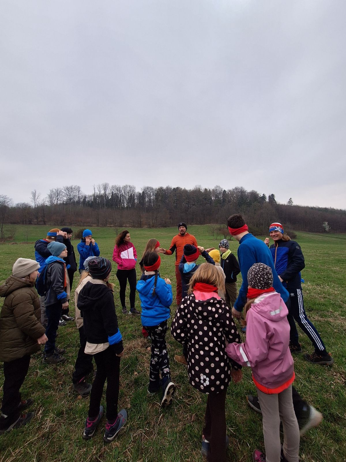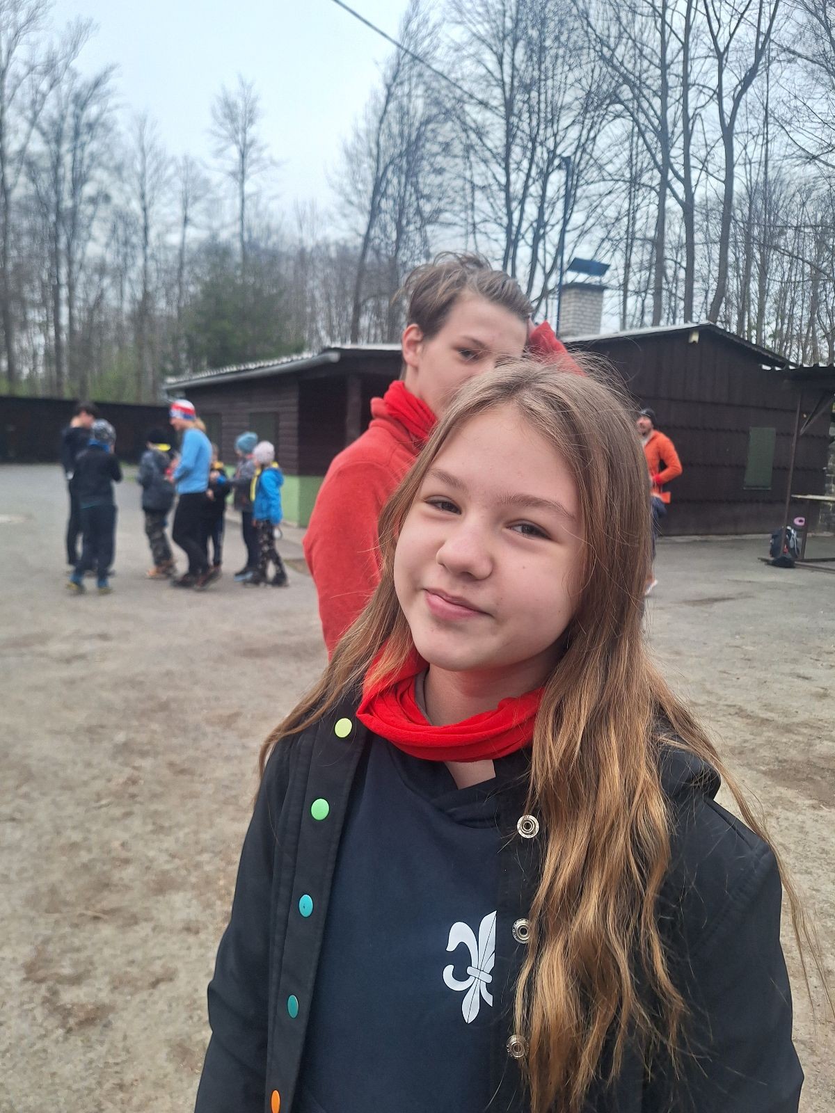 Scuka máme na myslivecké v 15 hodin. Postupně se slízáme, chystáme si místa na spaní nebo z povzdálí obdivujeme buchty a muffiny, které nám přivezli rodiče na snídani. Balíme věci na vlajkovanou a Tuleni nasazujeme na hlavu kotlík, který potřebujeme taky vzít. Docela ji to sekne a připomnělo mi to módní kreace z královské svatby Kate a Williama. Vyrážíme směrem větřkovský lom a cestou nám začíná lehce poprchávat. Ne tolik, aby stálo za to vytahovat pláštěnku, ale dost na to, aby nás to štvalo. Koukáme na radar a zjišťujeme, že mraky jsou východní, takže to jen potvrzuje staré moudro, že z východu k nám nikdy nic dobrého nepřišlo. Cestou začínají Bať bolet nožičky a ocitá se tak v bezvýchodné situaci, protože cesta do lomu i na zpět by znamenala jen další chůzi a další bolení nožiček. Marťan spatřil ptáka co se třepotá na místě jako dron co ztrácí signál a neví kudy se vydat. Marťan to tipuje na epileptický záchvat. S ostatníma tipujeme, že by to mohla být poštolka, která takhle loví - prostě taková malá rozcvička před útokem a jídlem. Ale fógl je příliš daleko na to, abychom byli schopni s jistotou říct, že to je poštolka. Varianatu káně s epilepťákem tak nemůžeme zcela vyloučit.