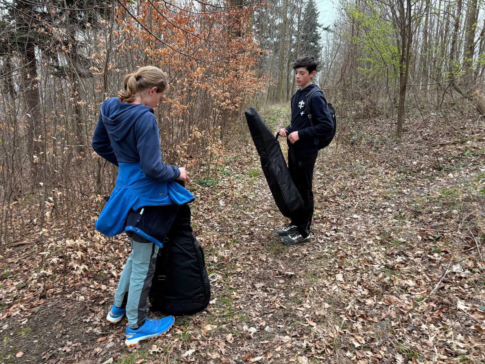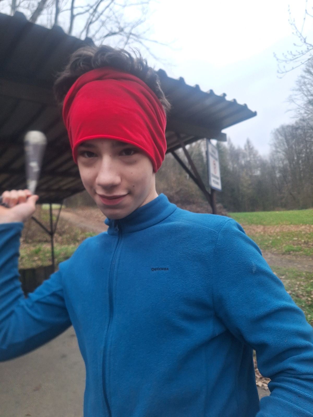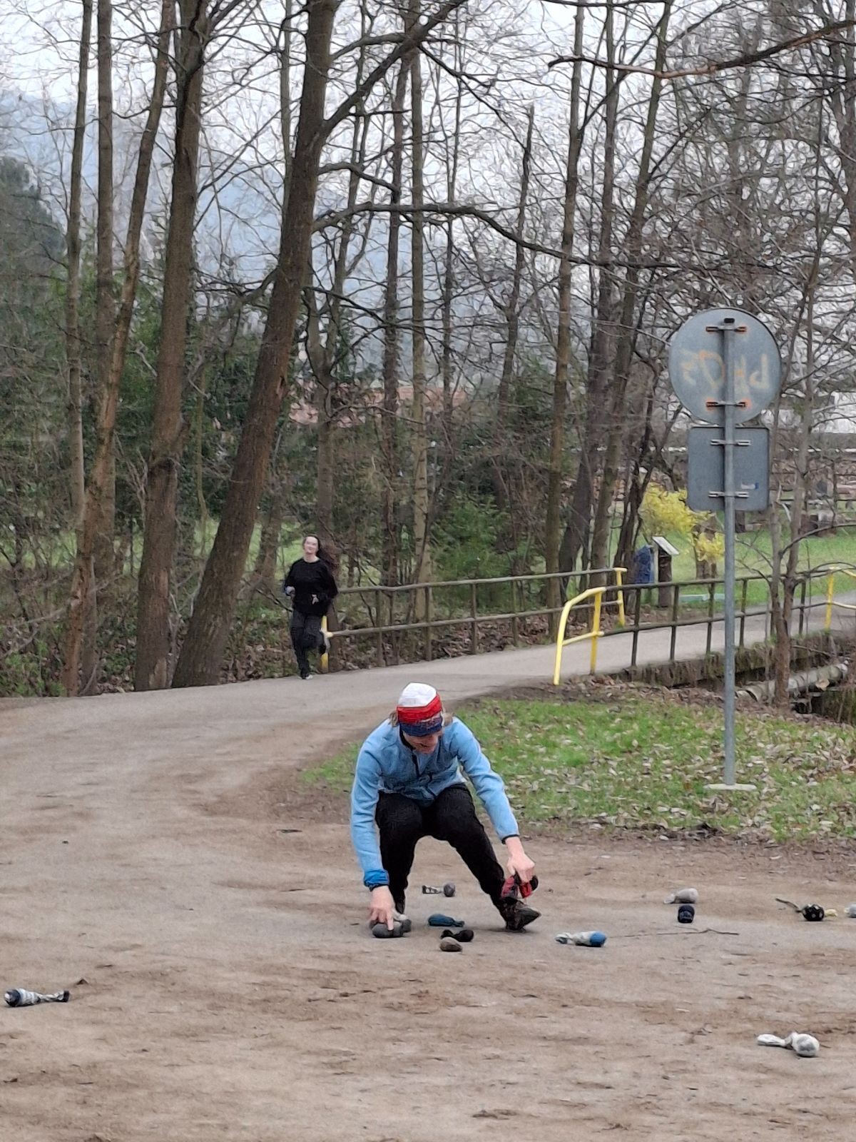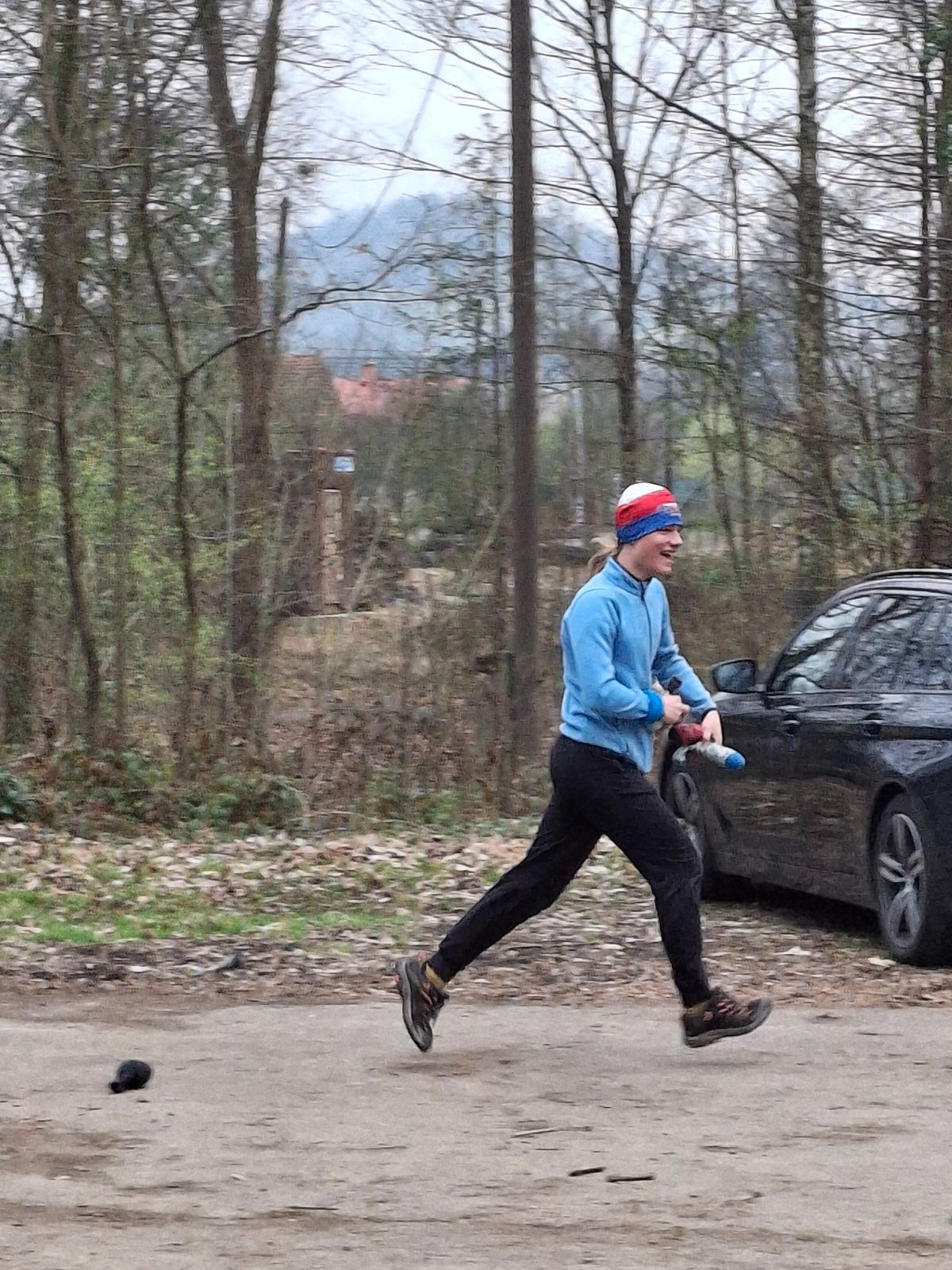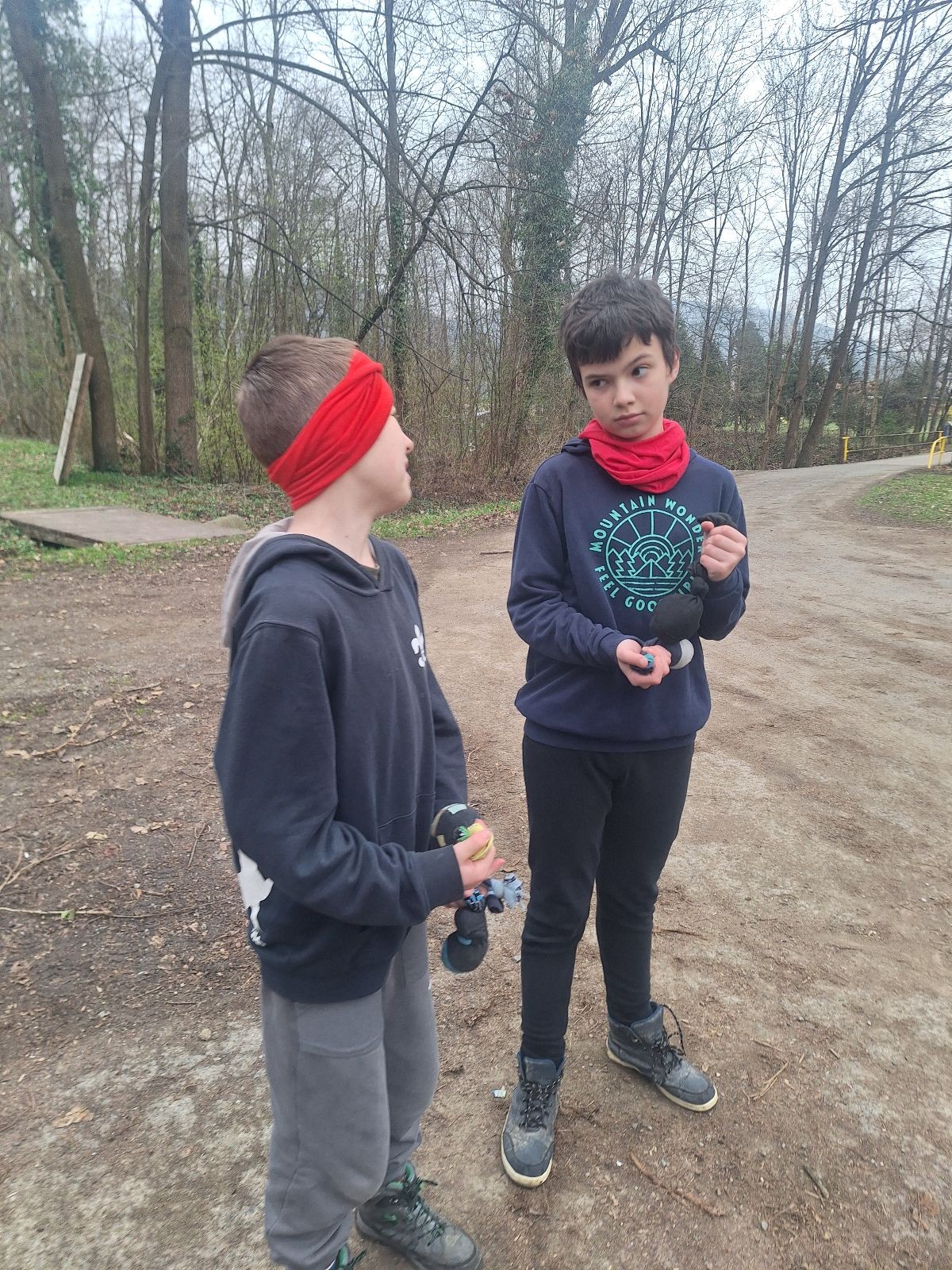 Scuka máme na myslivecké v 15 hodin. Postupně se slízáme, chystáme si místa na spaní nebo z povzdálí obdivujeme buchty a muffiny, které nám přivezli rodiče na snídani. Balíme věci na vlajkovanou a Tuleni nasazujeme na hlavu kotlík, který potřebujeme taky vzít. Docela ji to sekne a připomnělo mi to módní kreace z královské svatby Kate a Williama. Vyrážíme směrem větřkovský lom a cestou nám začíná lehce poprchávat. Ne tolik, aby stálo za to vytahovat pláštěnku, ale dost na to, aby nás to štvalo. Koukáme na radar a zjišťujeme, že mraky jsou východní, takže to jen potvrzuje staré moudro, že z východu k nám nikdy nic dobrého nepřišlo. Cestou začínají Bať bolet nožičky a ocitá se tak v bezvýchodné situaci, protože cesta do lomu i na zpět by znamenala jen další chůzi a další bolení nožiček. Marťan spatřil ptáka co se třepotá na místě jako dron co ztrácí signál a neví kudy se vydat. Marťan to tipuje na epileptický záchvat. S ostatníma tipujeme, že by to mohla být poštolka, která takhle loví - prostě taková malá rozcvička před útokem a jídlem. Ale fógl je příliš daleko na to, abychom byli schopni s jistotou říct, že to je poštolka. Varianatu káně s epilepťákem tak nemůžeme zcela vyloučit.
