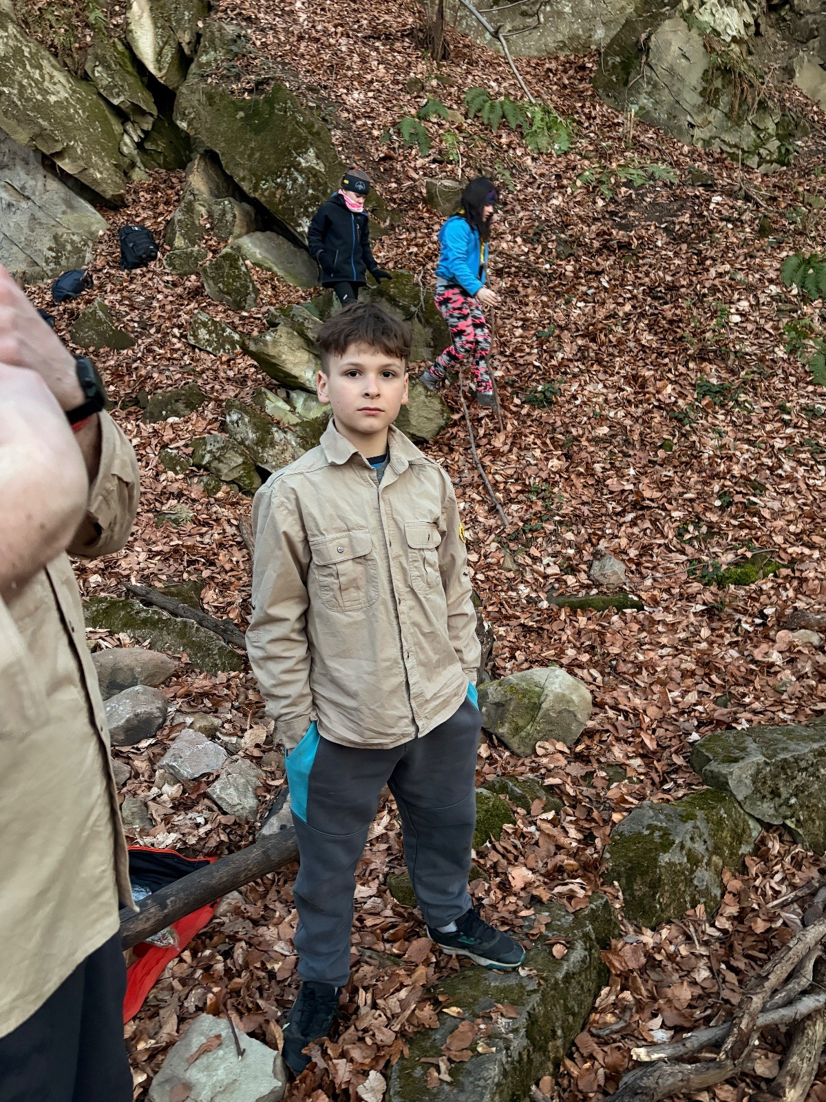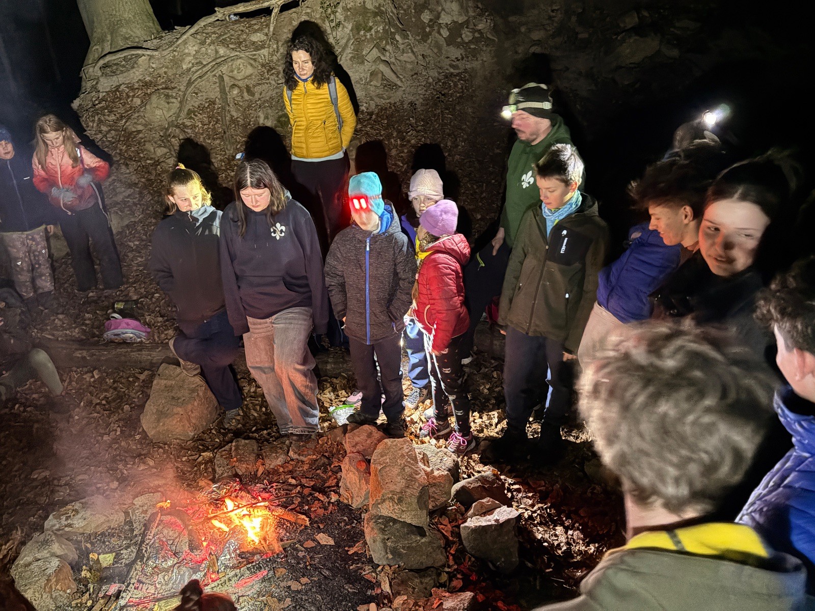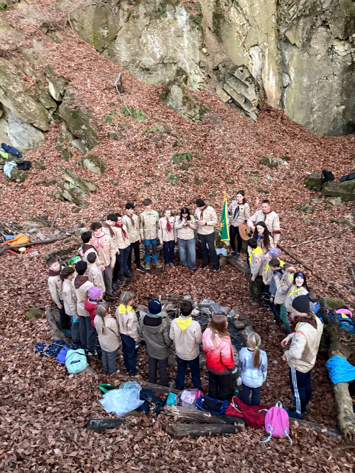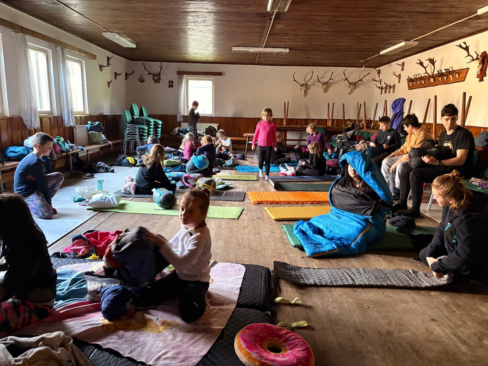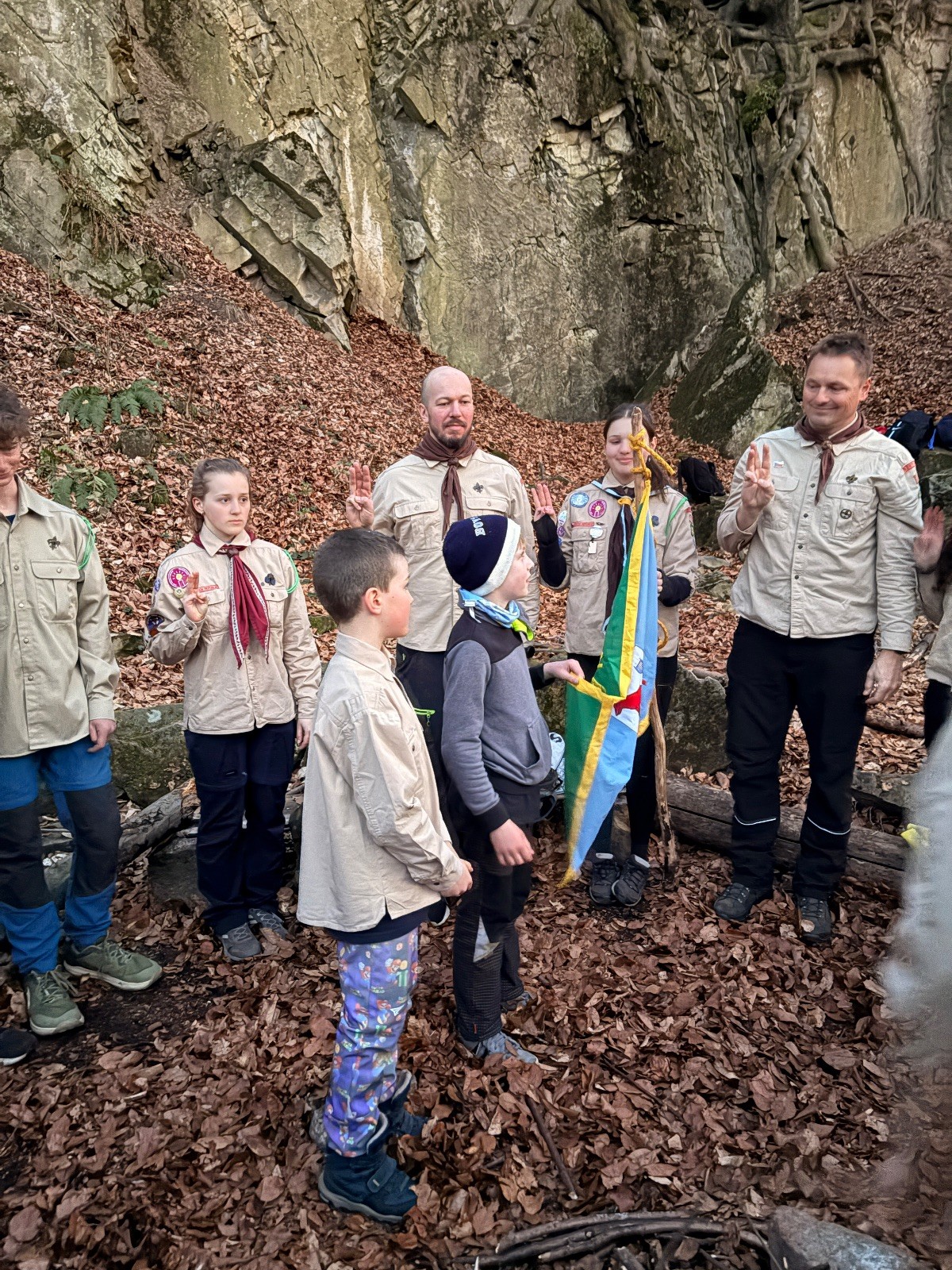Čas nás lehce tlačil, takže bylo potřeba vyběhnout krpál nahoru do kopce a zase hezky dolů směrem do lomu. Zde všichni kdo mohli, posbírali okolní suché dřevo a mohlo se jít na oheň. Při znění skautské písně Tulácký ráno se nám krásně rozhoříval táborák a po slibu všech malých světlušek, vlčat a jednoho skauta se z malého ohýnku stal užitkový oheň pro hermelíny a špekáčky. Také Klepí se opět činil a na rošt hodil zelí, které se zde dělalo až do posledního uhlíku. Valča si vzala na starost Hágena, hru, která tvořila v tmavém lese tajemnou atmosféru.Zhasili jsme žhavé uhlíky a po družinkách se vydali směr myslivecká chata. Zde si všichni poctivci vydrhli zoubky a při Uzlem puštěném táborovém filmu 2025 jsme se všichni pomalu oddali spánku.