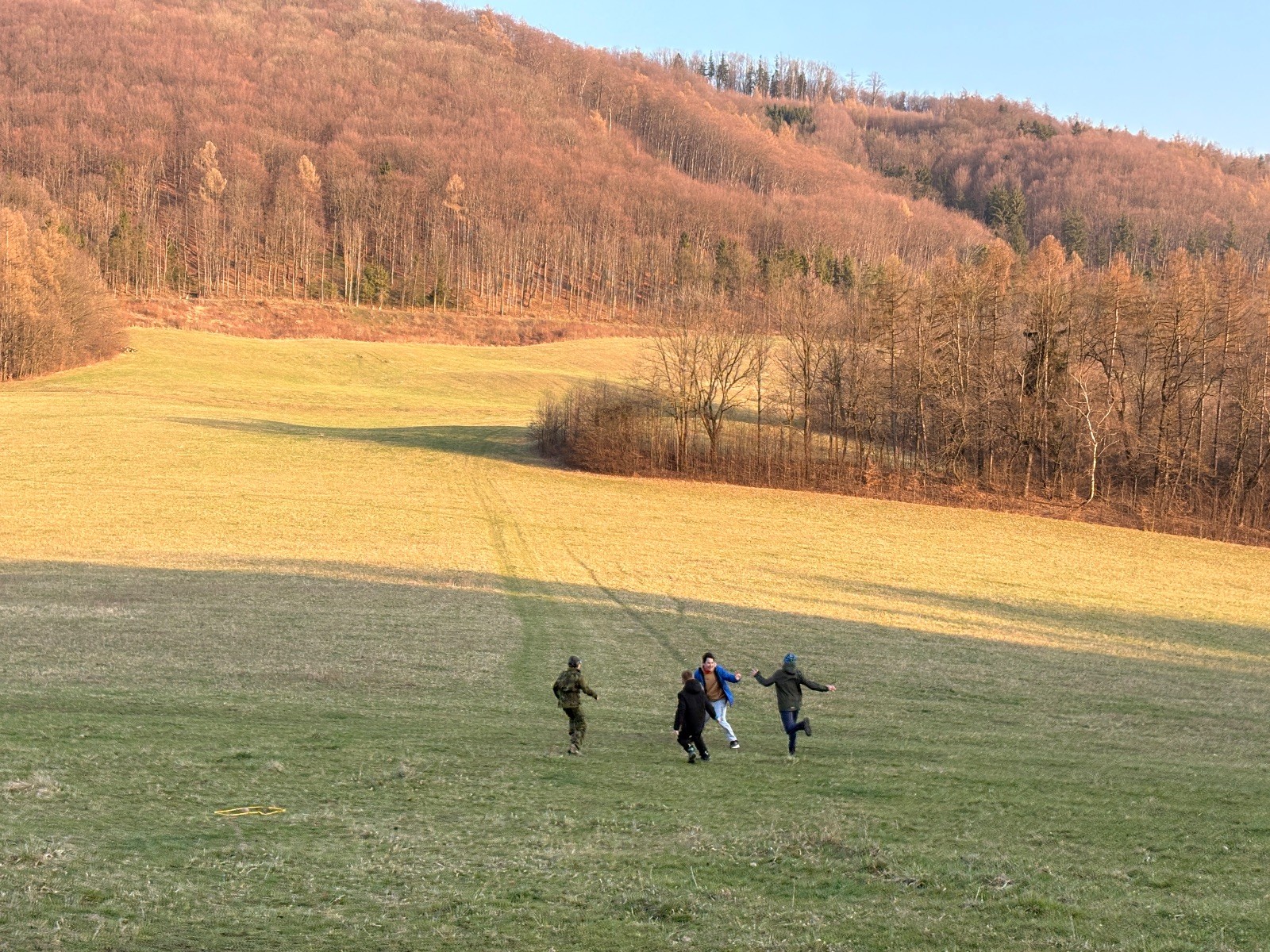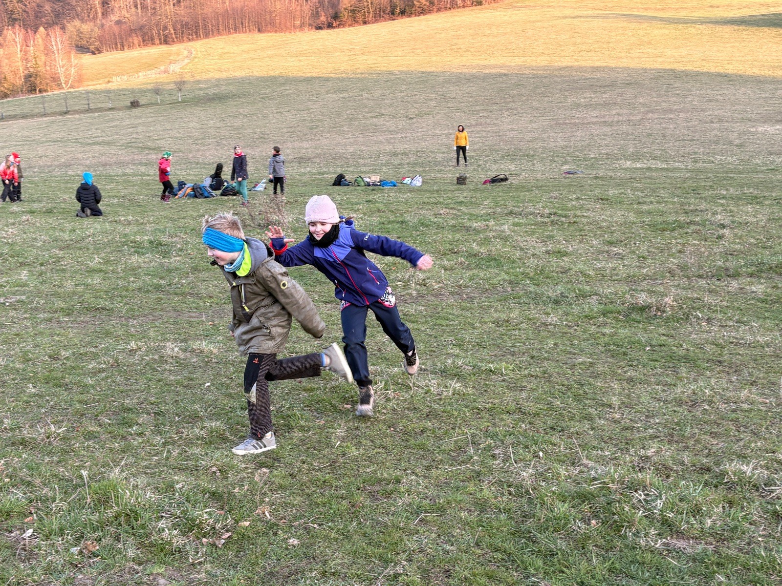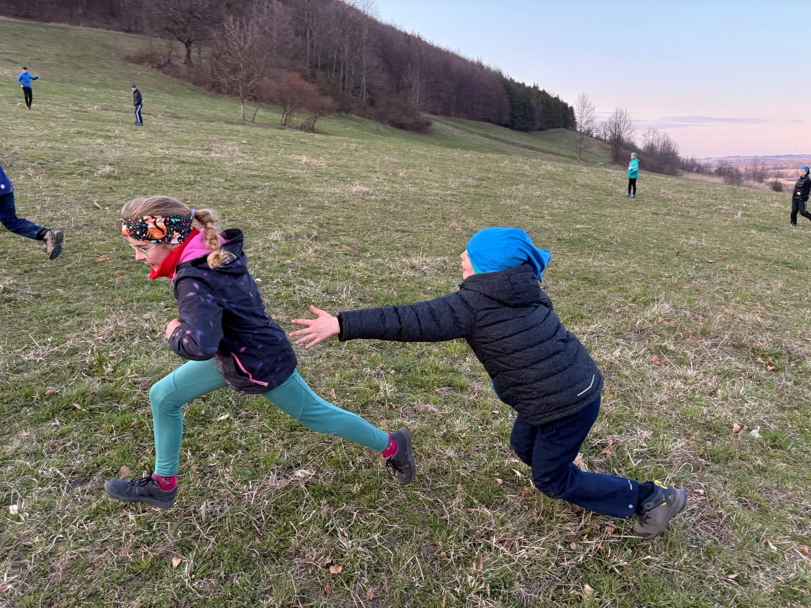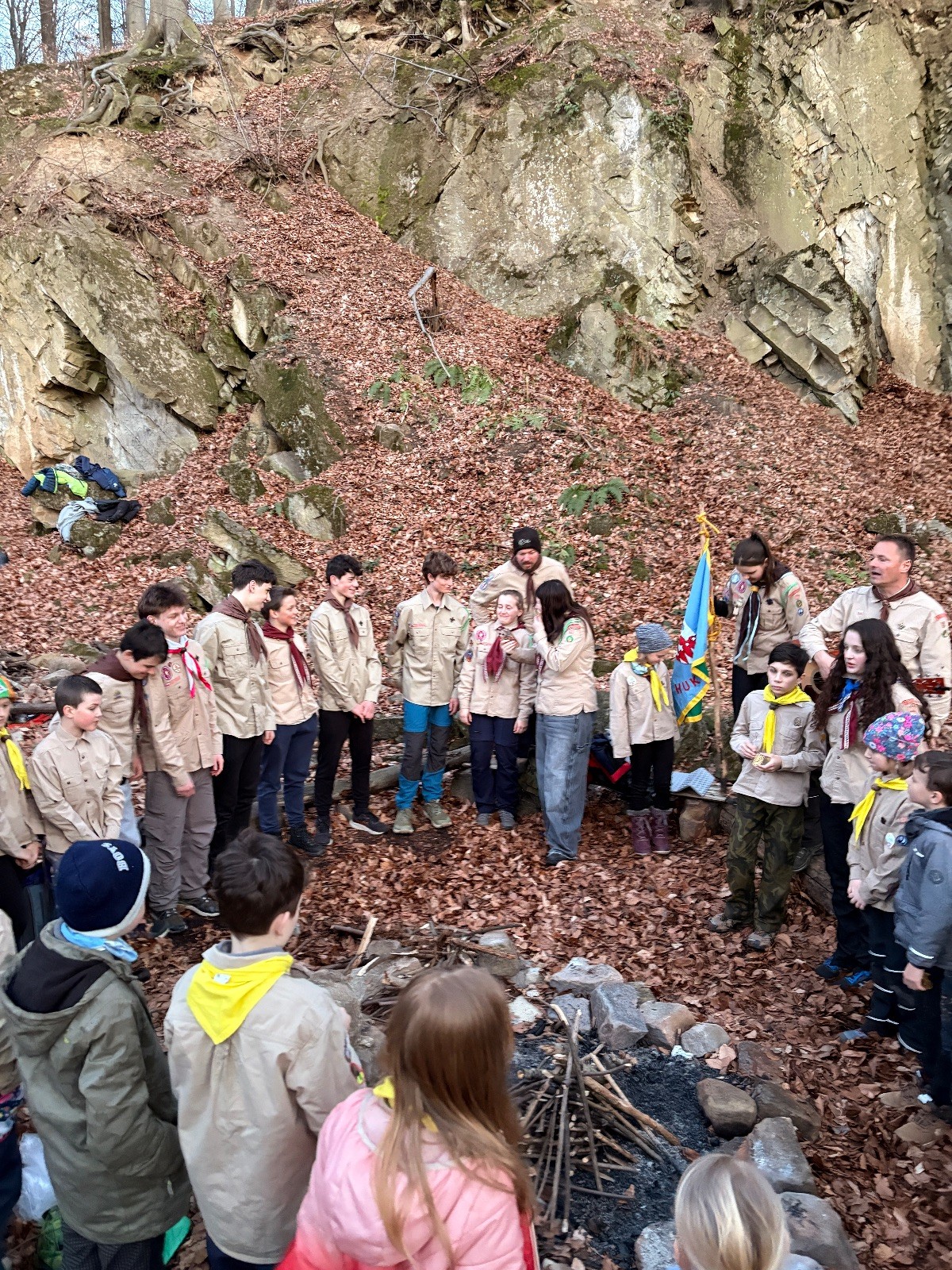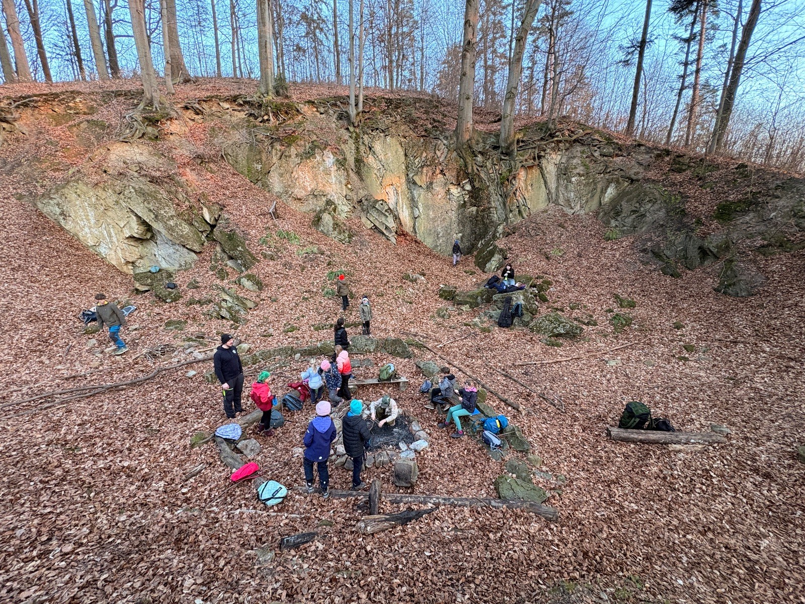 Čas nás lehce tlačil, takže bylo potřeba vyběhnout krpál nahoru do kopce a zase hezky dolů směrem do lomu. Zde všichni kdo mohli, posbírali okolní suché dřevo a mohlo se jít na oheň. Při znění skautské písně Tulácký ráno se nám krásně rozhoříval táborák a po slibu všech malých světlušek, vlčat a jednoho skauta se z malého ohýnku stal užitkový oheň pro hermelíny a špekáčky. Také Klepí se opět činil a na rošt hodil zelí, které se zde dělalo až do posledního uhlíku. Valča si vzala na starost Hágena, hru, která tvořila v tmavém lese tajemnou atmosféru.Zhasili jsme žhavé uhlíky a po družinkách se vydali směr myslivecká chata. Zde si všichni poctivci vydrhli zoubky a při Uzlem puštěném táborovém filmu 2025 jsme se všichni pomalu oddali spánku.