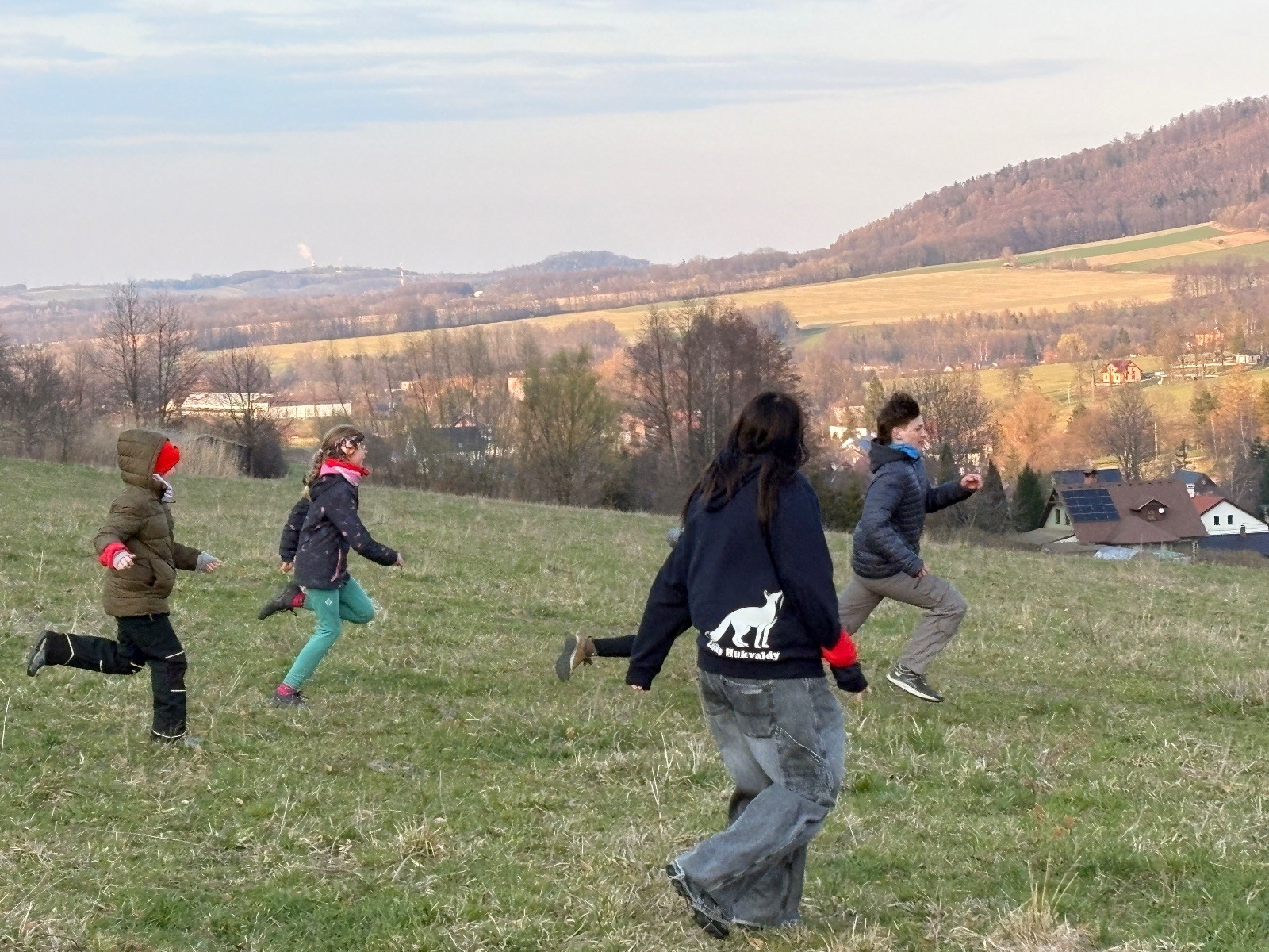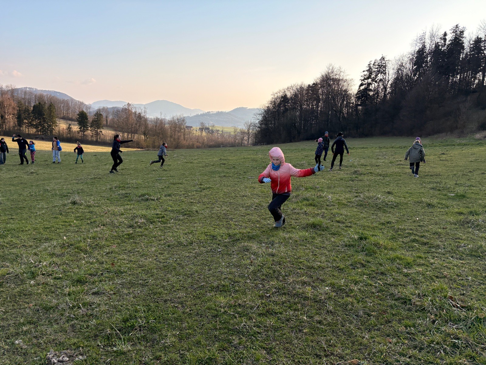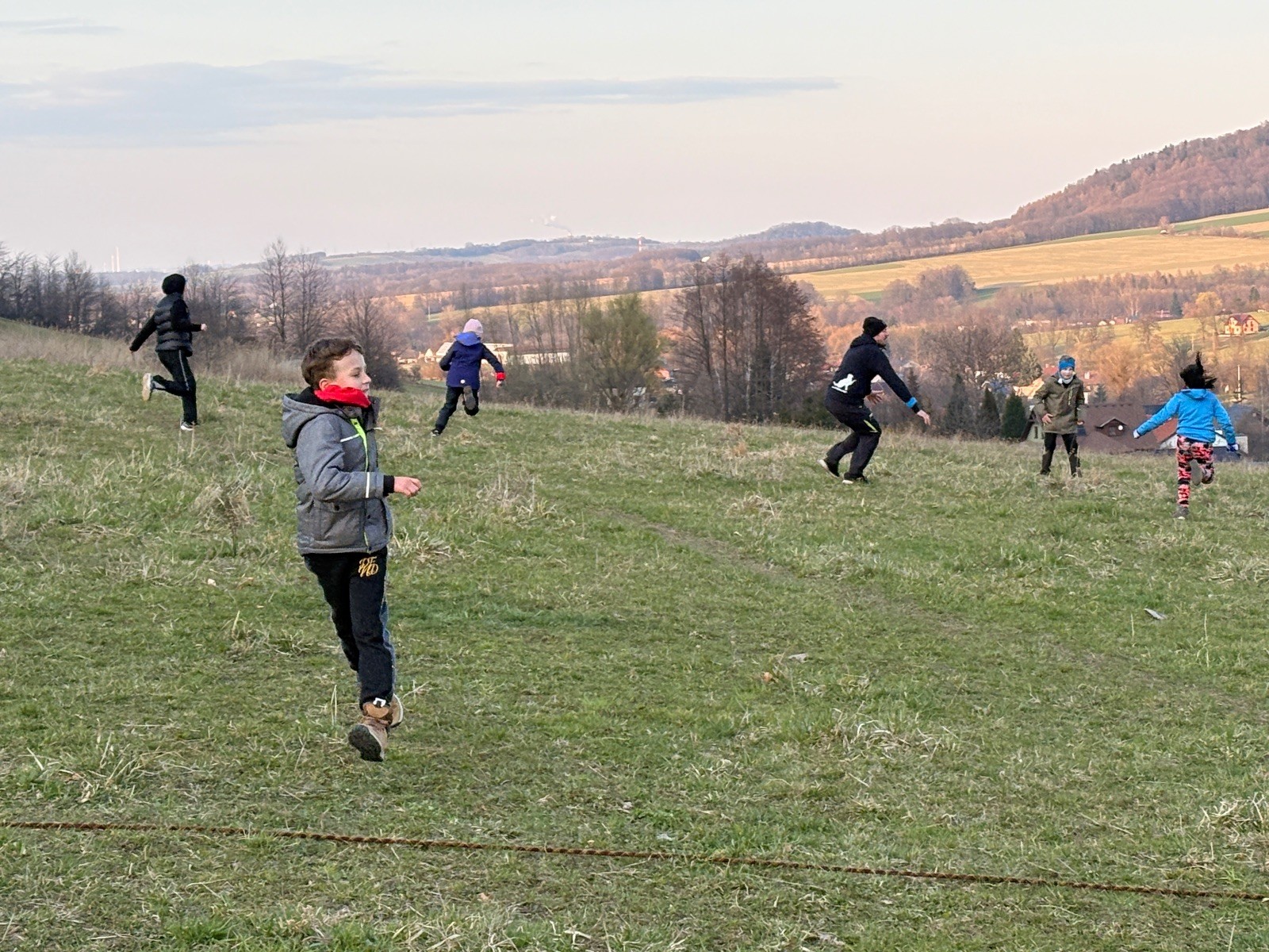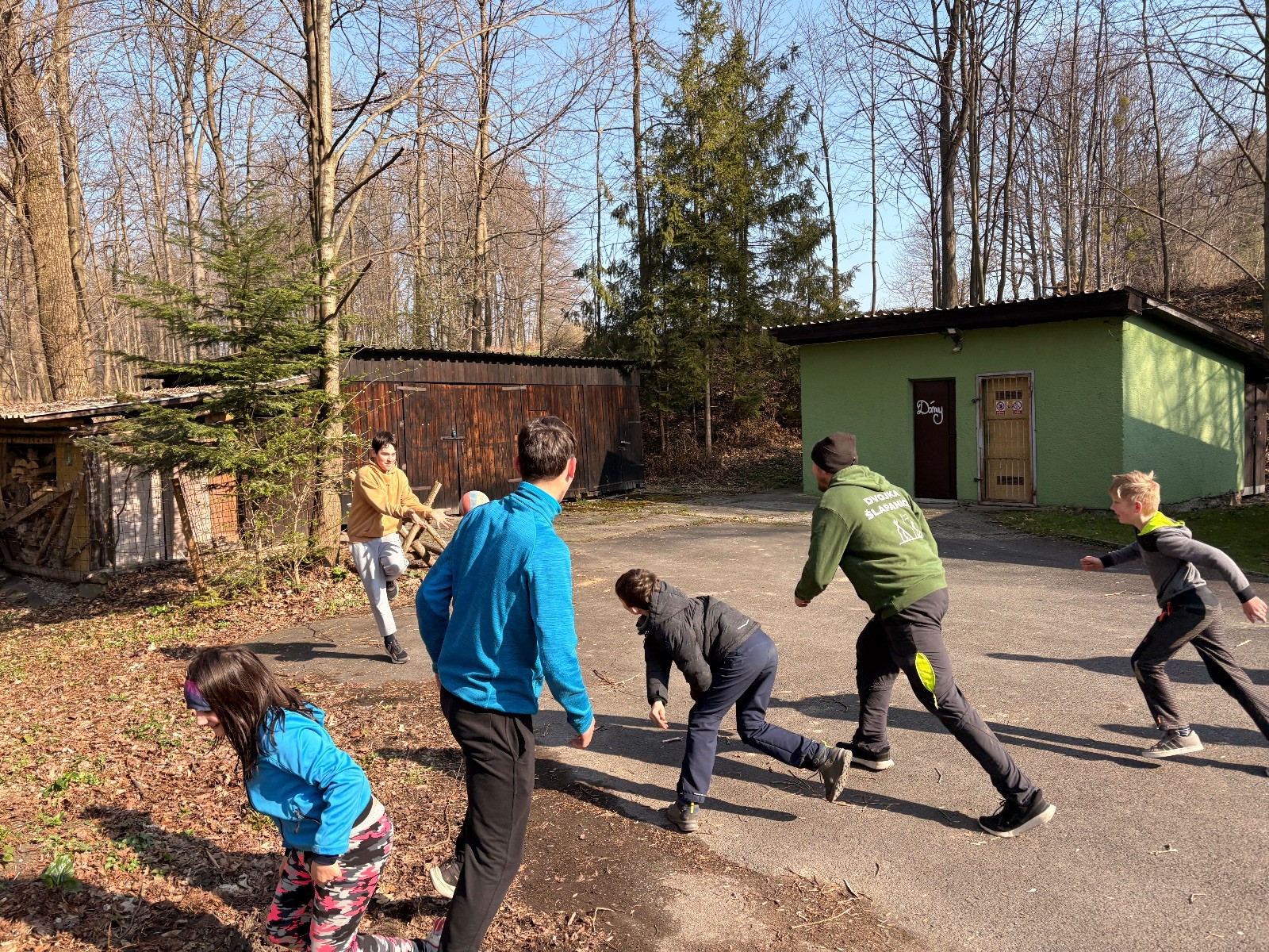 Čas nás lehce tlačil, takže bylo potřeba vyběhnout krpál nahoru do kopce a zase hezky dolů směrem do lomu. Zde všichni kdo mohli, posbírali okolní suché dřevo a mohlo se jít na oheň. Při znění skautské písně Tulácký ráno se nám krásně rozhoříval táborák a po slibu všech malých světlušek, vlčat a jednoho skauta se z malého ohýnku stal užitkový oheň pro hermelíny a špekáčky. Také Klepí se opět činil a na rošt hodil zelí, které se zde dělalo až do posledního uhlíku. Valča si vzala na starost Hágena, hru, která tvořila v tmavém lese tajemnou atmosféru.Zhasili jsme žhavé uhlíky a po družinkách se vydali směr myslivecká chata. Zde si všichni poctivci vydrhli zoubky a při Uzlem puštěném táborovém filmu 2025 jsme se všichni pomalu oddali spánku.