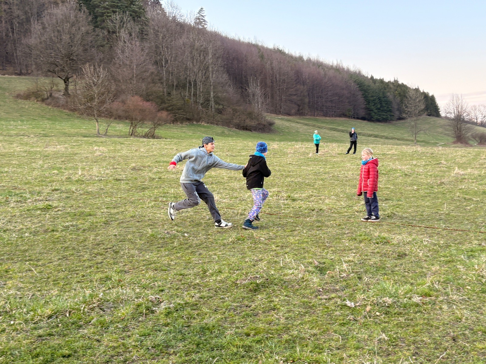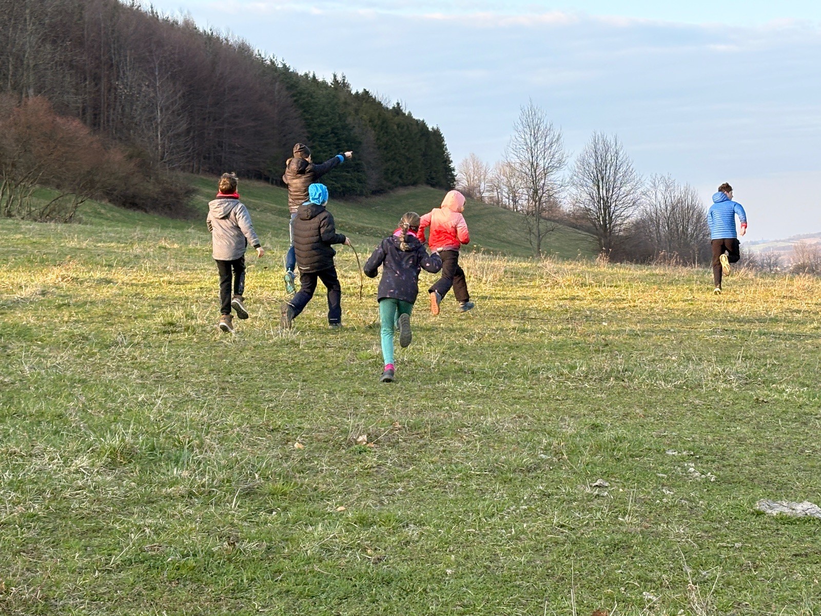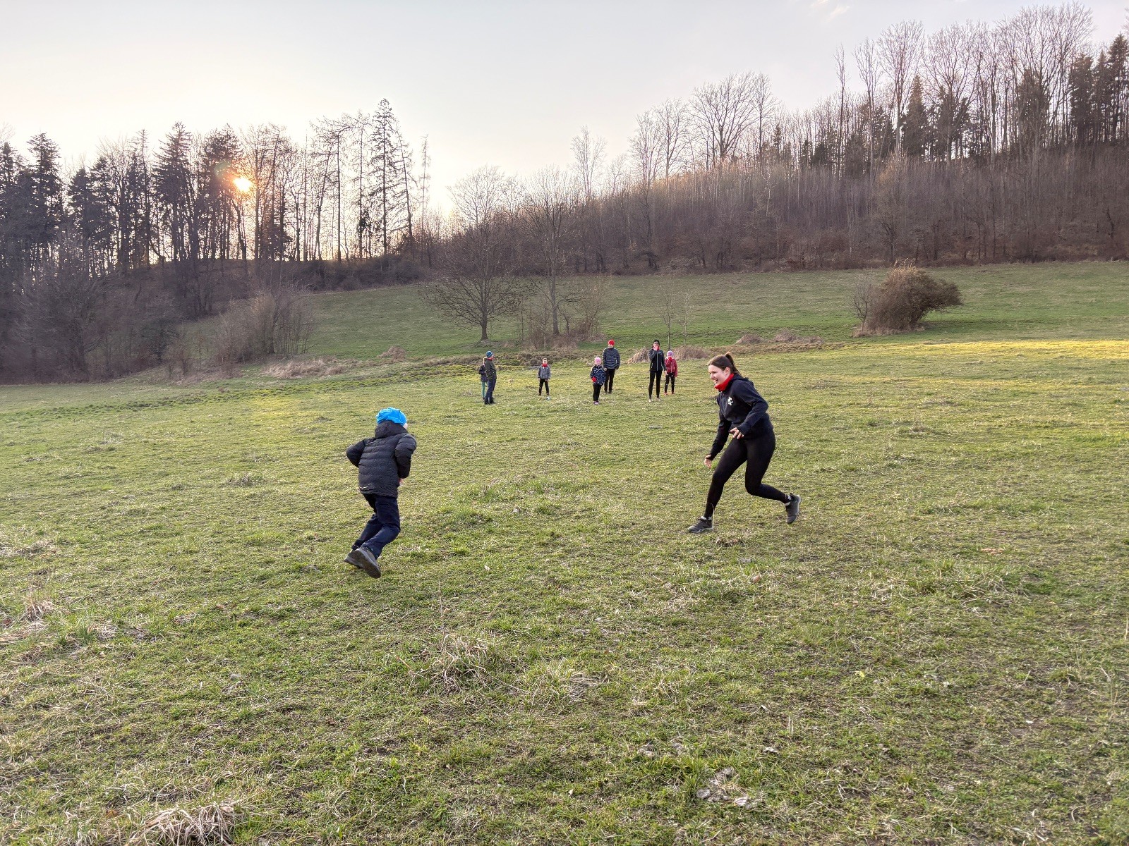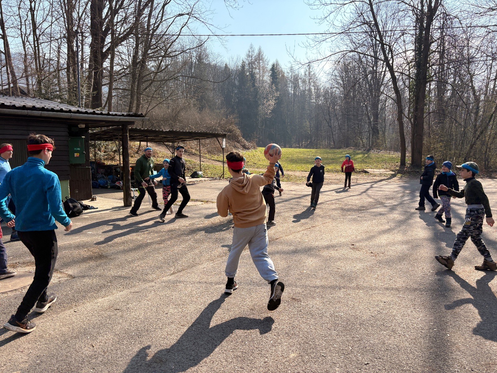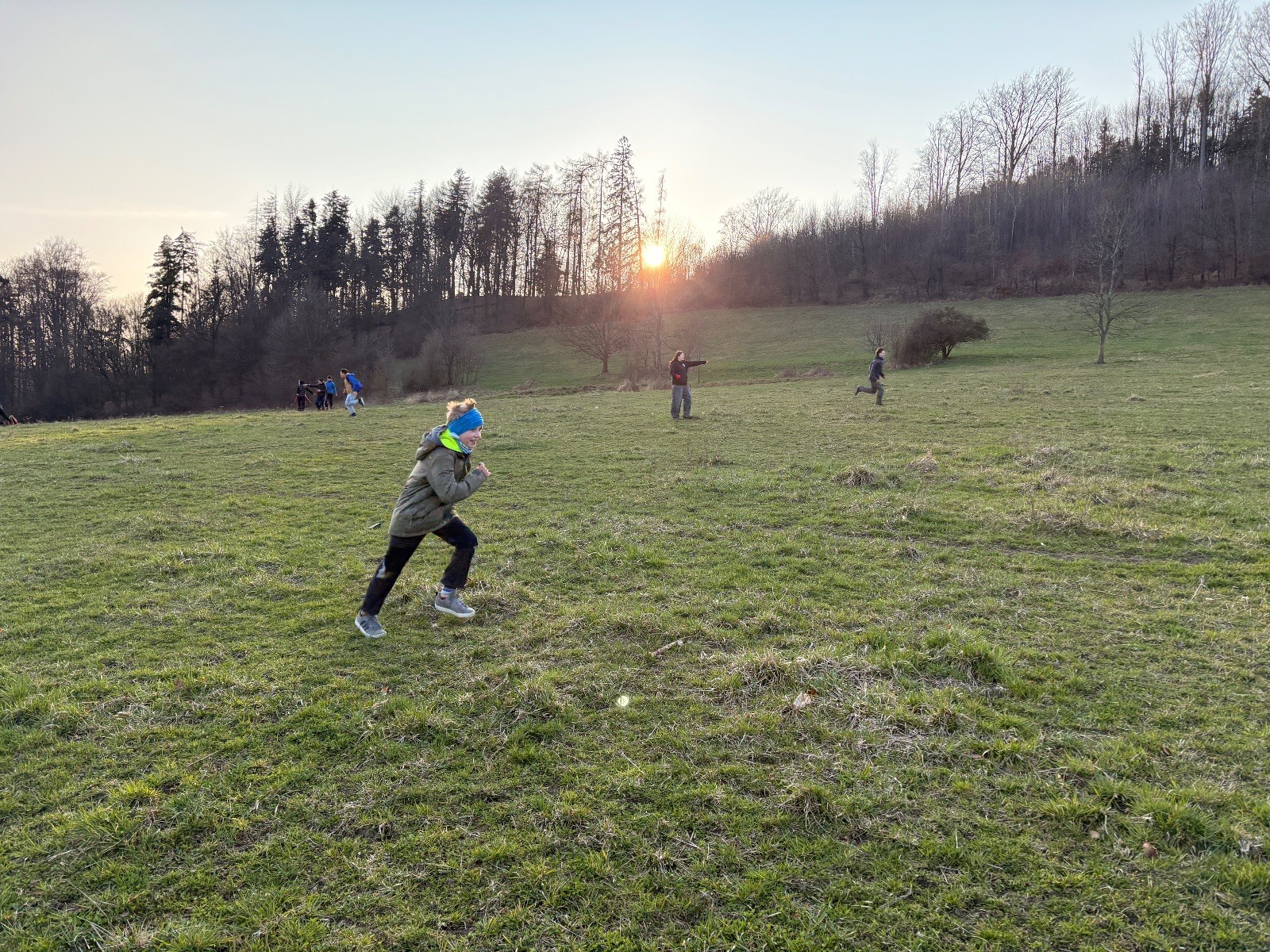 Čas nás lehce tlačil, takže bylo potřeba vyběhnout krpál nahoru do kopce a zase hezky dolů směrem do lomu. Zde všichni kdo mohli, posbírali okolní suché dřevo a mohlo se jít na oheň. Při znění skautské písně Tulácký ráno se nám krásně rozhoříval táborák a po slibu všech malých světlušek, vlčat a jednoho skauta se z malého ohýnku stal užitkový oheň pro hermelíny a špekáčky. Také Klepí se opět činil a na rošt hodil zelí, které se zde dělalo až do posledního uhlíku. Valča si vzala na starost Hágena, hru, která tvořila v tmavém lese tajemnou atmosféru.Zhasili jsme žhavé uhlíky a po družinkách se vydali směr myslivecká chata. Zde si všichni poctivci vydrhli zoubky a při Uzlem puštěném táborovém filmu 2025 jsme se všichni pomalu oddali spánku.