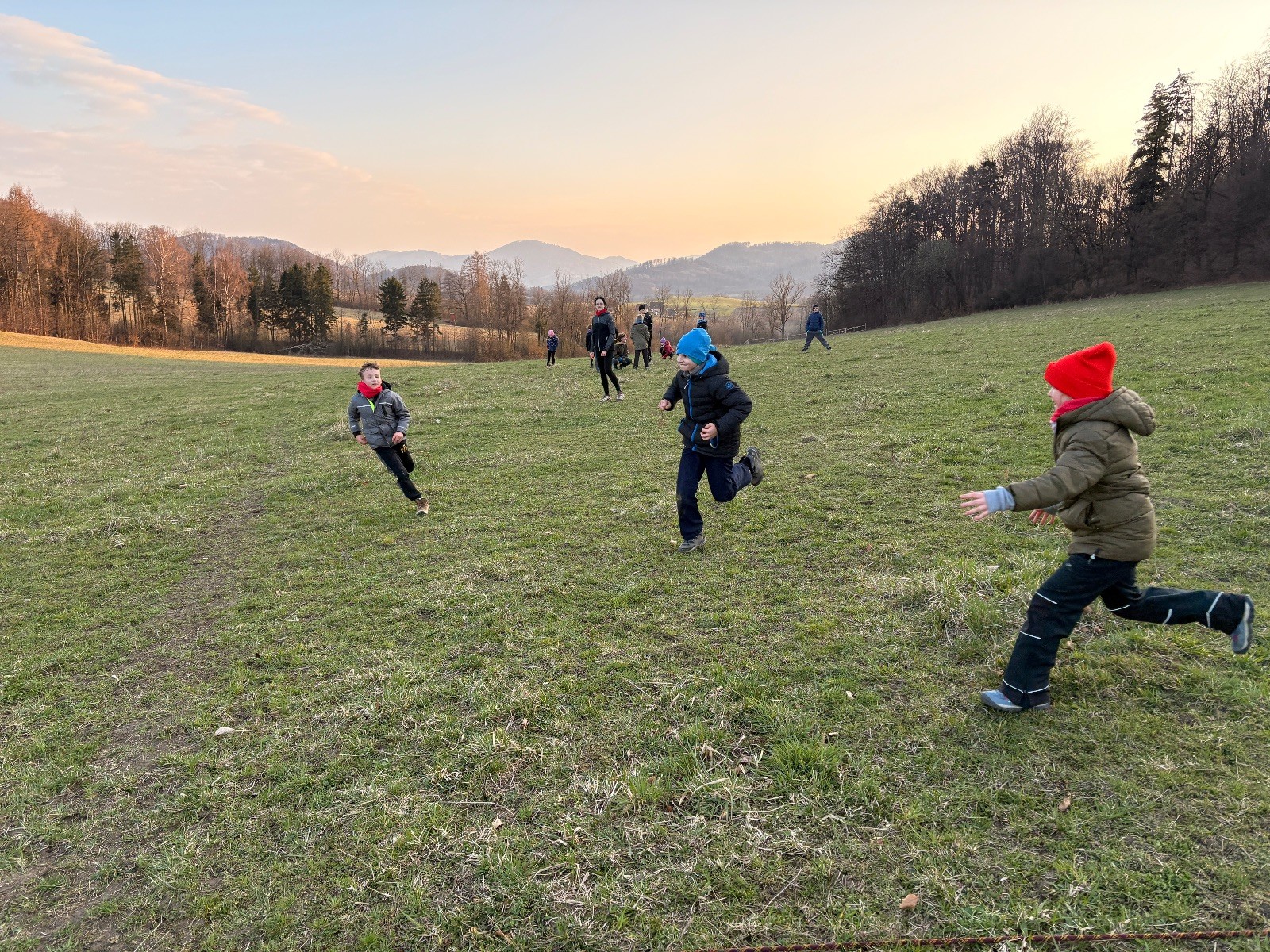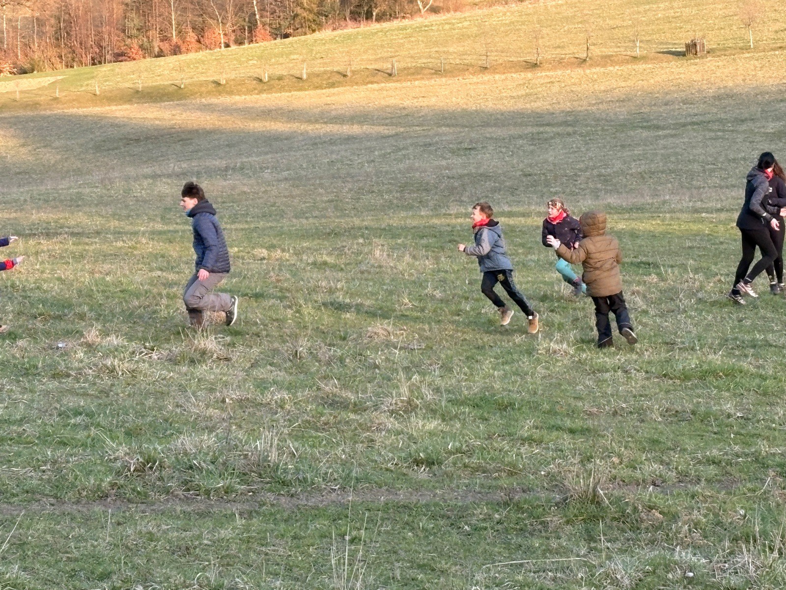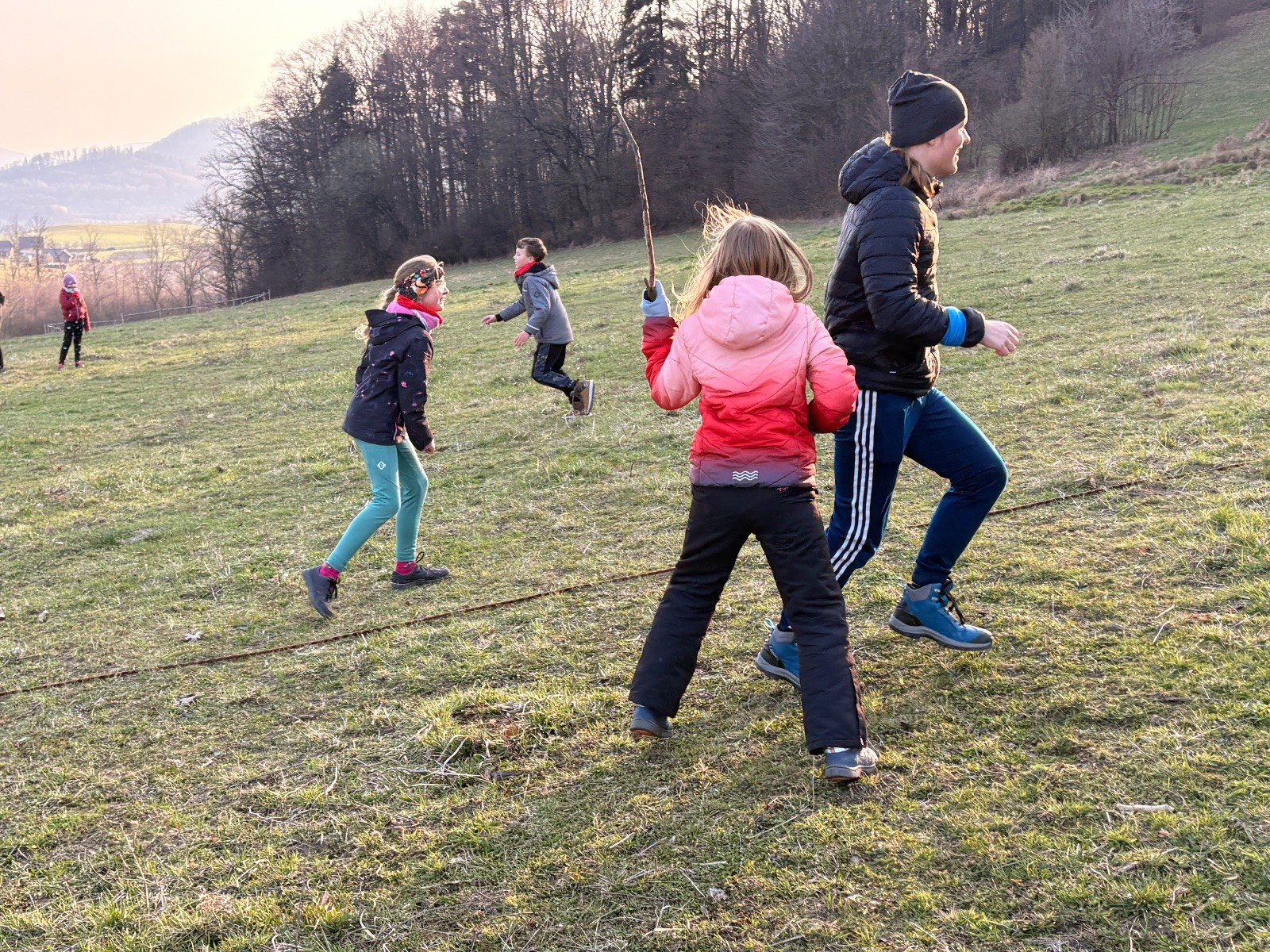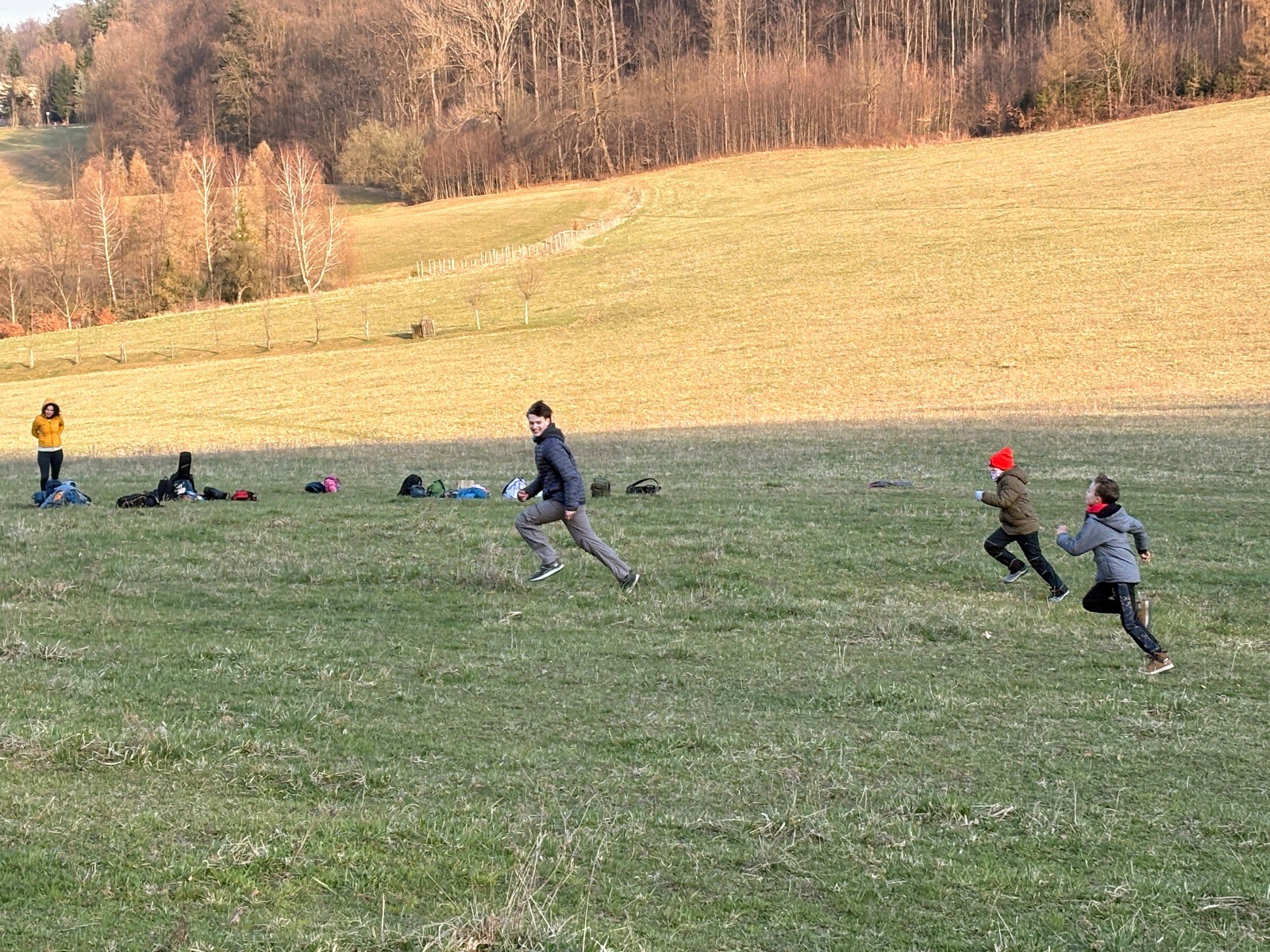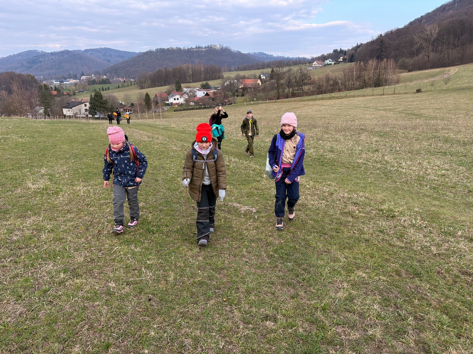 Čas nás lehce tlačil, takže bylo potřeba vyběhnout krpál nahoru do kopce a zase hezky dolů směrem do lomu. Zde všichni kdo mohli, posbírali okolní suché dřevo a mohlo se jít na oheň. Při znění skautské písně Tulácký ráno se nám krásně rozhoříval táborák a po slibu všech malých světlušek, vlčat a jednoho skauta se z malého ohýnku stal užitkový oheň pro hermelíny a špekáčky. Také Klepí se opět činil a na rošt hodil zelí, které se zde dělalo až do posledního uhlíku. Valča si vzala na starost Hágena, hru, která tvořila v tmavém lese tajemnou atmosféru.Zhasili jsme žhavé uhlíky a po družinkách se vydali směr myslivecká chata. Zde si všichni poctivci vydrhli zoubky a při Uzlem puštěném táborovém filmu 2025 jsme se všichni pomalu oddali spánku.