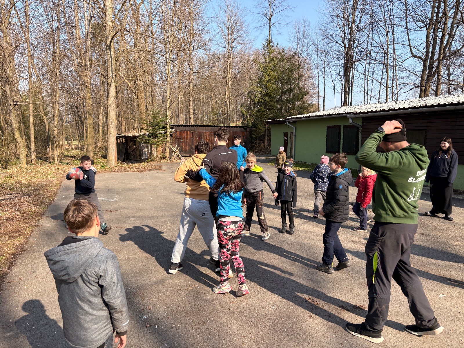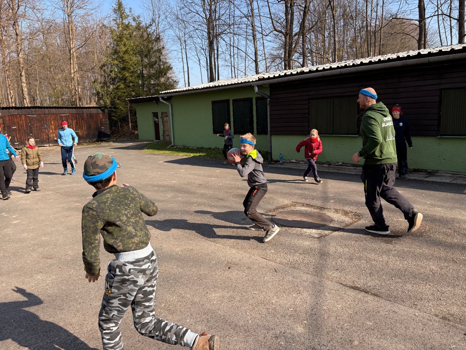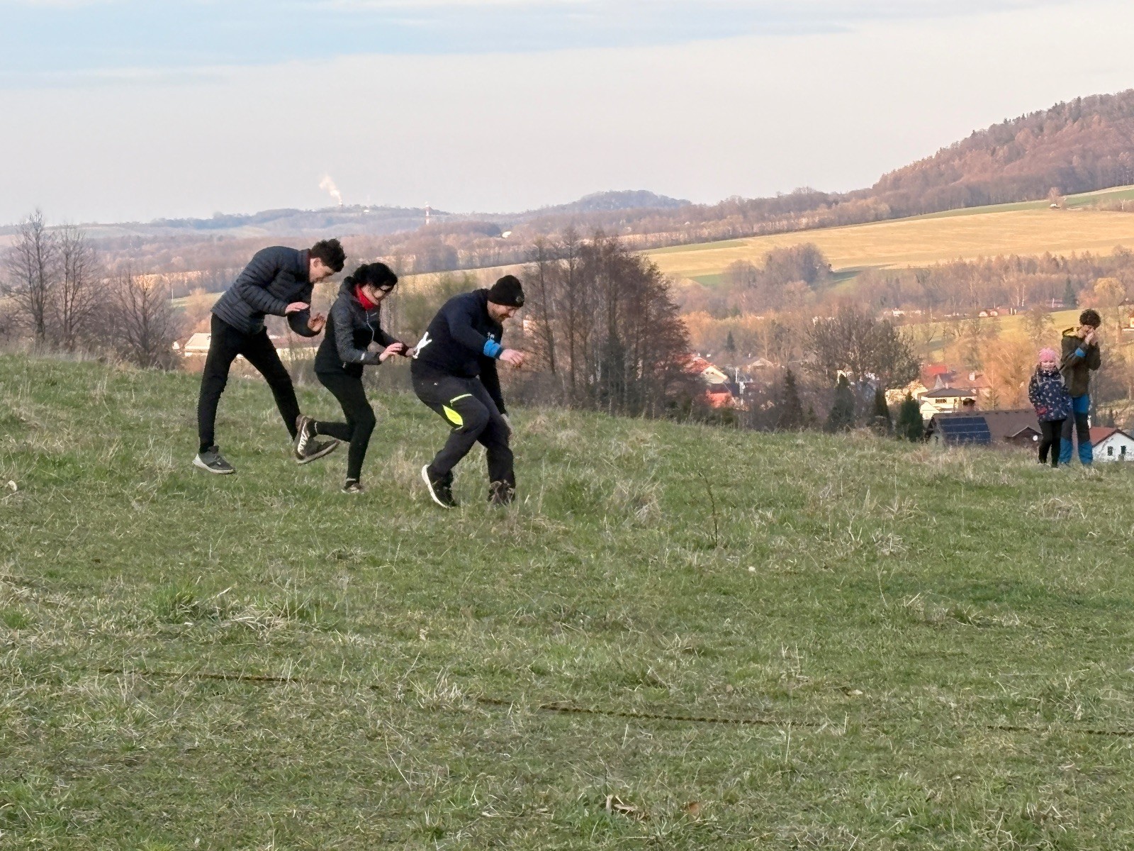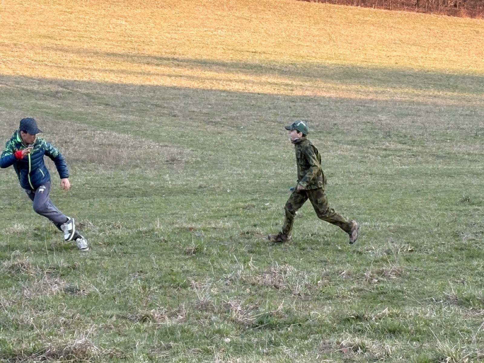 V sobotu v 15:00 jsme se po krátkém zabydlení v myslivecké chatě vyrazili směr větřkovický lom. Po cestě jsme tak, jak je naším zvykem zahráli vlajkovanou. Jednoduchá hra s cílem donést vlajku mého a Klepetova týmu za čáru se strhla v neuvěřitelně napínavý souboj. Skóre 2:2 nám nijak nevadilo, takže můžeme říci, že jsme oba týmy stejně dobré. Že ano Klepeto;) (*pozn. redakce/Klepeta - I přes uznanou remízu zůstává faktem, že modrý tým byl lepší :-))