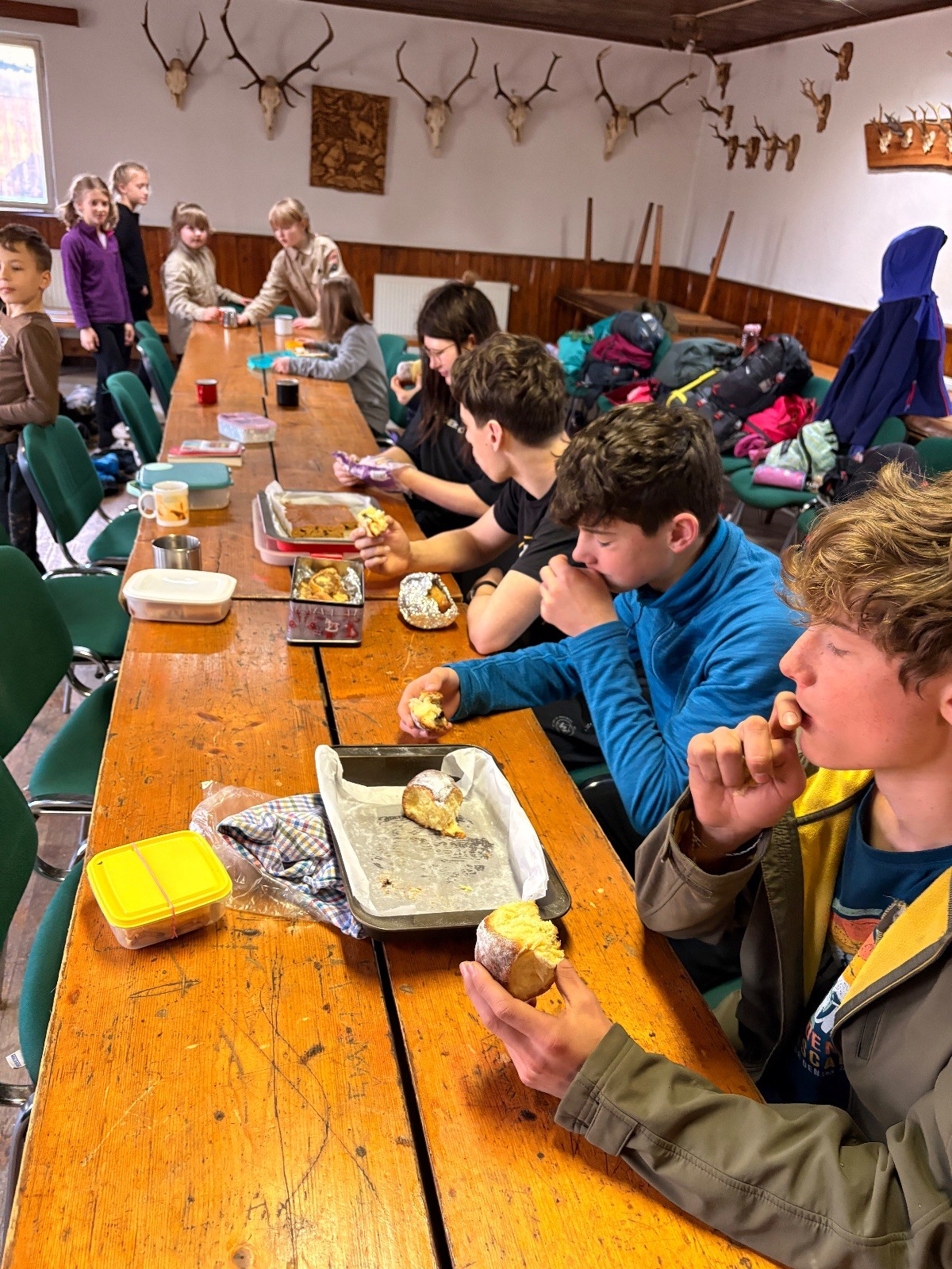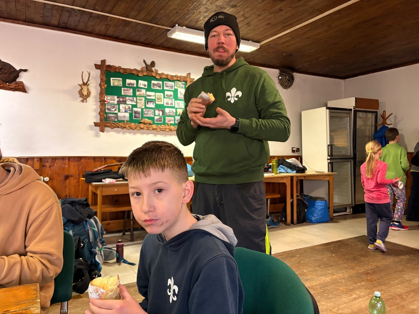 Je ráno, pomalu se probouzíme, ale já nikam nespěchám. Včera mě to stálo odřený loket, šmouhu na zdi a protržené termotriko, protože jsem ráno spadnul ze schodů a ve snaze se zachránit jsem utrpěl výše popsanou újmu. Dnes budu chytřejší a vstávání rozhodně neuspěchám. Mohli byste namítnout, že u myslivny nejsou schody, ale kdo ví co se může stát… Člověk je rozespalý, může uklouznout na papírku od žvýkaček, zakopnout o práh, rohož nebo co já vím! To nehodlám riskovat a tak čekám v teplém spacáku dokud to v myslivně neožije a dokud Valča neuvaří čaj. Se vší opatrností vstávám a jdu se věnovat buchtám, za které vděčíme paní Sofinko-Laurinkové a doufáme v její přízeň (a buchty) i do budoucna :-).