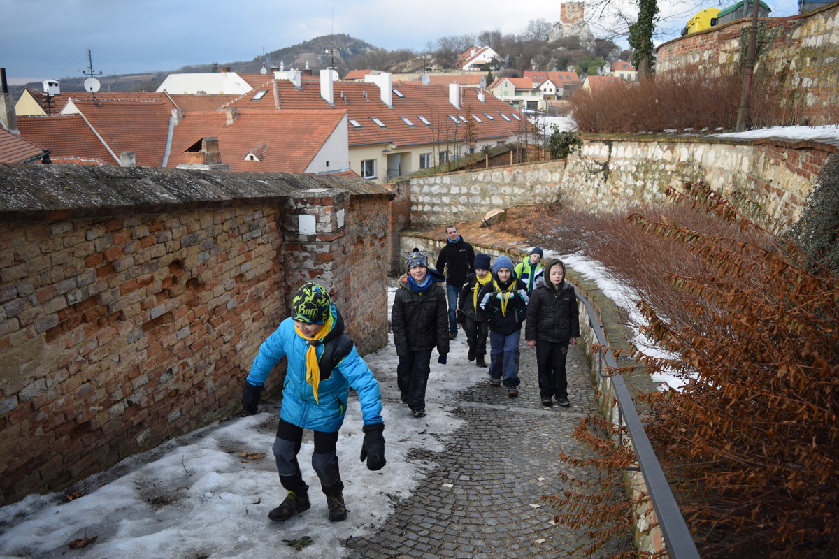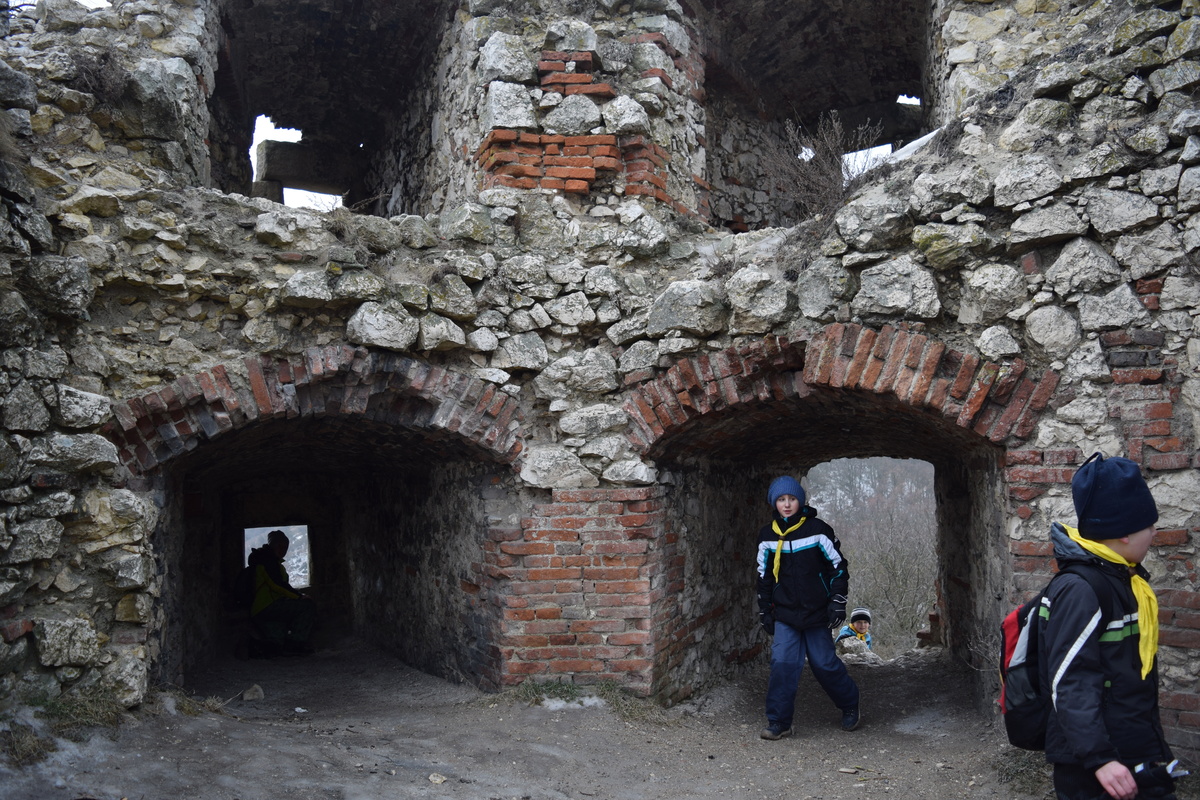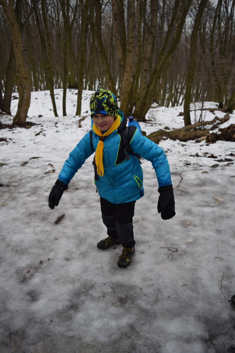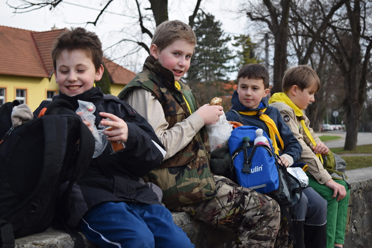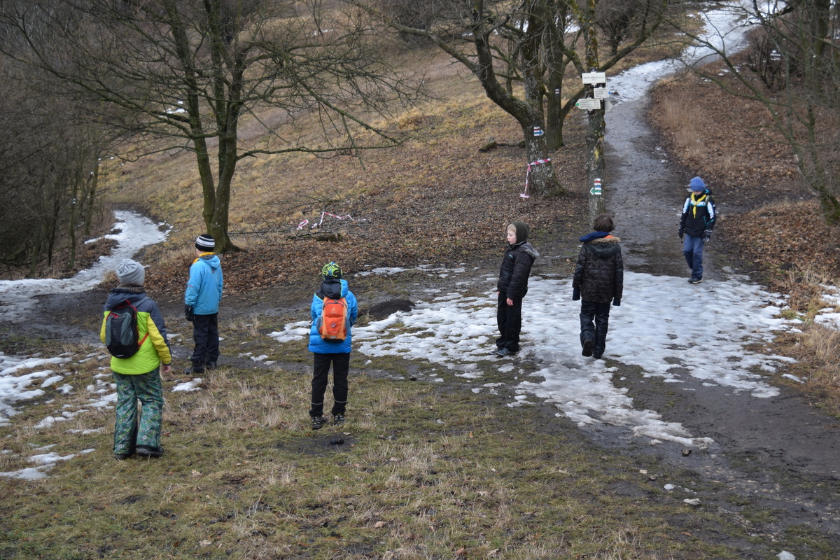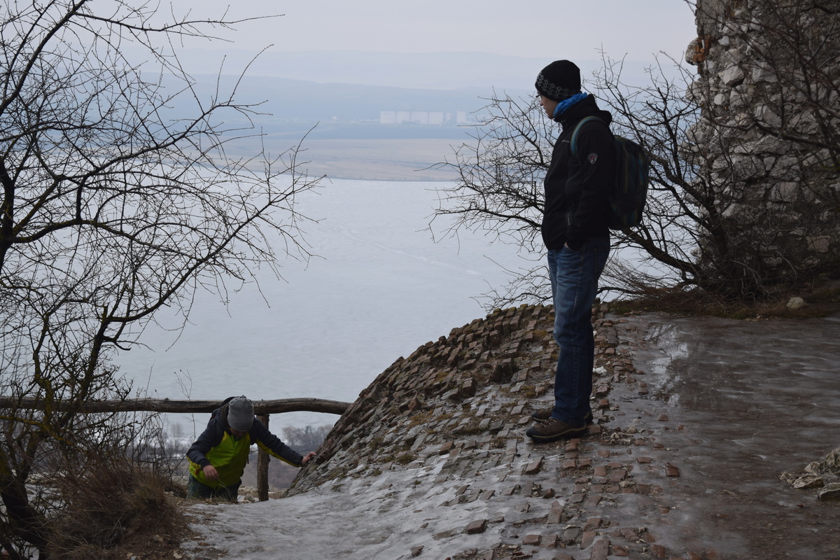 Probouzíme se okolo půl osmé, křikem příliš živých vlků. Snídáme výpravovou klasiku – buchty. Po vydatném jídle se balíme a pomalu míříme na autobusové nádraží. O půl desáte nám odjíždí autobus do Pavlova. Při výstupu z autobusu vidíme na Dívčí hrady, tyčící se nad Pavlovem. Je to také první zastavení na naší výpravě. Procházíme vesničkou a začínáme stoupat do strmého kopce. Výstup nám znesnadňuje vrstva ledu na cestě, ale my se nevzdáváme a s občasným uklouznutím stoupáme stále výš a výš. Výhled ze zříceniny je opravdu nádherný. Vídíme Šakvice, Pavlov, Nové Mlýny, Zaječí a Milovice. Cvakáme pár fotek a po zdolání dvoumetrové kamenné stěny míříme dál – na Děvín.