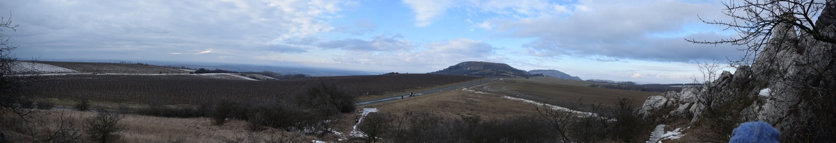 Děvín nám poskytuje parádní útočiště k obědu a nabízí nám další výhled. Tentokrát na nádrž Nové Mlýny. Ládujeme do sebe paštiky, sýry, salámy a minimálně já si užívám výhled. S plnými břichy pokračujeme dále. Procházíme nádhernou soutěskou a napojujeme se na silnici do Klentnice. Pálavu máme za sebou. Nyní se musíme dostat do Mikulova. Po cestě se ještě zastavujeme na Kočičí skále, kde fotím panorama Pavlovských kopců. Taky je to místo, po kterém čím dál častěji od kluků slyším: