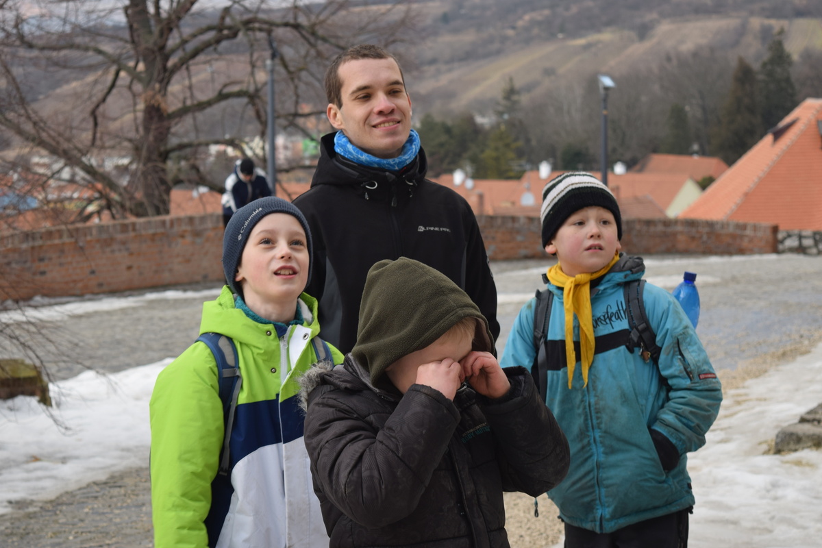 „Vidíte támhle ten kopec? Tak za ním je Mikulov.“ odpovídám jim mechanicky se zdviženou rukou k Turoldu. Nicméně kopec jsme zvládli, do Mikulova došli. Trávíme chvíli času ve skate parku, kde musí kluci ze sebe dostat zbytek energie. Také zde zjišťuji, že je židovský hřbitov zavřen. To ale vůbec nevadí. Máme totiž zhruba dvě hodiny do odjezdu vlaku a začíná se smrákat. Stíháme tedy akorát obhlídnout Mikulovský zámek, náměstíčko a Dietrichsteinskou hrobku. Začíná být zima a tak míříme na nádraží. Po chvíli čekání sedáme na vlak do Břeclavi. Někdo klimbá, někdo hraje šachy.