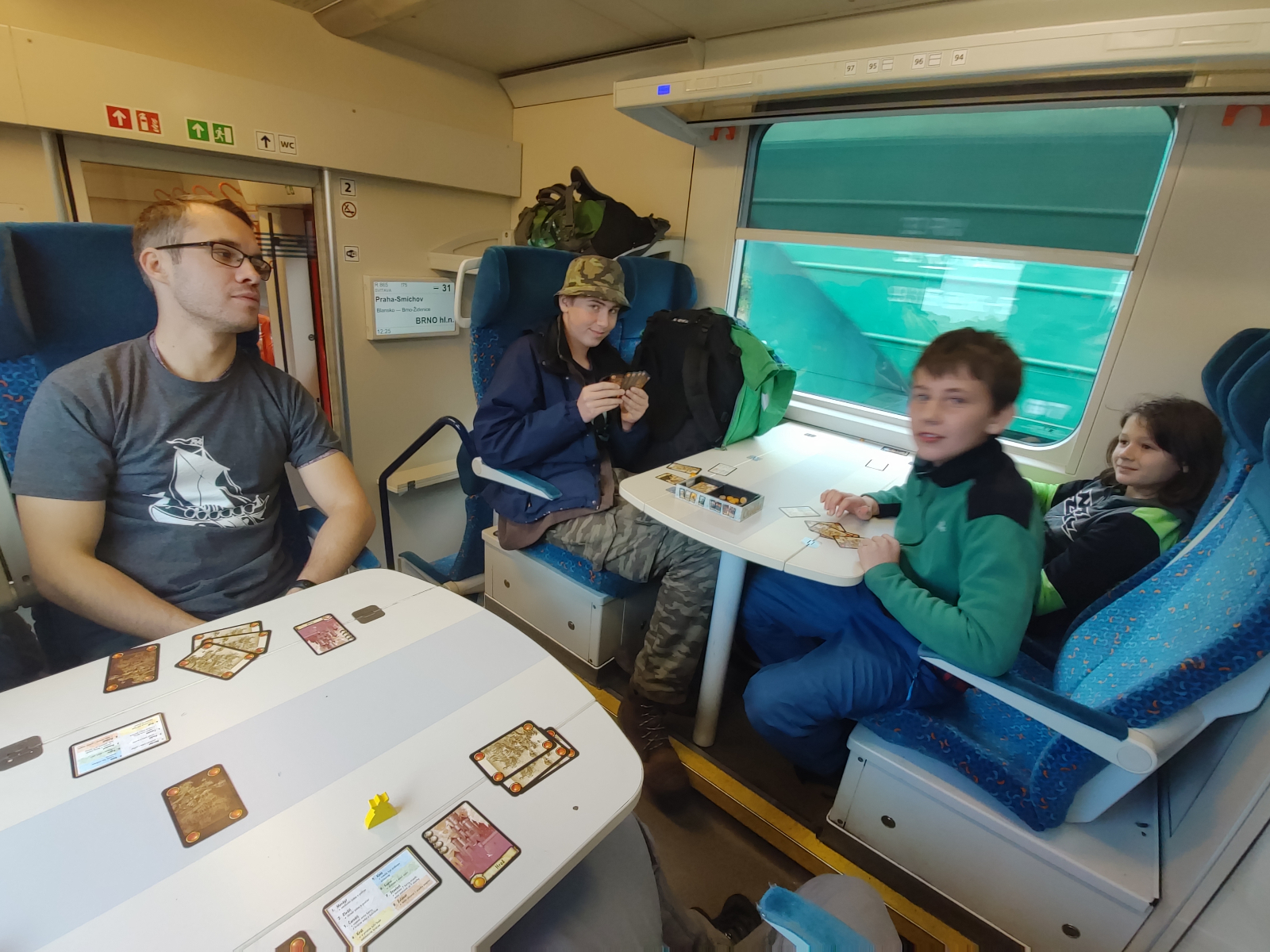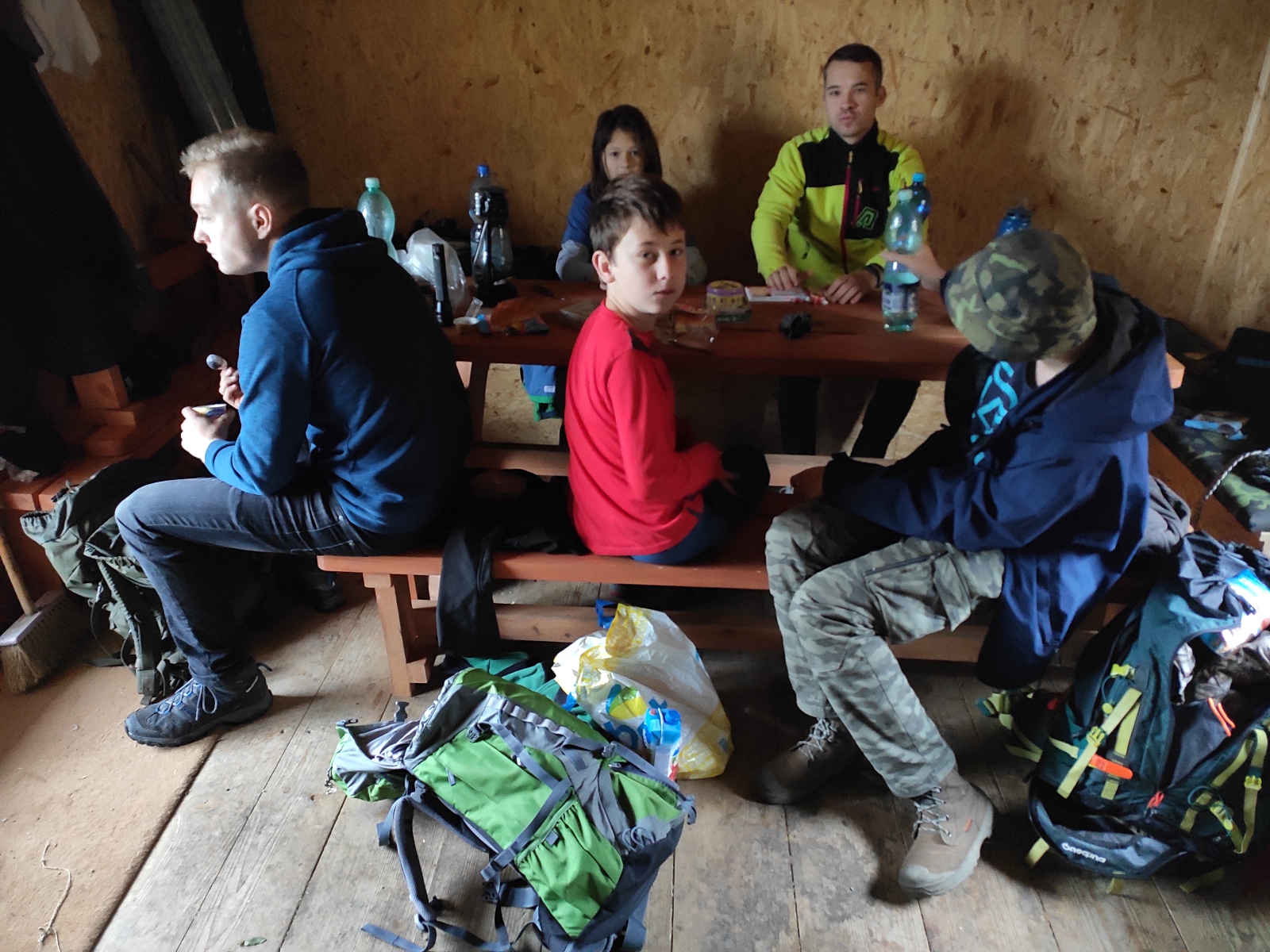V poněkud komornějším počtu jsme se sešli v pátek 4.10. na konečné trolejbusu ve Šlapanicích. Konkrétně zde byl Kloboučník, David, Petr a já. Během cesty do Brna jsme zjistili, že Ondrovi ujel trolejbus ve kterém jsme byli a že za námi přijede dalším. Tím se nám posunuly i odjezdy vlaků, ale nic tragického. V Brně se k nám tedy přidal Ondra a také Kodo – jako minulý rok. Na nádraží již stála naše souprava a ačkoliv měla odjíždět až za tři čtvrtě hodiny, s chutí jsme se nalodili do vyhřátých vagónů. Po příjezdu do Březové nad Svitavou na nás čekal místní vedoucí, který nás odvezl autem (luxus, ve který jsme ani nedoufali) až přímo na Šifrův palouček, který je ve vedlejší vesnici. Rychle jsme se zabydleli, zatopili a pustili se do večeří. Následovalo hraní Timeline, kde jsme zužitkovali naše znalosti o světových objevech. Šli jsme dříve spát – druhý den nás čeká výprava do okolí. Probudili jsme se do deštivého rána. Kapky bubnovaly na střechu a my snídali. Nevyměknem. Sbalili jsme si batohy a vyrazili. Cestou na chrastavec jen mírně pršelo a my se „brodili“ mokrými pícninami. Mapy nám ukazovali zaoranou cestu a tak jsme se na Vlkov museli vydat menší oklikou přes Študlov. Sympatická malá vesnička. Ve Vlkově jsme se povinně vyfotili u informační cedule, dokazující, že nám to tu patří. Za Vlkovem jsme zahájili stoupání směrem k Letovicím. Menší zděšení způsobily záhadné agresivní zvuky, které se linuly z lesa. Nakonec jsme usoudili, že patří divočákům. Rozpršelo se. Hodně. Schovali jsme se tedy v altánku místní myslivecké chaty a čekali až se jádro přežene. Před námi je poslední kus cest, která utíká kupodivu rychle. Na nádraží v Letovicích se loučíme s Kodem, který musí domů, a my pokračujeme k nejbližší kavárně. Kluci si dávají domácí limonádu (s výjimkou Ondry, který pod stolem pije vlastní džus) a já s Petrem kafe. Máme hodinu a půl do odjezdu našeho vlaku zpět do Březové. Panuje pohodička. Po příchodu na boudu rychle topíme a sušíme naše promoklé věci. Začínám vařit a kluci hrají Citadelu. Po přežrání těstovinami pokračujeme v hraní Citadely. Spát jdeme brzo, byl to náročný den. Výhodou starších skautů je, že vydrží ve spacáku stejně dlouho jako jejich vedoucí. Nikomu tak tedy nevadí, že stáváme v až v devět hodin (opět do deštivého rána) a pomalu uklízíme boudu. K snídani si děláme jablka se skořicí a zakusujeme je závinem. Před polednem nám Ondra dává lekci třídění odpadu a pomalu se stahujeme na nádraží v Březové. Ve vlaku máme jen pro sebe větší kupé a hrajeme poslední partii Citadely. Výpravu tradičně zakončujeme ve šlapanické cukrárně.
