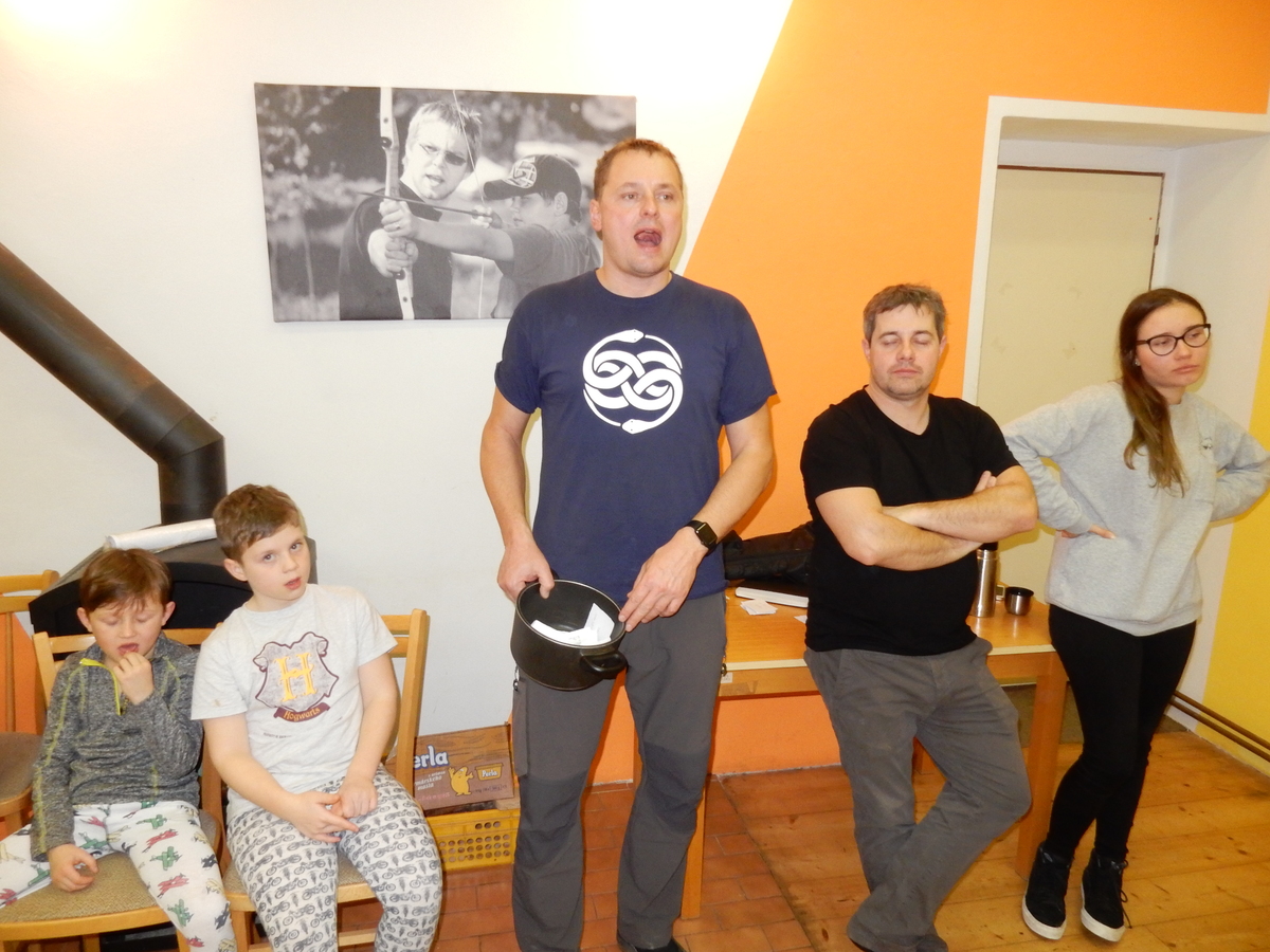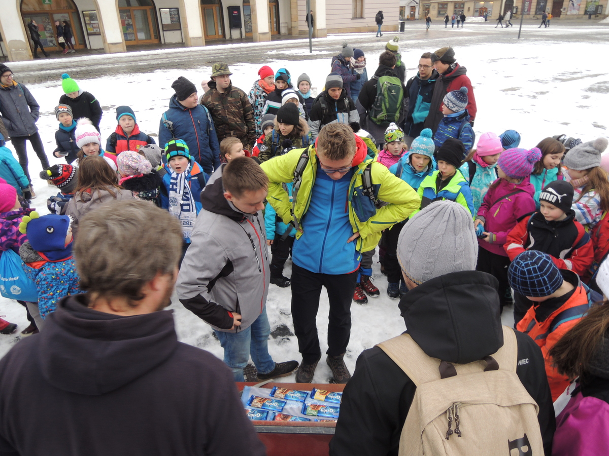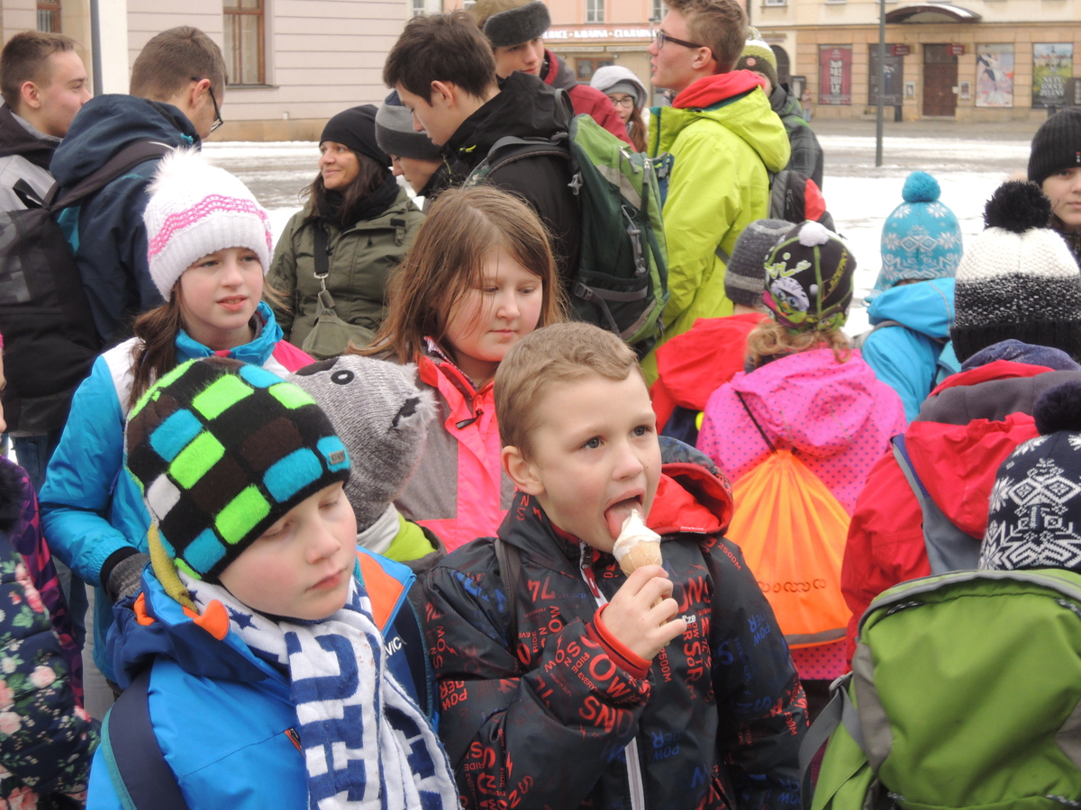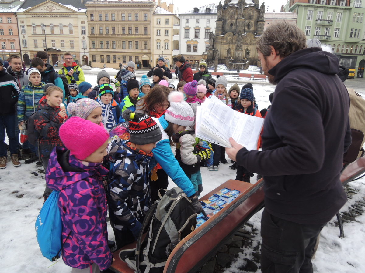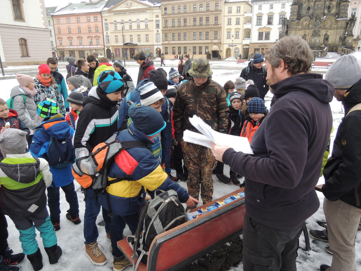 1.-3.2.2019 V září loňského roku jsme zaznamenali další příliv nováčků do oddílu, proto bylo jasné, že na zimní výpravu bude třeba najít dostatečně velkou základnu, která nás pojme. To se nám podařilo v Olomouci. Přihlašování bylo tentokrát premiérově přes nový oddílový systém DvojkIs a věřte nebo ne, nakonec nás na výpravu jelo 73. To je absolutní rekord, víc nás nebylo ani na žádném podzimním čtyřdenňáku a na těch bývá účast vždy lepší, než v zimě. A jely s námi poprvé i Hukvaldské Lišky. Sraz byl v pátek v 7:30 ráno u Radnice. Na etapy jsem se posunuli do Brna, kde na nás u Grandu čekal speciálně přiobjednaný spoj Student Agency s pohodovým řidičem za volantem. Ten nás dovezl až k nádraží v Olomouci a i když slíbené filmy nefungovaly, cesta byla v klidu. Pešo se asi kiláček nebo dva suneme k místnímu Skautskému domu, kde nás očekává místní správce Soptík. Než vedoucím ukáže ubytovnu, koulují se děcka venku sněhovými koulemi a náramně se při tom baví. Uvnitř obsazují naši členové tělocvičnu a každý si nachází místečko pro spaní. Vedlejší prostornou místnost rezervujeme Liškám. Kromě toho máme k dispozici dvě velké a jednu malou místnost nahoře a kuchyňku. Tu malou zabydlí Draci spolu s některými vedoucími, ve zbylých dvou budeme jíst a hrát hry. Než se tak stane, přicházejí i Lišky. Corado kempí v kuchyňce a vybírá od členstva jídlo, Džany zase v jedné ze společenských místností vybírá peníze. Poté vyrážíme do města. Na náměstí je to asi dva kilometry. Jdeme sněhem lemovanými chodníky, na náměstí je sněhu také hodně. Teplota ovšem strmě stoupá a sníh se takřka před očima mění ve vodu. Před orlojem na Horním náměstí se nejprve společně fotíme, pak rozděluji přítomné do 11 skupinek a vysvětluji hru. Účelem je navštívit 7 vybraných zajímavých míst v centru Olomouce a na každém něco zjistit. Skupinky musí putovat společně, nikdo se nesmí oddělit či někde ztratit a také je třeba místa opravdu vidět, ne jen věci do tabulky vyptat od kolemjdoucích, nebo dokonce vygooglovat. Na druhé straně soutěž není závodem na čas, jde o to si místa prohlédnout a hru užít, ne propotit oblečení. Zkrátka odměněna bude každá skupina, která v daném čase (1 hodina) dokáže věci zjistit. Mrňousci se poté rozbíhají do všech světových stran, vedoucí jdou buď s nimi, nebo si jdou někam sednout. Já jdu na lov turistických známek, ale je to nějaké smolné - ze tří, co ještě na Boudě nemáme, získávám jen jednu jedinou. Po uplynutí soutěžní hodiny mají členové ještě hodinový rozchod, po rozchodu soutěž vyhodnocuji. Sedm bodů mají jen dvě skupiny, většina má bodů pět a je tu i jedna nejmenovaná tlupa zoufalců, co nasbírala za celý čas bod jediný :-). Členstvo během chviličky spořádá sladké odměny a může se jít do akvaparku. Není to daleko, snad 3 nebo 4 kiláky. Na městskou výpravu toho ale nachodíme dost. Nevím kdo vymýšlel v akvaparku systém zamykacích skříněk, shodujeme se ale, že blbější bychom hledali jen velmi těžko. Když pak u východu místo prostého odevzdání čipu musíte tento přiložit ke čtečce, pak ho zanést na recepci a s papírkem jdete zpět k turniketu, který vás propustí, to už nic neříkáme jen se smějeme na celé kolo. Škoda, že si místní nezajeli pro inspiraci třeba do Vyškova. Uvnitř je to ale super. Dva tobogány, sauny, vířivky, bazén s atrakcemi... Voda teploučká, plavčíci normální. Nenudí se určitě nikdo a 90 minut uběhne jako nic. Zpět na základnu jedeme šalinou a kousek autobusem. Na místě nás už čekají Radek s Fufem a hlavně plný hrnec výborných těstovin s kečupem nebo s pestem. Skvělá večeře, myslím, že jsem nebyl sám, kdo si přidal. S plnými bříšky se pak suneme s židličkami do volné místnosti a hrajeme nejprve Seznamovačku a poté Vyměňovanou. Členstvo se nejen výborně baví, ale také mezi sebou trošku lépe poznává. Sám si už pamatuju skoro všechny naše nováčky a dobrou polovinu Lišek z Hukvald. Vše má ale svůj konce, i dnešní den. Hygiena, uložení k spánku. Pár neukázněnců sice noční klid malinko narušuje, i oni ale brzy usínají. Vedoucí se mohou v klidu poradit o zítřejším programu a pak plynule navázat zpěvem a hraním na kytárky. Vždyť noc je ještě mladá... -------------------------------------------------------------------------------------------------- "A proč zrovna Veverky musí chystat snídani? Vždyť jsem ji chystaly předloni na Březinách!" ptají se některé členky druhé nejstarší dívčí oddílové družiny poté, co je Radek žene do kuchyně. Jdou ale poslušně a když zaslechnou Klouba, jak svolává ostatní na rozcvičku, umlknou docela a spokojeně mažou chleby. No uznejte, je to furt lepší, než venku dělat kliky :-). Po snídani balíme věci a jde se na autobus, přidává se k nám i Elektronek s Ivetkou. Naší ambicí je posunout se na Svatý Kopeček a navštívit místní vyhlášenou ZOO. To by ovšem v Olomouci nesměly místo normálních autobusů jezdit jakási zakrslá nedochůdčata. Ať se snažíme, jak se snažíme, desítka starších a vedoucích zůstává na chodníku. Naštěstí je mezi námi zapomenutými a opuštěnými i Fuf, který je zde v Olomouci autem. Na 2x nás veze na Kopeček, takže jsme tam ještě dřív, než zbytek tlupy, co se do autobusečku vešel. Kupujeme hafanec lístků a po družinkách jdeme obdivovat zvířata. Kolem taje, je nějakých 10°C a nádherně svítí sluníčko. Některé družiny to pojímají jako vycházku, jiné hrají zjišťovací hru, některé to berou jako bufet tour. Vracíme se na základnu v různých časech (aby nás ta místní "nedochůdča