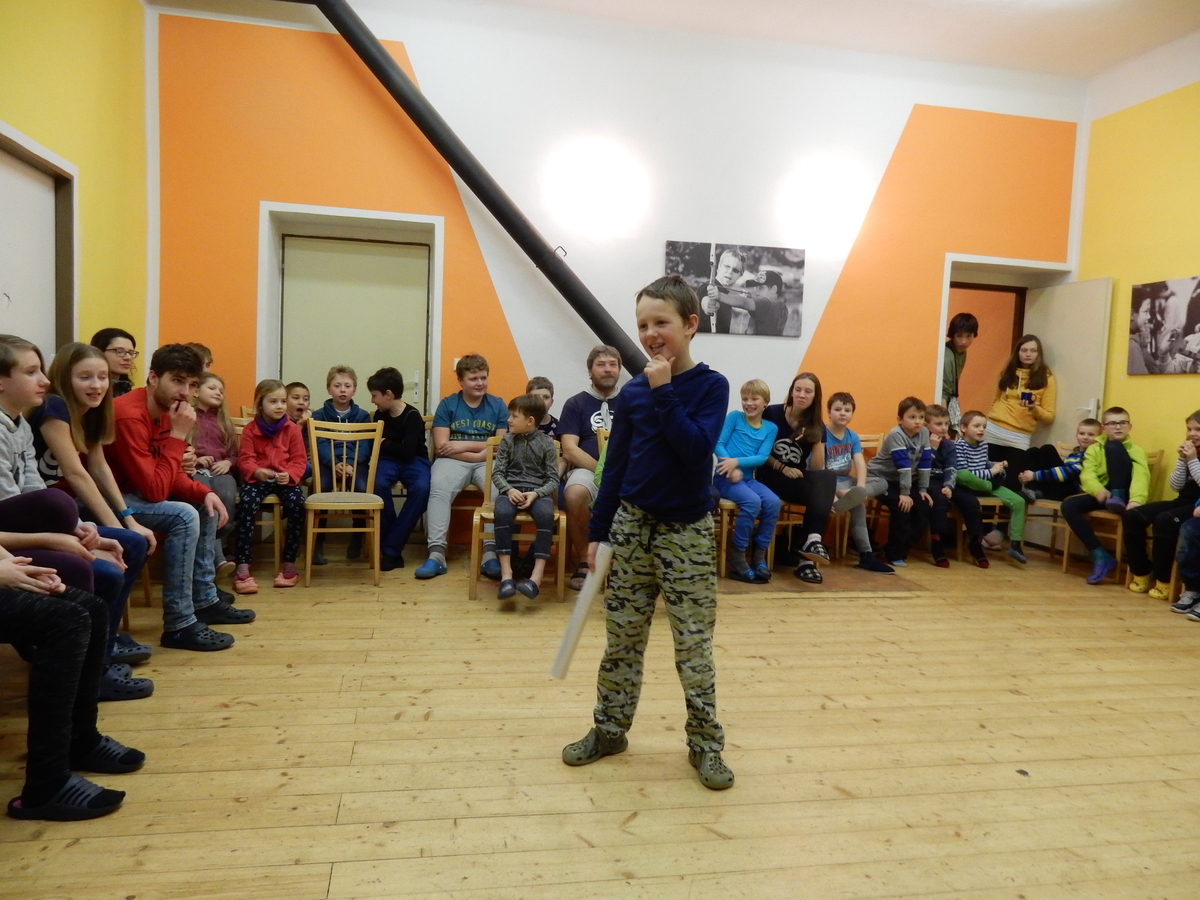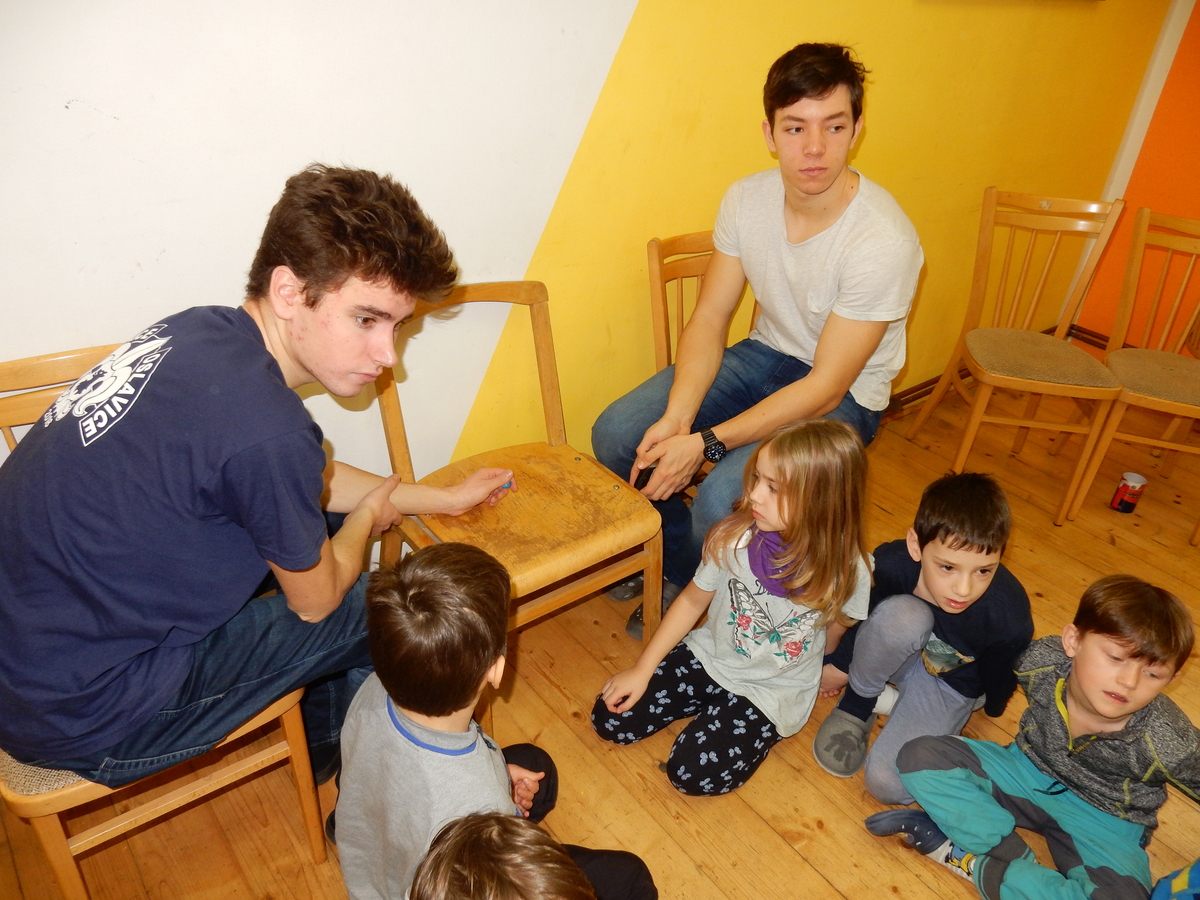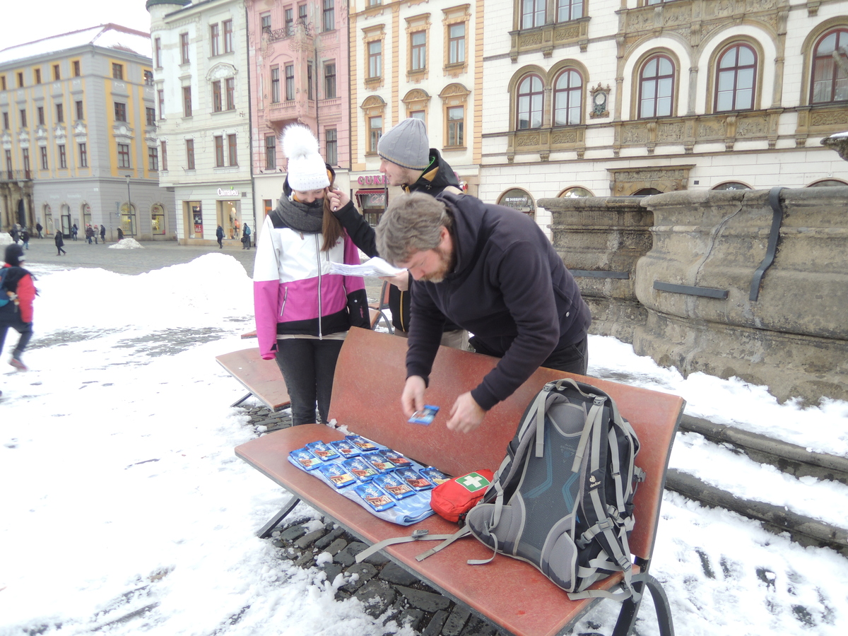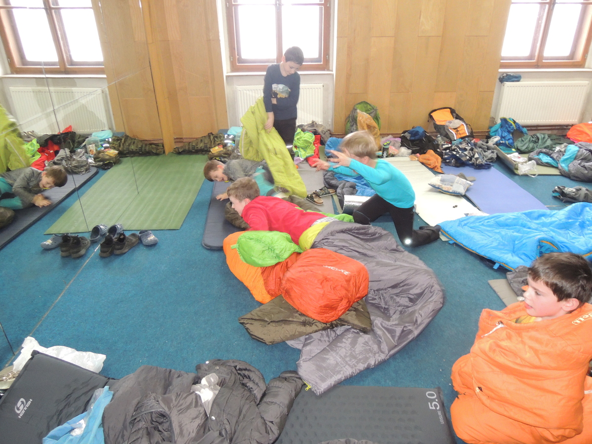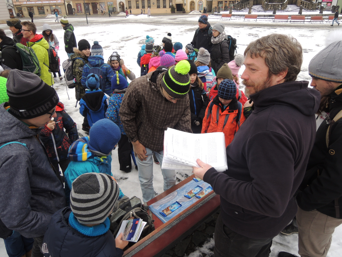 1.-3.2.2019 V září loňského roku jsme zaznamenali další příliv nováčků do oddílu, proto bylo jasné, že na zimní výpravu bude třeba najít dostatečně velkou základnu, která nás pojme. To se nám podařilo v Olomouci. Přihlašování bylo tentokrát premiérově přes nový oddílový systém DvojkIs a věřte nebo ne, nakonec nás na výpravu jelo 73. To je absolutní rekord, víc nás nebylo ani na žádném podzimním čtyřdenňáku a na těch bývá účast vždy lepší, než v zimě. A jely s námi poprvé i Hukvaldské Lišky. Sraz byl v pátek v 7:30 ráno u Radnice. Na etapy jsem se posunuli do Brna, kde na nás u Grandu čekal speciálně přiobjednaný spoj Student Agency s pohodovým řidičem za volantem. Ten nás dovezl až k nádraží v Olomouci a i když slíbené filmy nefungovaly, cesta byla v klidu. Pešo se asi kiláček nebo dva suneme k místnímu Skautskému domu, kde nás očekává místní správce Soptík. Než vedoucím ukáže ubytovnu, koulují se děcka venku sněhovými koulemi a náramně se při tom baví. Uvnitř obsazují naši členové tělocvičnu a každý si nachází místečko pro spaní. Vedlejší prostornou místnost rezervujeme Liškám. Kromě toho máme k dispozici dvě velké a jednu malou místnost nahoře a kuchyňku. Tu malou zabydlí Draci spolu s některými vedoucími, ve zbylých dvou budeme jíst a hrát hry. Než se tak stane, přicházejí i Lišky. Corado kempí v kuchyňce a vybírá od členstva jídlo, Džany zase v jedné ze společenských místností vybírá peníze. Poté vyrážíme do města. Na náměstí je to asi dva kilometry. Jdeme sněhem lemovanými chodníky, na náměstí je sněhu také hodně. Teplota ovšem strmě stoupá a sníh se takřka před očima mění ve vodu. Před orlojem na Horním náměstí se nejprve společně fotíme, pak rozděluji přítomné do 11 skupinek a vysvětluji hru. Účelem je navštívit 7 vybraných zajímavých míst v centru Olomouce a na každém něco zjistit. Skupinky musí putovat společně, nikdo se nesmí oddělit či někde ztratit a také je třeba místa opravdu vidět, ne jen věci do tabulky vyptat od kolemjdoucích, nebo dokonce vygooglovat. Na druhé straně soutěž není závodem na čas, jde o to si místa prohlédnout a hru užít, ne propotit oblečení. Zkrátka odměněna bude každá skupina, která v daném čase (1 hodina) dokáže věci zjistit. Mrňousci se poté rozbíhají do všech světových stran, vedoucí jdou buď s nimi, nebo si jdou někam sednout. Já jdu na lov turistických známek, ale je to nějaké smolné - ze tří, co ještě na Boudě nemáme, získávám jen jednu jedinou. Po uplynutí soutěžní hodiny mají členové ještě hodinový rozchod, po rozchodu soutěž vyhodnocuji. Sedm bodů mají jen dvě skupiny, většina má bodů pět a je tu i jedna nejmenovaná tlupa zoufalců, co nasbírala za celý čas bod jediný :-). Členstvo během chviličky spořádá sladké odměny a může se jít do akvaparku. Není to daleko, snad 3 nebo 4 kiláky. Na městskou výpravu toho ale nachodíme dost. Nevím kdo vymýšlel v akvaparku systém zamykacích skříněk, shodujeme se ale, že blbější bychom hledali jen velmi těžko. Když pak u východu místo prostého odevzdání čipu musíte tento přiložit ke čtečce, pak ho zanést na recepci a s papírkem jdete zpět k turniketu, který vás propustí, to už nic neříkáme jen se smějeme na celé kolo. Škoda, že si místní nezajeli pro inspiraci třeba do Vyškova. Uvnitř je to ale super. Dva tobogány, sauny, vířivky, bazén s atrakcemi... Voda teploučká, plavčíci normální. Nenudí se určitě nikdo a 90 minut uběhne jako nic. Zpět na základnu jedeme šalinou a kousek autobusem. Na místě nás už čekají Radek s Fufem a hlavně plný hrnec výborných těstovin s kečupem nebo s pestem. Skvělá večeře, myslím, že jsem nebyl sám, kdo si přidal. S plnými bříšky se pak suneme s židličkami do volné místnosti a hrajeme nejprve Seznamovačku a poté Vyměňovanou. Členstvo se nejen výborně baví, ale také mezi sebou trošku lépe poznává. Sám si už pamatuju skoro všechny naše nováčky a dobrou polovinu Lišek z Hukvald. Vše má ale svůj konce, i dnešní den. Hygiena, uložení k spánku. Pár neukázněnců sice noční klid malinko narušuje, i oni ale brzy usínají. Vedoucí se mohou v klidu poradit o zítřejším programu a pak plynule navázat zpěvem a hraním na kytárky. Vždyť noc je ještě mladá... -------------------------------------------------------------------------------------------------- "A proč zrovna Veverky musí chystat snídani? Vždyť jsem ji chystaly předloni na Březinách!" ptají se některé členky druhé nejstarší dívčí oddílové družiny poté, co je Radek žene do kuchyně. Jdou ale poslušně a když zaslechnou Klouba, jak svolává ostatní na rozcvičku, umlknou docela a spokojeně mažou chleby. No uznejte, je to furt lepší, než venku dělat kliky :-). Po snídani balíme věci a jde se na autobus, přidává se k nám i Elektronek s Ivetkou. Naší ambicí je posunout se na Svatý Kopeček a navštívit místní vyhlášenou ZOO. To by ovšem v Olomouci nesměly místo normálních autobusů jezdit jakási zakrslá nedochůdčata. Ať se snažíme, jak se snažíme, desítka starších a vedoucích zůstává na chodníku. Naštěstí je mezi námi zapomenutými a opuštěnými i Fuf, který je zde v Olomouci autem. Na 2x nás veze na Kopeček, takže jsme tam ještě dřív, než zbytek tlupy, co se do autobusečku vešel. Kupujeme hafanec lístků a po družinkách jdeme obdivovat zvířata. Kolem taje, je nějakých 10°C a nádherně svítí sluníčko. Některé družiny to pojímají jako vycházku, jiné hrají zjišťovací hru, některé to berou jako bufet tour. Vracíme se na základnu v různých časech (aby nás ta místní "nedochůdča